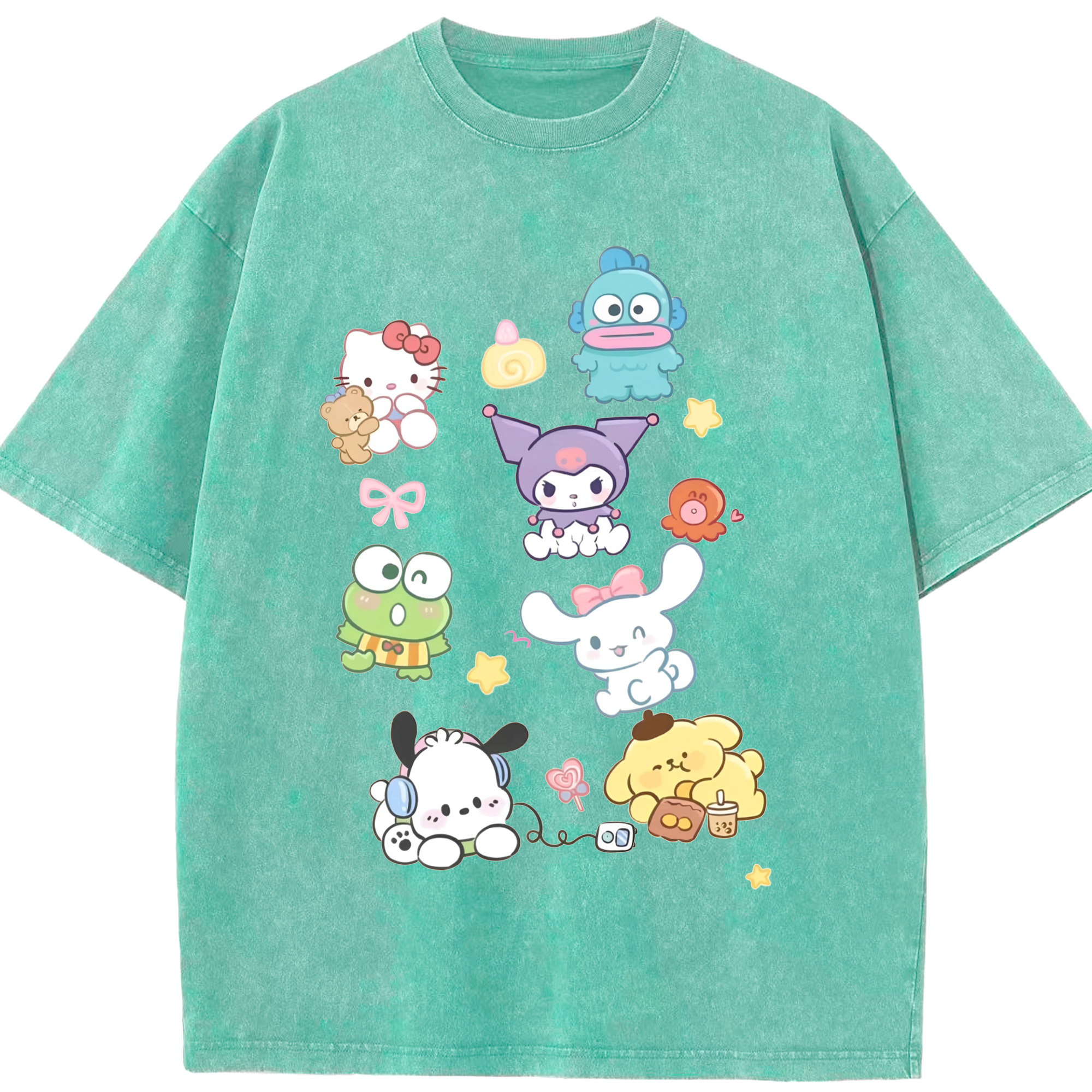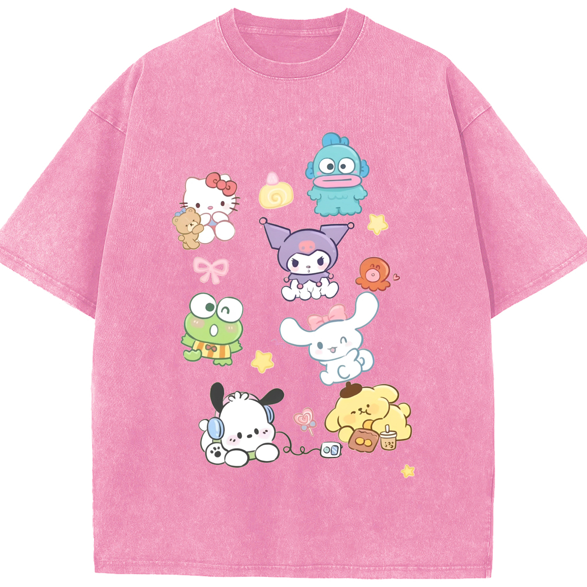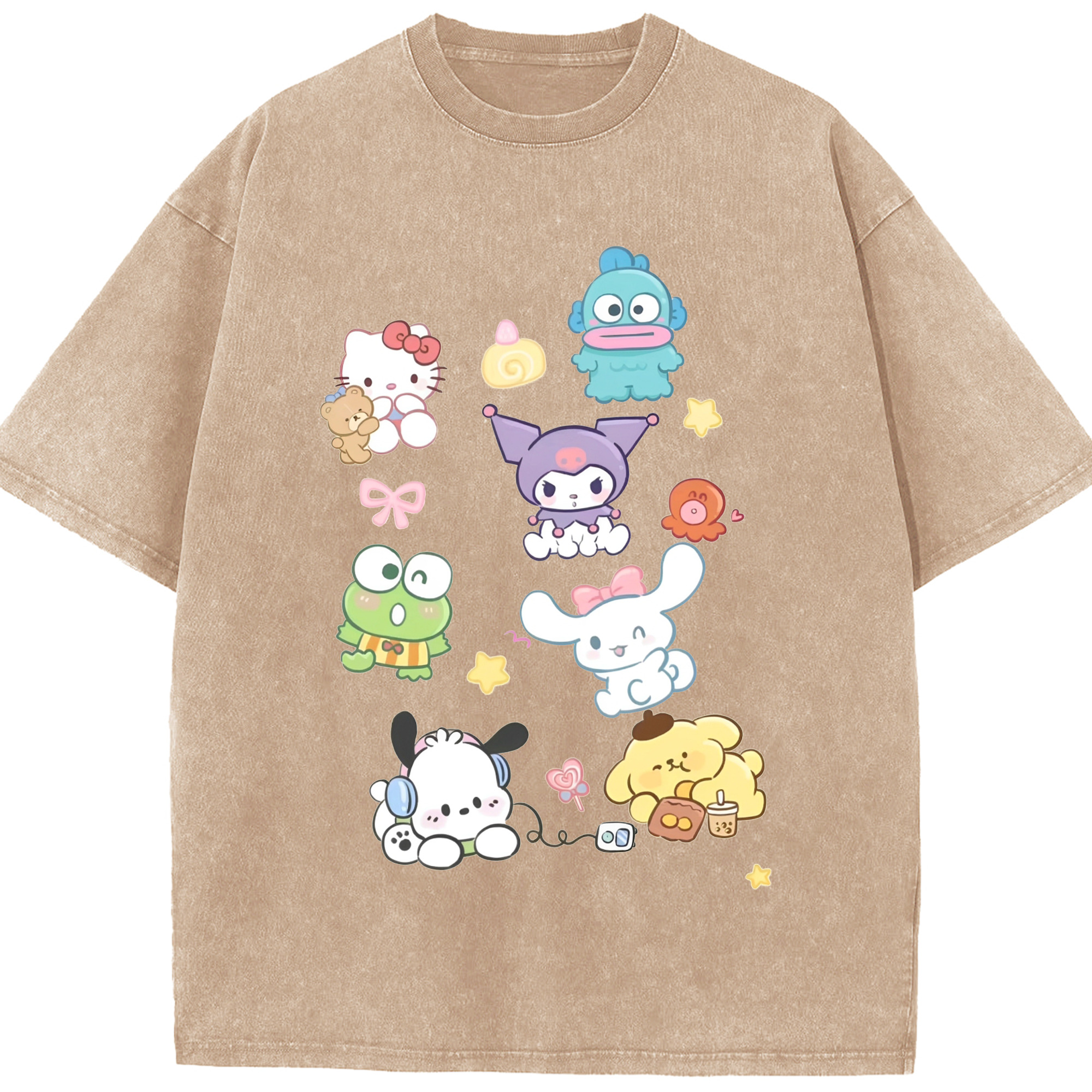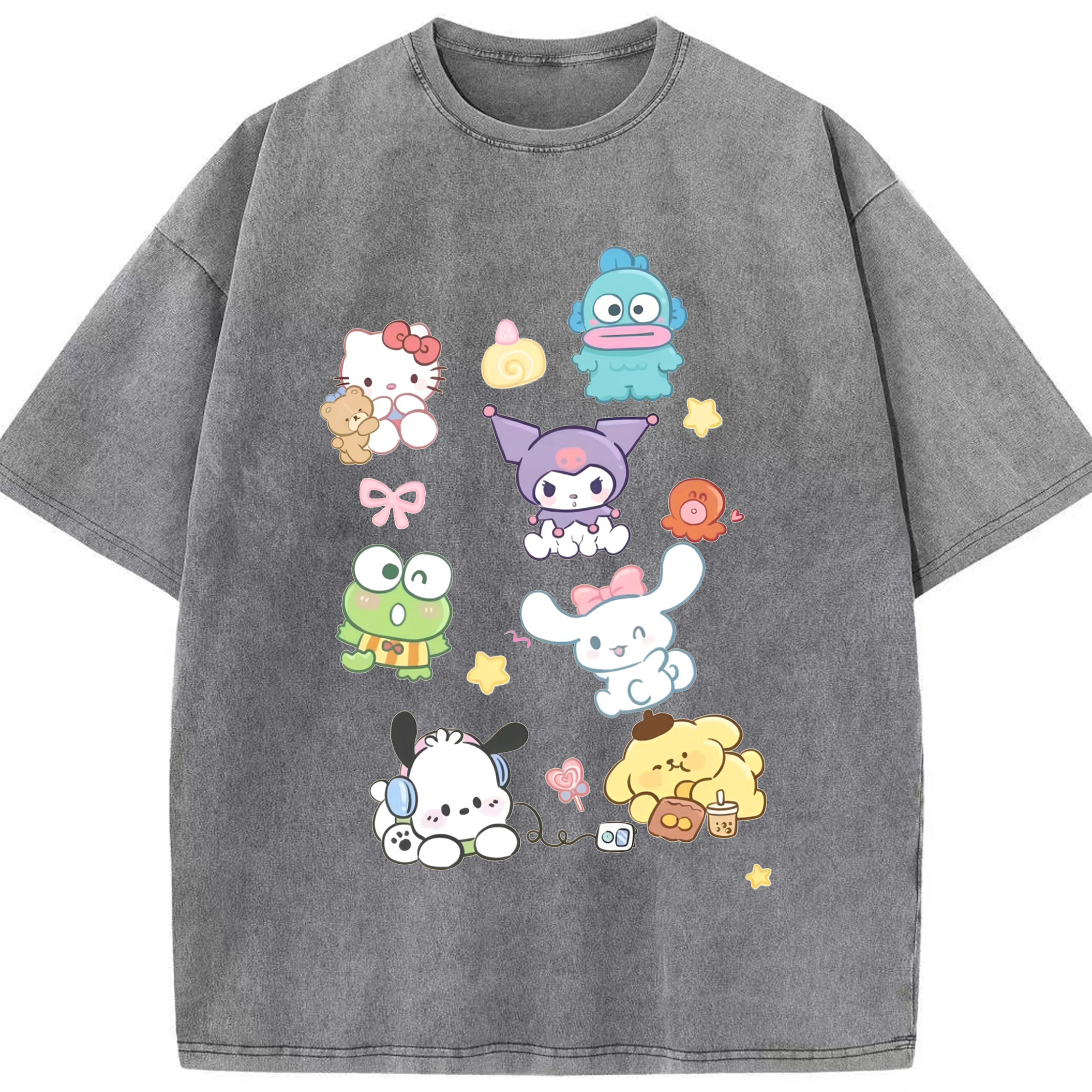 毎日着たい♪カジュアルサンリオ - 綿100% ヴィンテージ風 半袖Tシャツ ・ フロントプリント ・ 柔らか肌触り ・ 通気性 快適 ・ スポーツ カジュアル 外出用