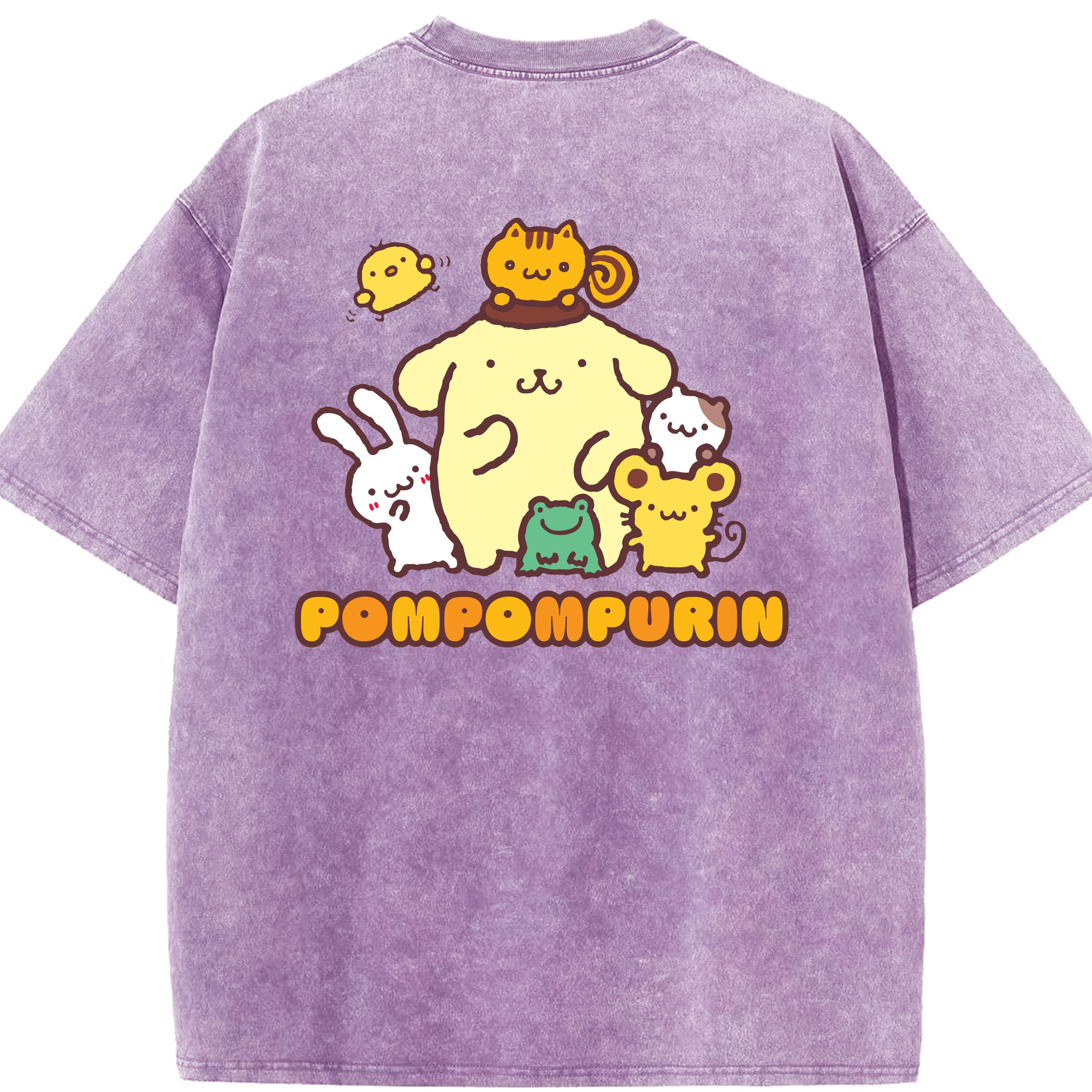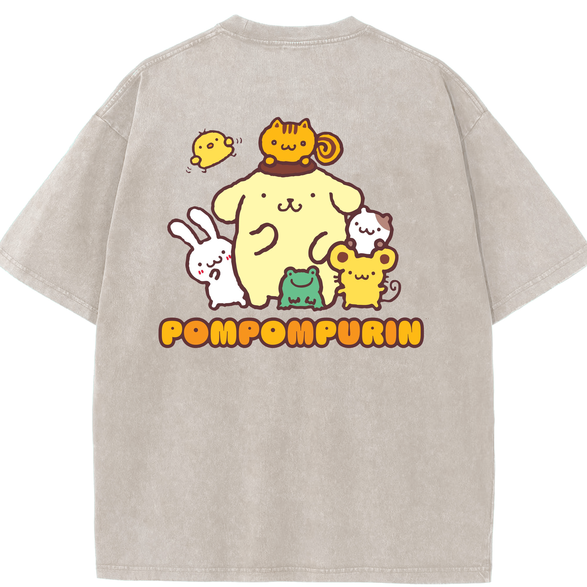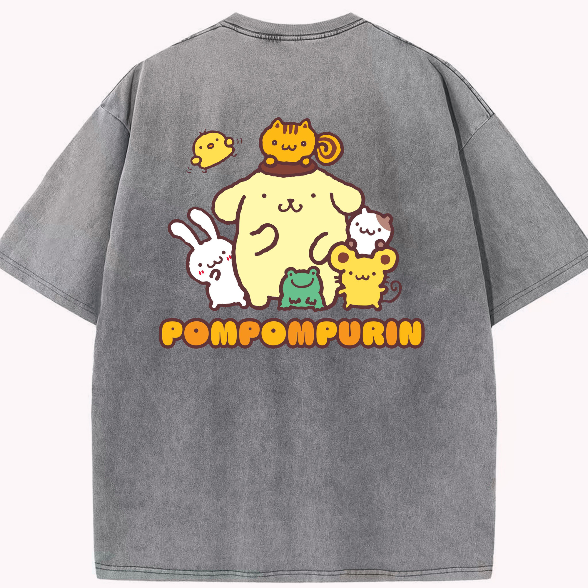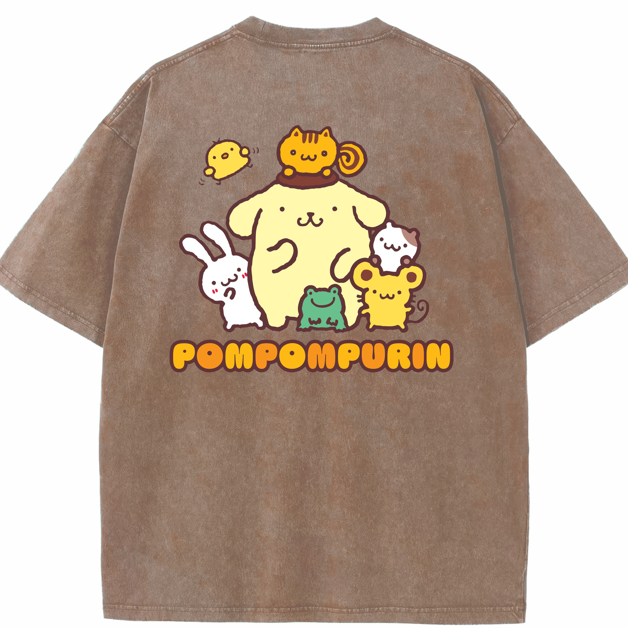 サンリオポチャッコ - 綿100% ヴィンテージ風 半袖Tシャツ ・ 背面プリント ・ 柔らか肌触り ・ 通気性 快適 ・ スポーツ カジュアル 外出用
