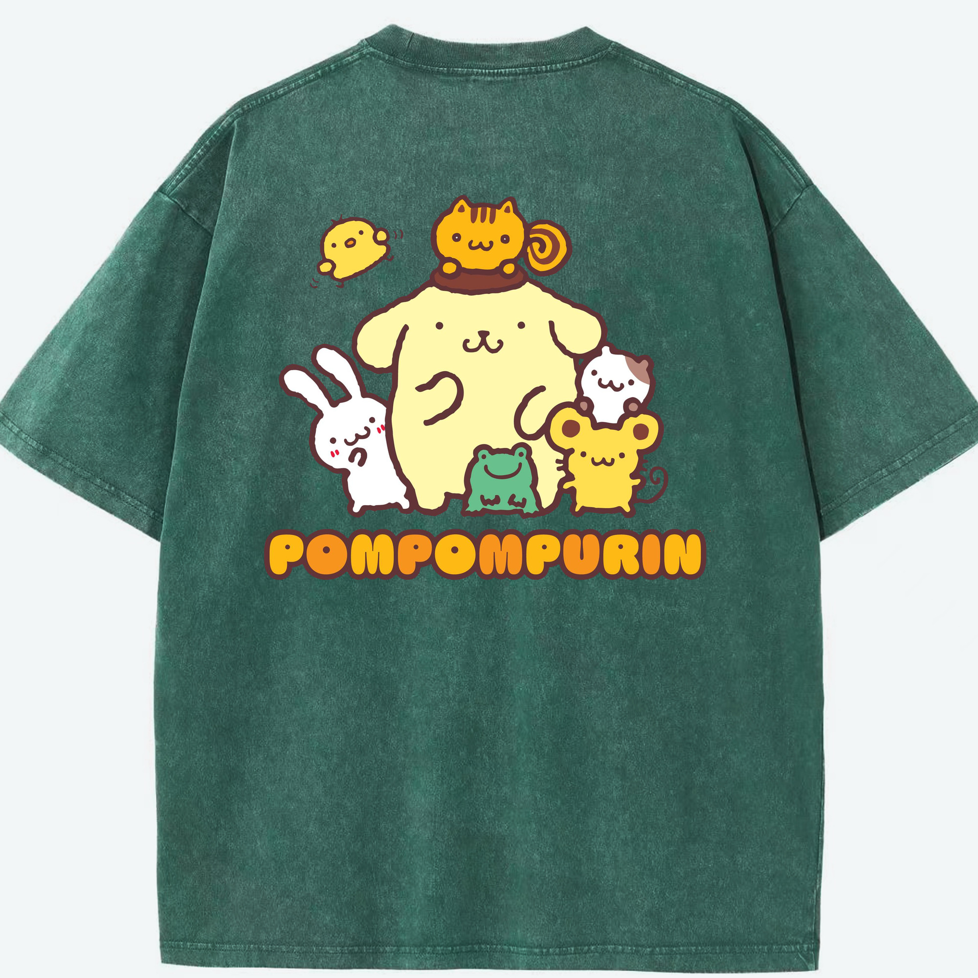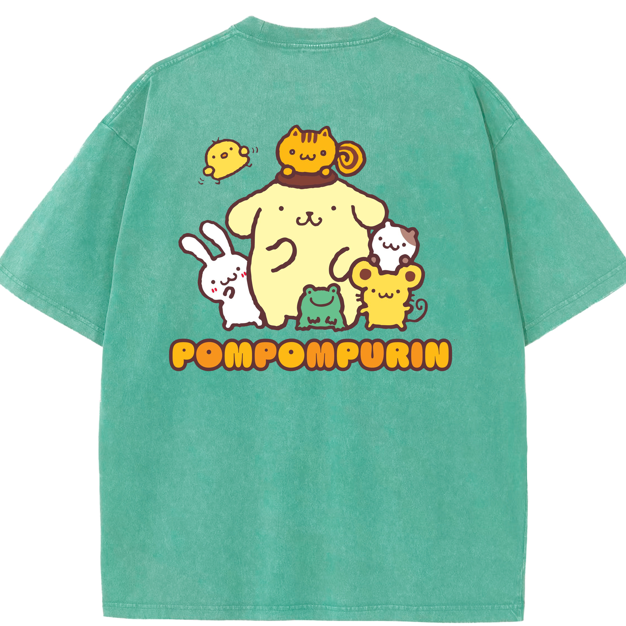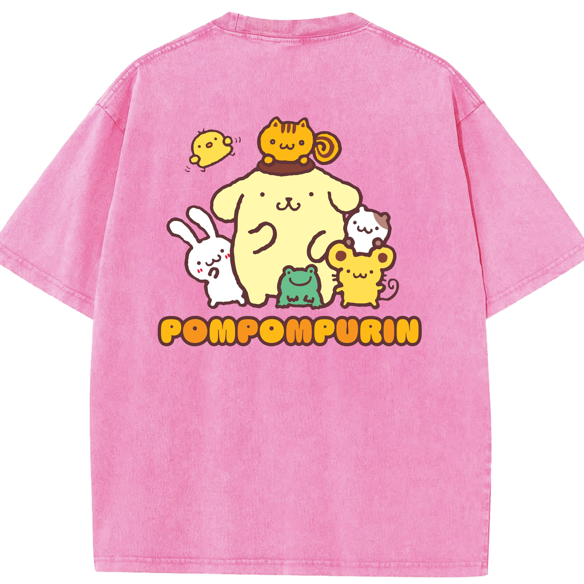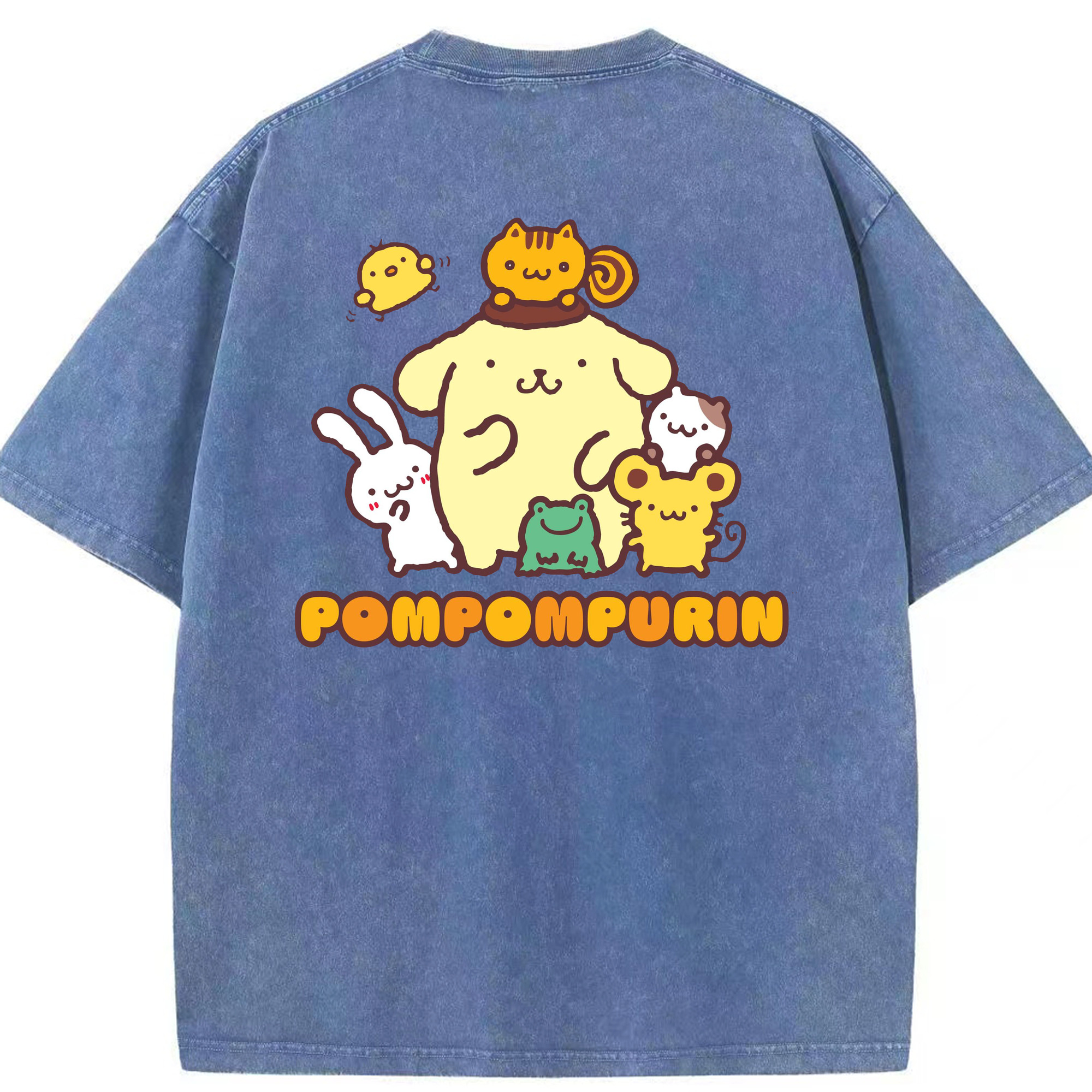 サンリオポチャッコ - 綿100% ヴィンテージ風 半袖Tシャツ ・ 背面プリント ・ 柔らか肌触り ・ 通気性 快適 ・ スポーツ カジュアル 外出用