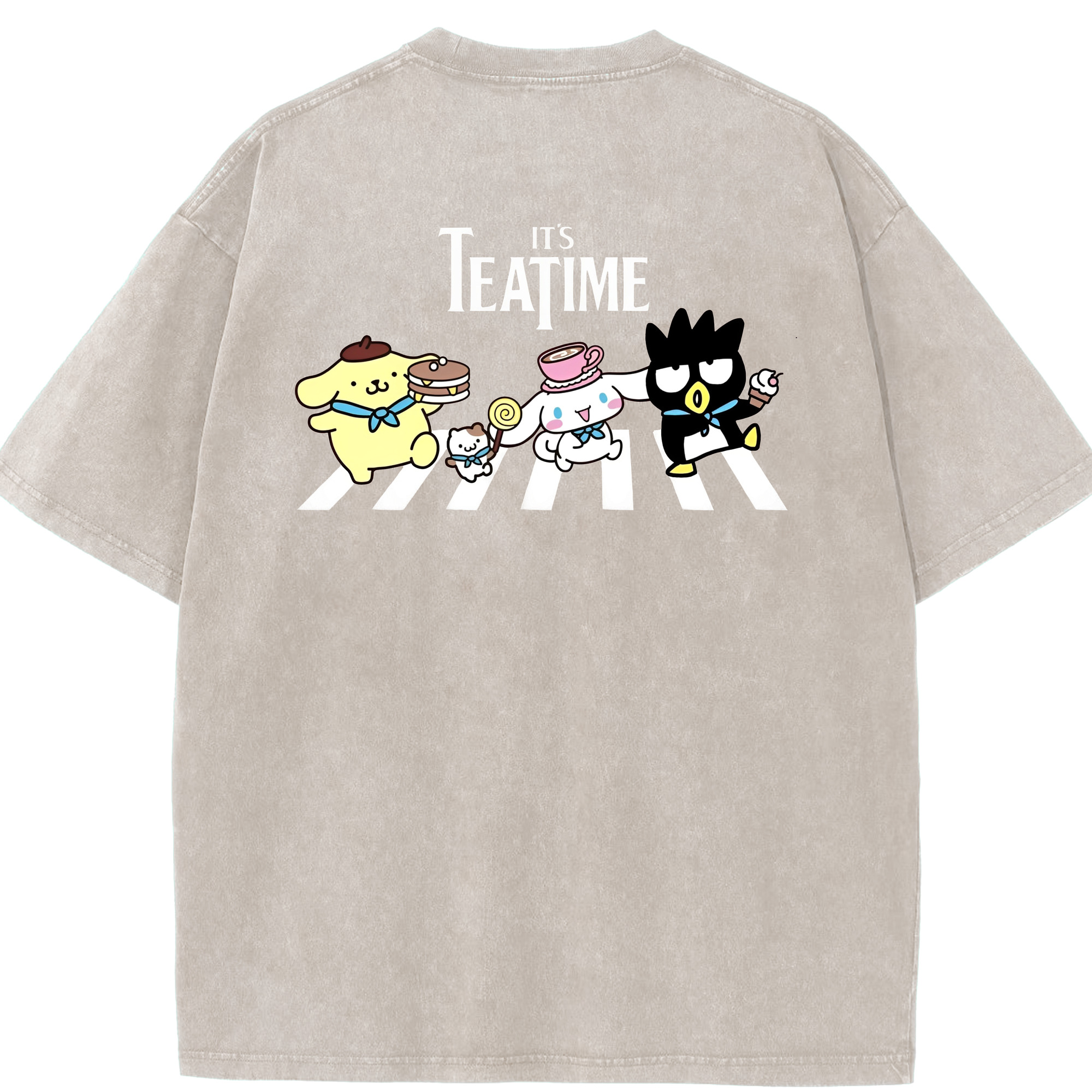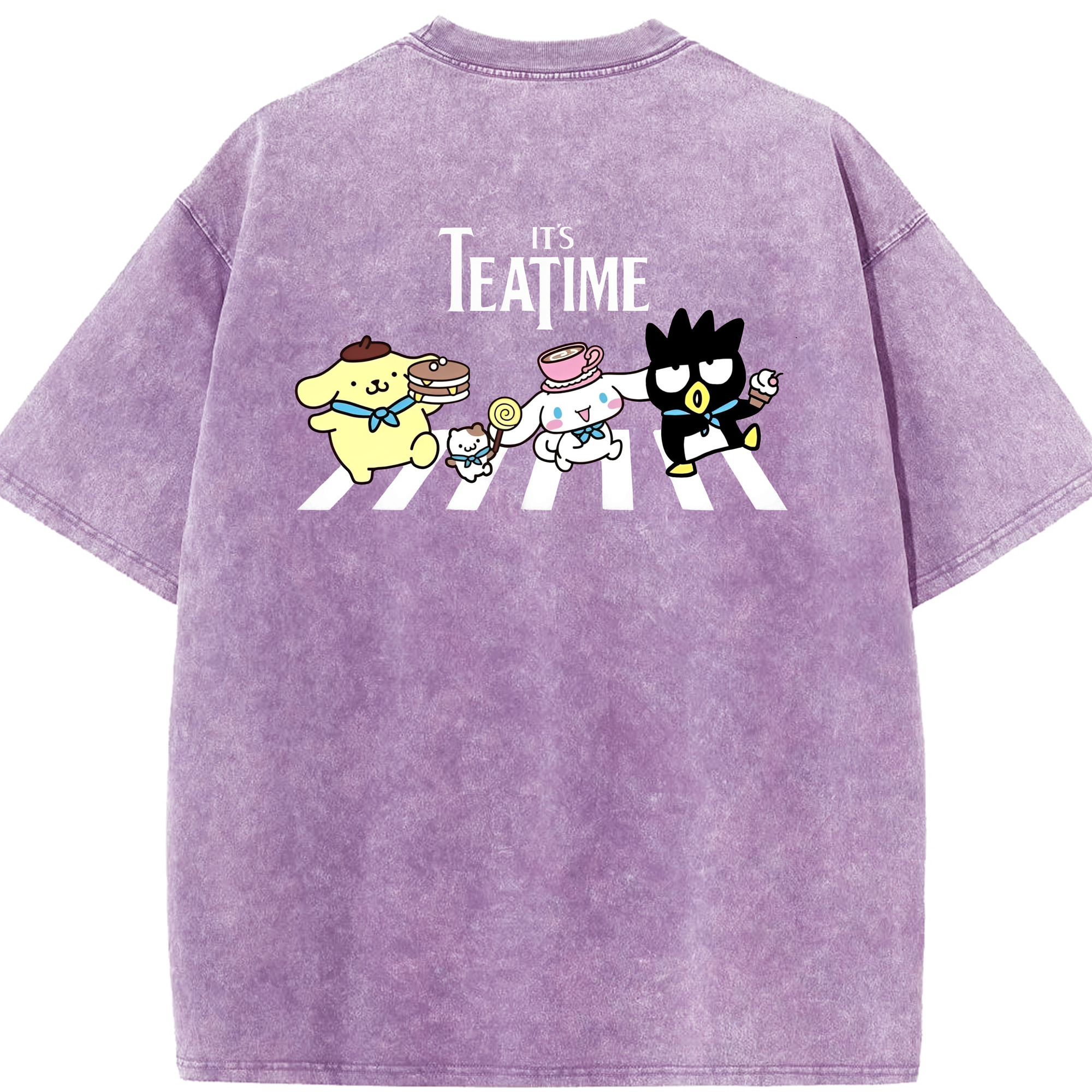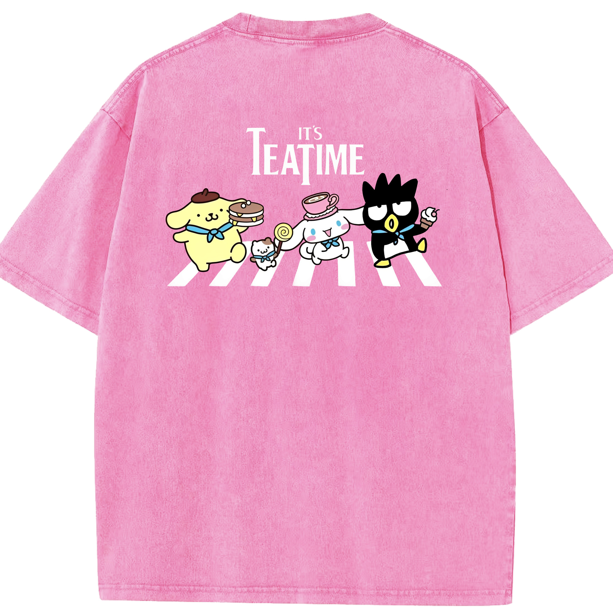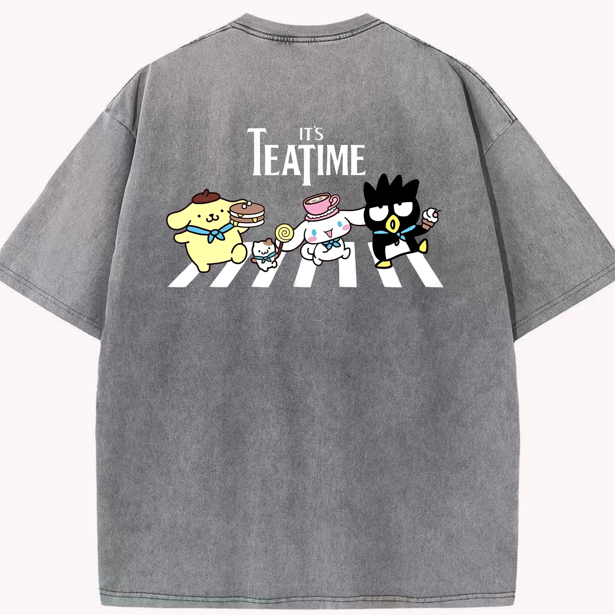 とってもかわいいサンリオファミリー - 綿100% ヴィンテージ風 半袖Tシャツ ・ 背面プリント ・ 柔らか肌触り ・ 通気性 快適 ・ スポーツ カジュアル 外出用