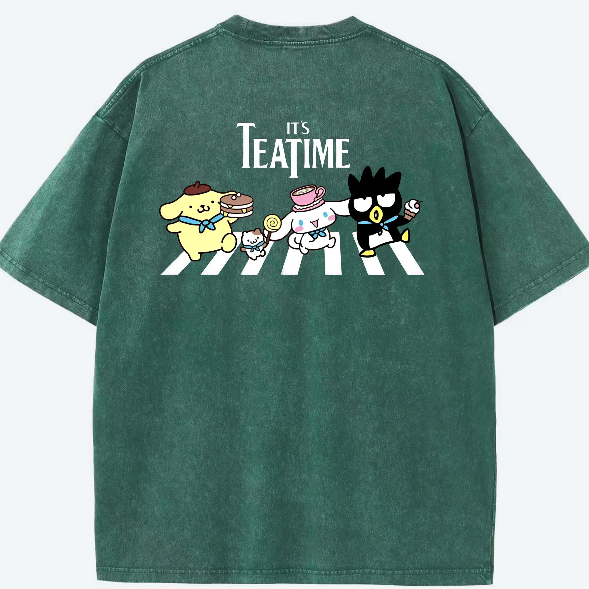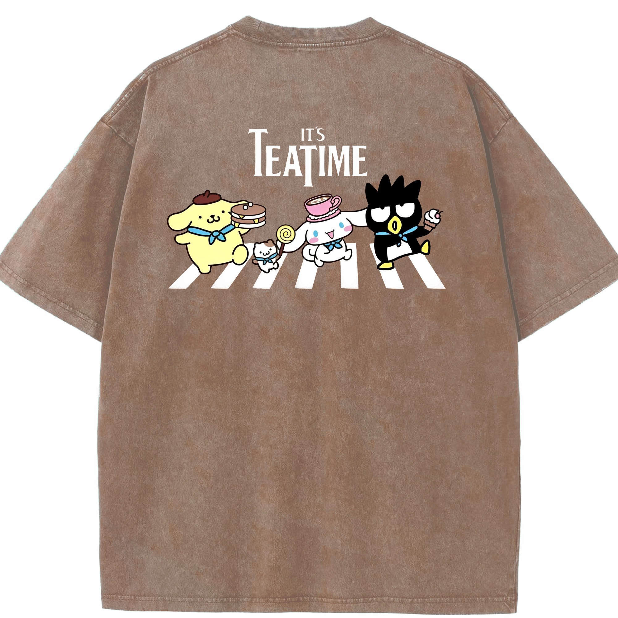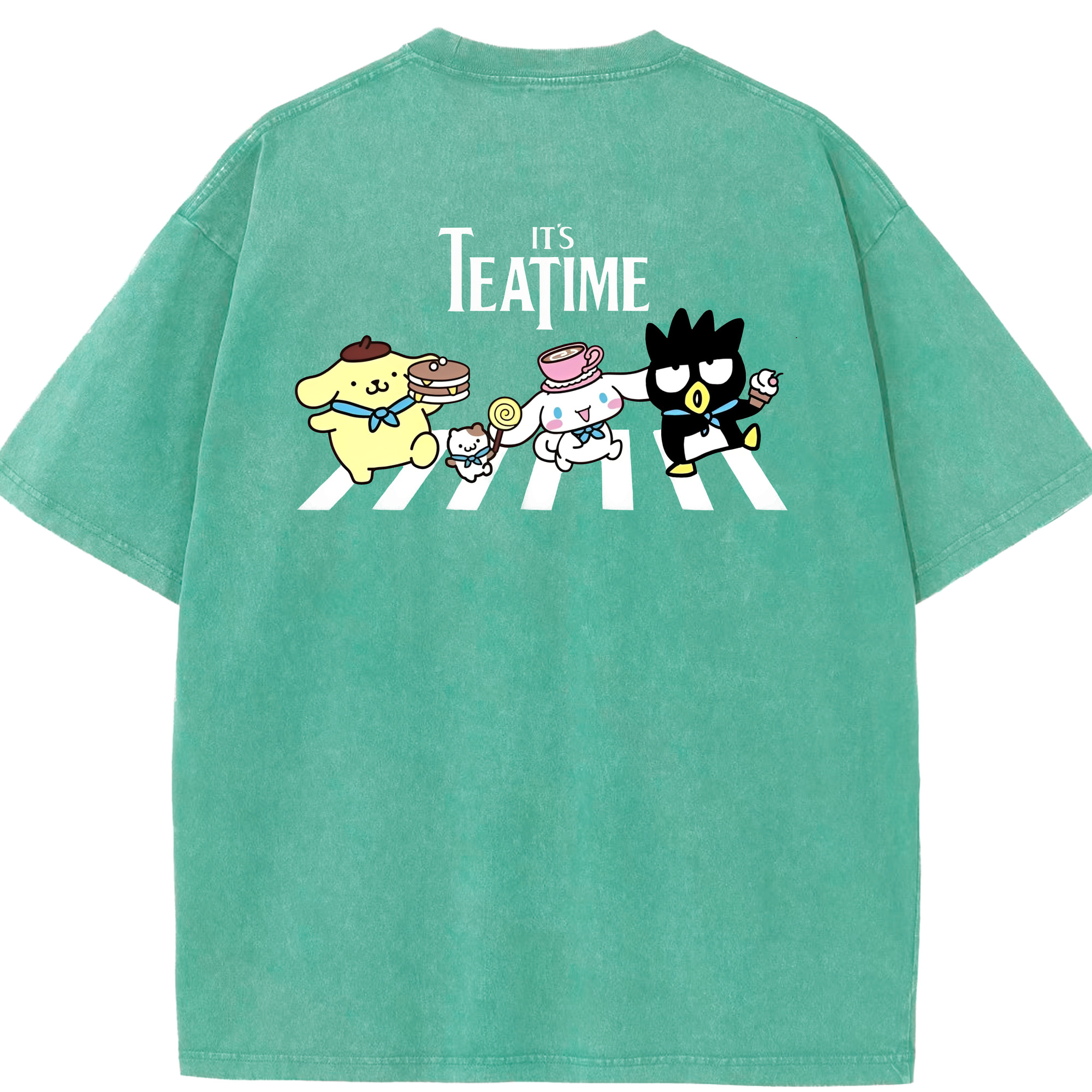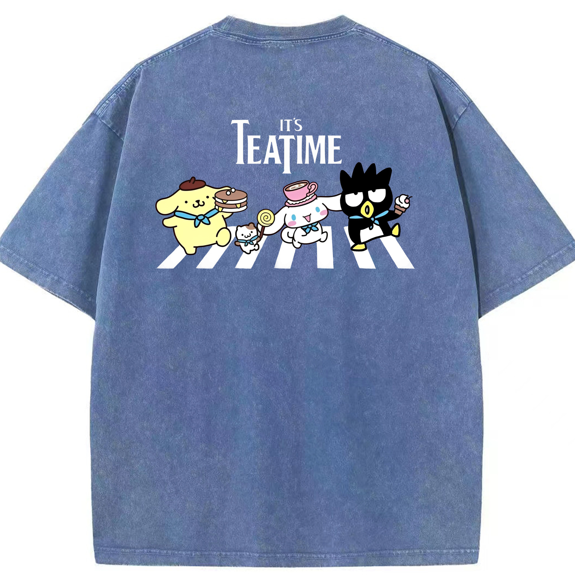 とってもかわいいサンリオファミリー - 綿100% ヴィンテージ風 半袖Tシャツ ・ 背面プリント ・ 柔らか肌触り ・ 通気性 快適 ・ スポーツ カジュアル 外出用