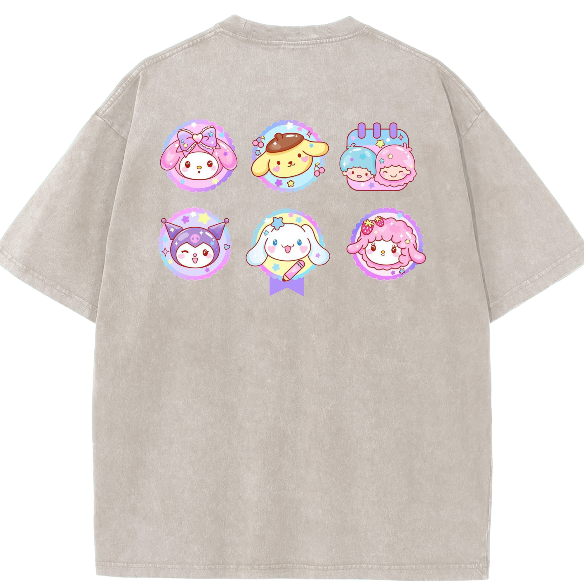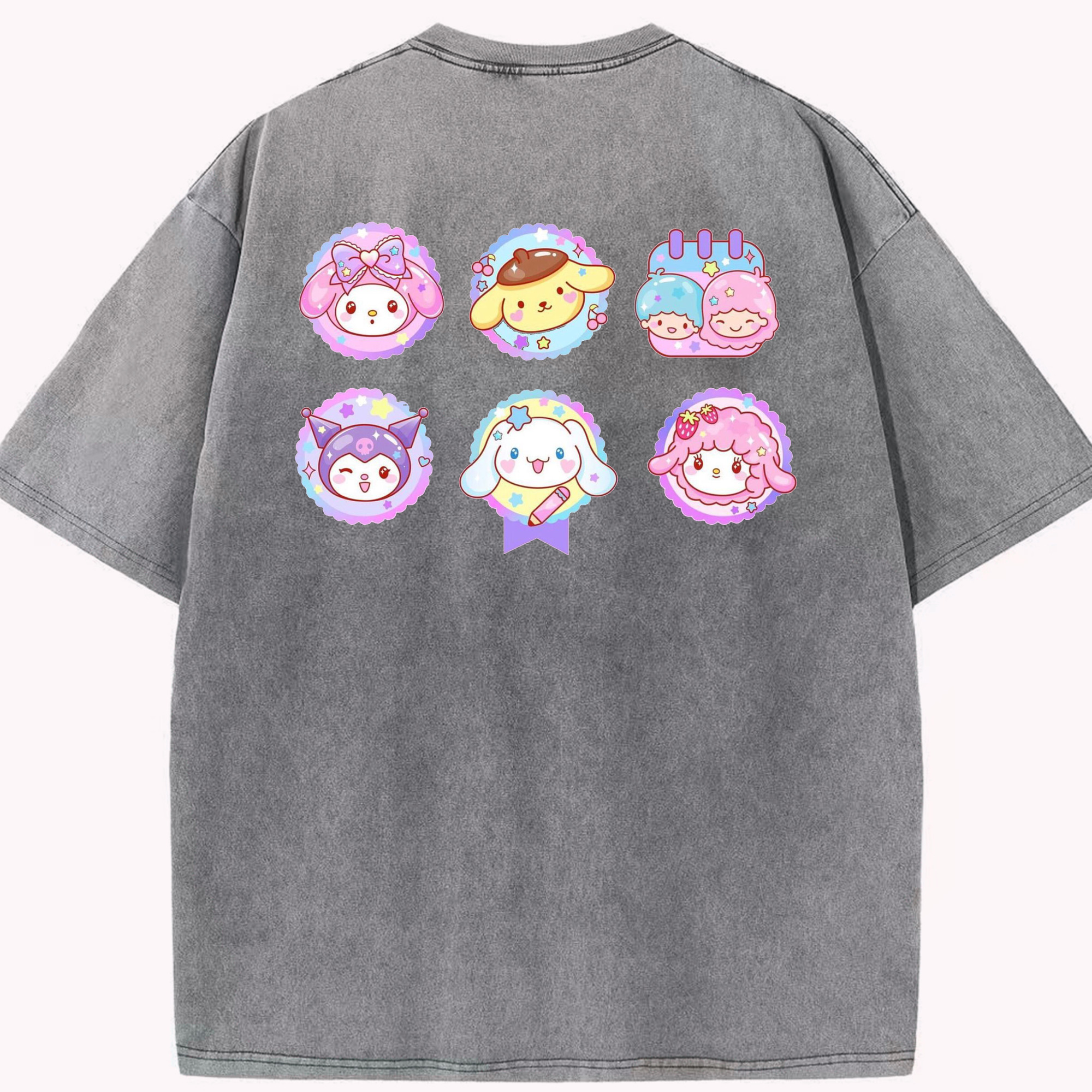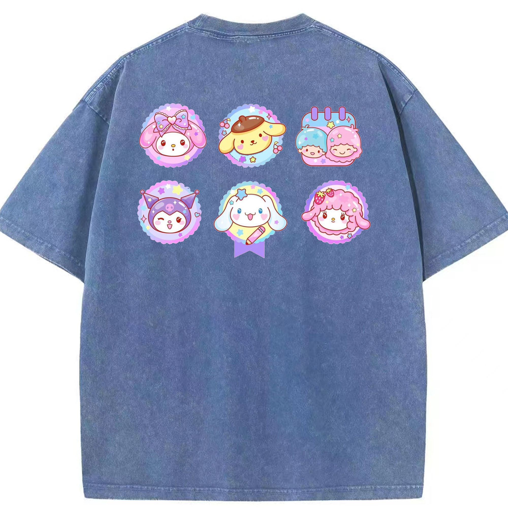 サンリオファミリー - 綿100% ヴィンテージ風 半袖Tシャツ ・ 背面プリント ・ 柔らか肌触り ・ 通気性 快適 ・ スポーツ カジュアル 外出用