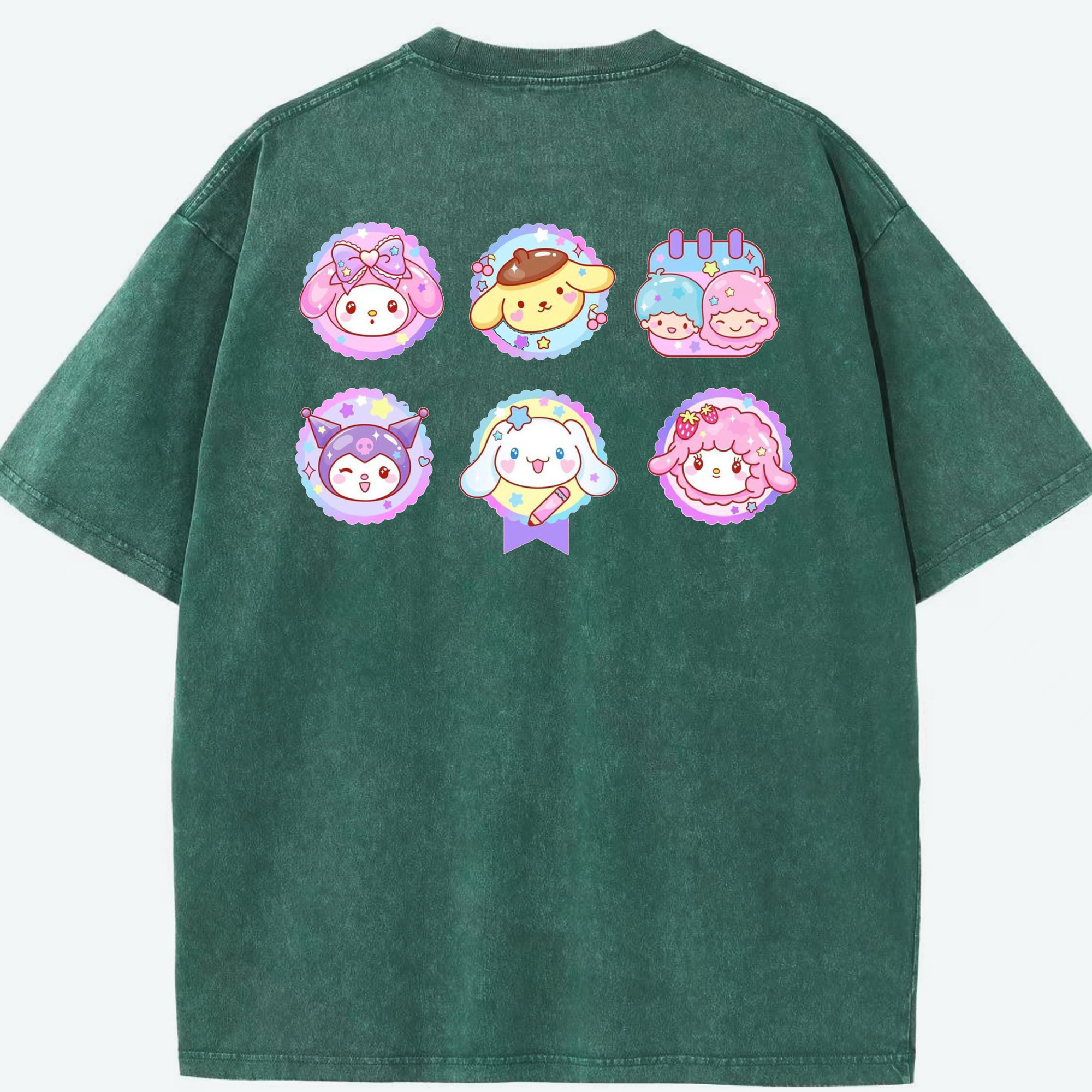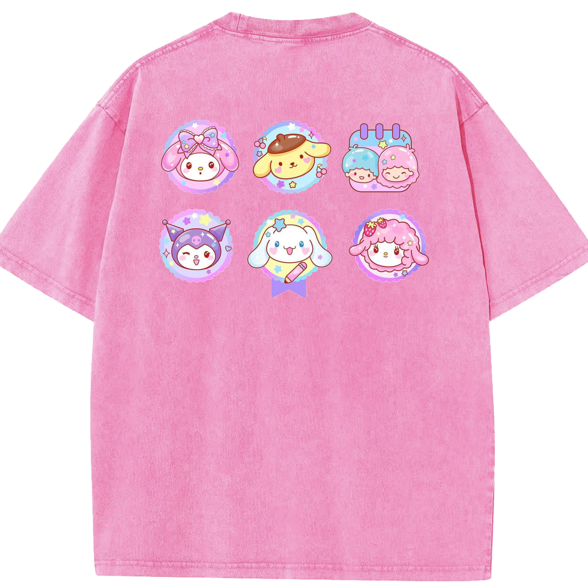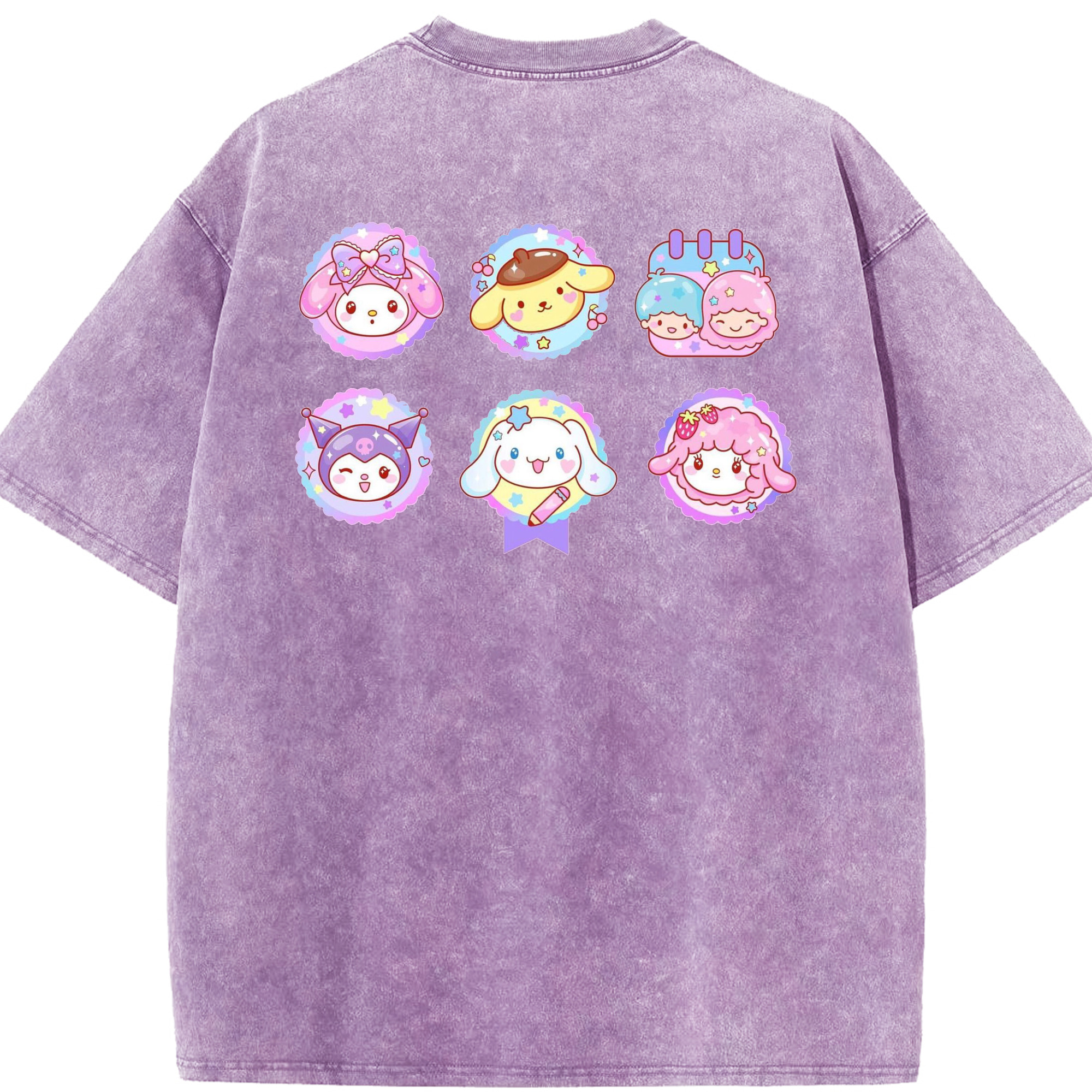 サンリオファミリー - 綿100% ヴィンテージ風 半袖Tシャツ ・ 背面プリント ・ 柔らか肌触り ・ 通気性 快適 ・ スポーツ カジュアル 外出用