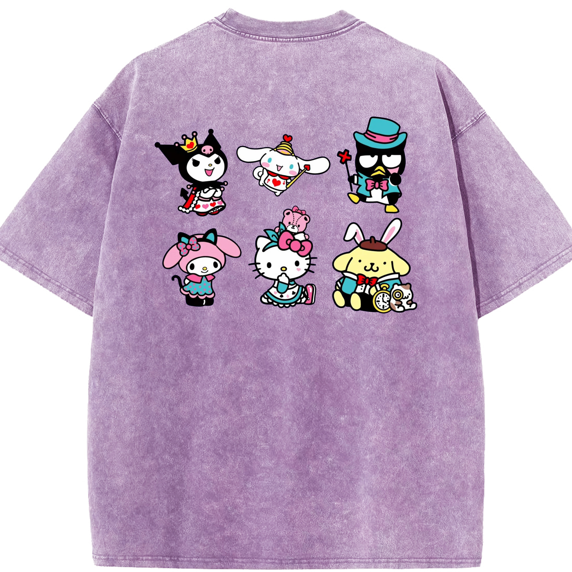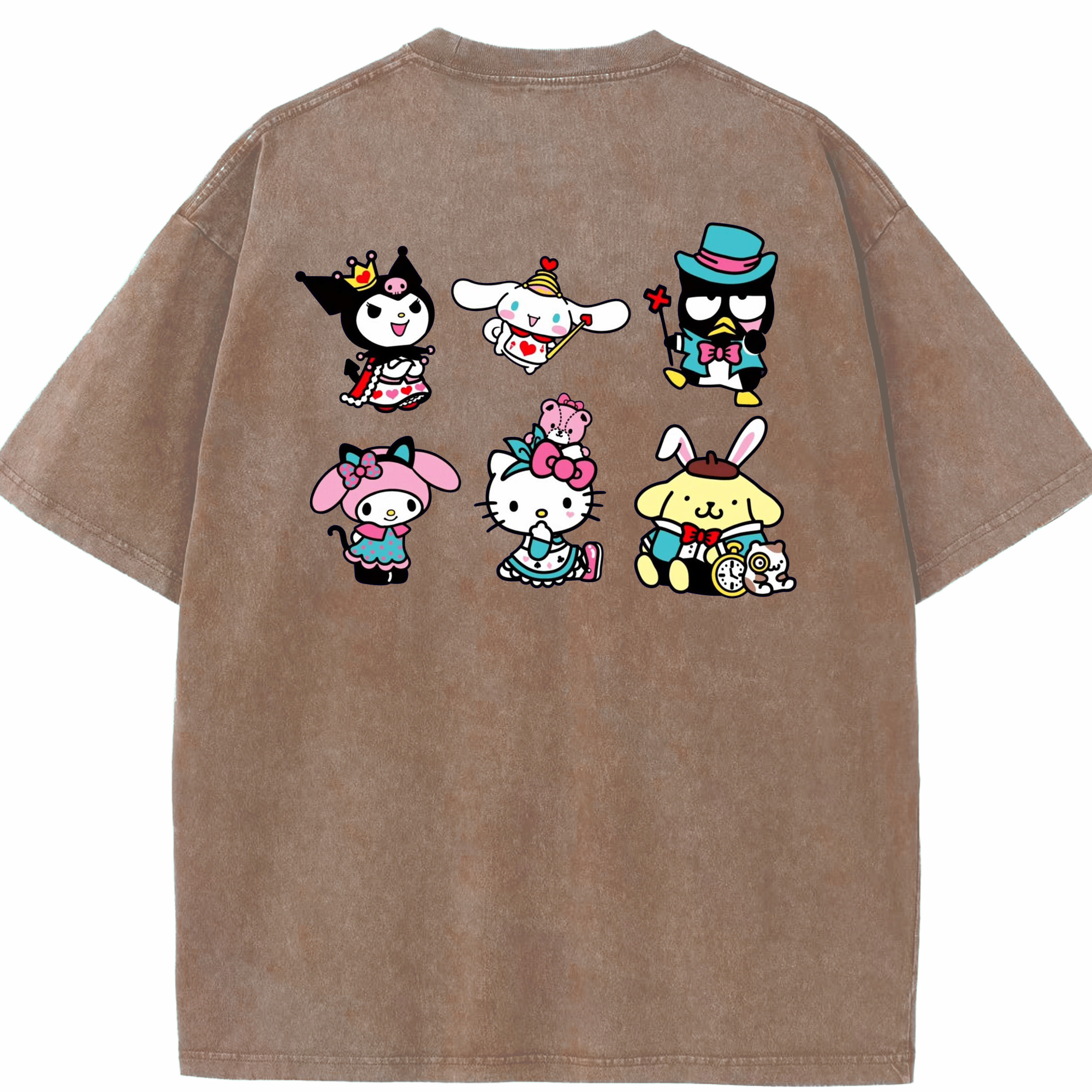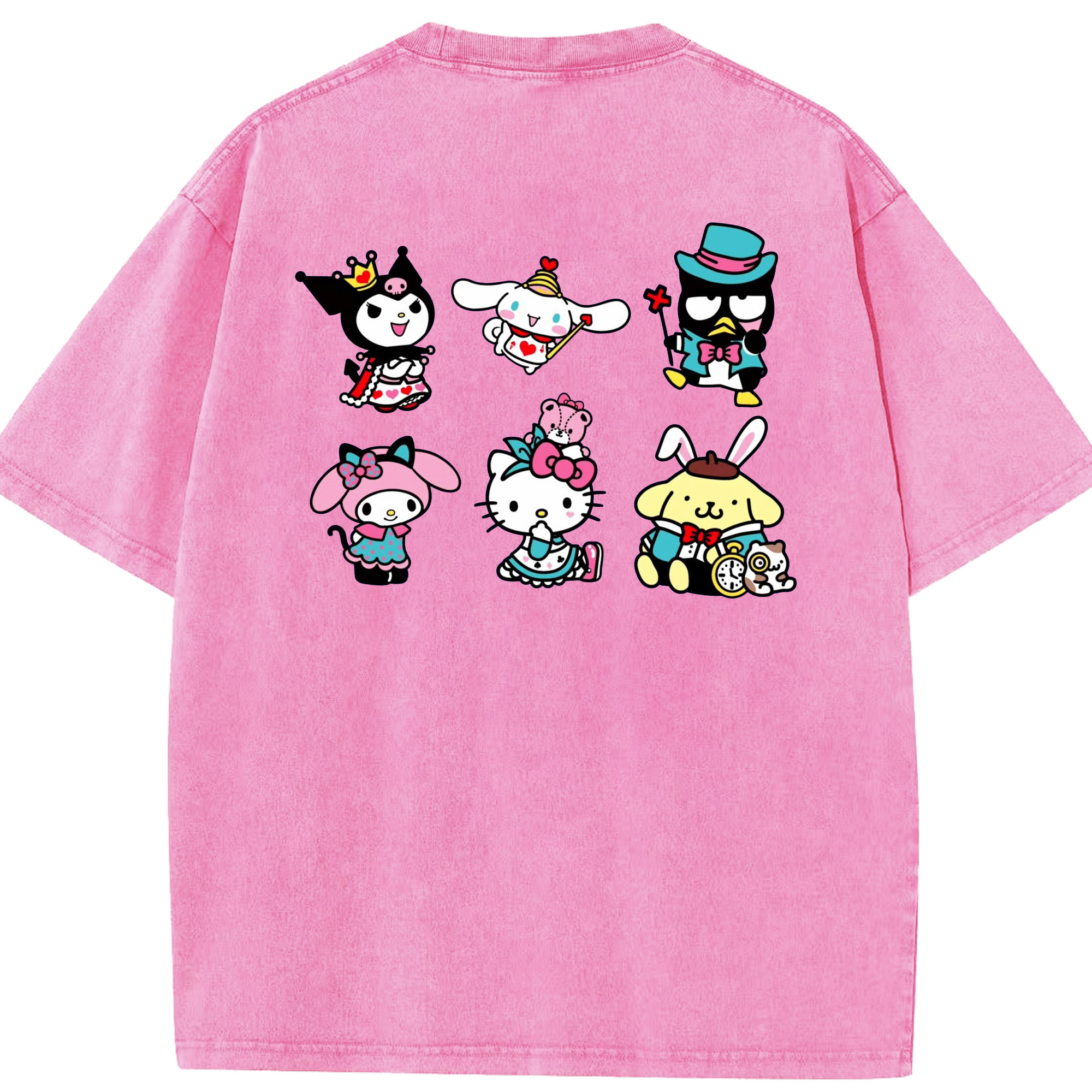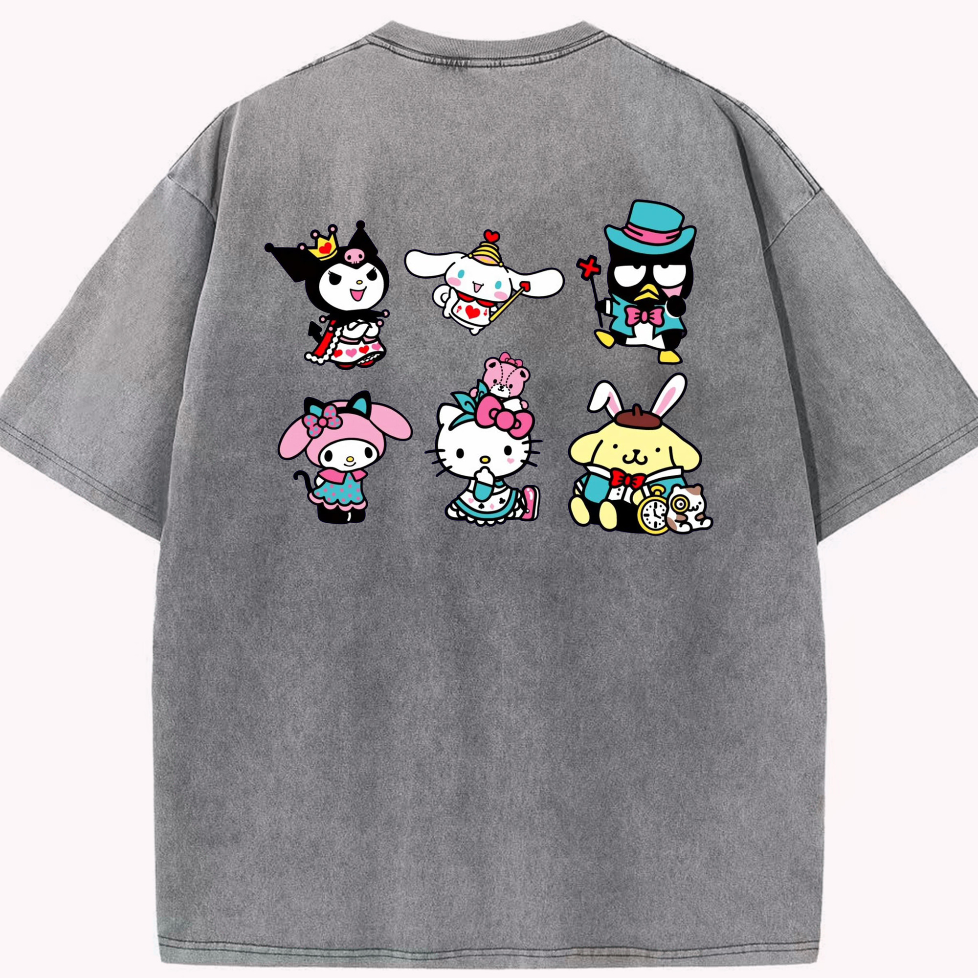 かわいい系サンリオ - 綿100% ヴィンテージ風 半袖Tシャツ ・ 背面プリント ・ 柔らか肌触り ・ 通気性 快適 ・ スポーツ カジュアル 外出用
