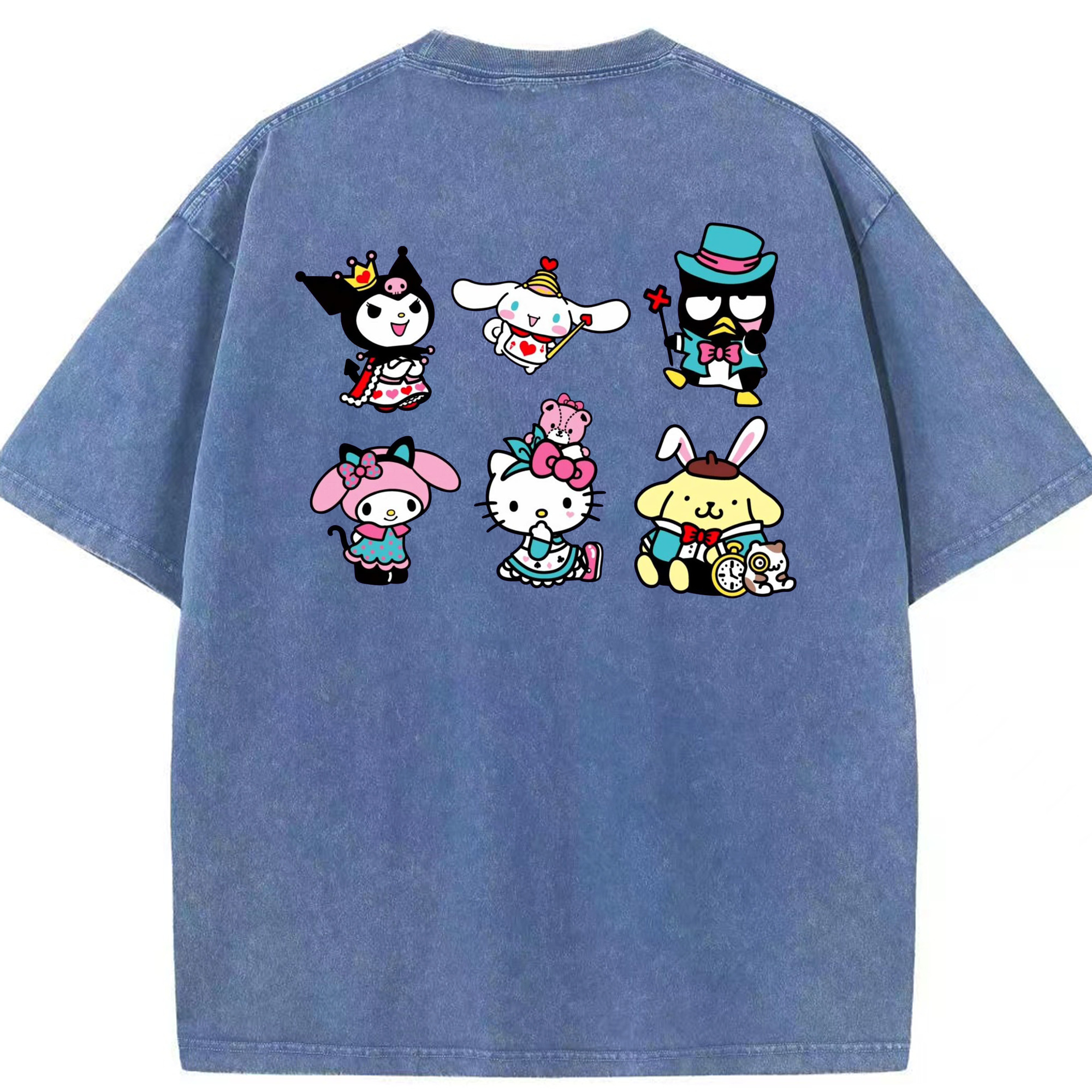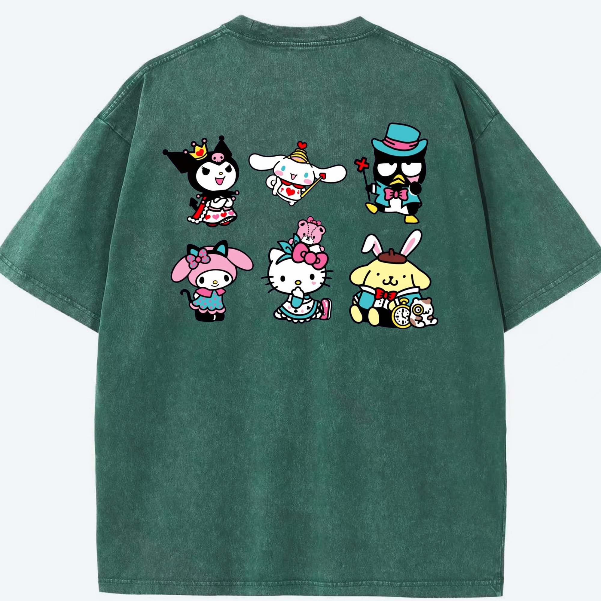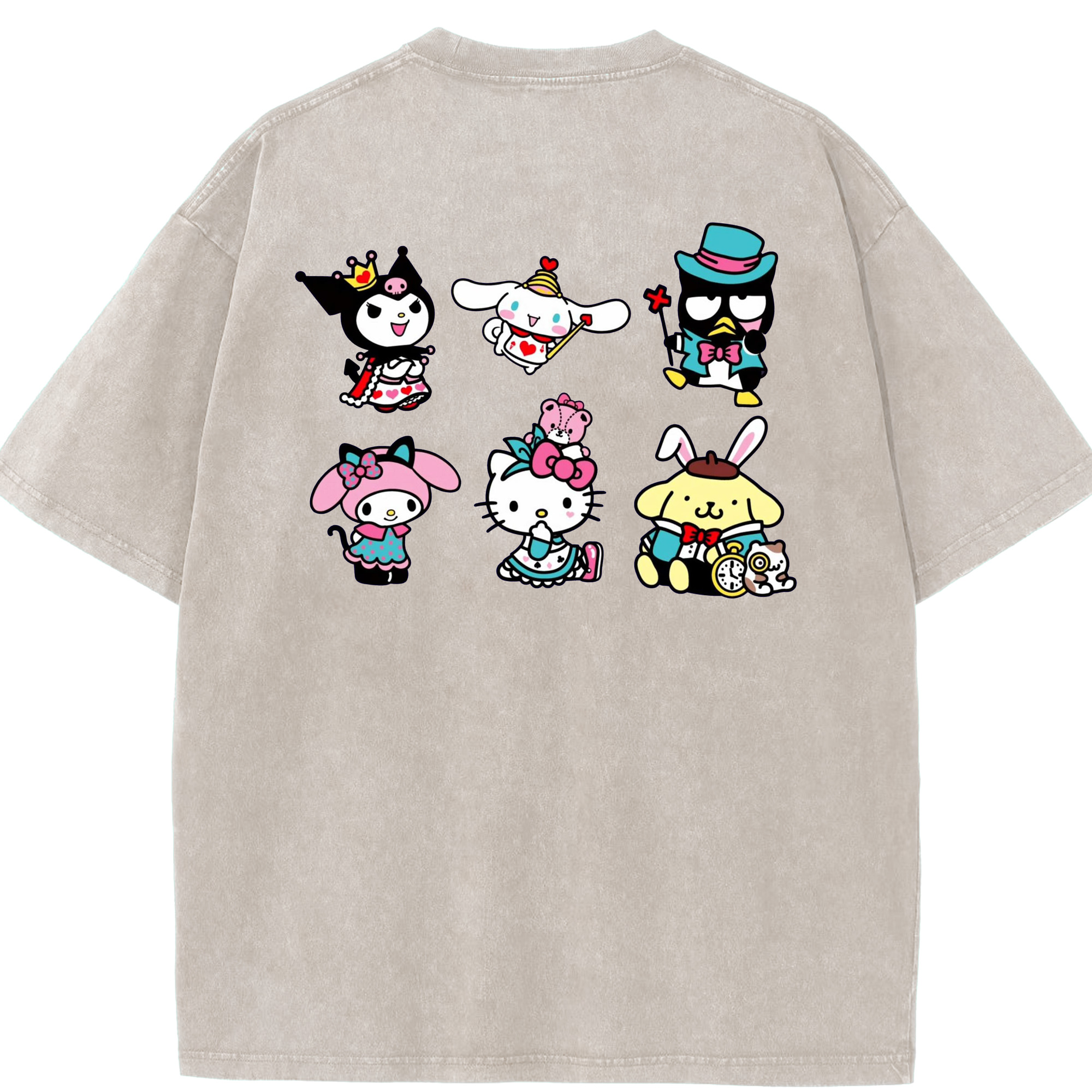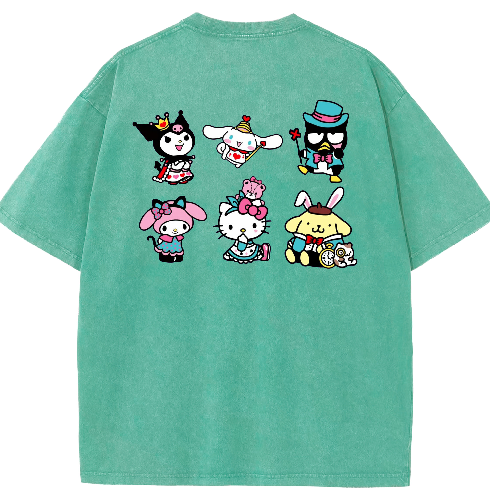 かわいい系サンリオ - 綿100% ヴィンテージ風 半袖Tシャツ ・ 背面プリント ・ 柔らか肌触り ・ 通気性 快適 ・ スポーツ カジュアル 外出用