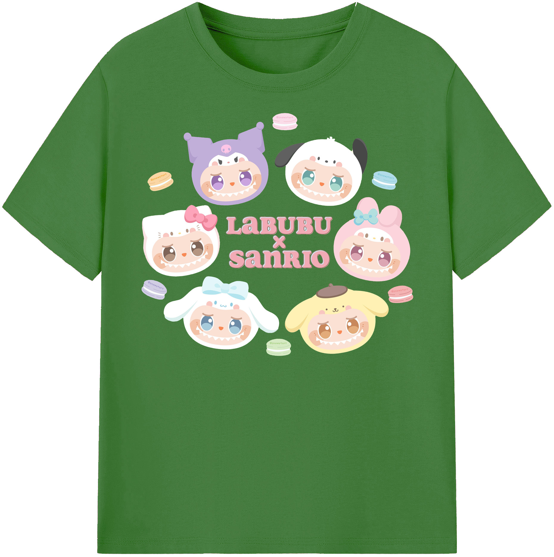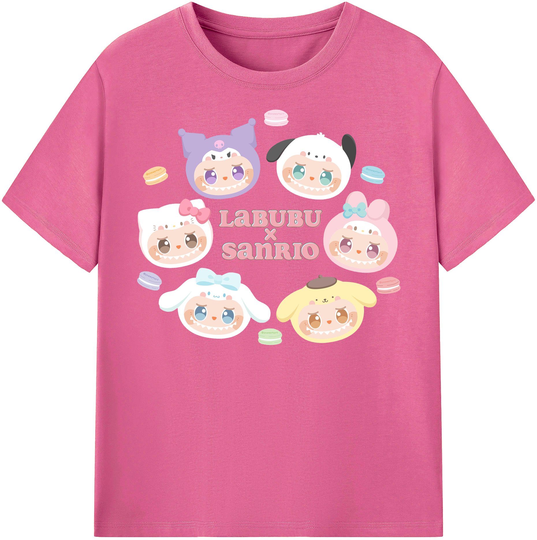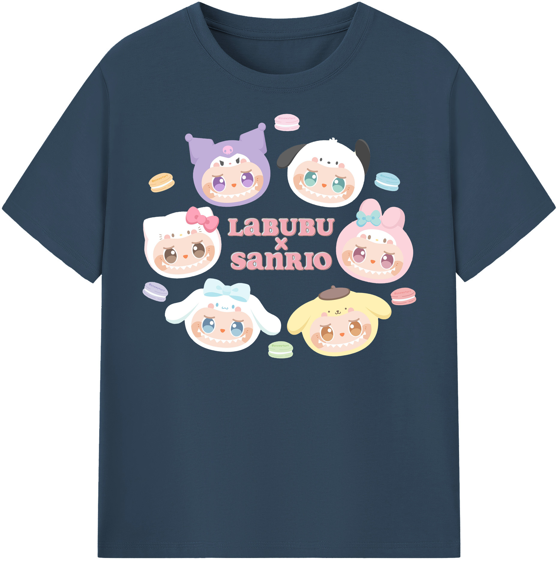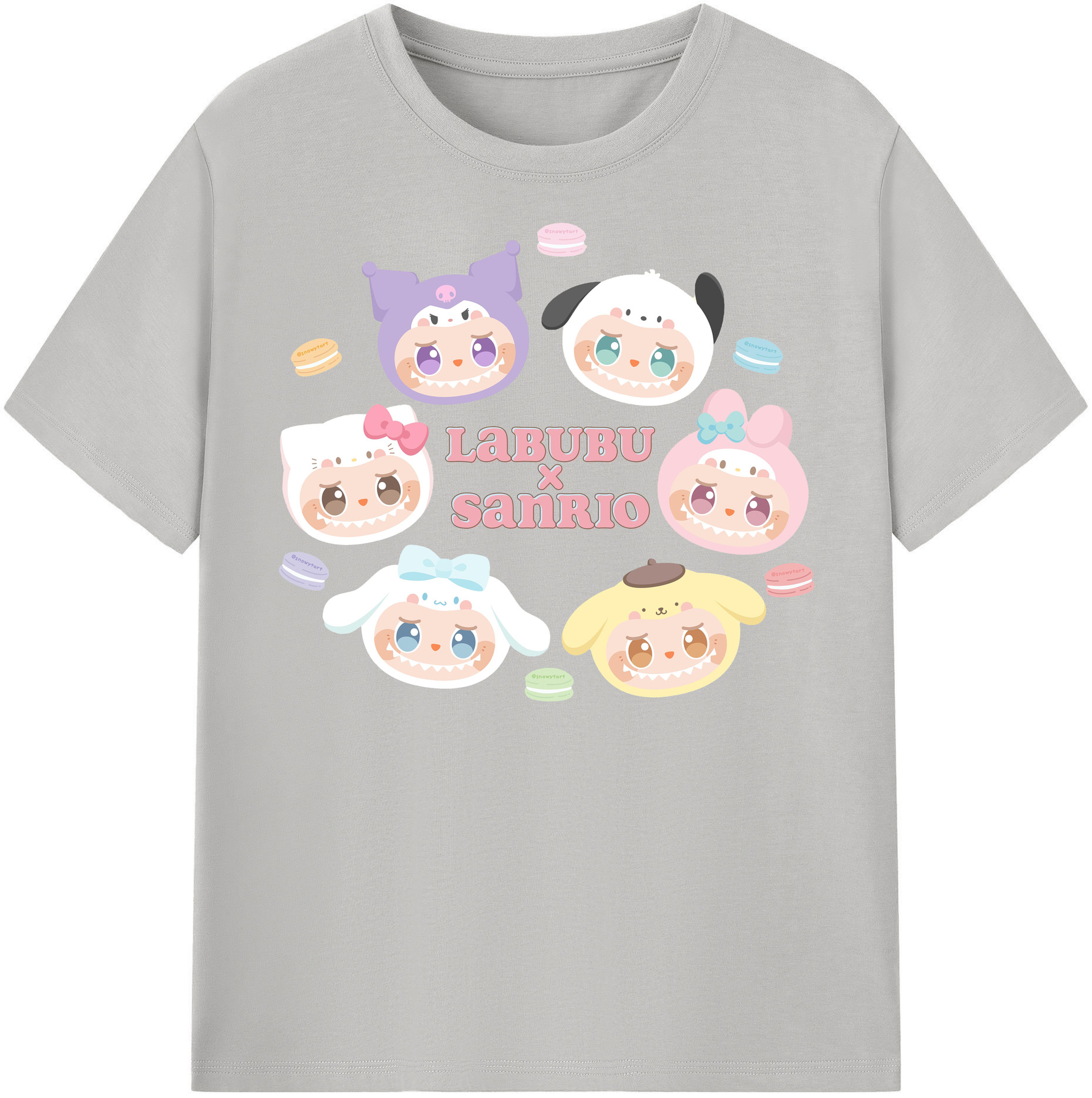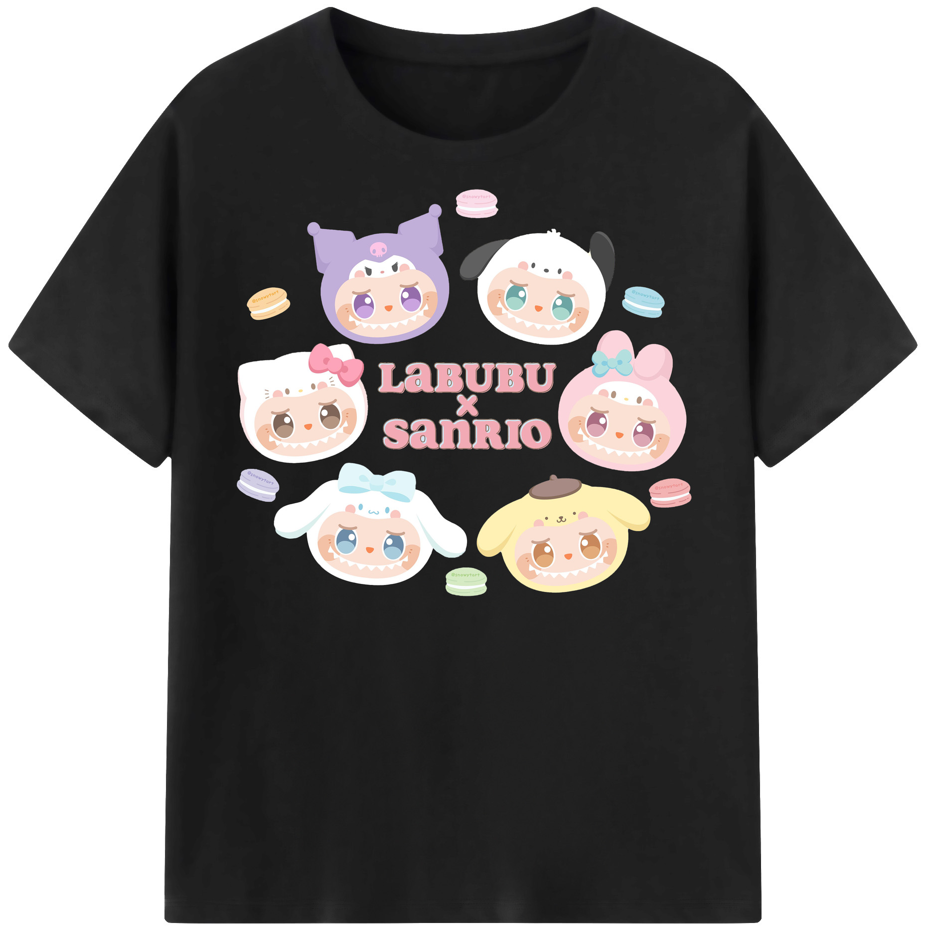 サンリオ&LABUBU ラブブ - レディースカジュアルプリントTシャツ ・ 綿100% ・ クルーネック ・ フロントプリント ・ 柔らかく快適 ・ フィットネス カジュアル 旅行用