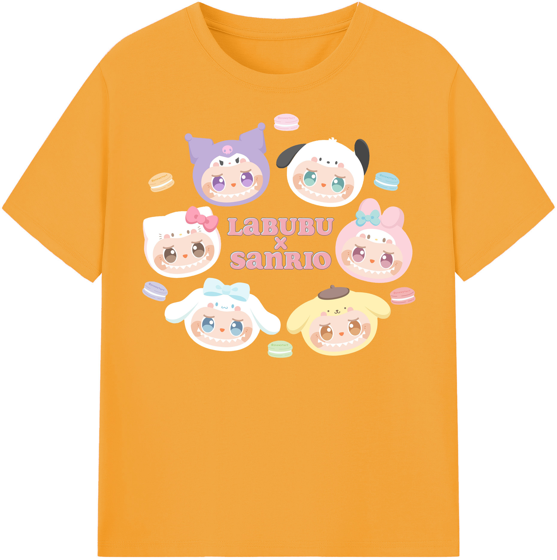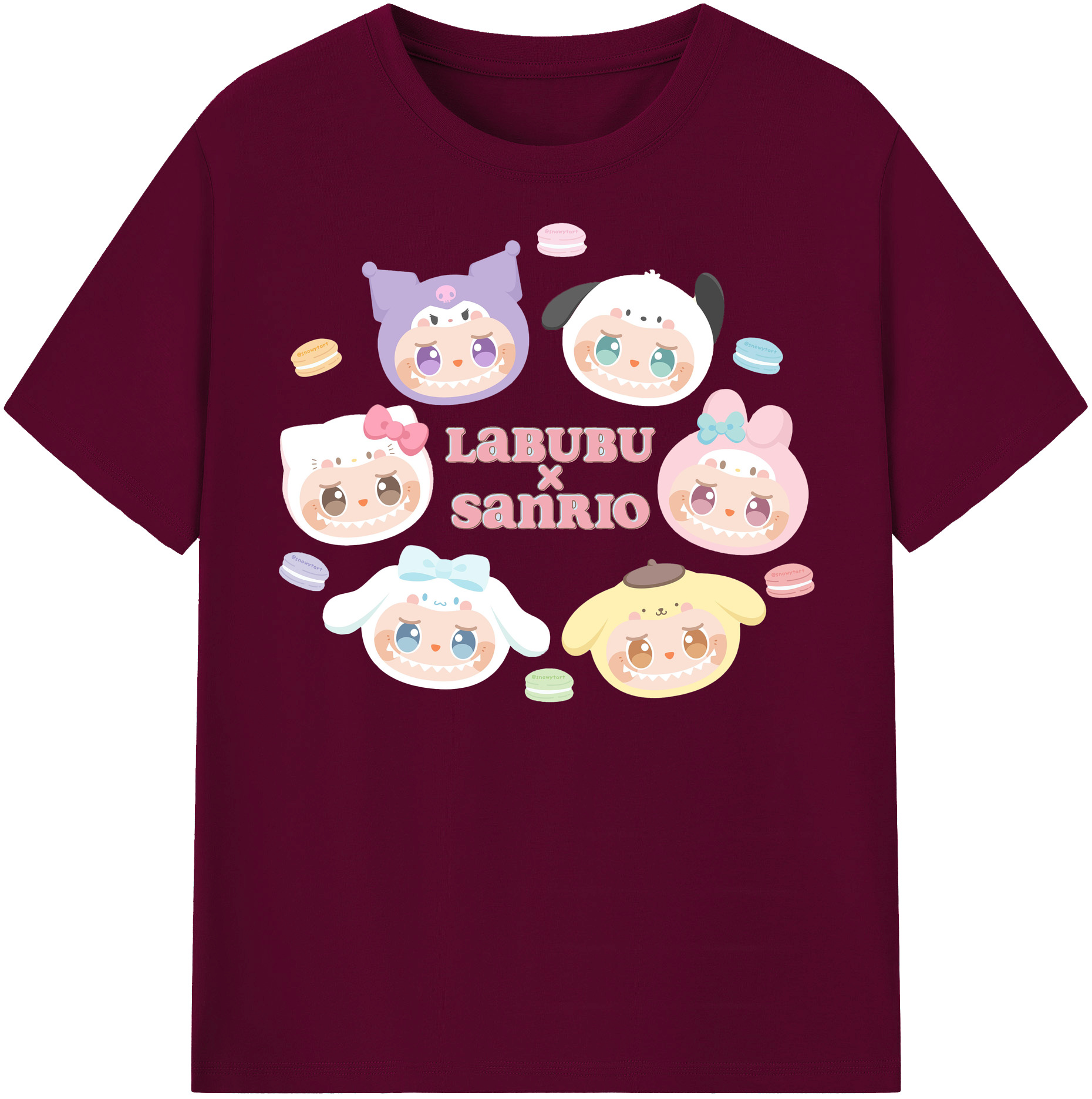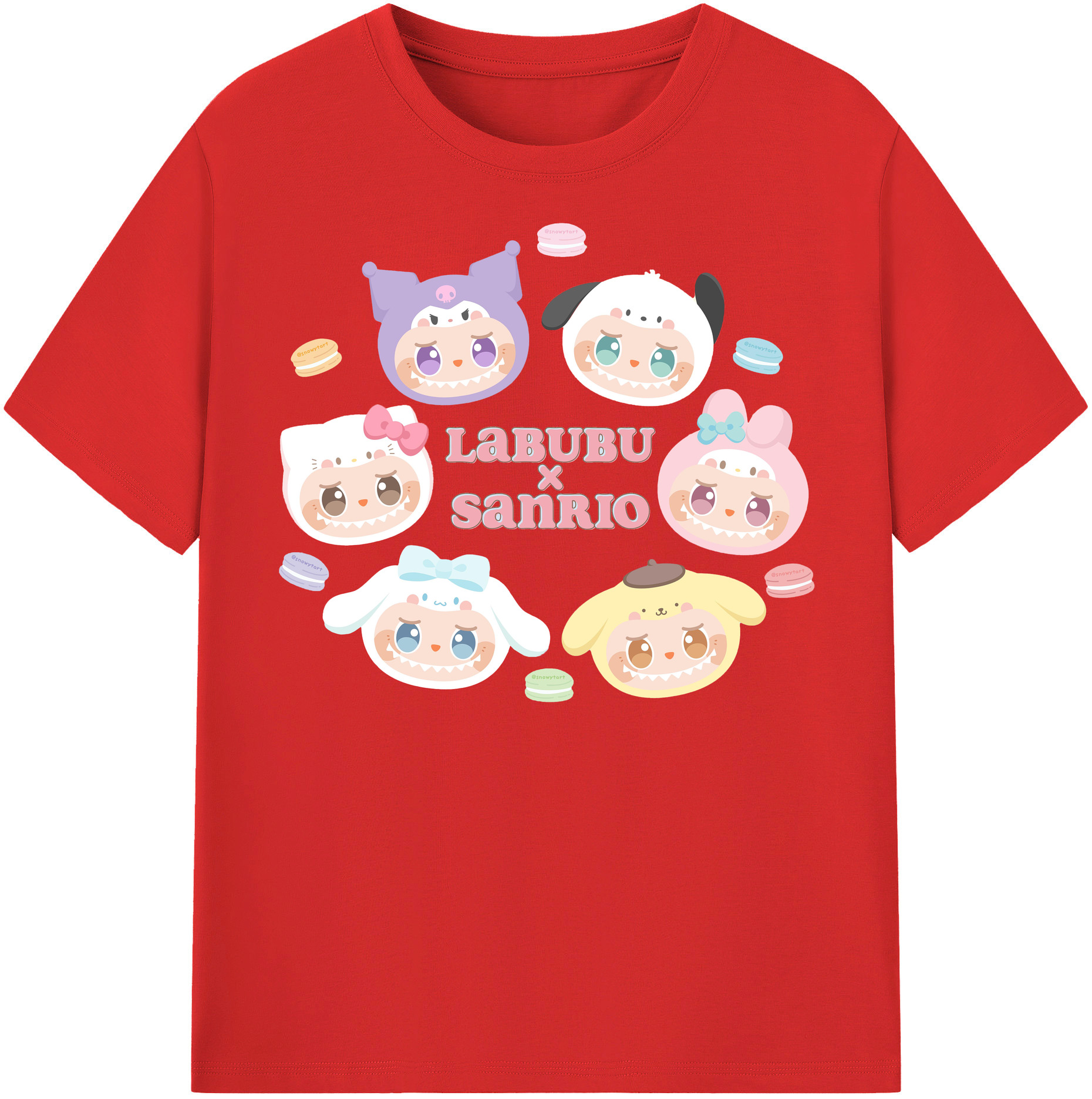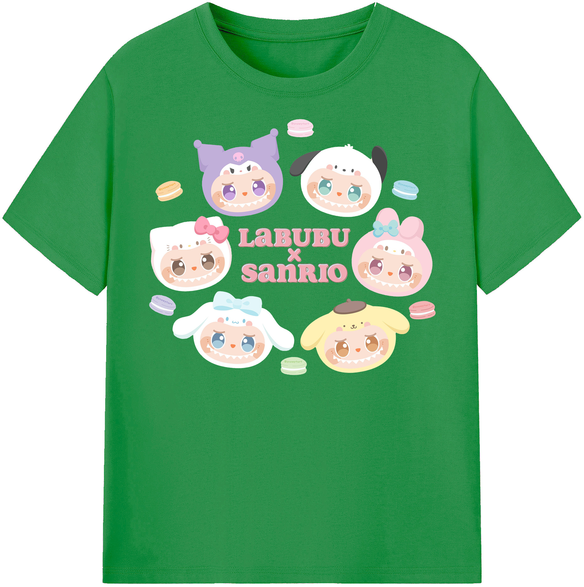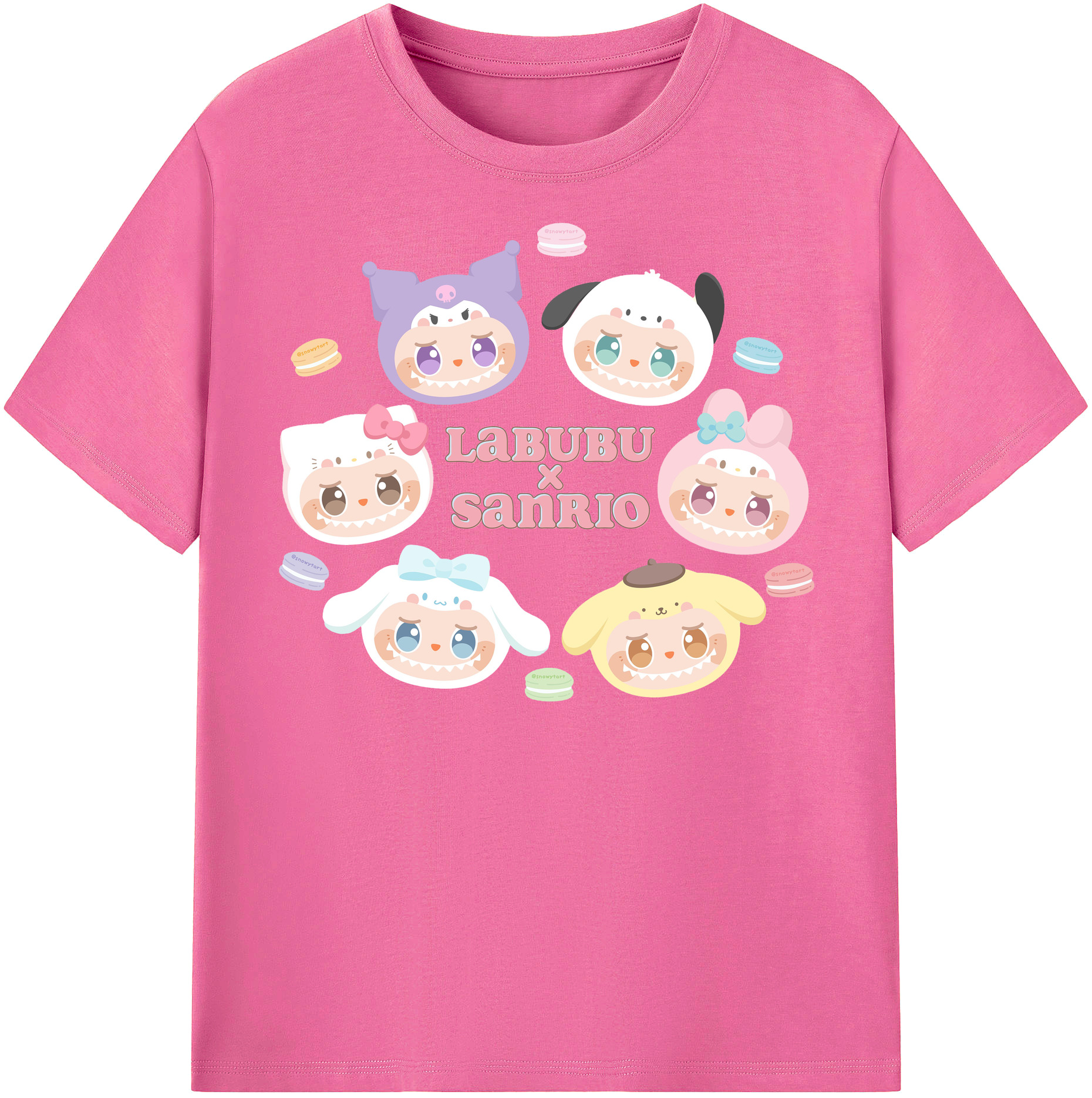 サンリオ&LABUBU ラブブ - レディースカジュアルプリントTシャツ ・ 綿100% ・ クルーネック ・ フロントプリント ・ 柔らかく快適 ・ フィットネス カジュアル 旅行用