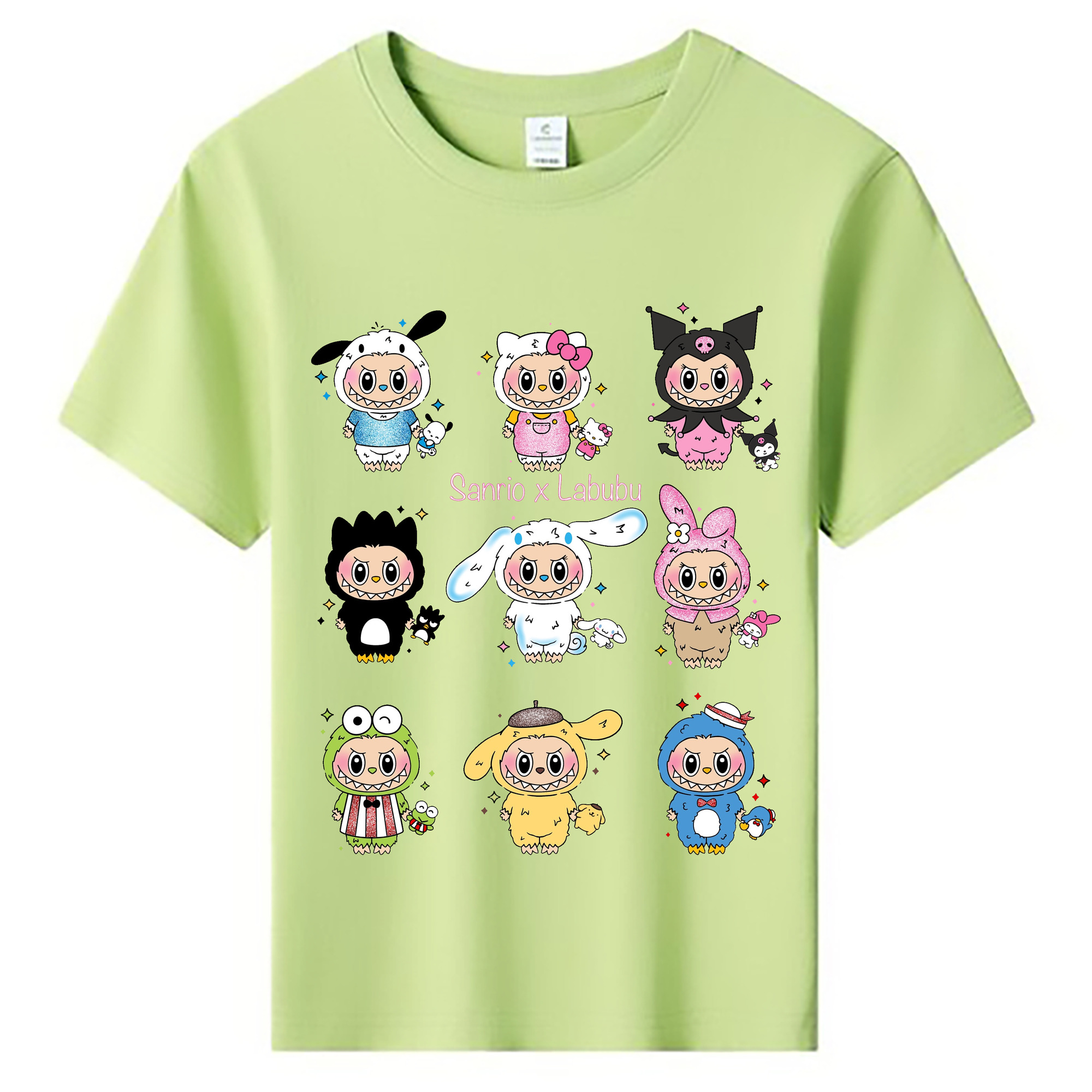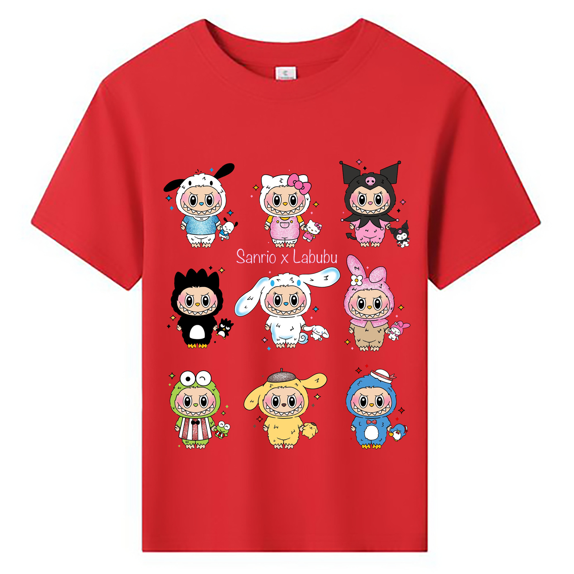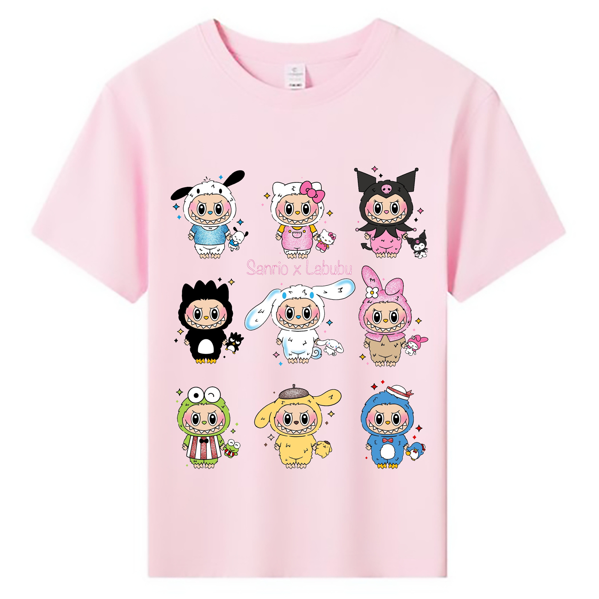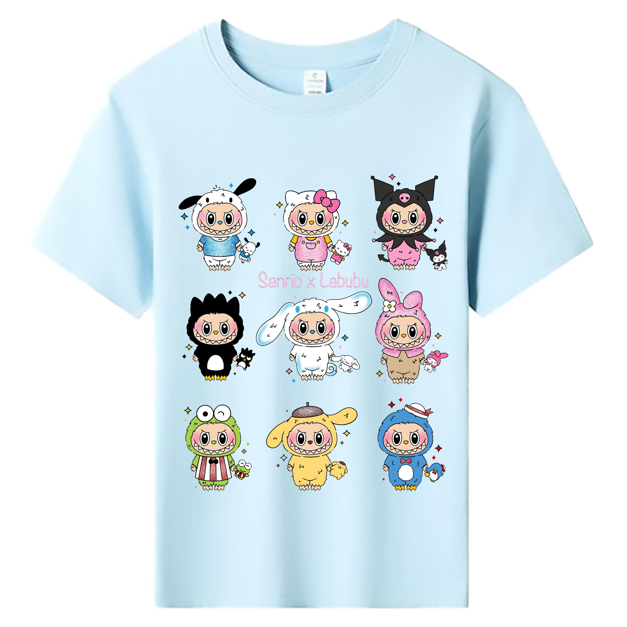 サンリオマイメロディ&LABUBU ラブブ - 綿100% キッズTシャツ ・ フロントプリント ・ 快適 通気性 ・ スポーツ カジュアル 散歩用