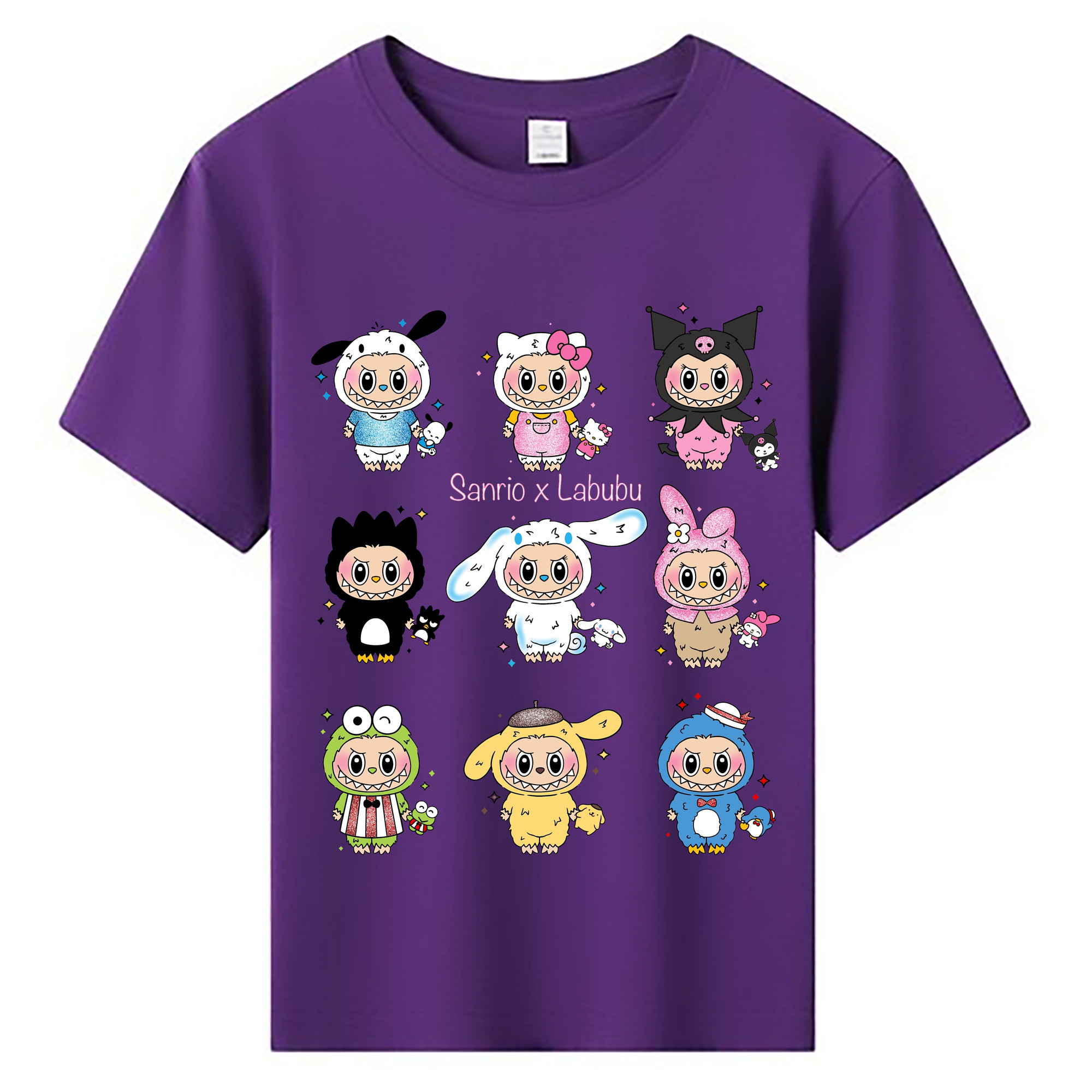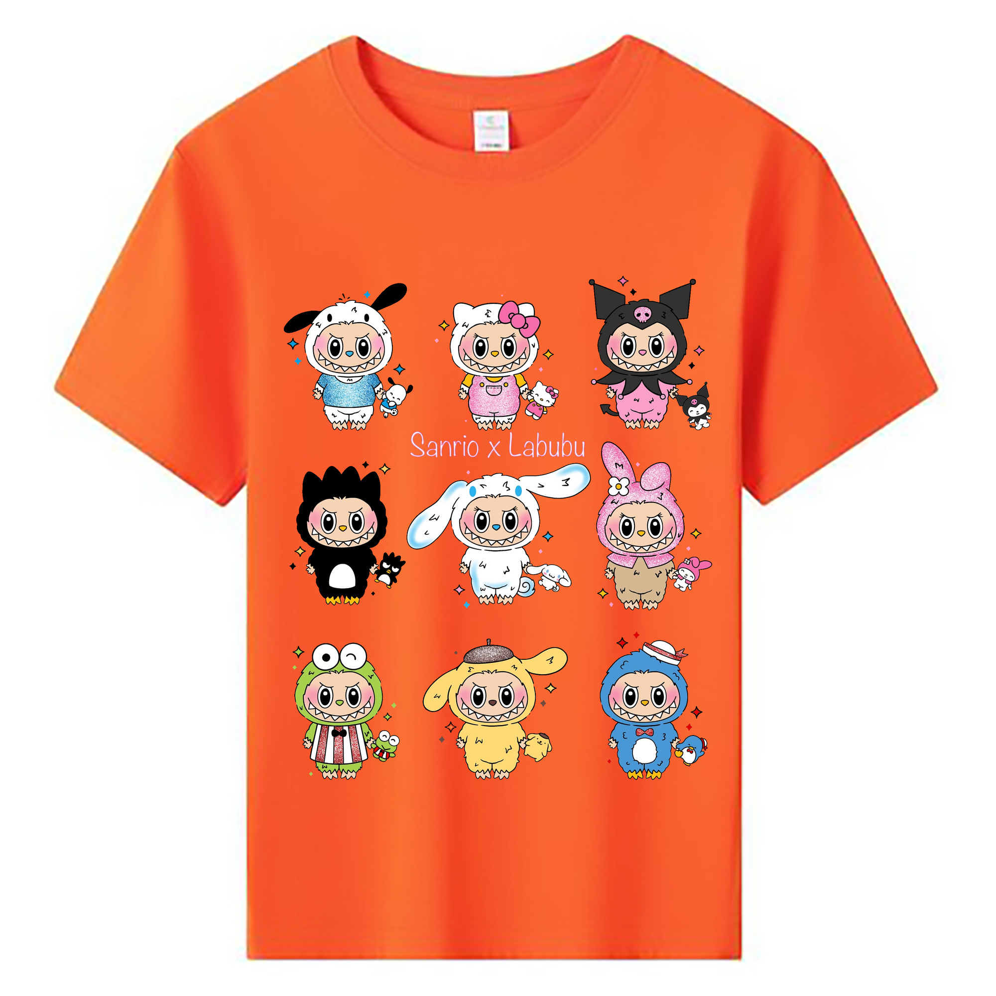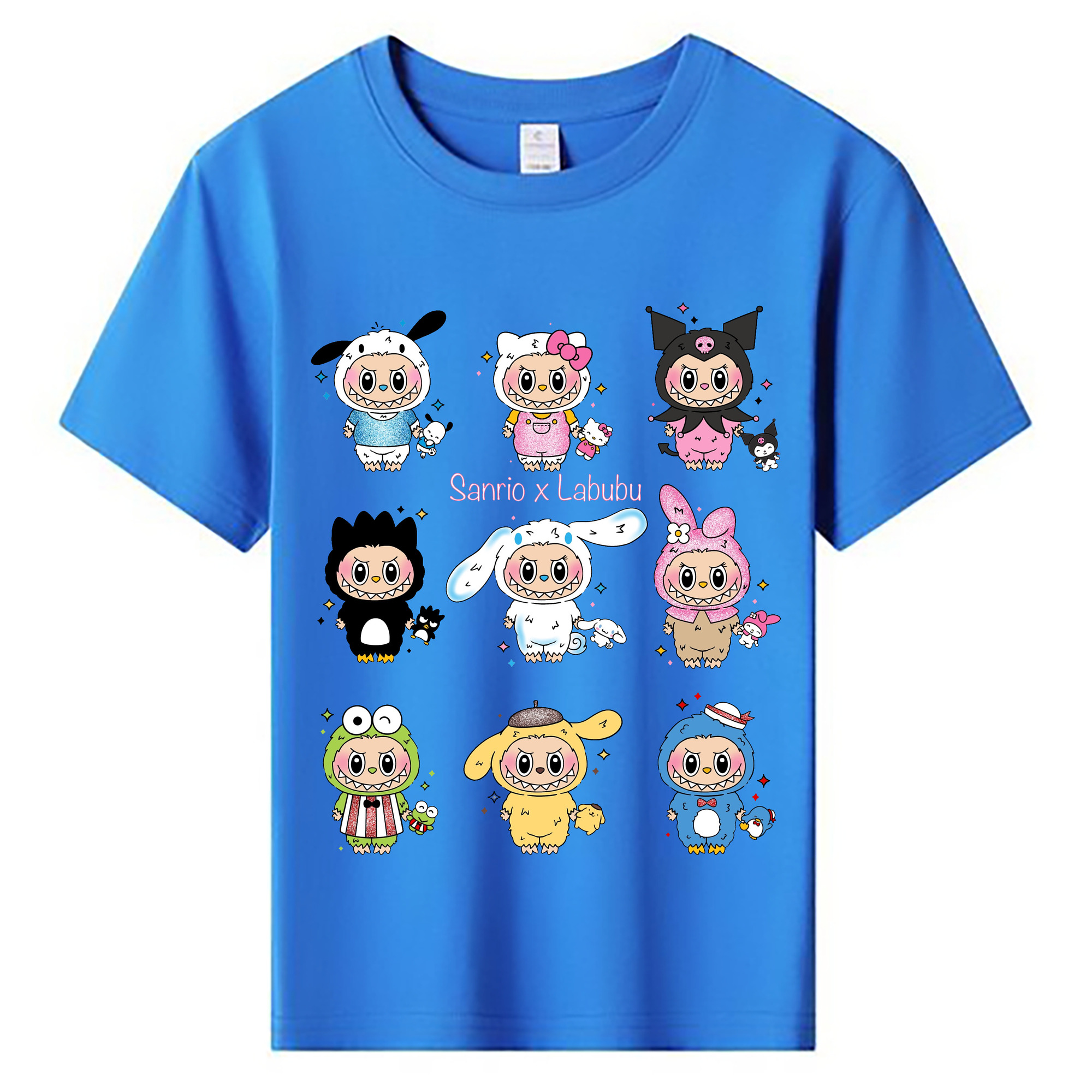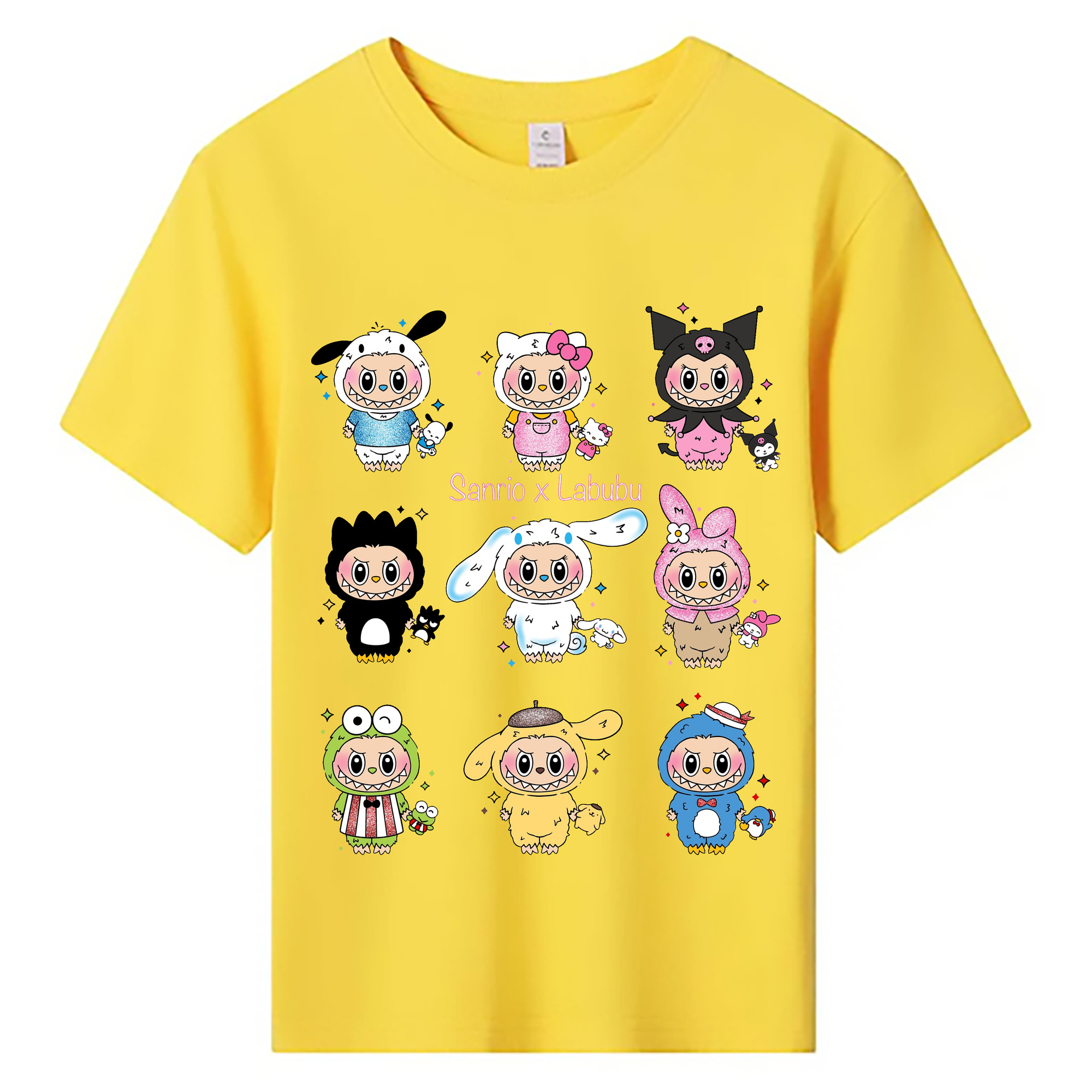 サンリオマイメロディ&LABUBU ラブブ - 綿100% キッズTシャツ ・ フロントプリント ・ 快適 通気性 ・ スポーツ カジュアル 散歩用