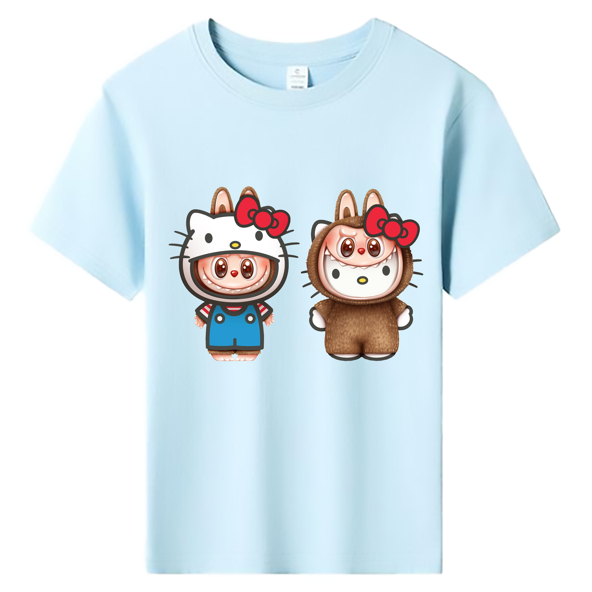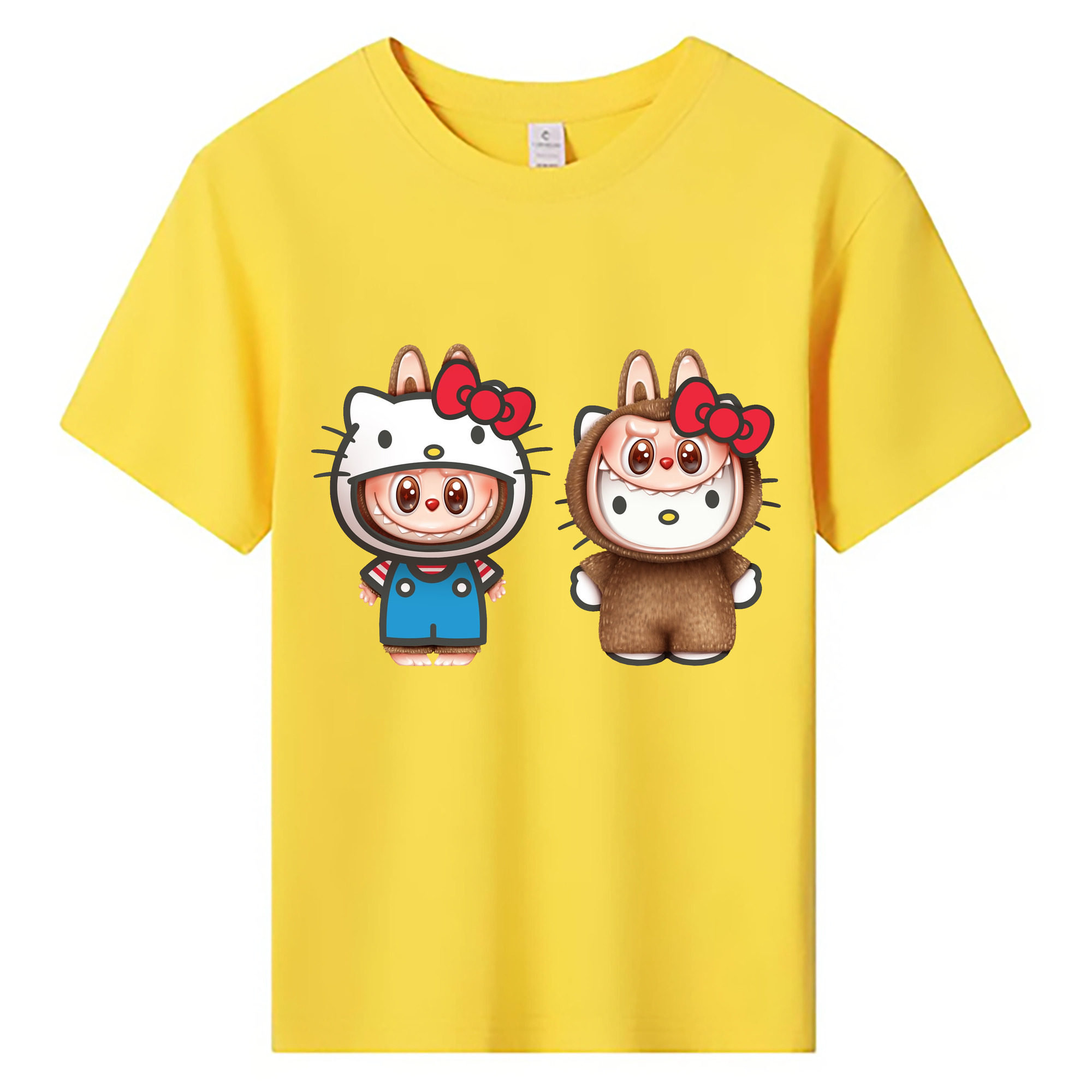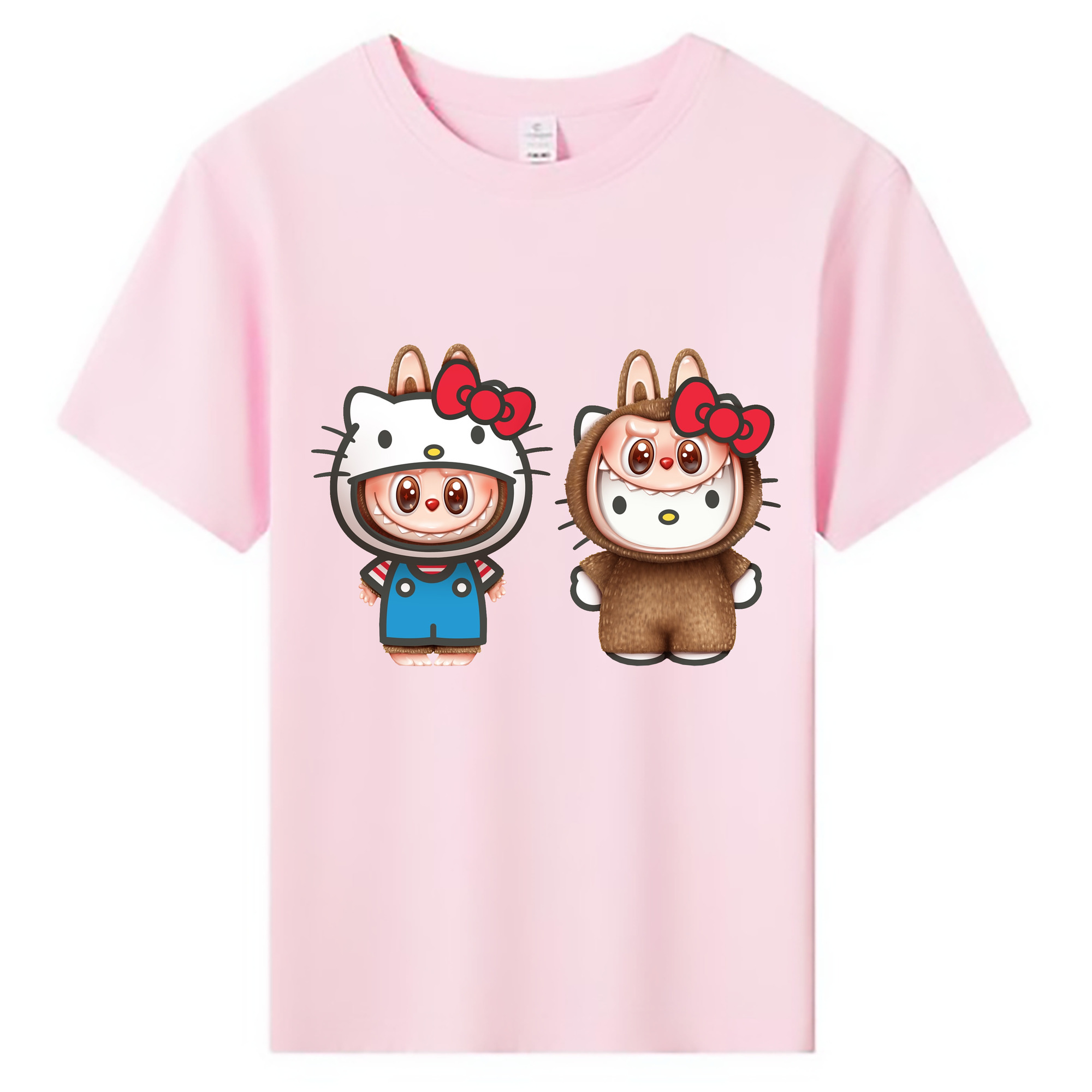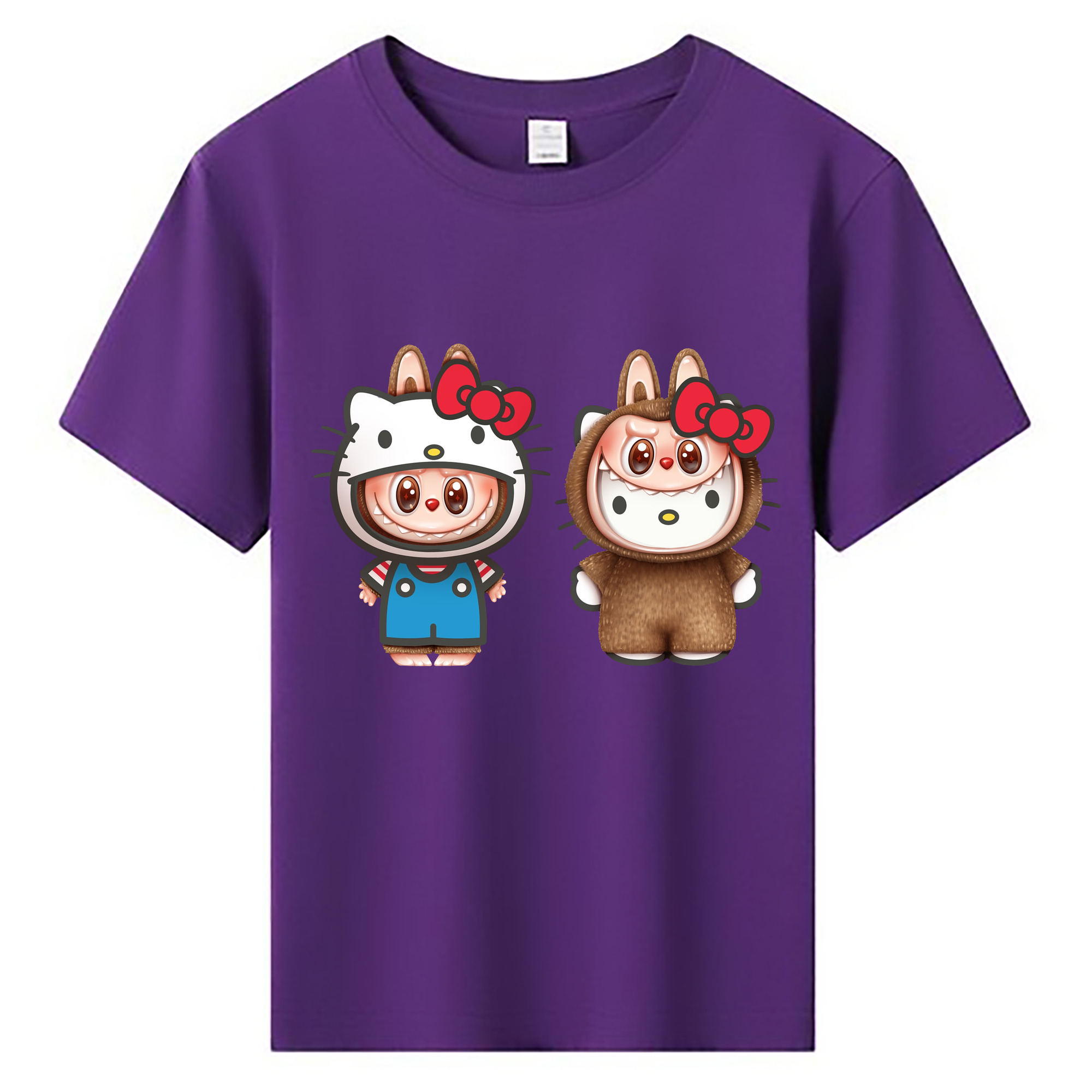 サンリオ&LABUBU ラブブ - 綿100% ヴィンテージ風 半袖Tシャツ ・ フロントプリント ・ 柔らか肌触り ・ 通気性 快適 ・ スポーツ カジュアル 外出用