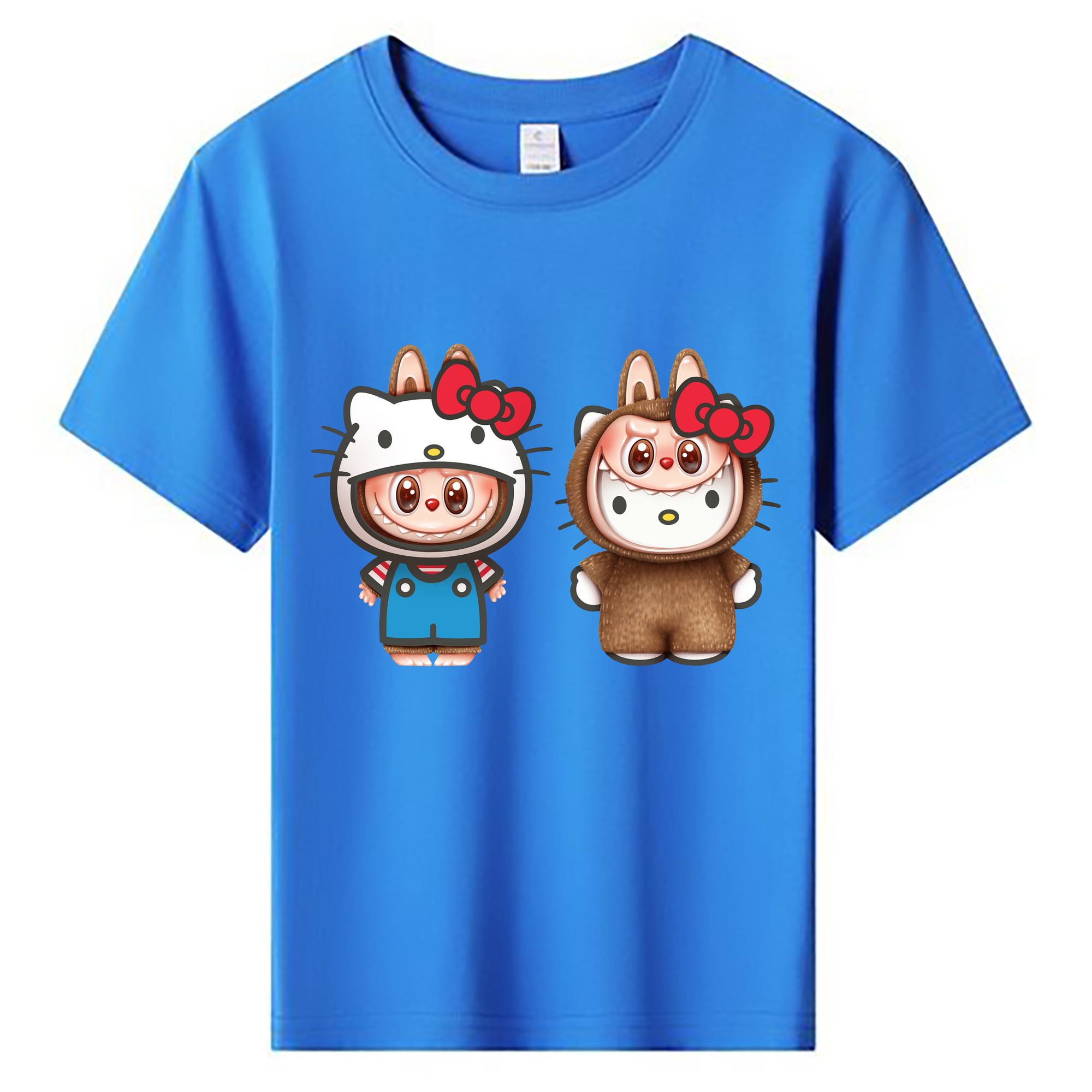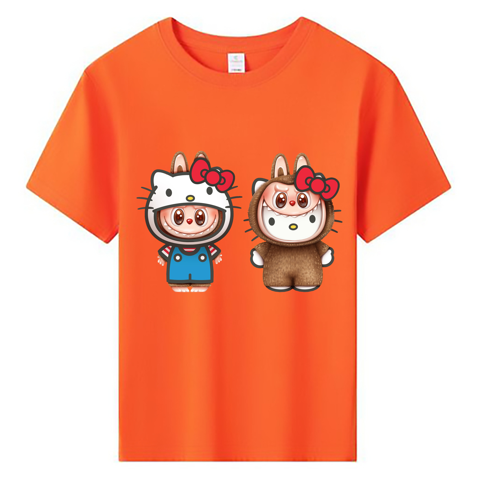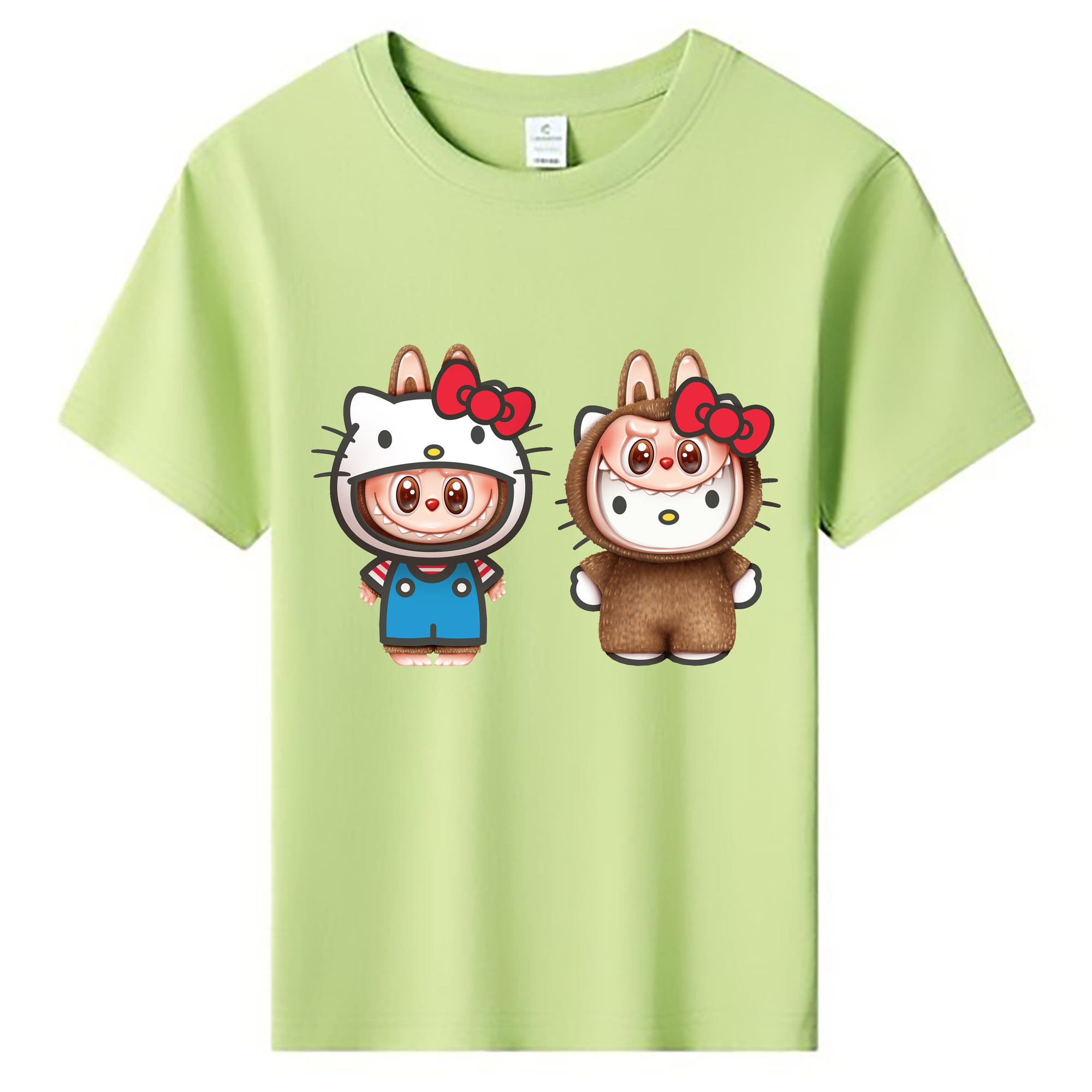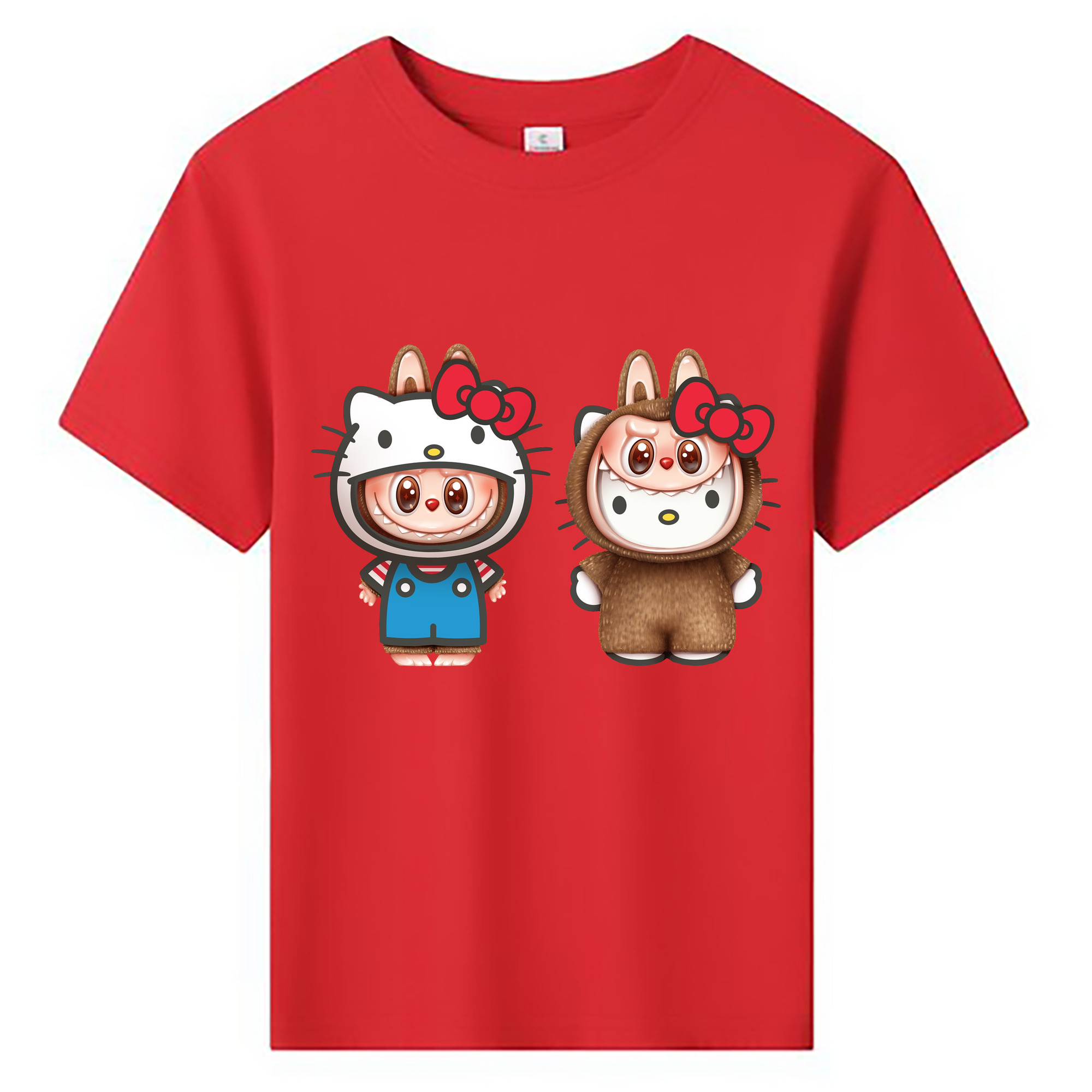 サンリオ&LABUBU ラブブ - 綿100% ヴィンテージ風 半袖Tシャツ ・ フロントプリント ・ 柔らか肌触り ・ 通気性 快適 ・ スポーツ カジュアル 外出用