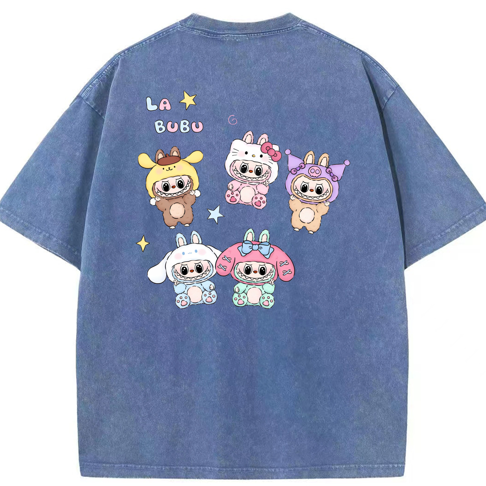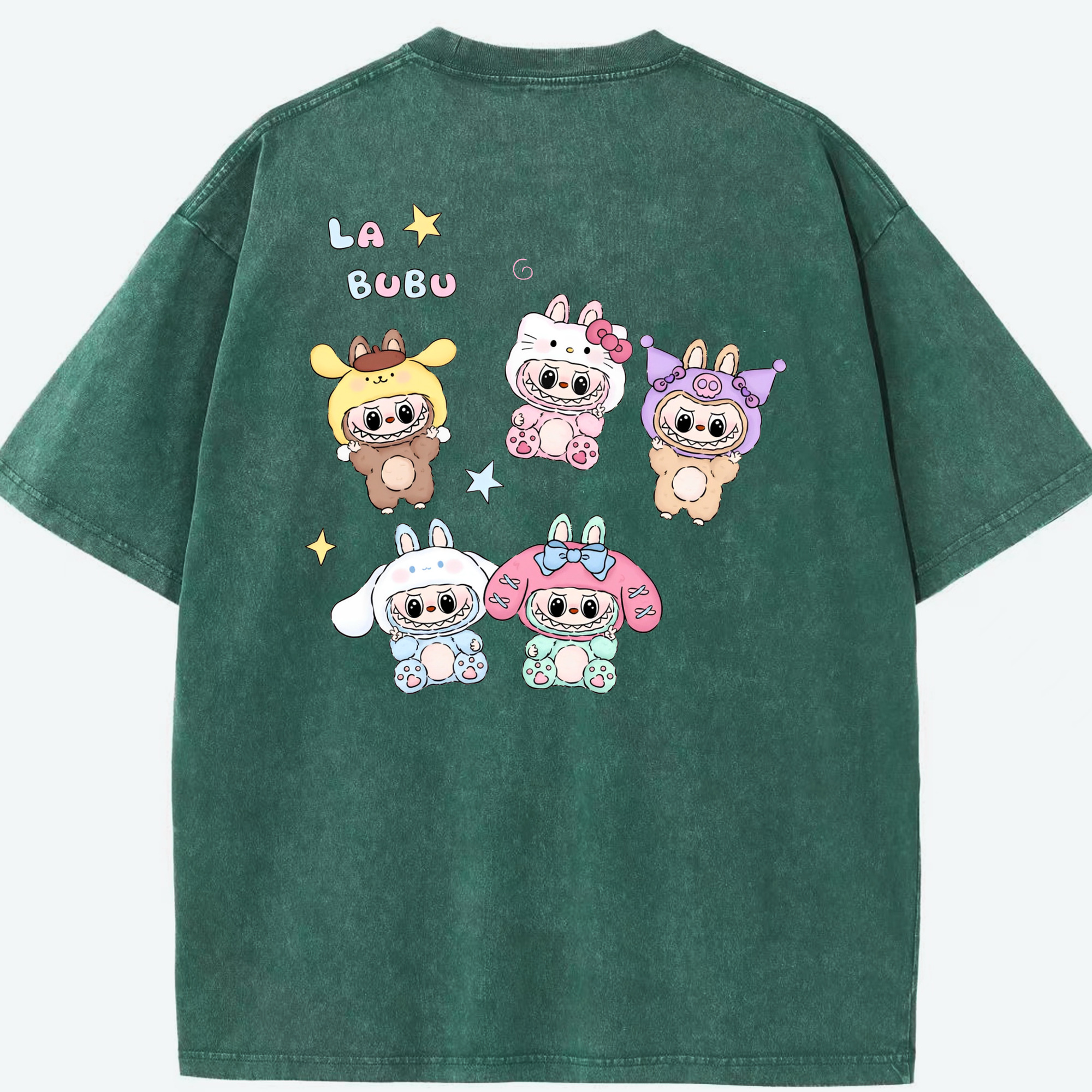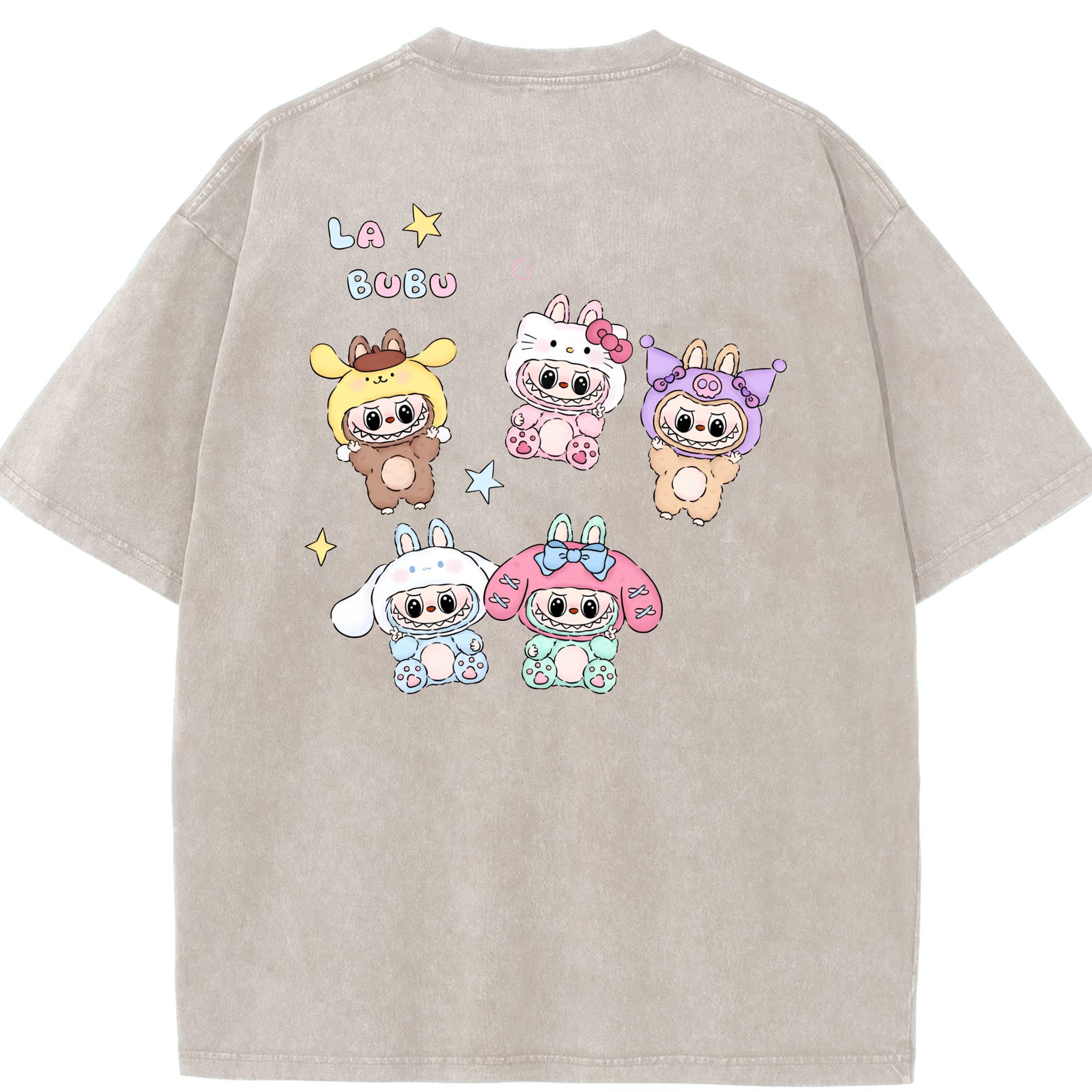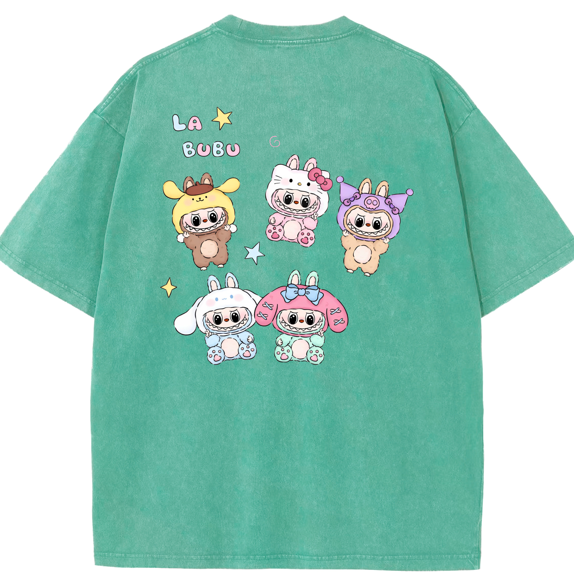 サンリオ&LABUBU ラブブ - 綿100% ヴィンテージ風 半袖Tシャツ ・ フロントプリント ・ 柔らか肌触り ・ 通気性 快適 ・ スポーツ カジュアル 外出用