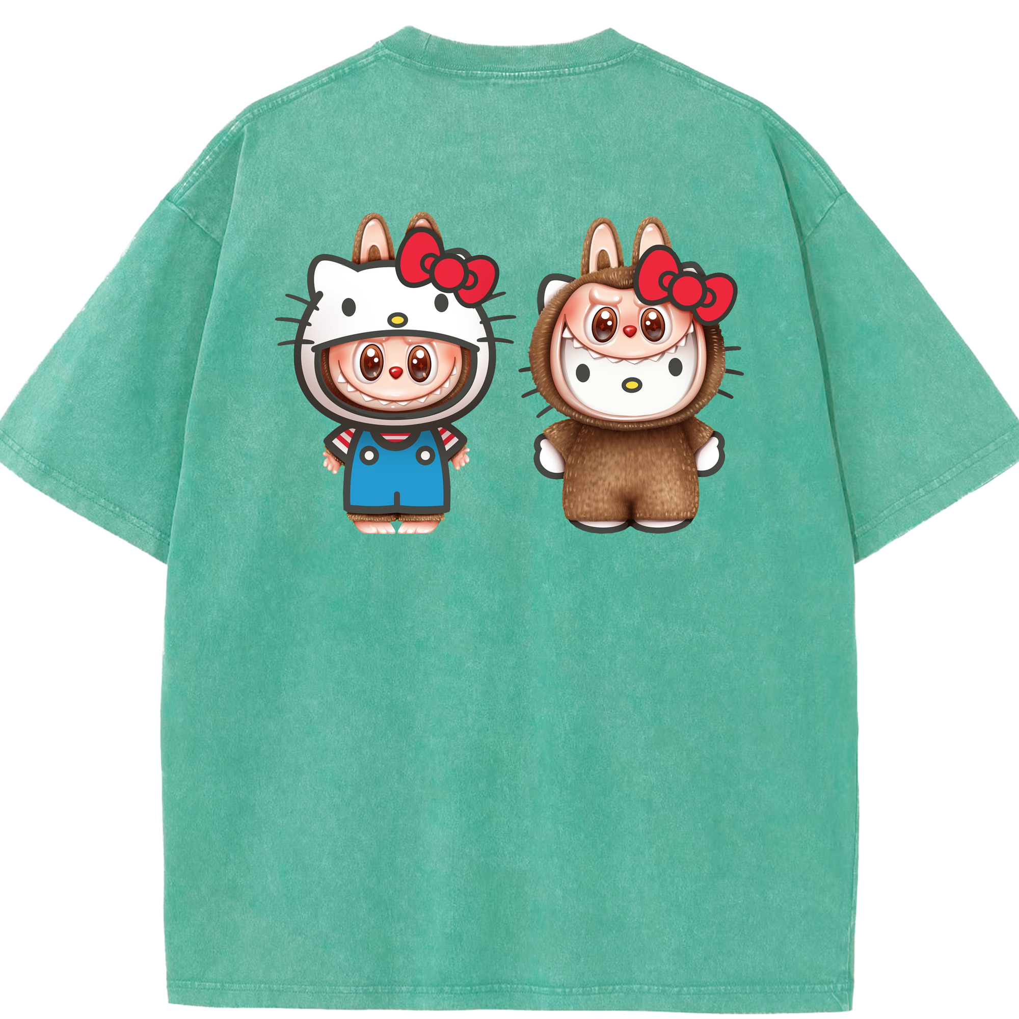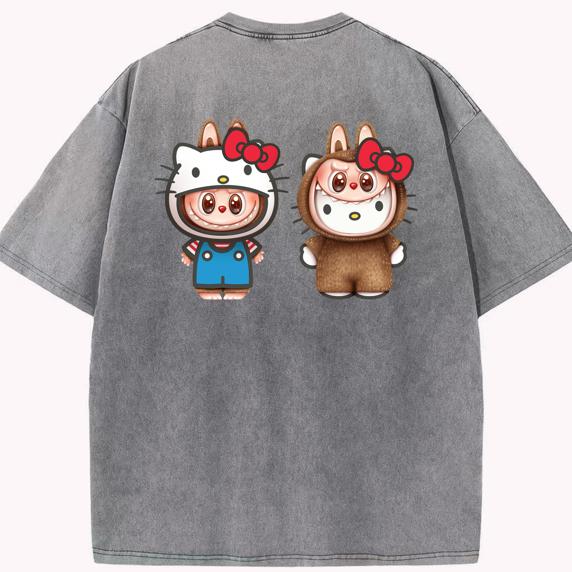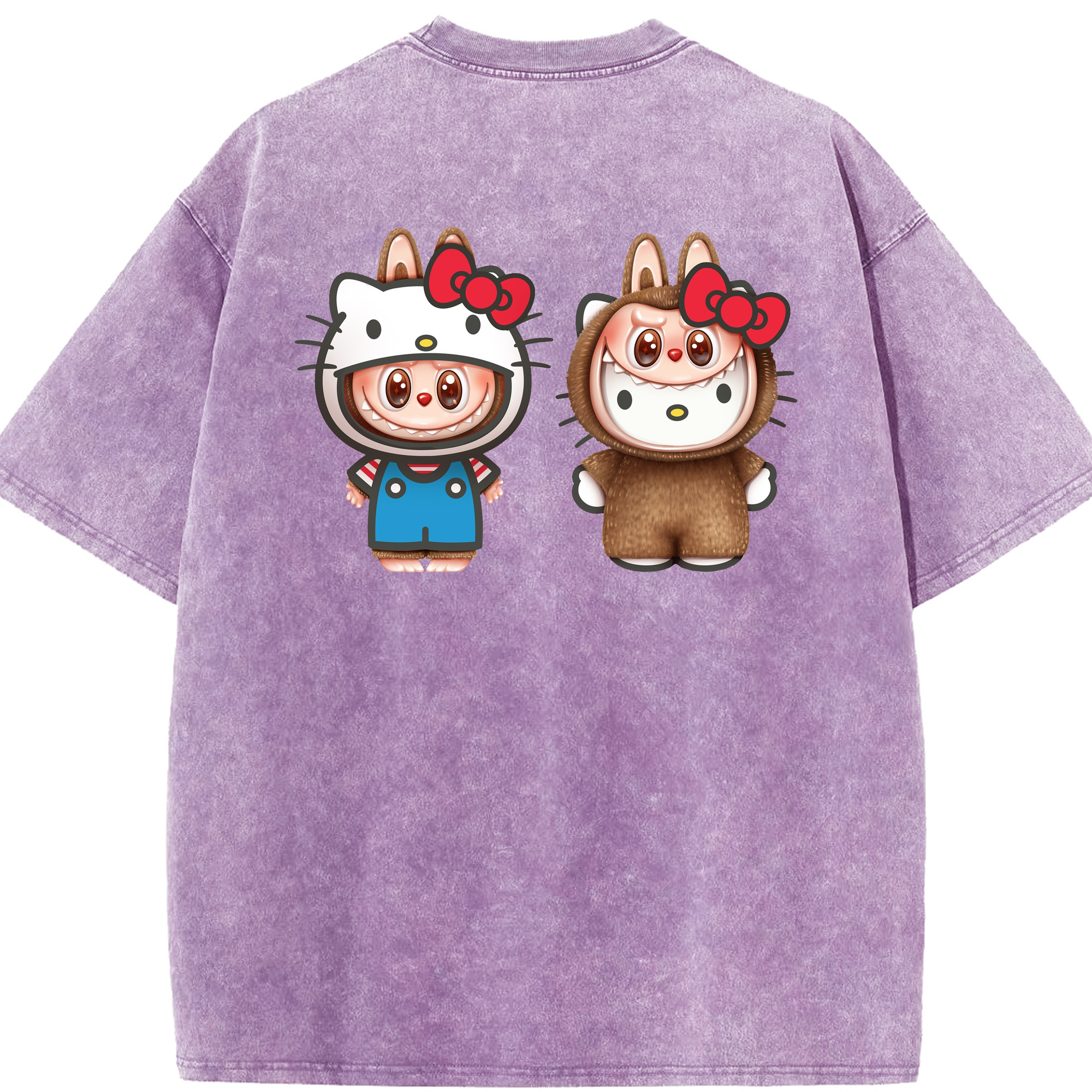 サンリオ&LABUBU ラブブ - 綿100% ヴィンテージ風 半袖Tシャツ ・ フロントプリント ・ 柔らか肌触り ・ 通気性 快適 ・ スポーツ カジュアル 外出用