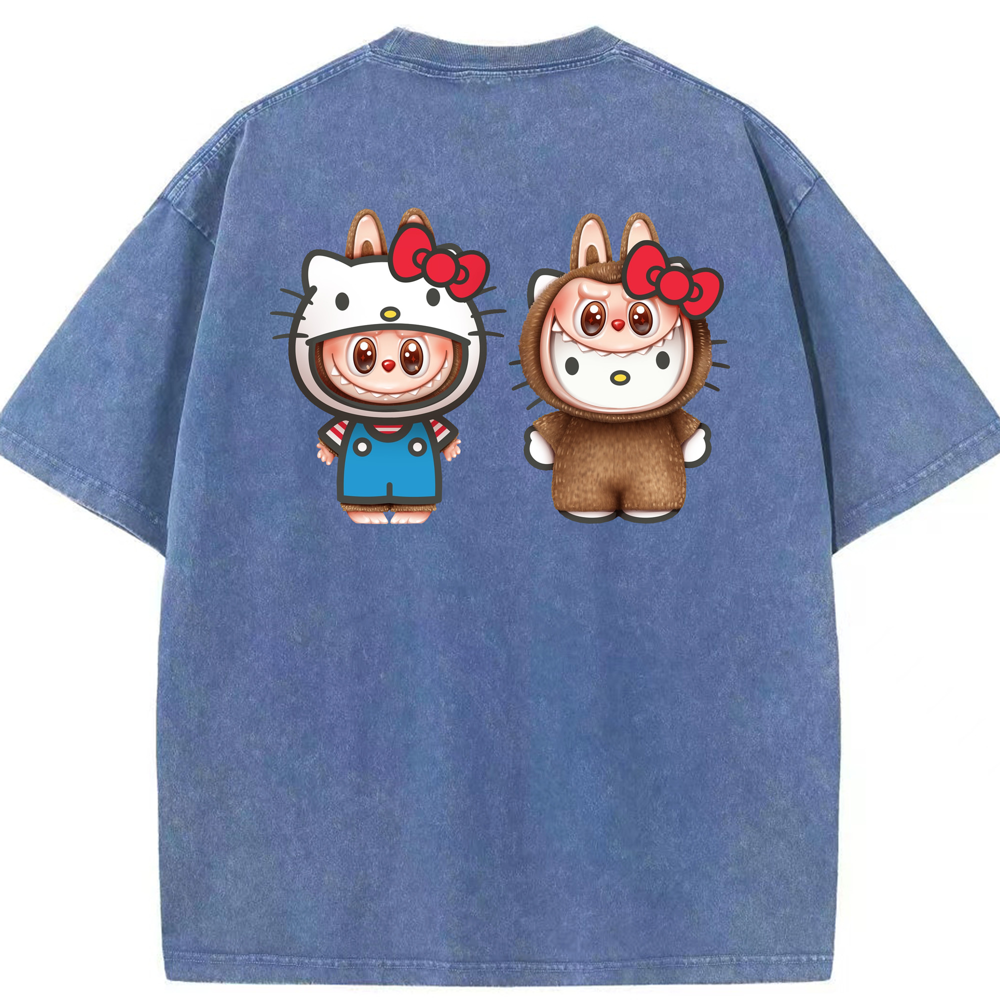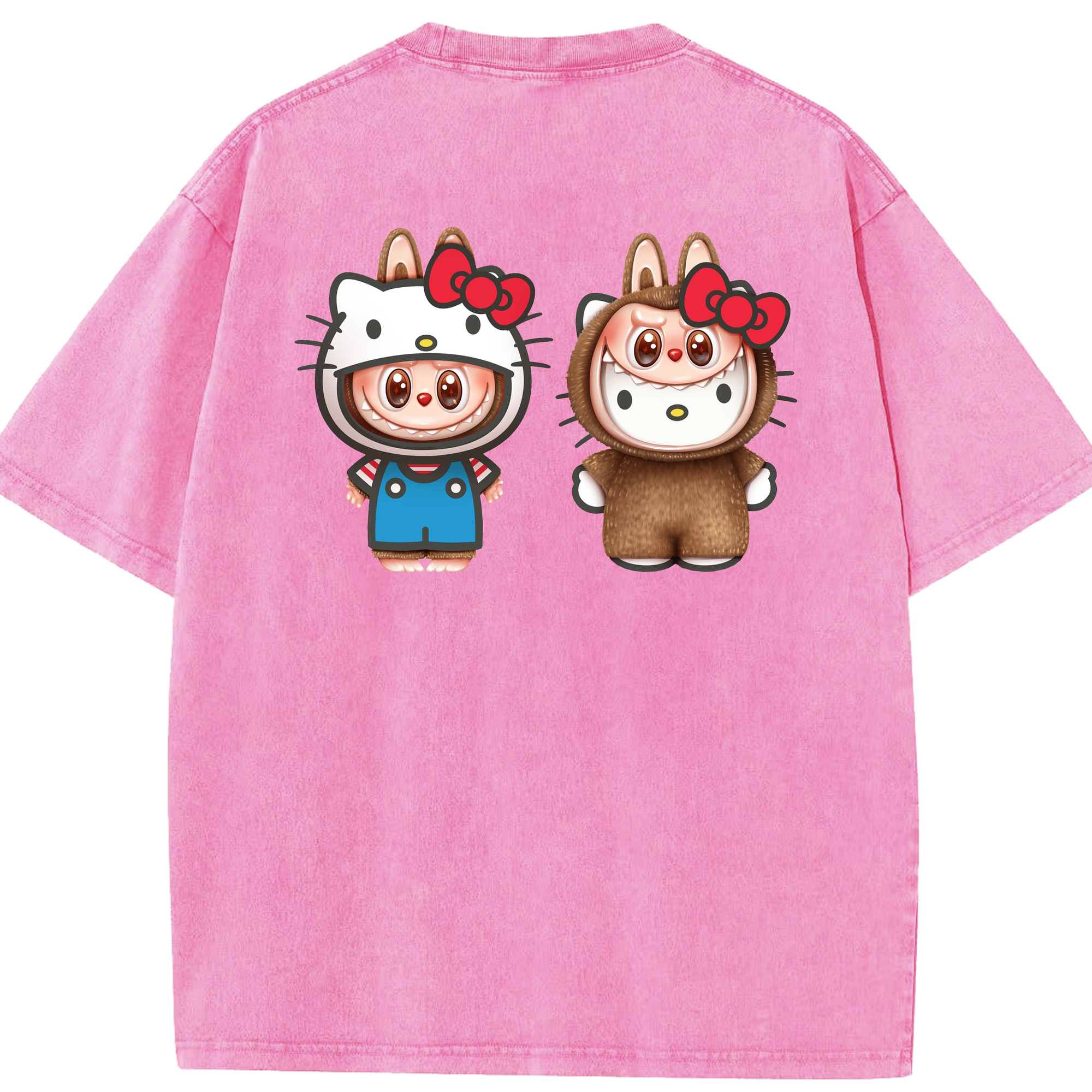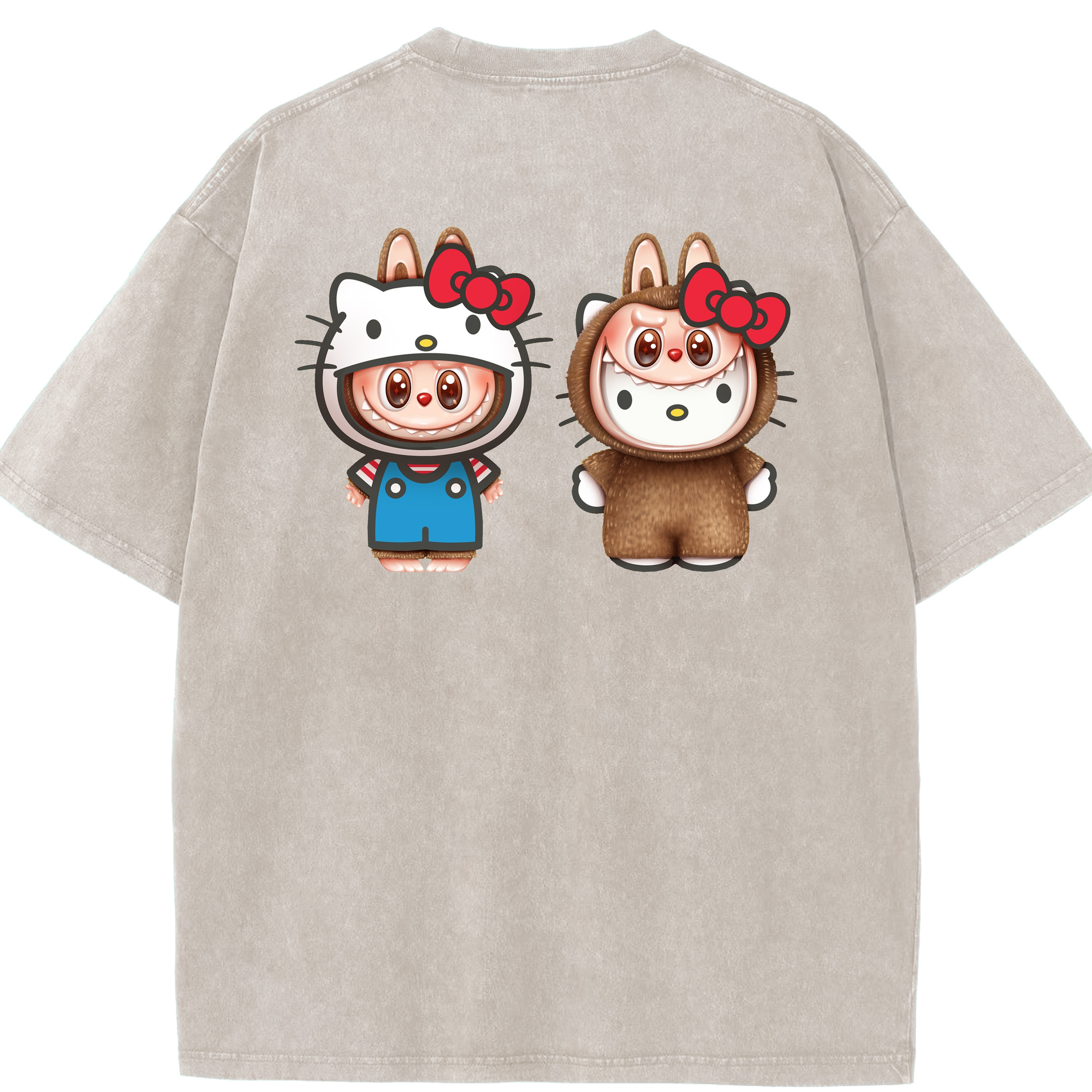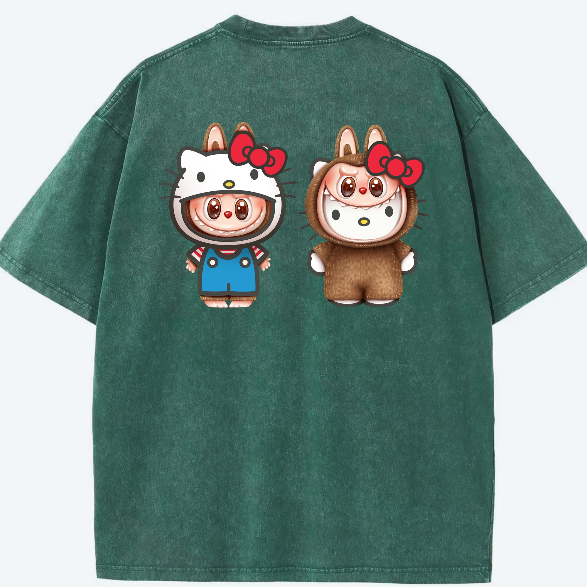 サンリオ&LABUBU ラブブ - 綿100% ヴィンテージ風 半袖Tシャツ ・ フロントプリント ・ 柔らか肌触り ・ 通気性 快適 ・ スポーツ カジュアル 外出用
