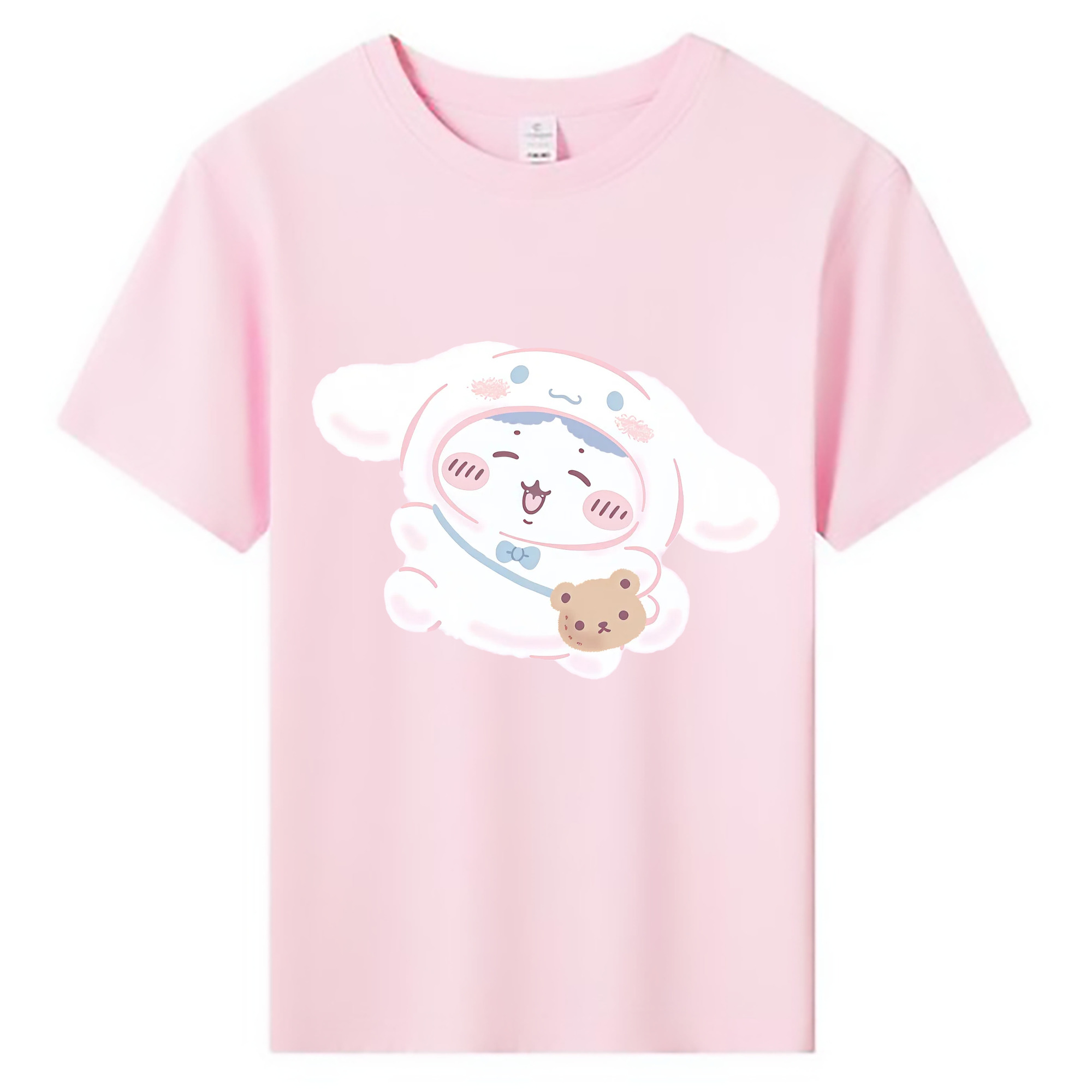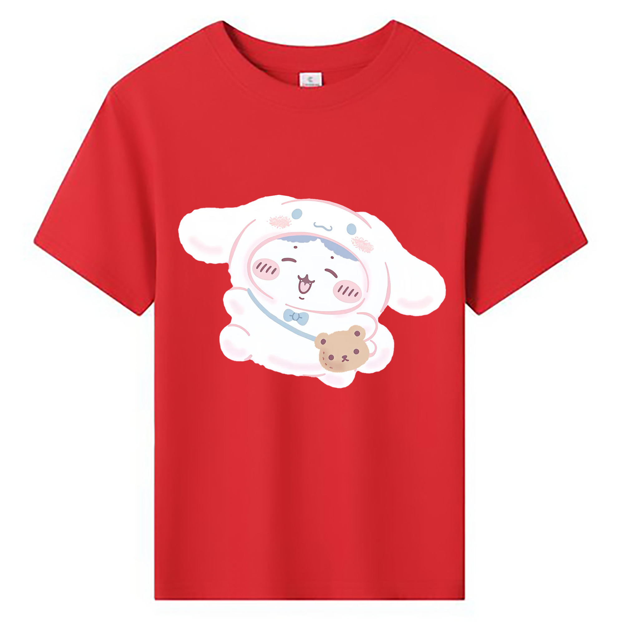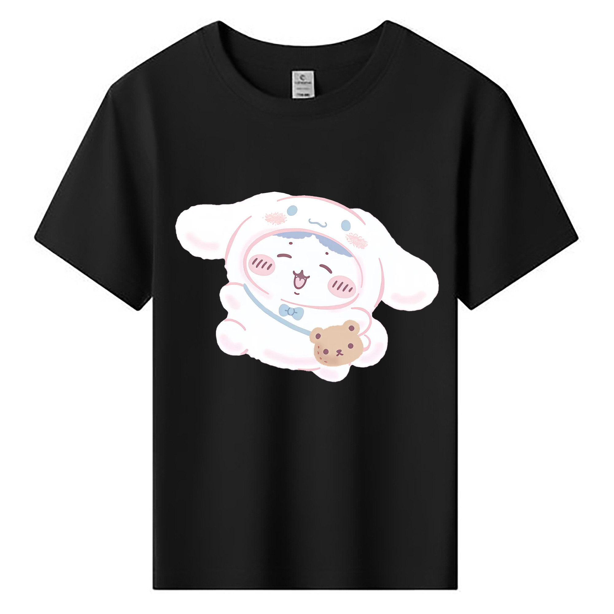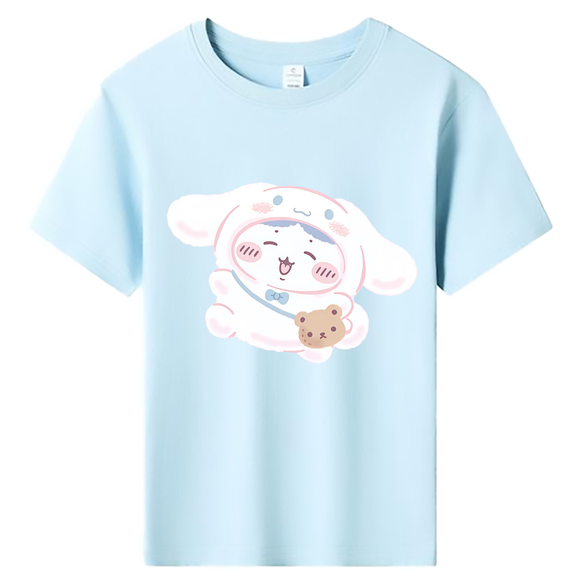 ハローキティ&ちいかわ - 綿100% キッズTシャツ ・ フロントプリント ・ 快適 通気性 ・ スポーツ カジュアル 散歩用