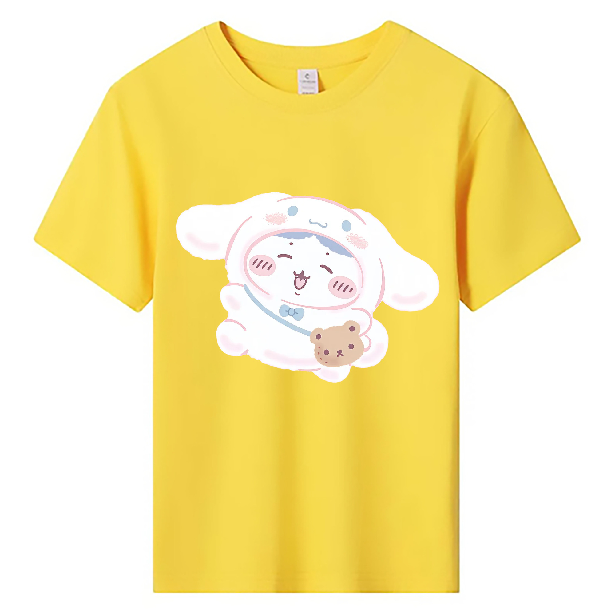ポチャッコ&ちいかわ - 綿100% キッズTシャツ ・ フロントプリント ・ 快適 通気性 ・ スポーツ カジュアル 散歩用
