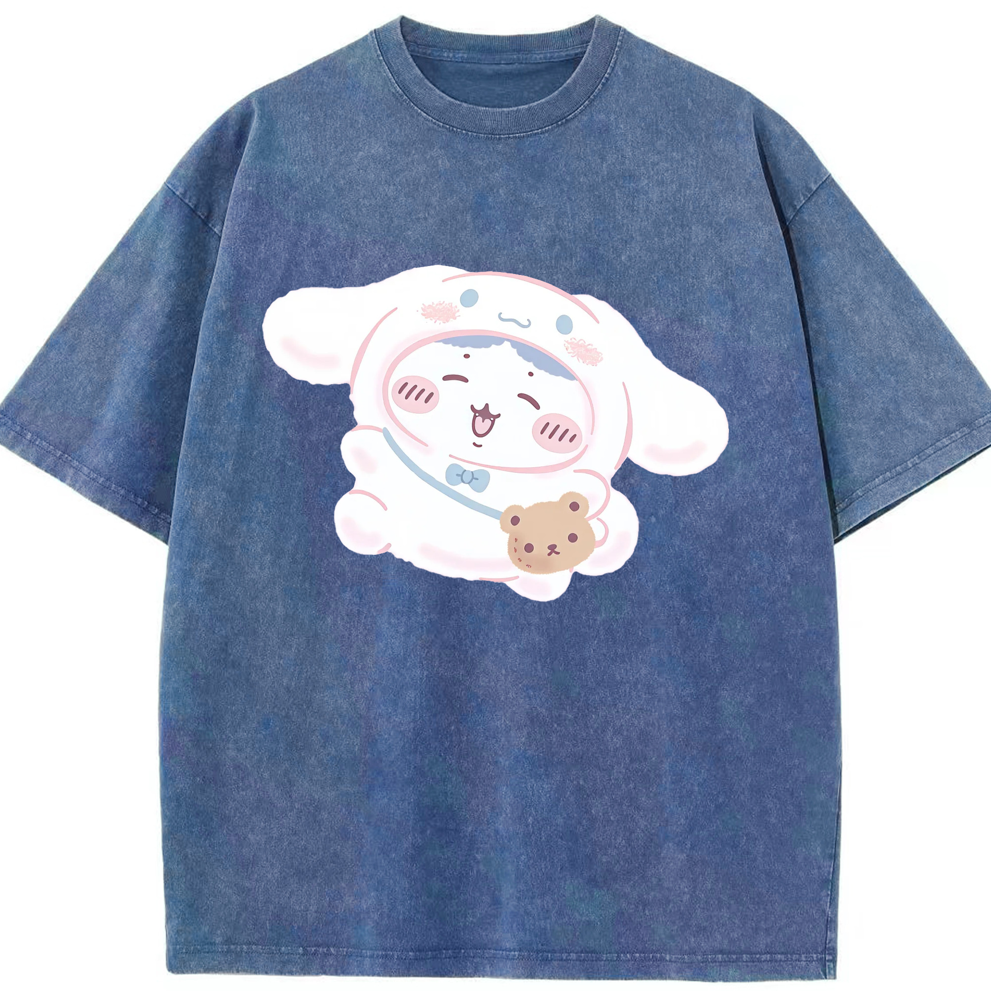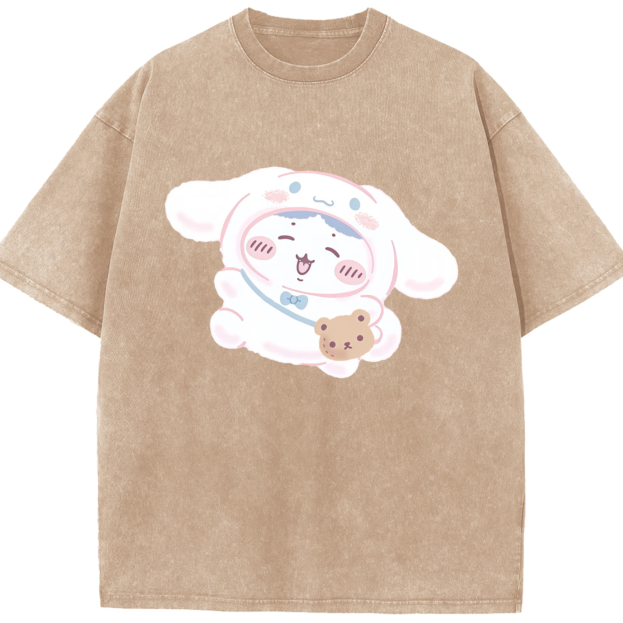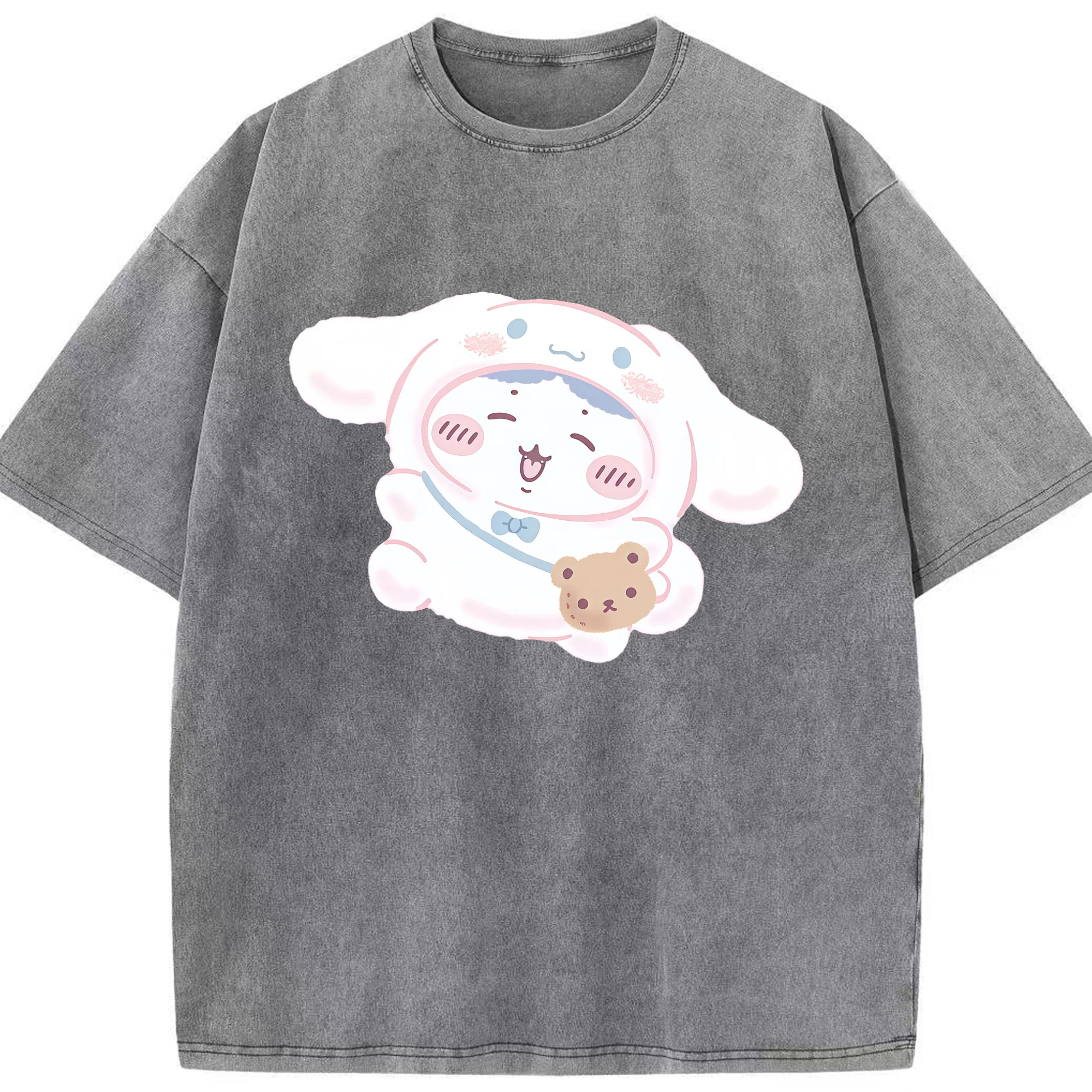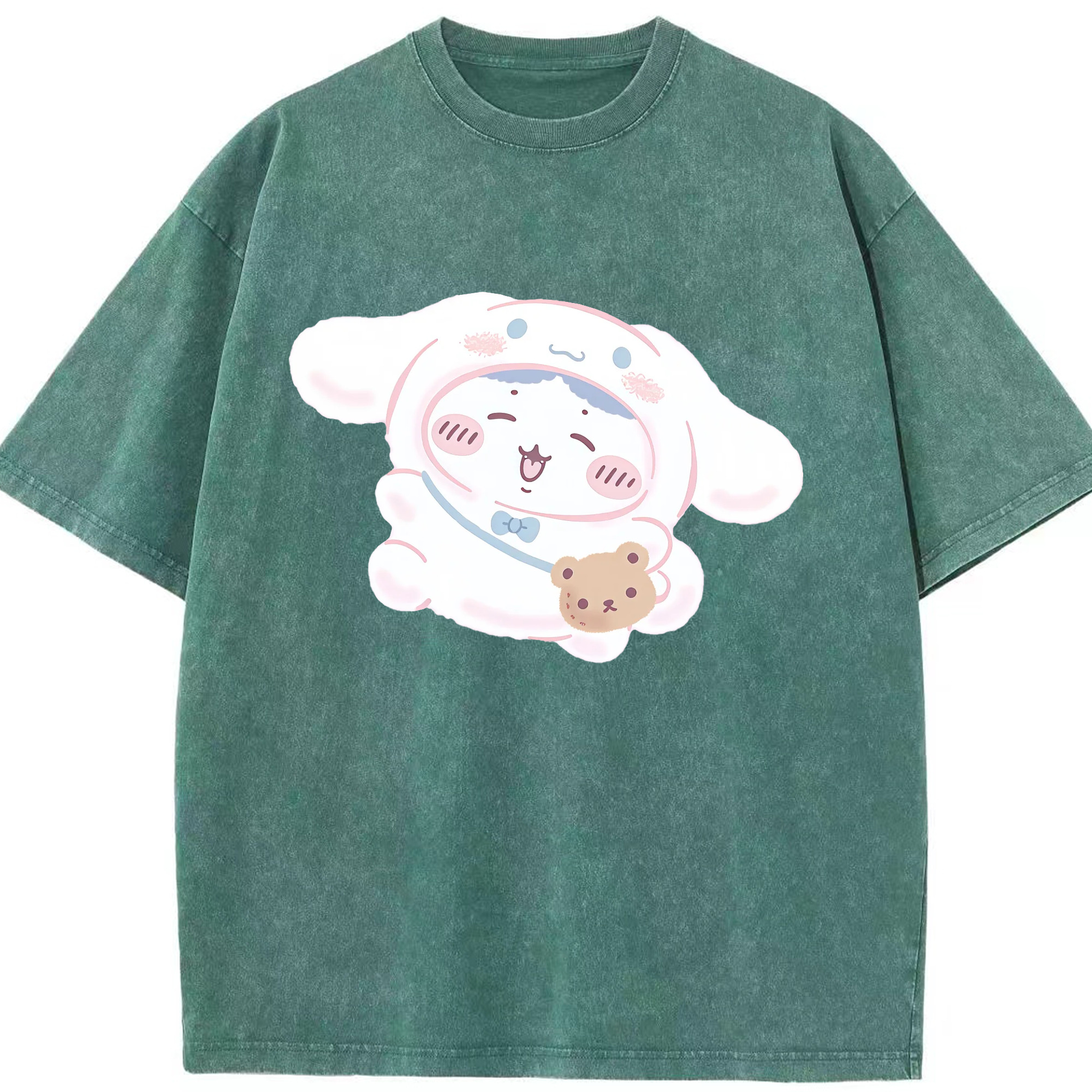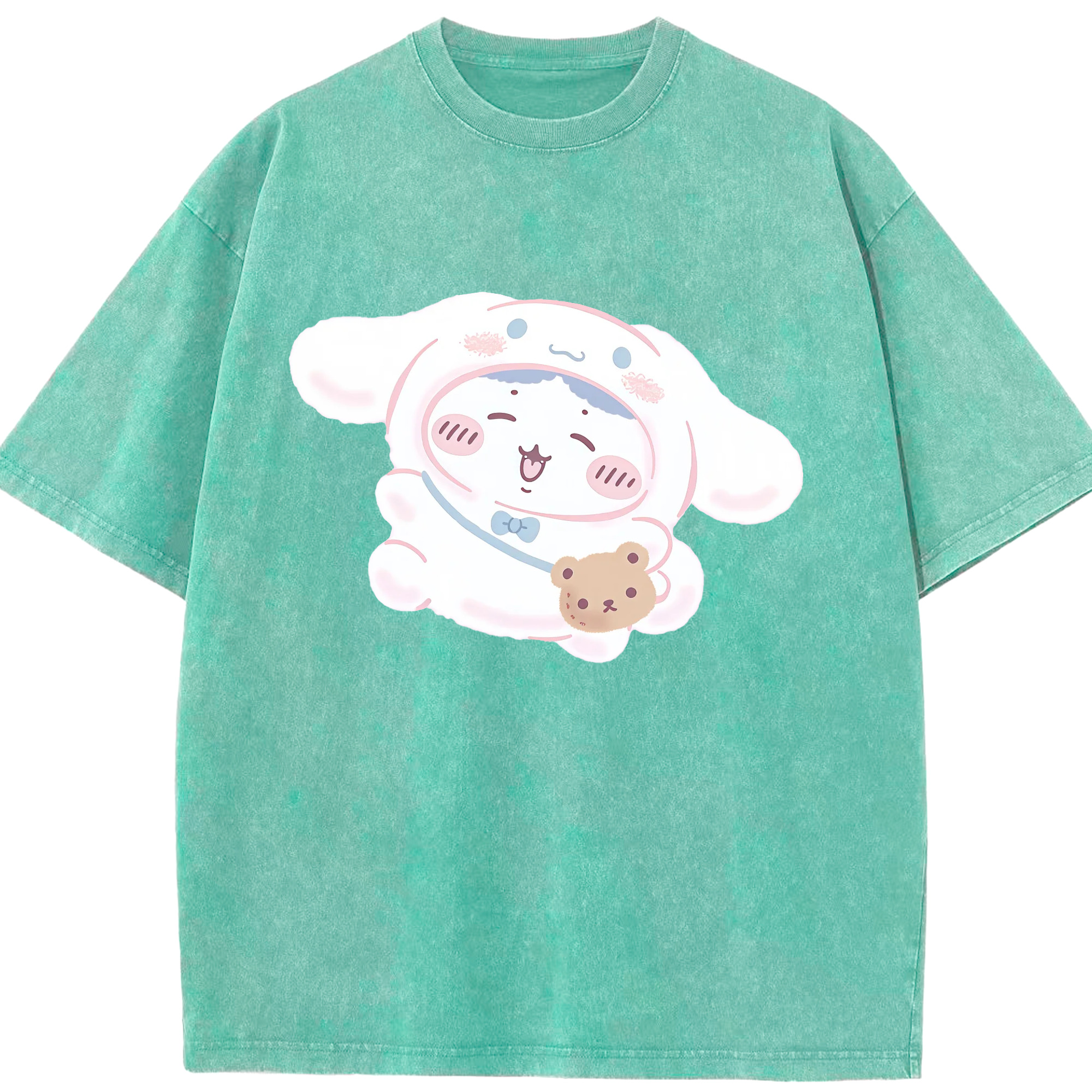 シナモロール&ちいかわ - 綿100% ヴィンテージ風 半袖Tシャツ ・ 背面プリント ・ 柔らか肌触り ・ 通気性 快適 ・ スポーツ カジュアル 外出用
