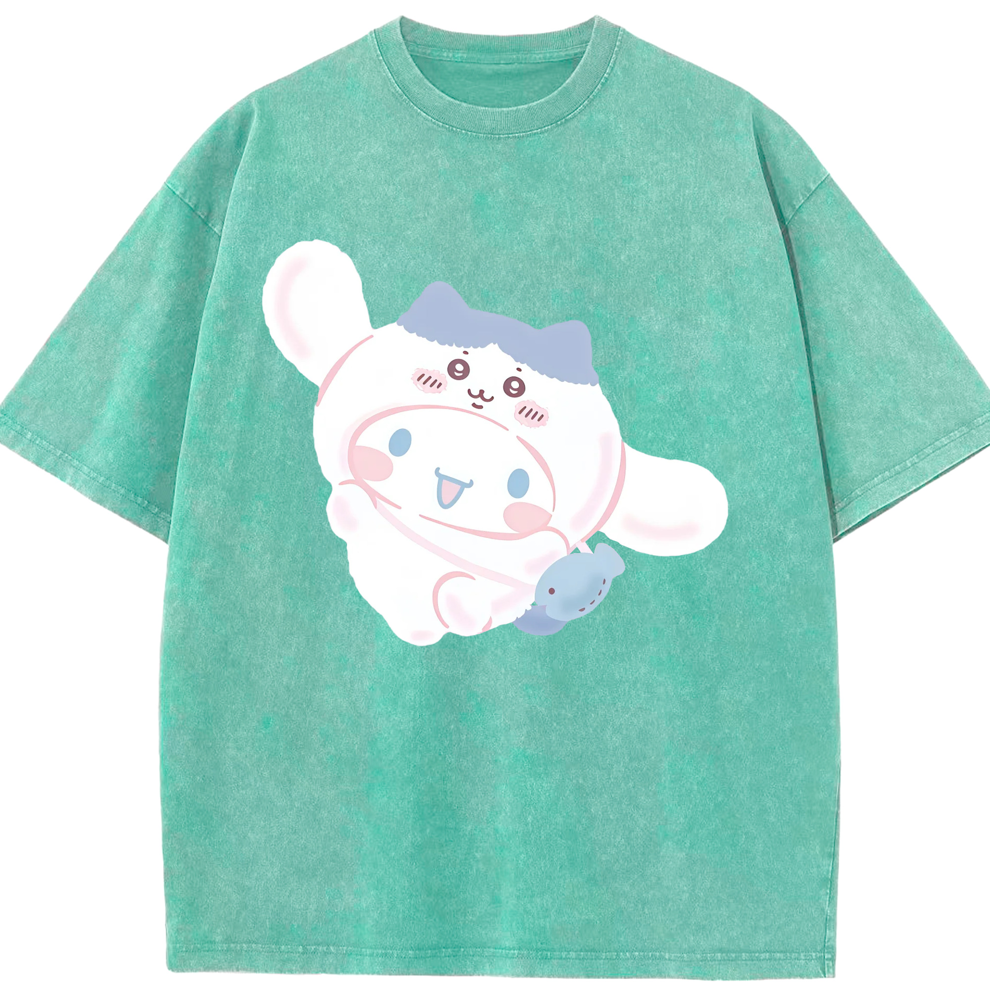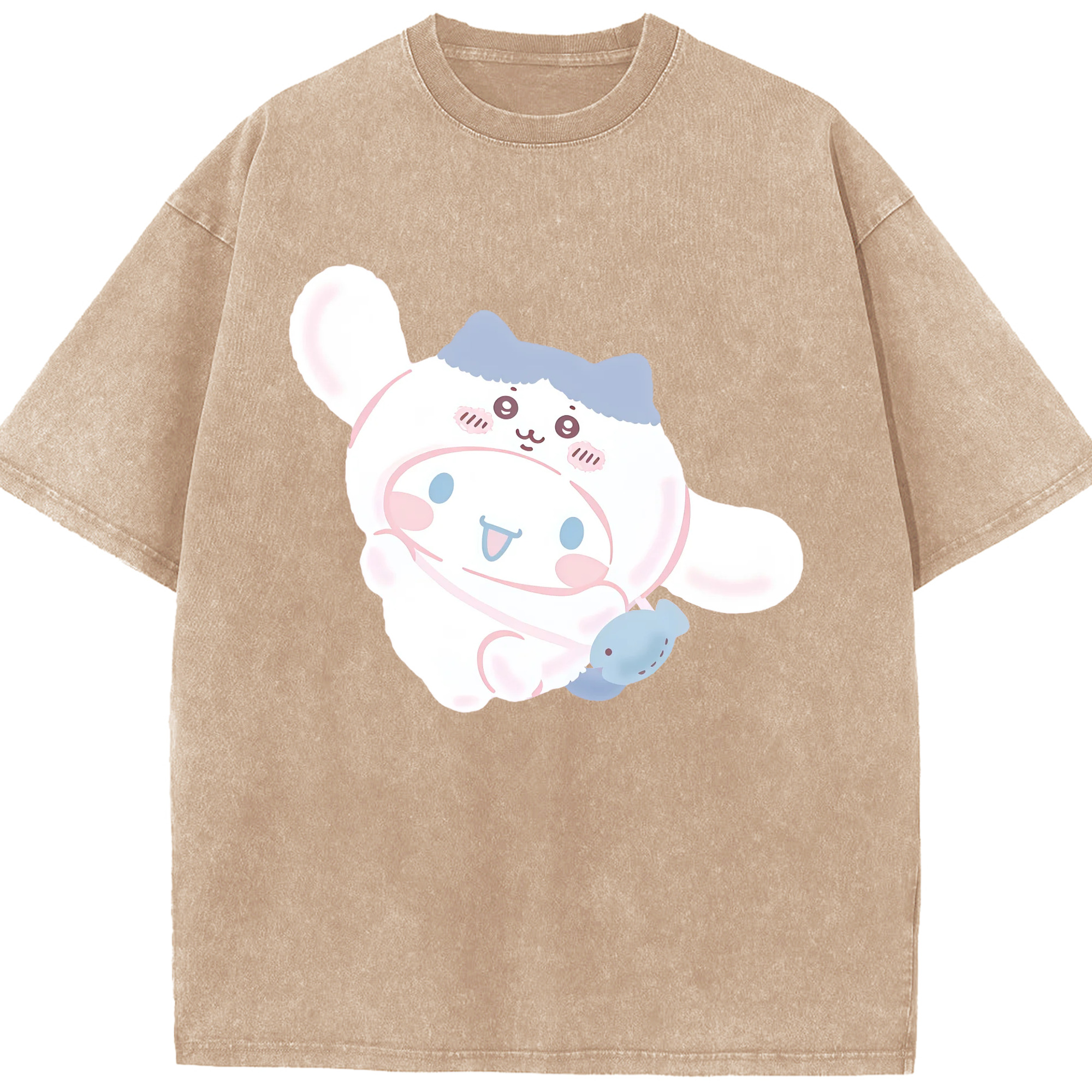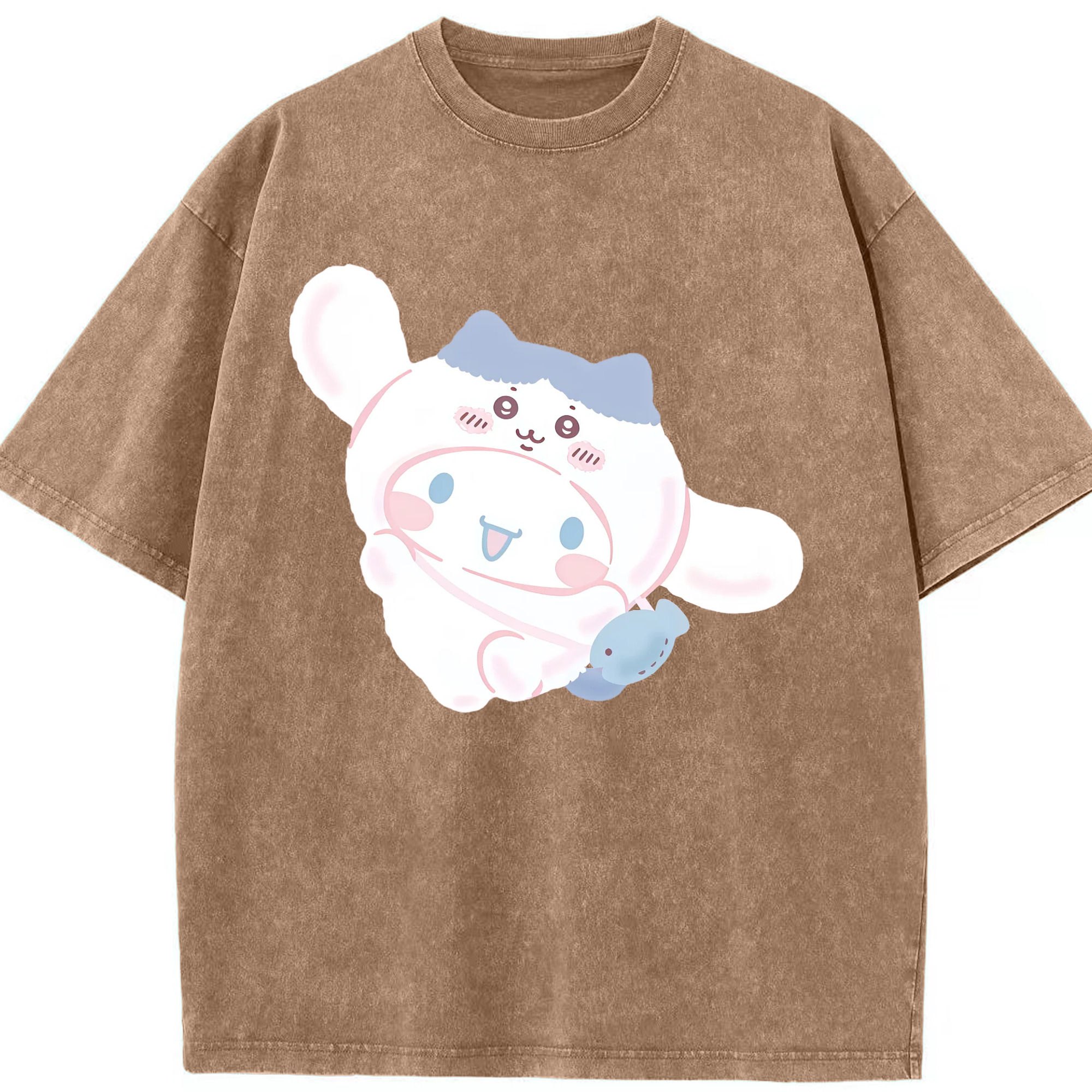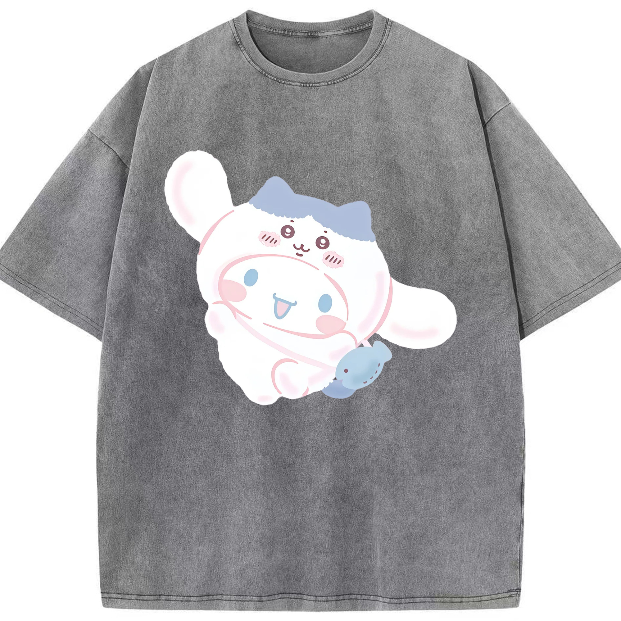 シナモロール&ちいかわ - 綿100% ヴィンテージ風 半袖Tシャツ ・ 背面プリント ・ 柔らか肌触り ・ 通気性 快適 ・ スポーツ カジュアル 外出用