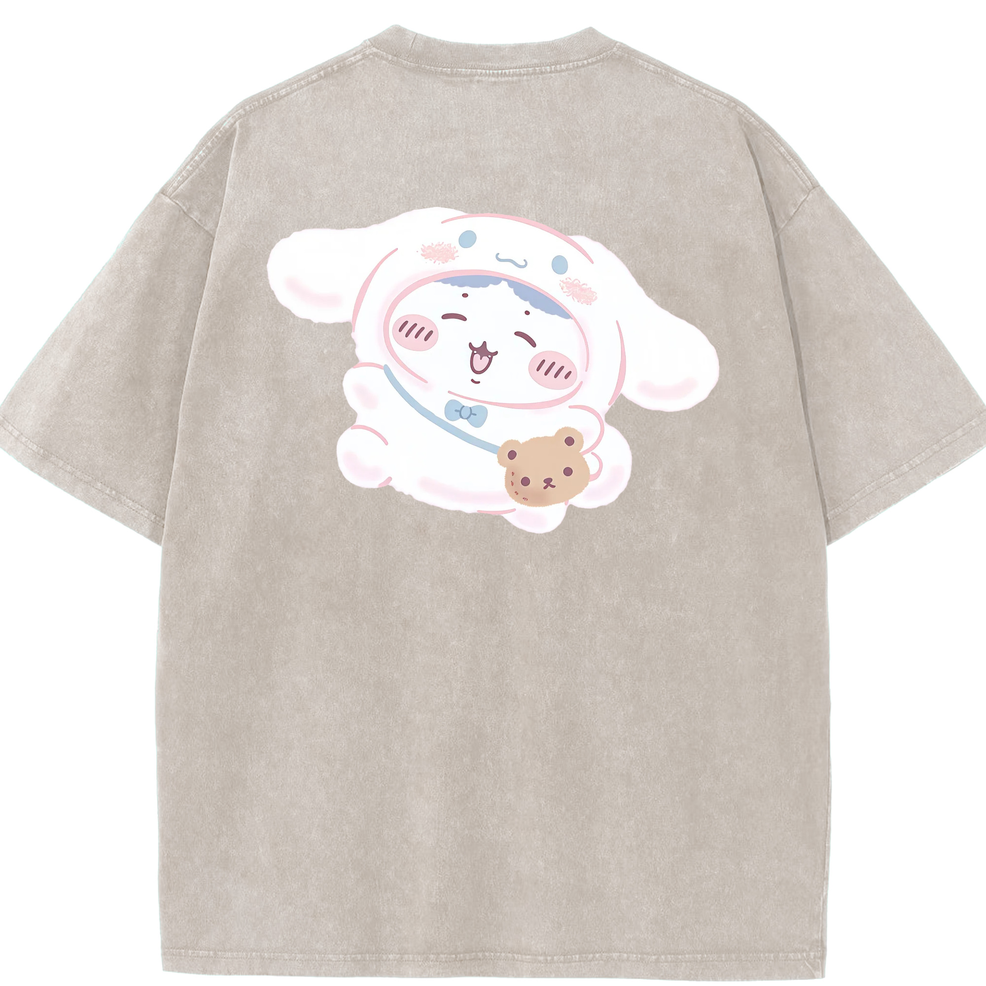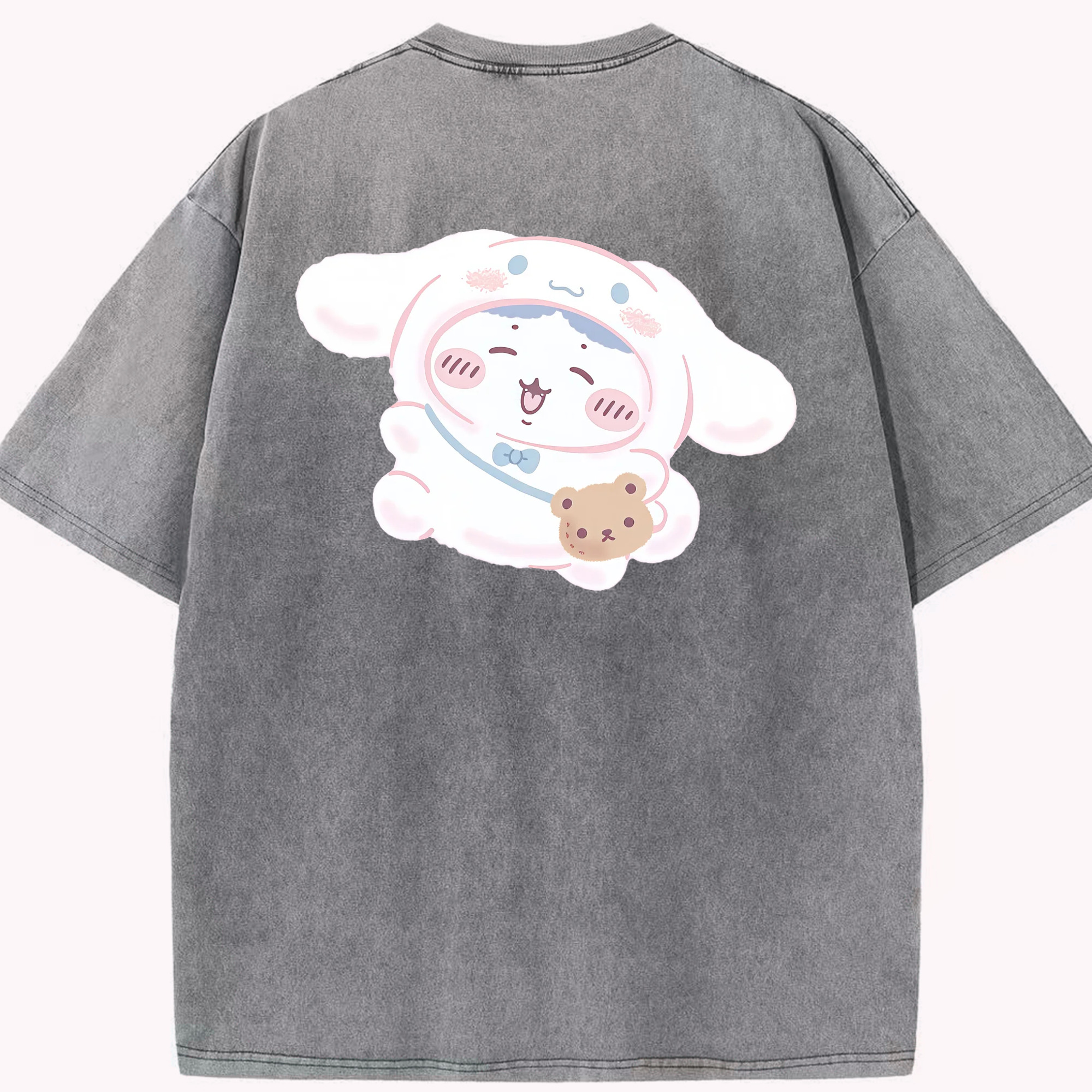 スイート系サンリオ - 綿100% ヴィンテージ風 半袖Tシャツ ・ 背面プリント ・ 柔らか肌触り ・ 通気性 快適 ・ スポーツ カジュアル 外出用