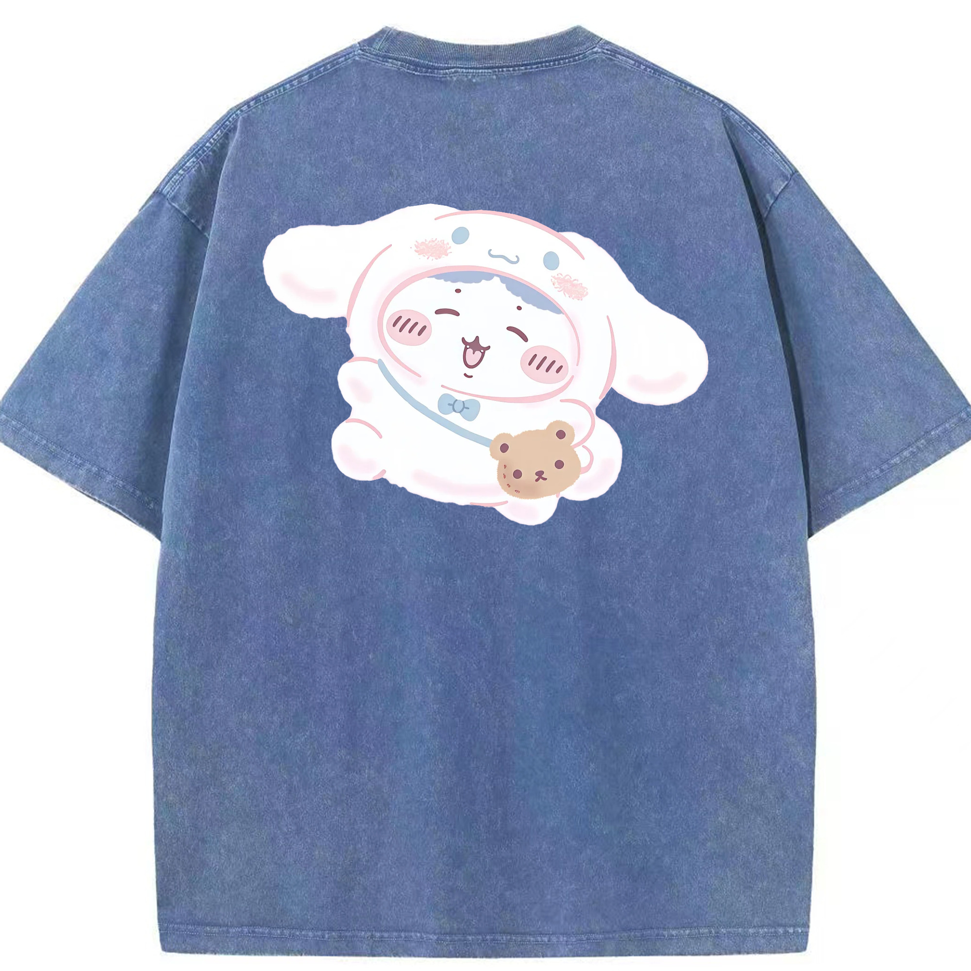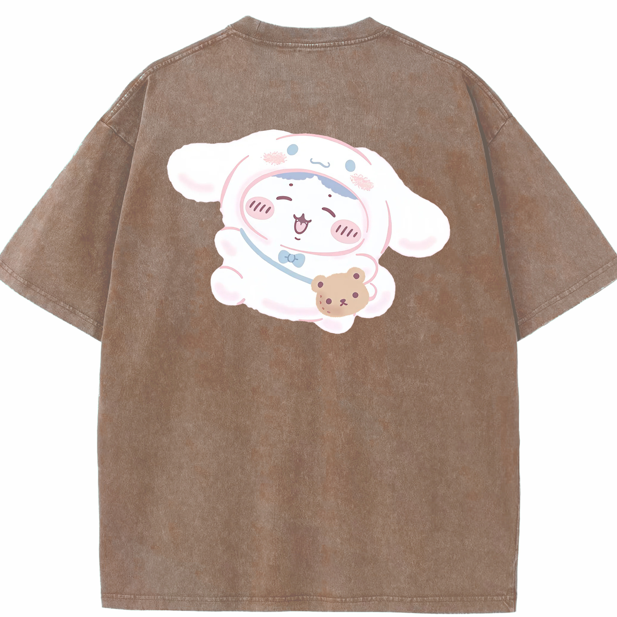 シナモロール&ちいかわ - 綿100% ヴィンテージ風 半袖Tシャツ ・ フロントプリント ・ 柔らか肌触り ・ 通気性 快適 ・ スポーツ カジュアル 外出用