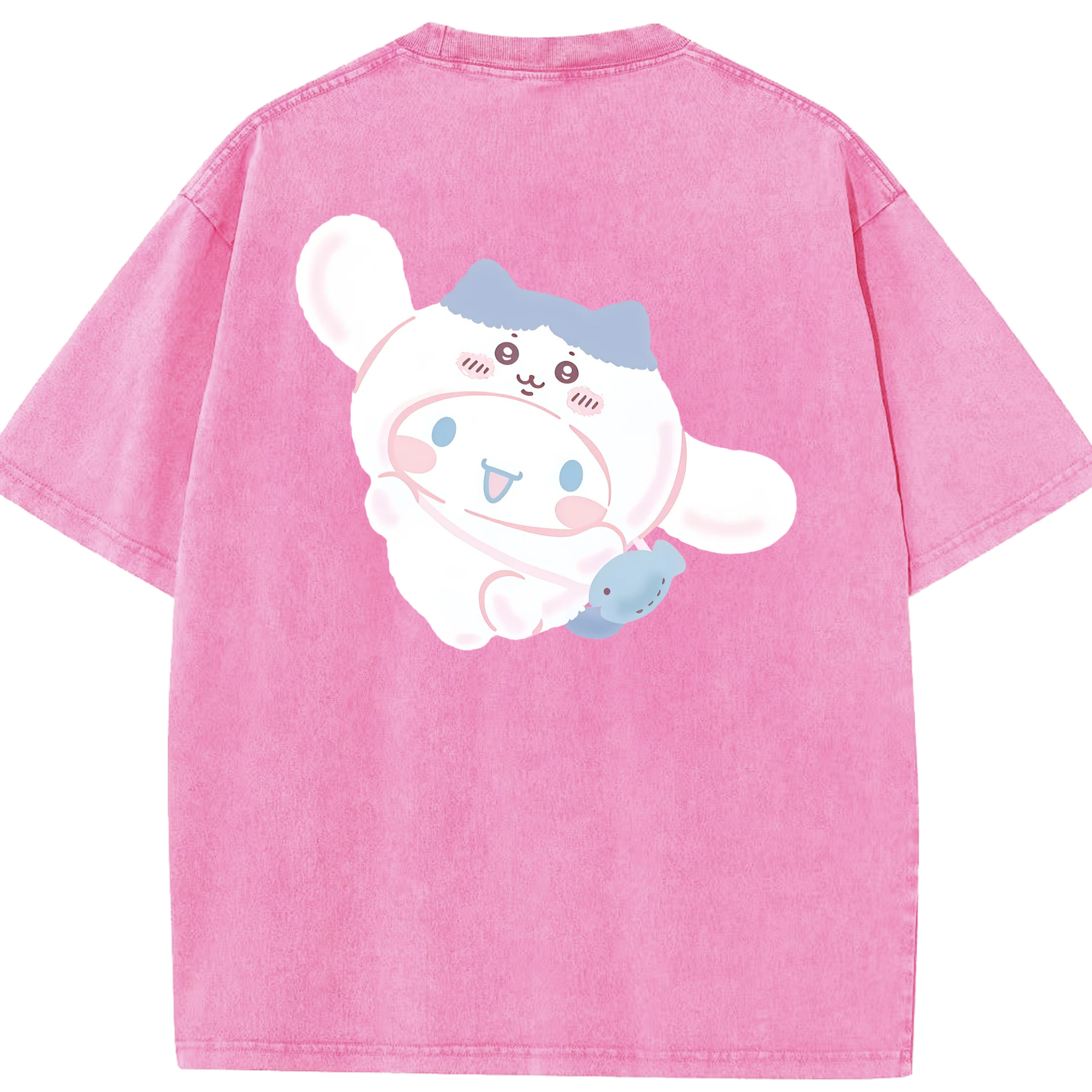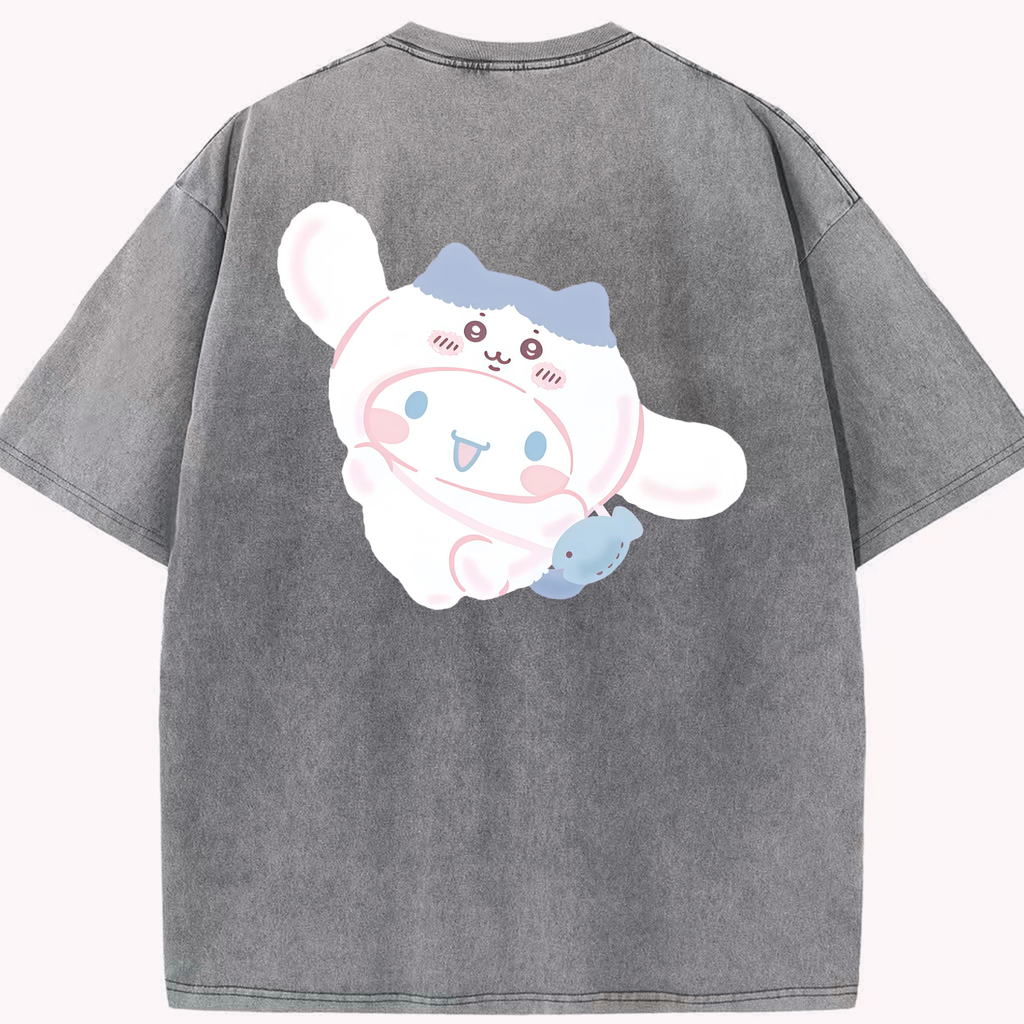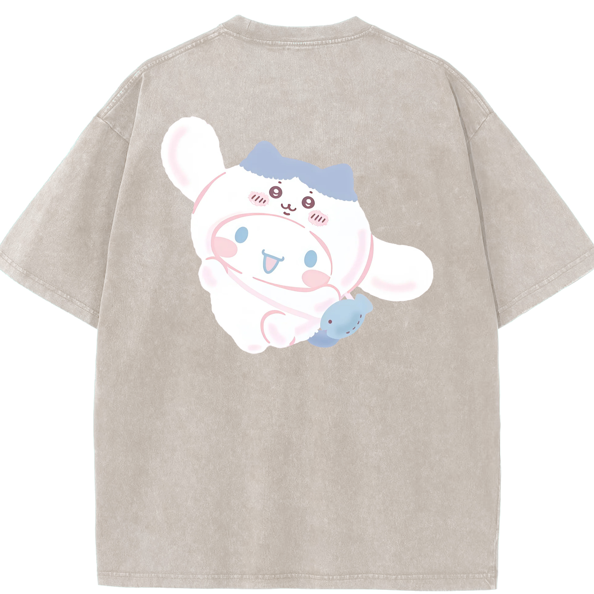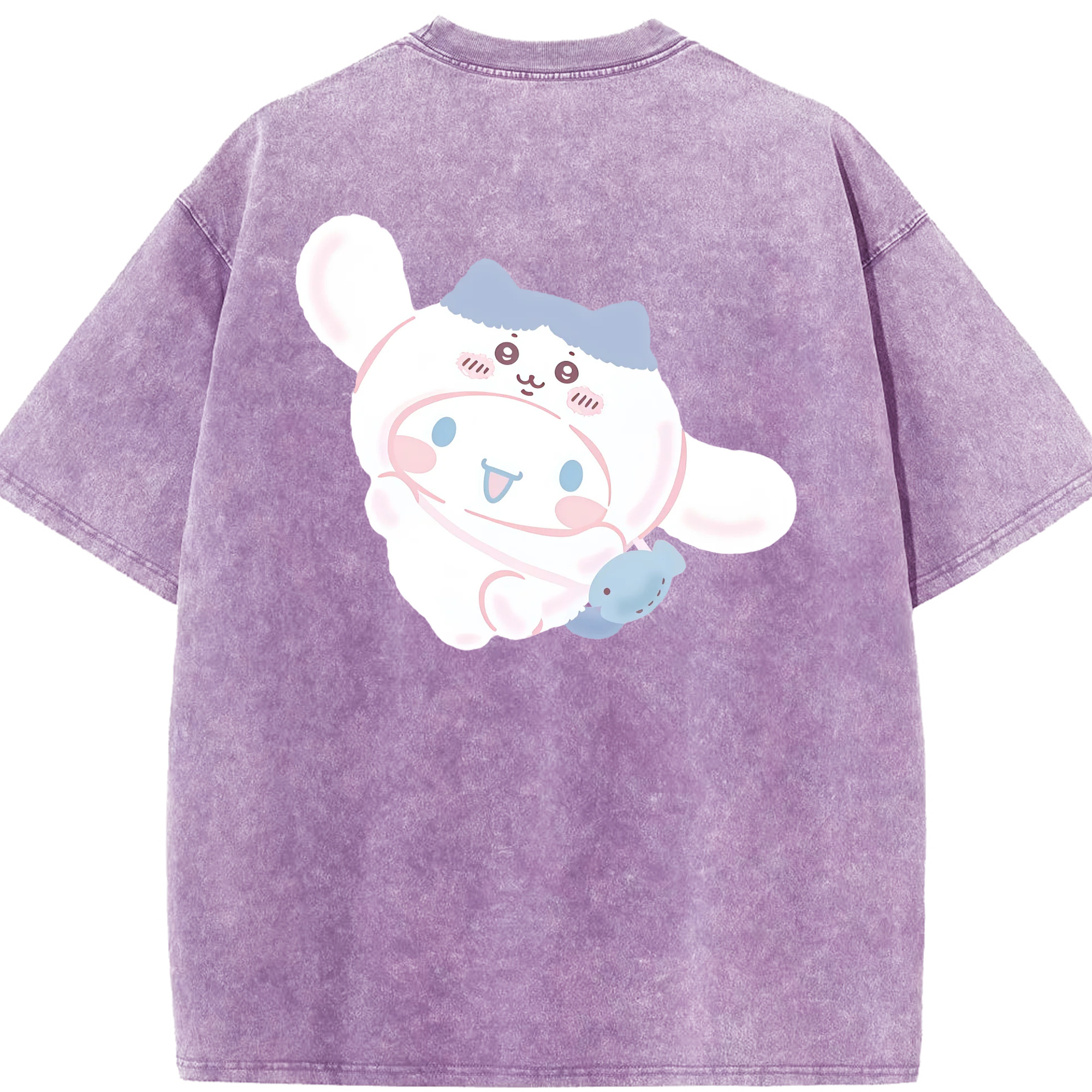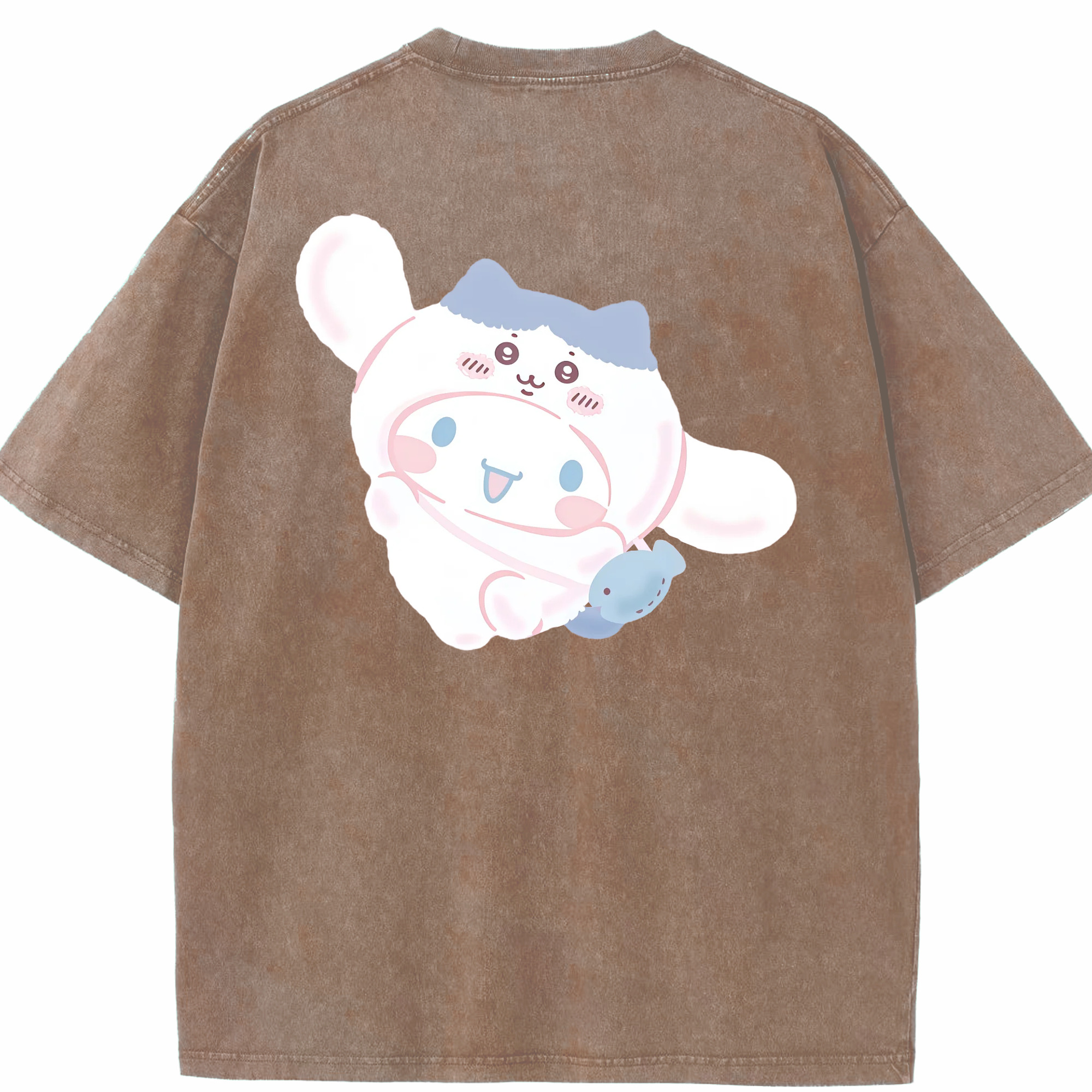 シナモロール&ちいかわ - 綿100% ヴィンテージ風 半袖Tシャツ ・ フロントプリント ・ 柔らか肌触り ・ 通気性 快適 ・ スポーツ カジュアル 外出用