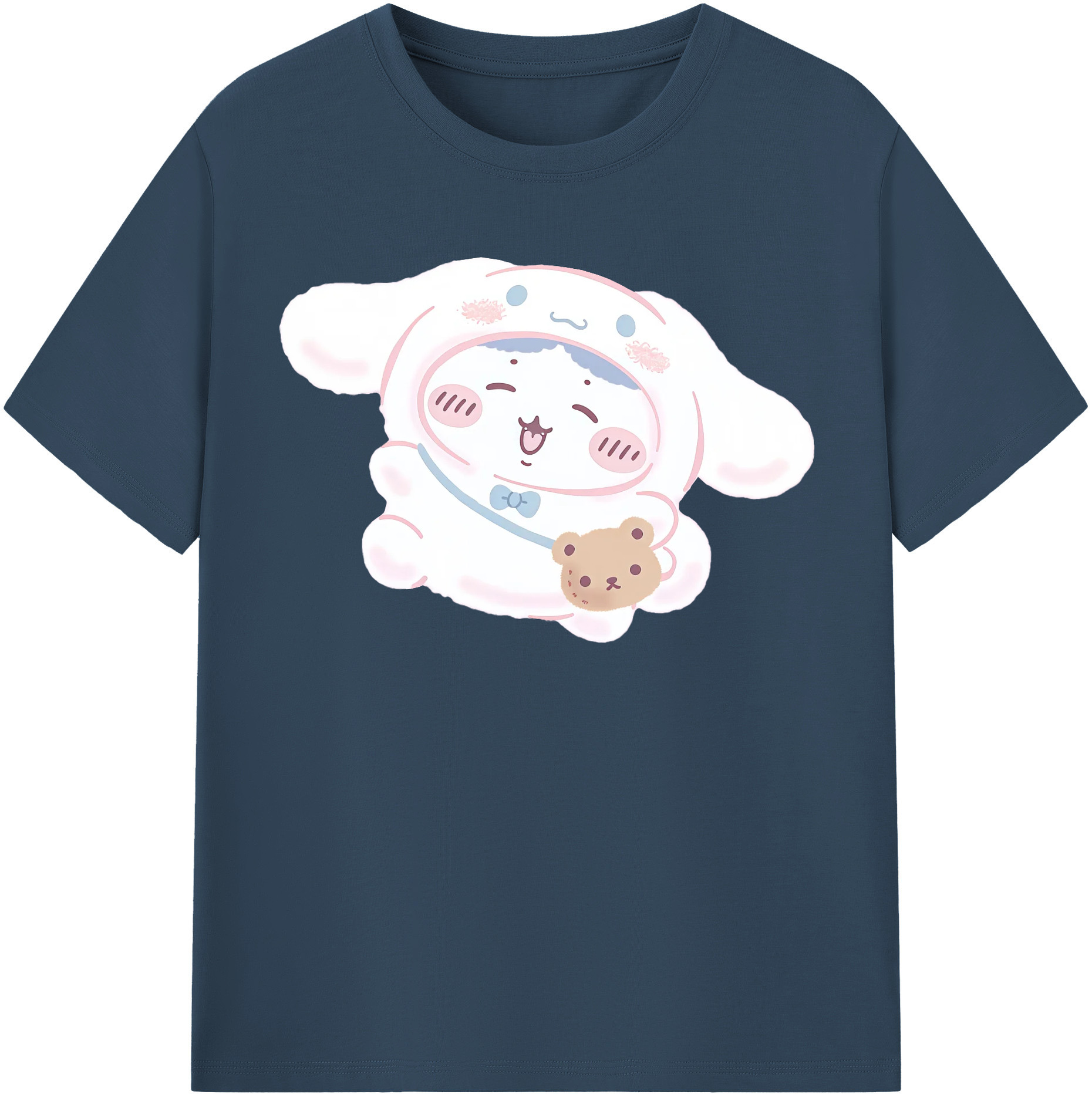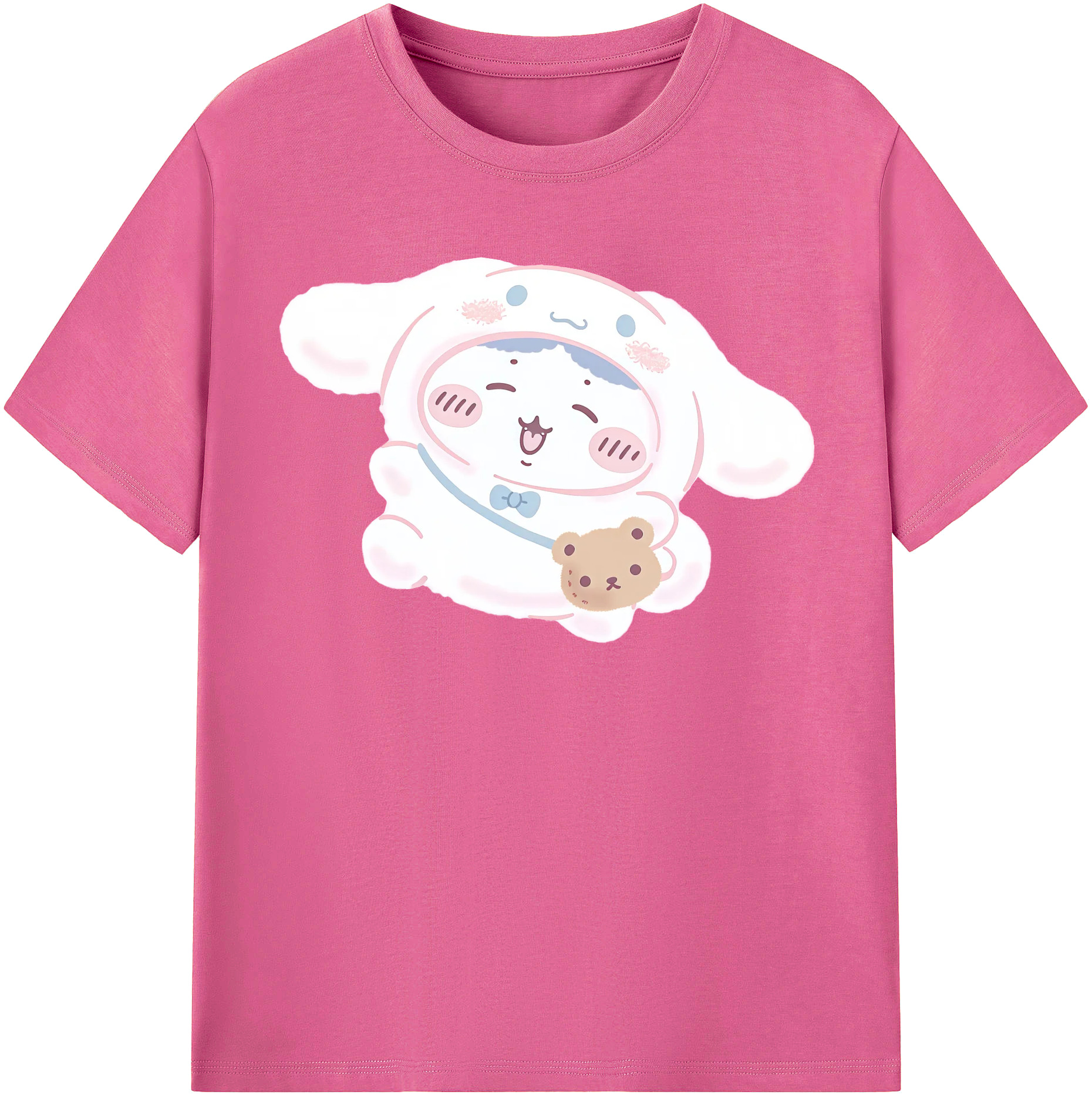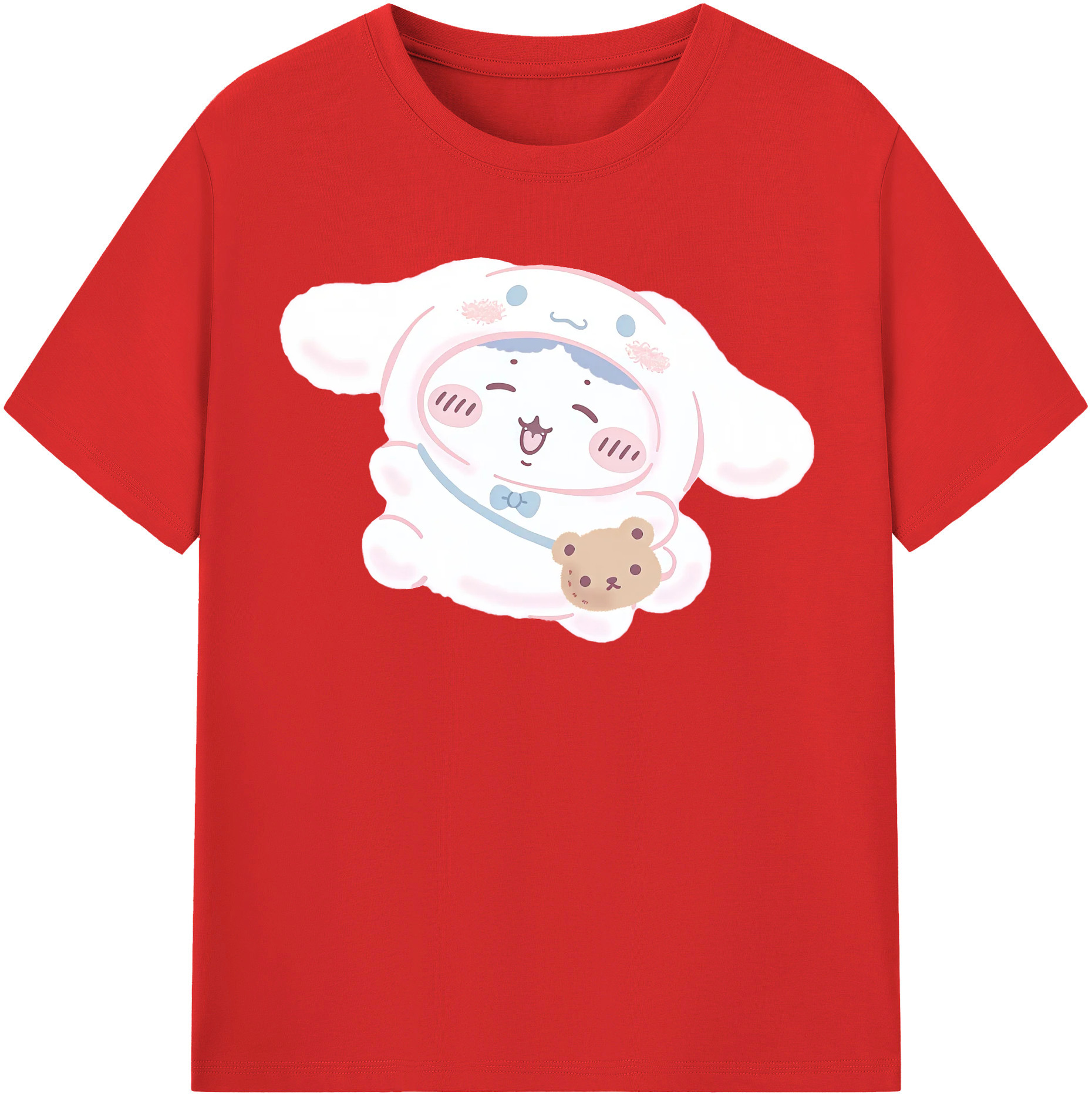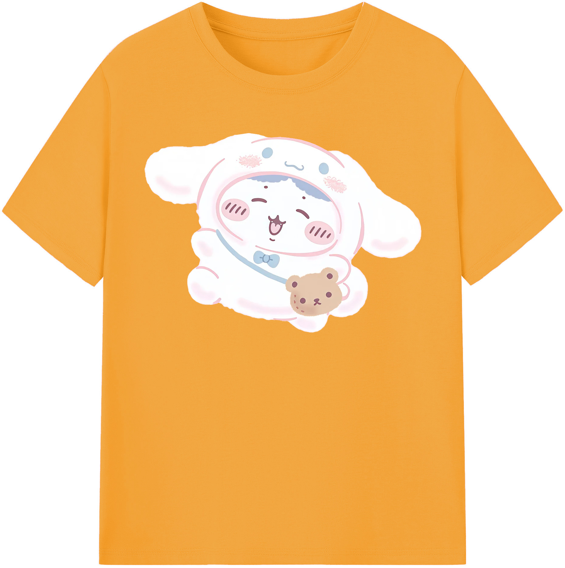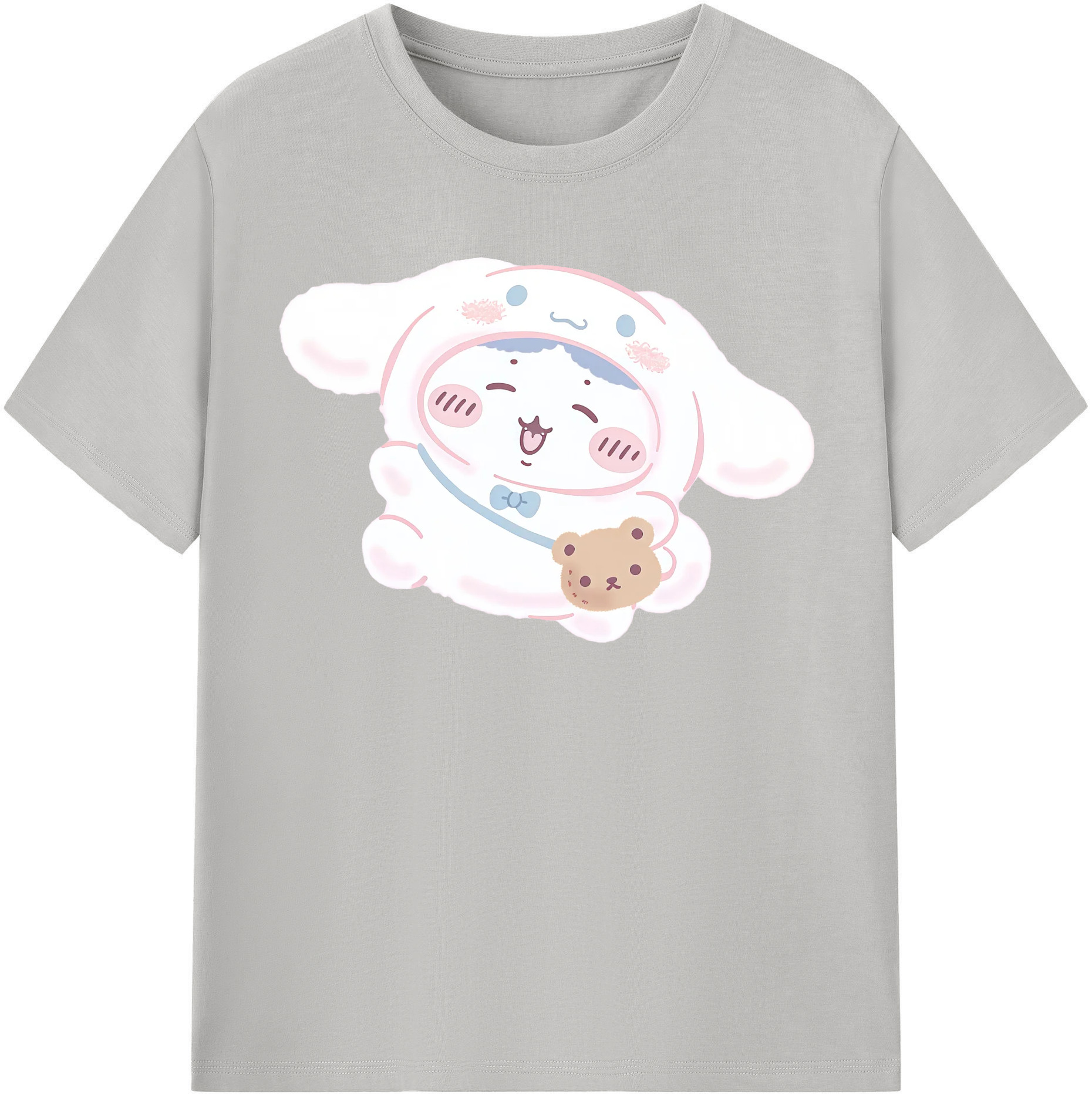 シナモロール&ちいかわ - 綿100% キッズTシャツ ・ フロントプリント ・ 快適 通気性 ・ スポーツ カジュアル 散歩用