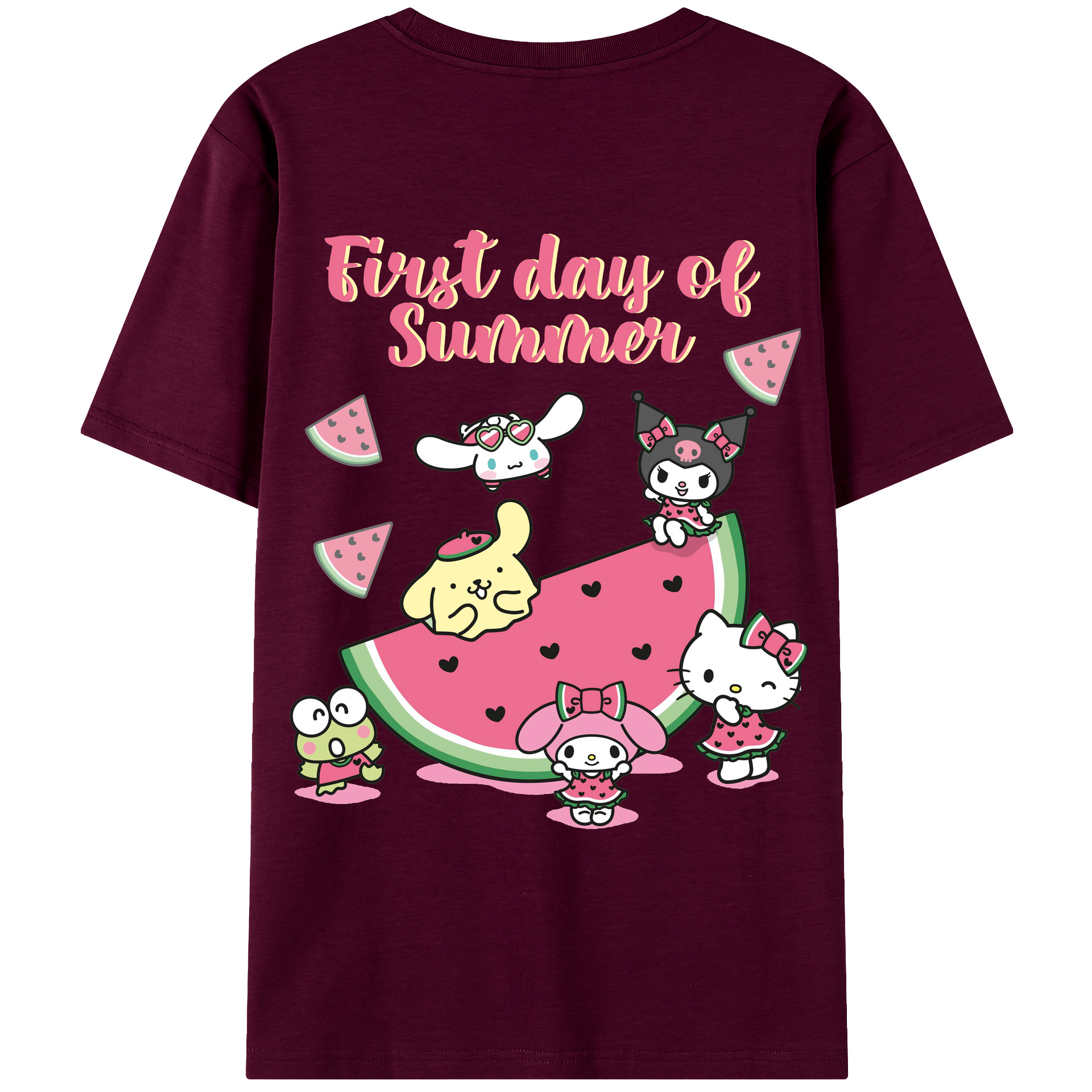 スイカサンリオ - 綿100% ヴィンテージ風 半袖Tシャツ ・ フロントプリント ・ 柔らか肌触り ・ 通気性 快適 ・ スポーツ カジュアル 外出用