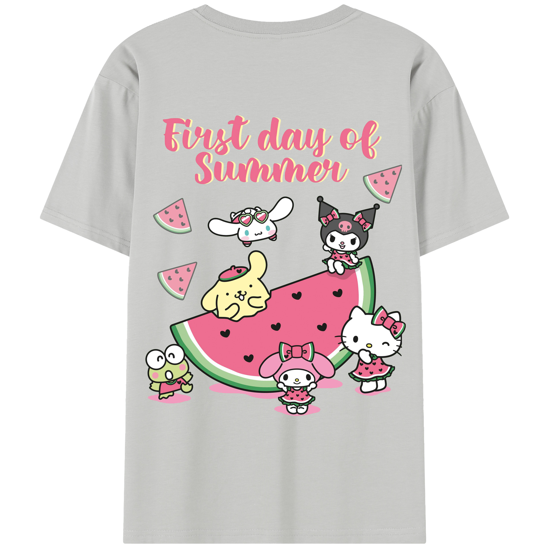 スイカサンリオ - 綿100% ヴィンテージ風 半袖Tシャツ ・ 背面プリント ・ 柔らか肌触り ・ 通気性 快適 ・ スポーツ カジュアル 外出用