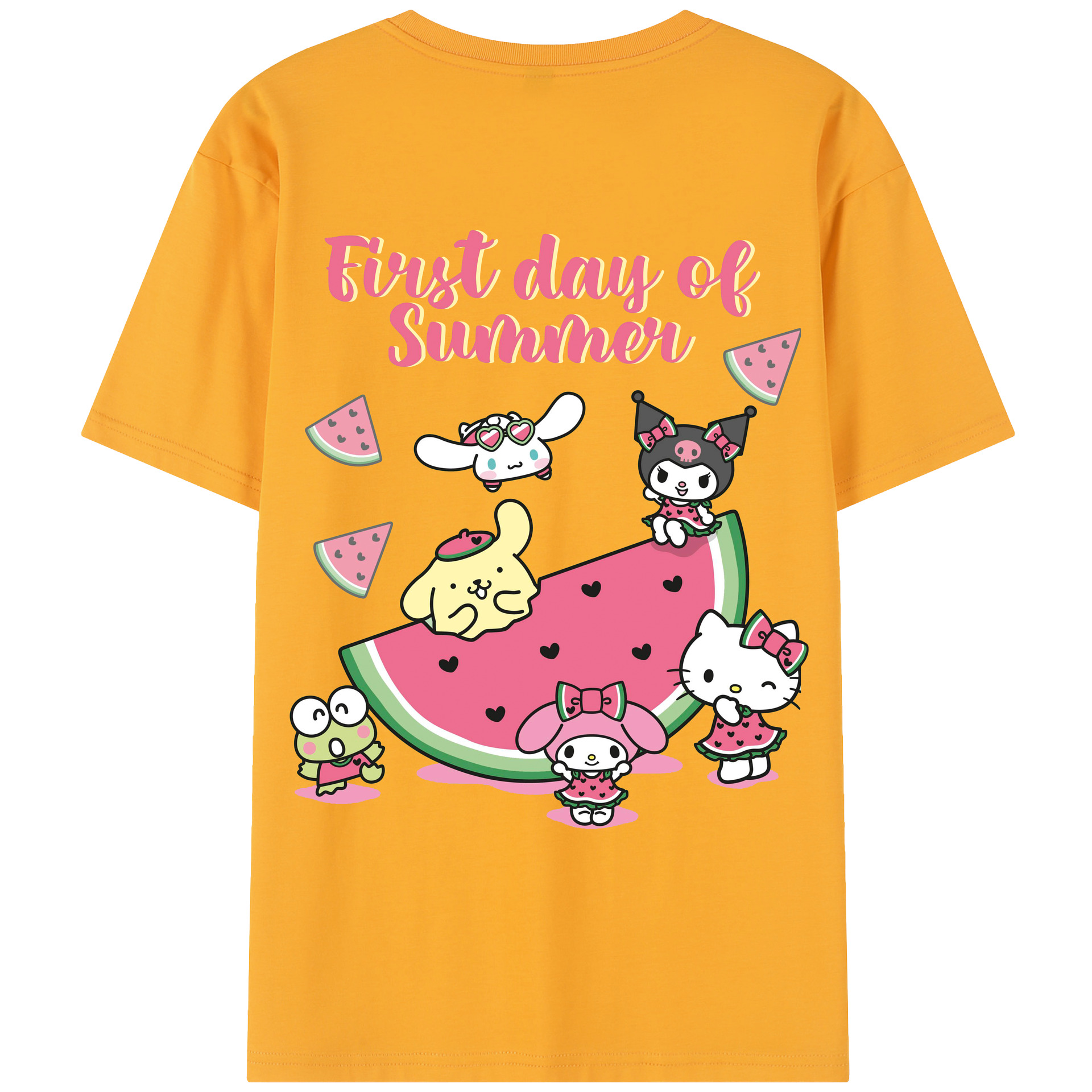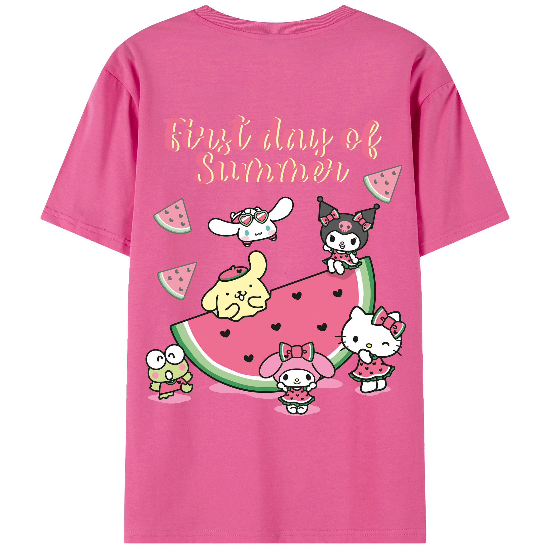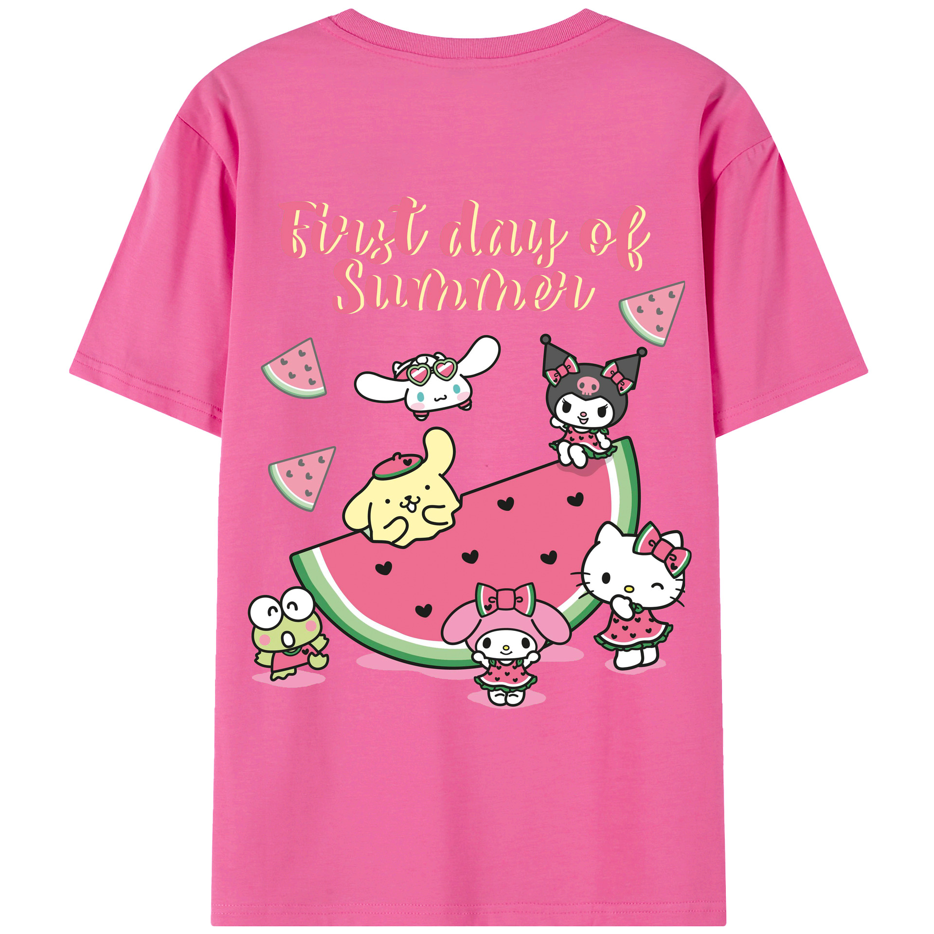 スイカサンリオ - 綿100% キッズTシャツ ・ フロントプリント ・ 快適 通気性 ・ スポーツ カジュアル 散歩用