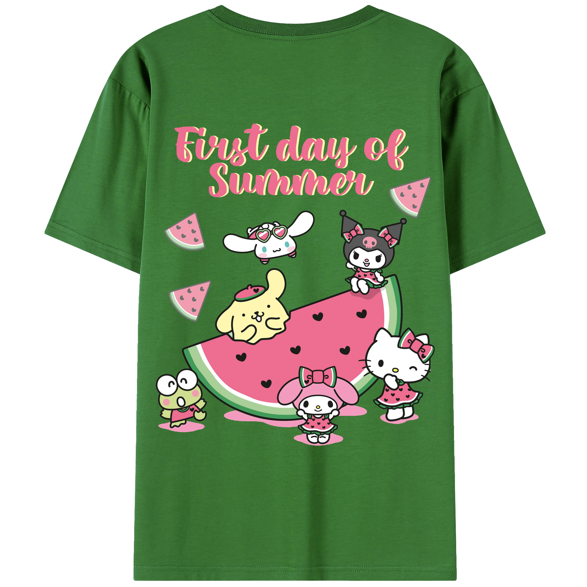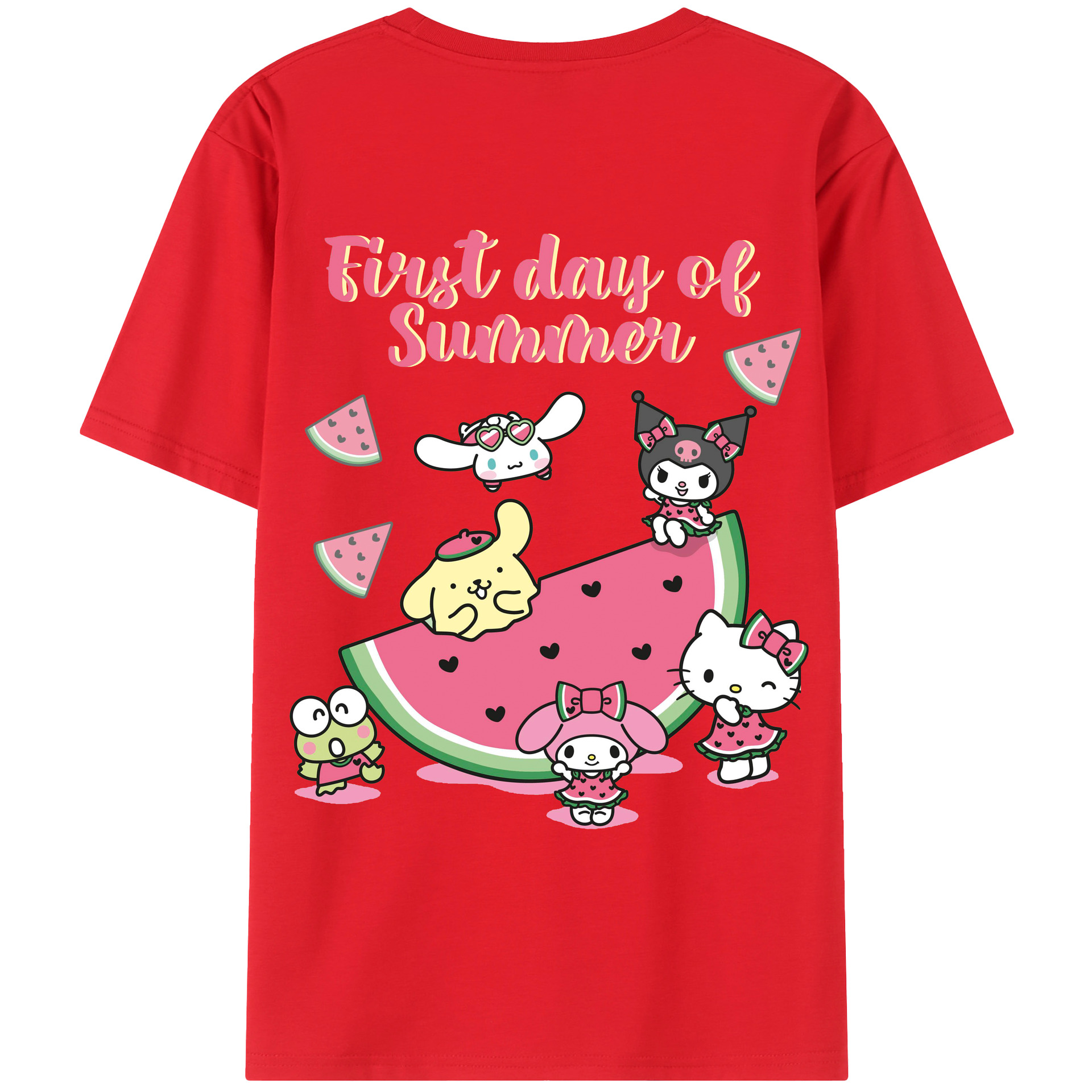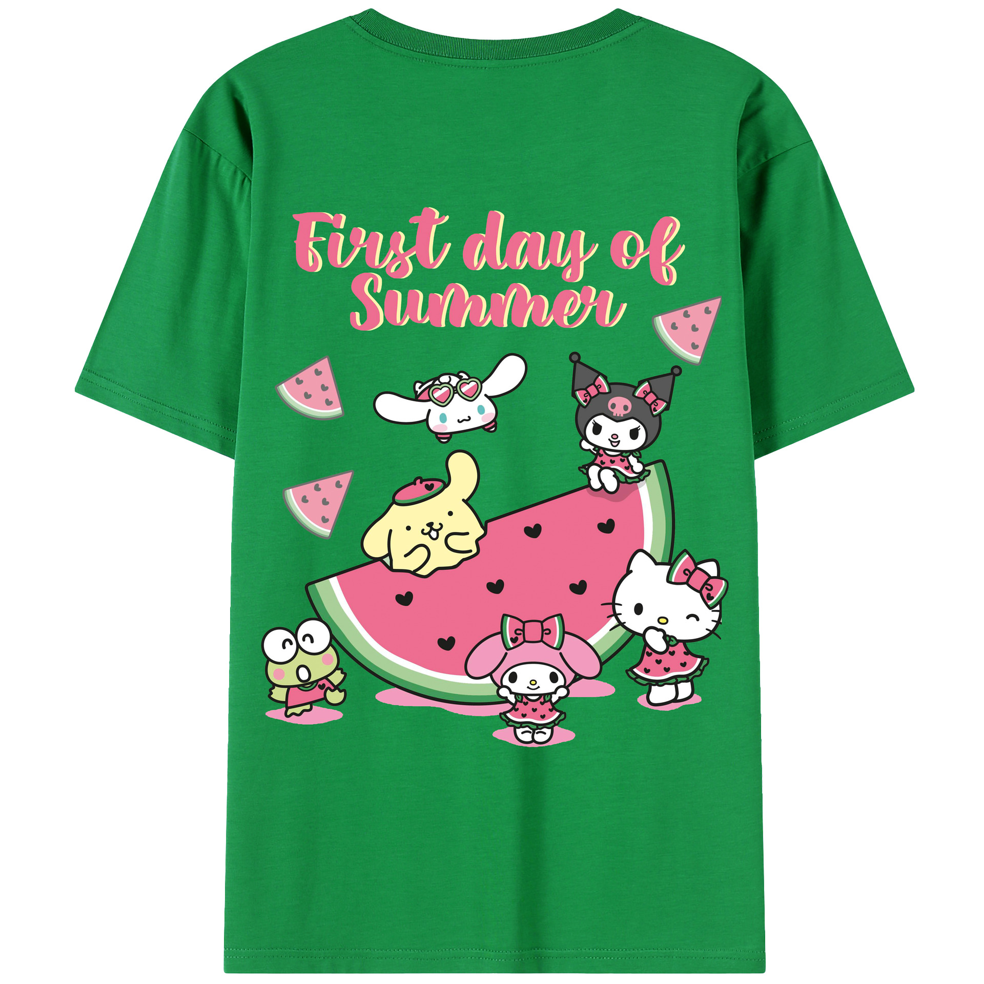スイカサンリオ - 綿100% キッズTシャツ ・ フロントプリント ・ 快適 通気性 ・ スポーツ カジュアル 散歩用