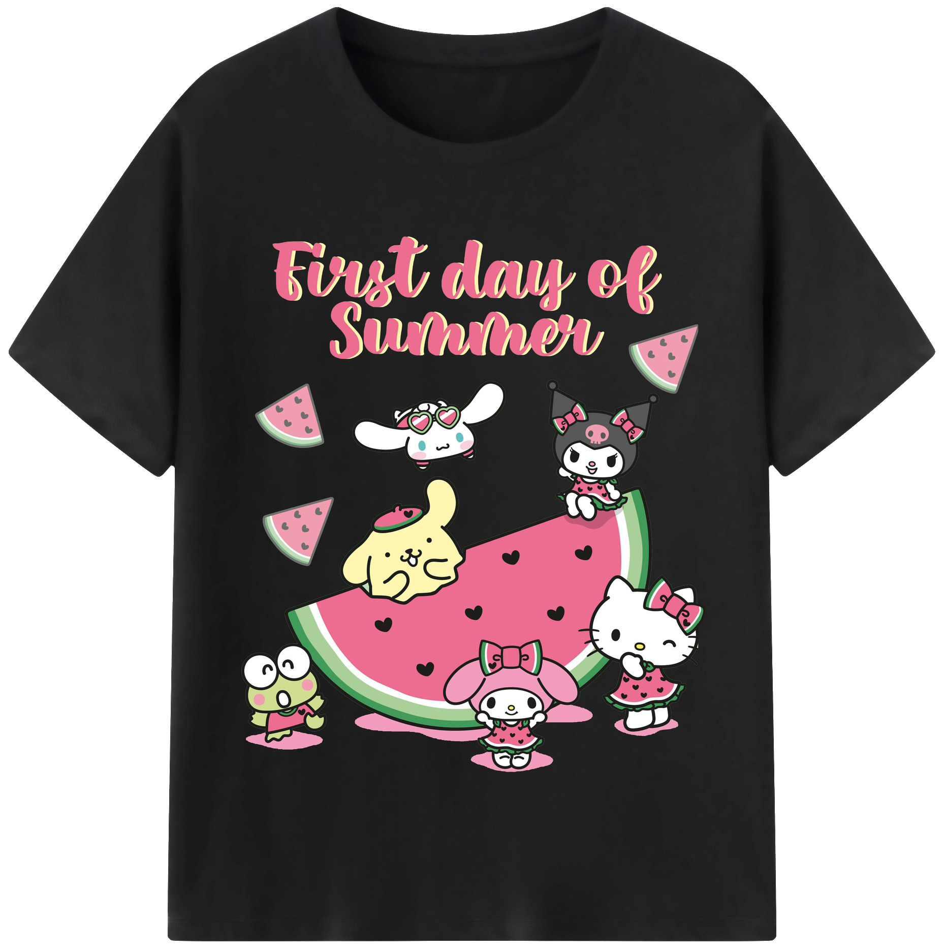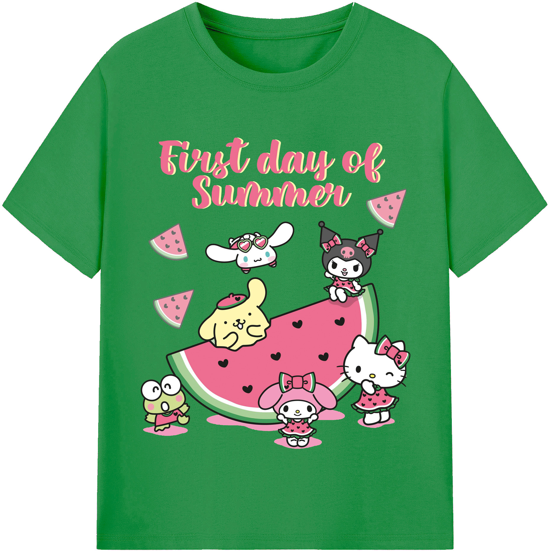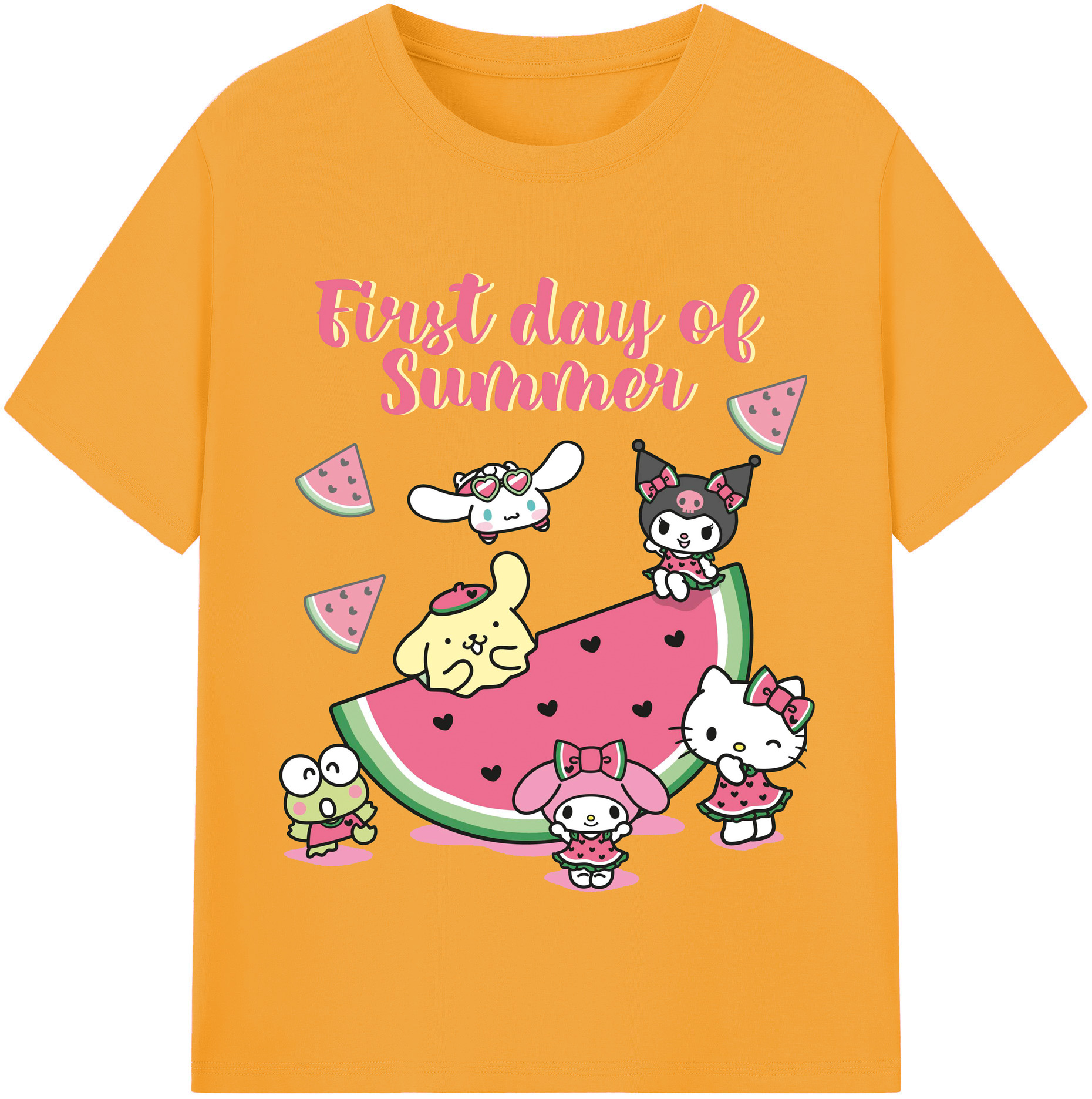 スイカサンリオ - 綿100% キッズTシャツ ・ フロントプリント ・ 快適 通気性 ・ スポーツ カジュアル 散歩用