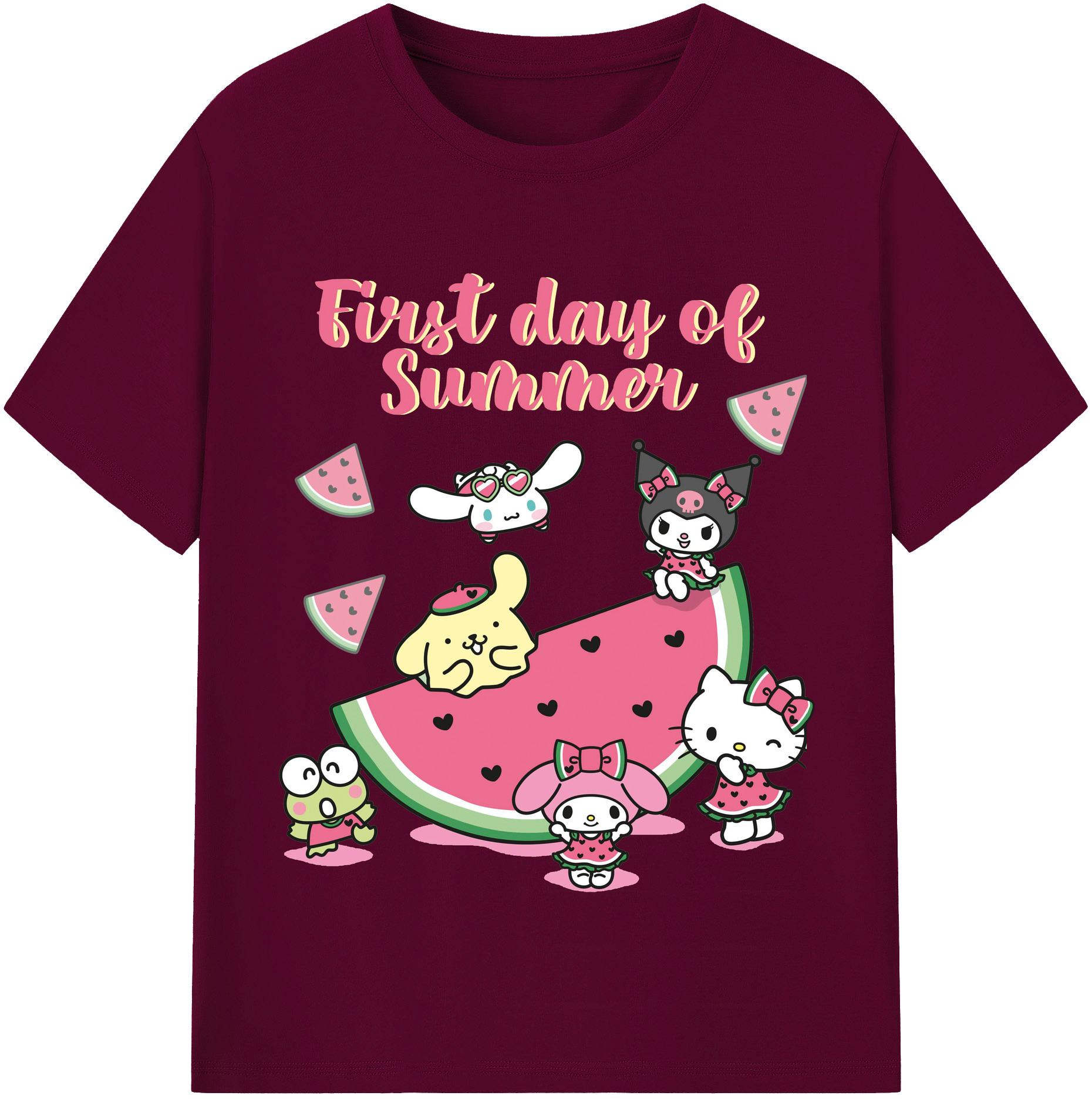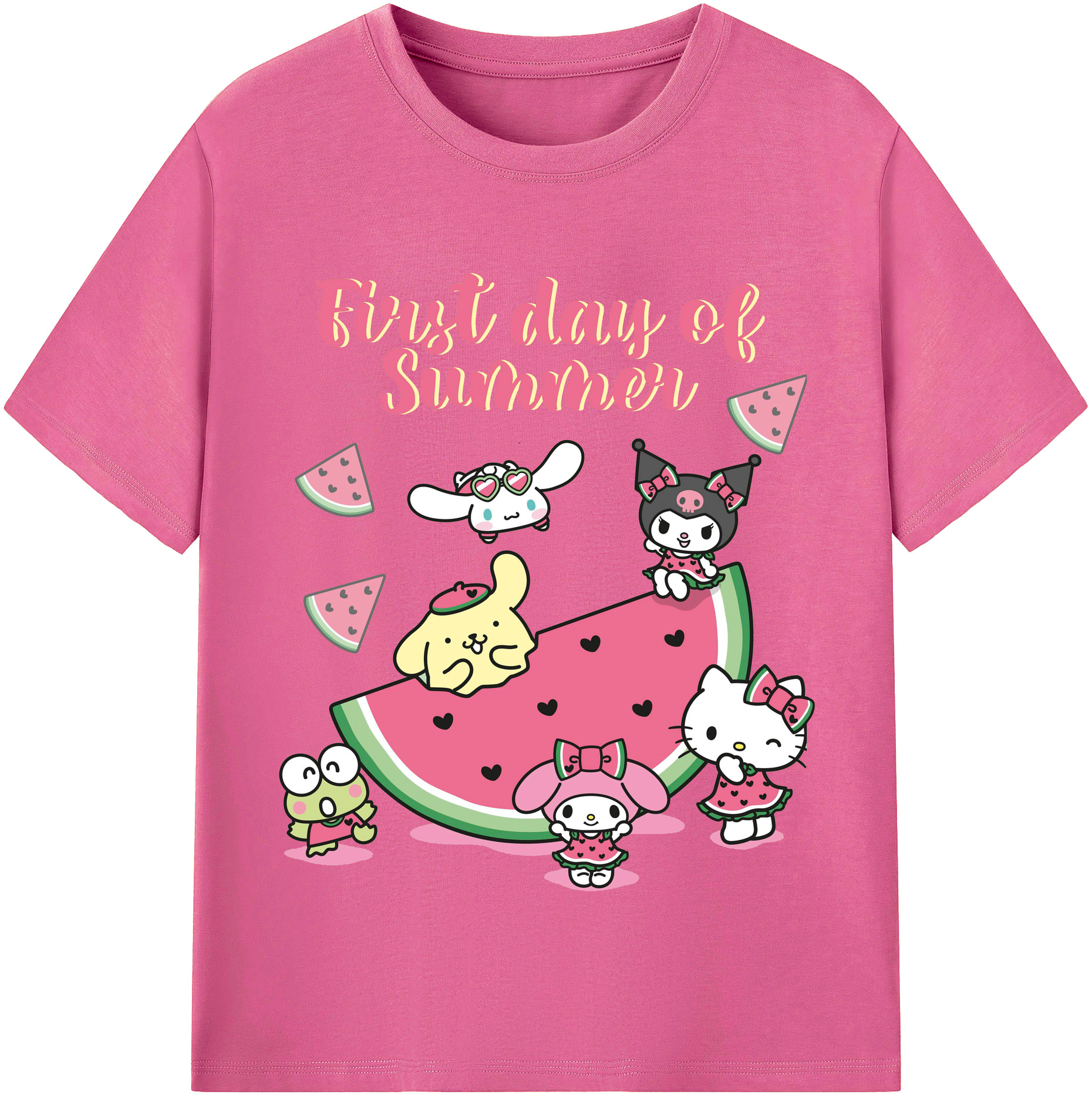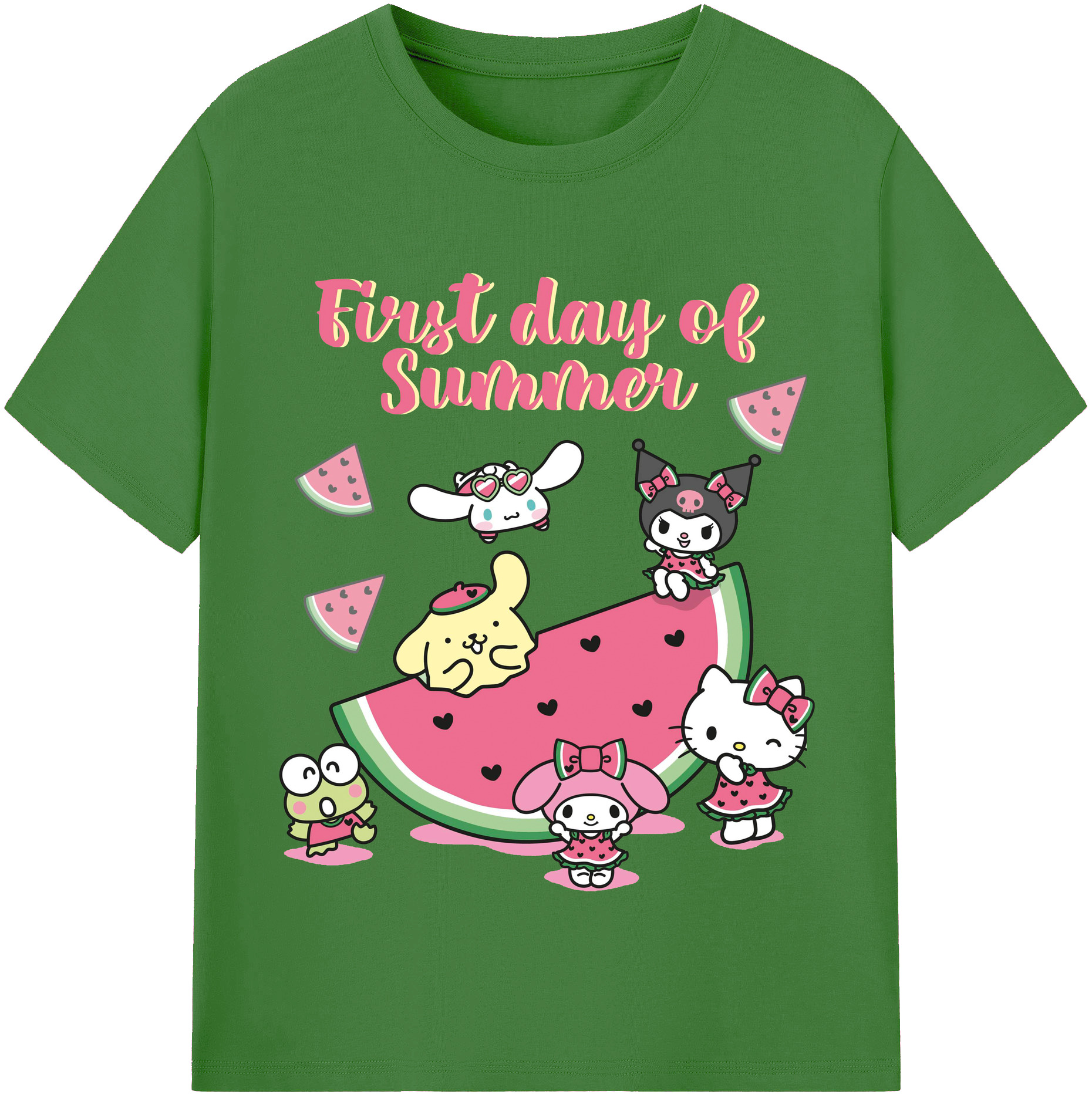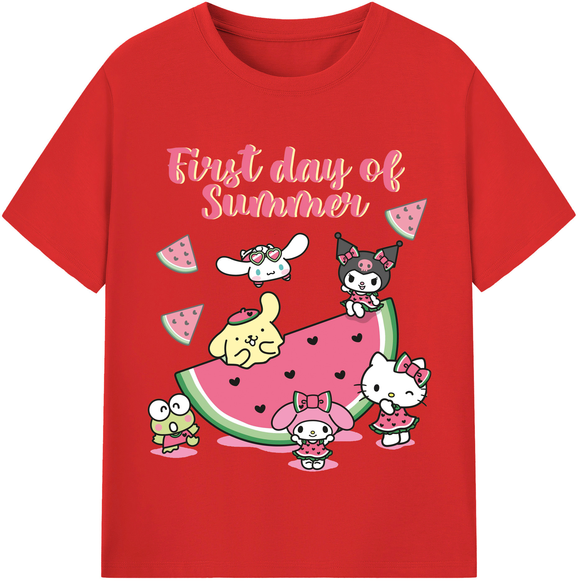 スイカサンリオ - 綿100% キッズTシャツ ・ フロントプリント ・ 快適 通気性 ・ スポーツ カジュアル 散歩用