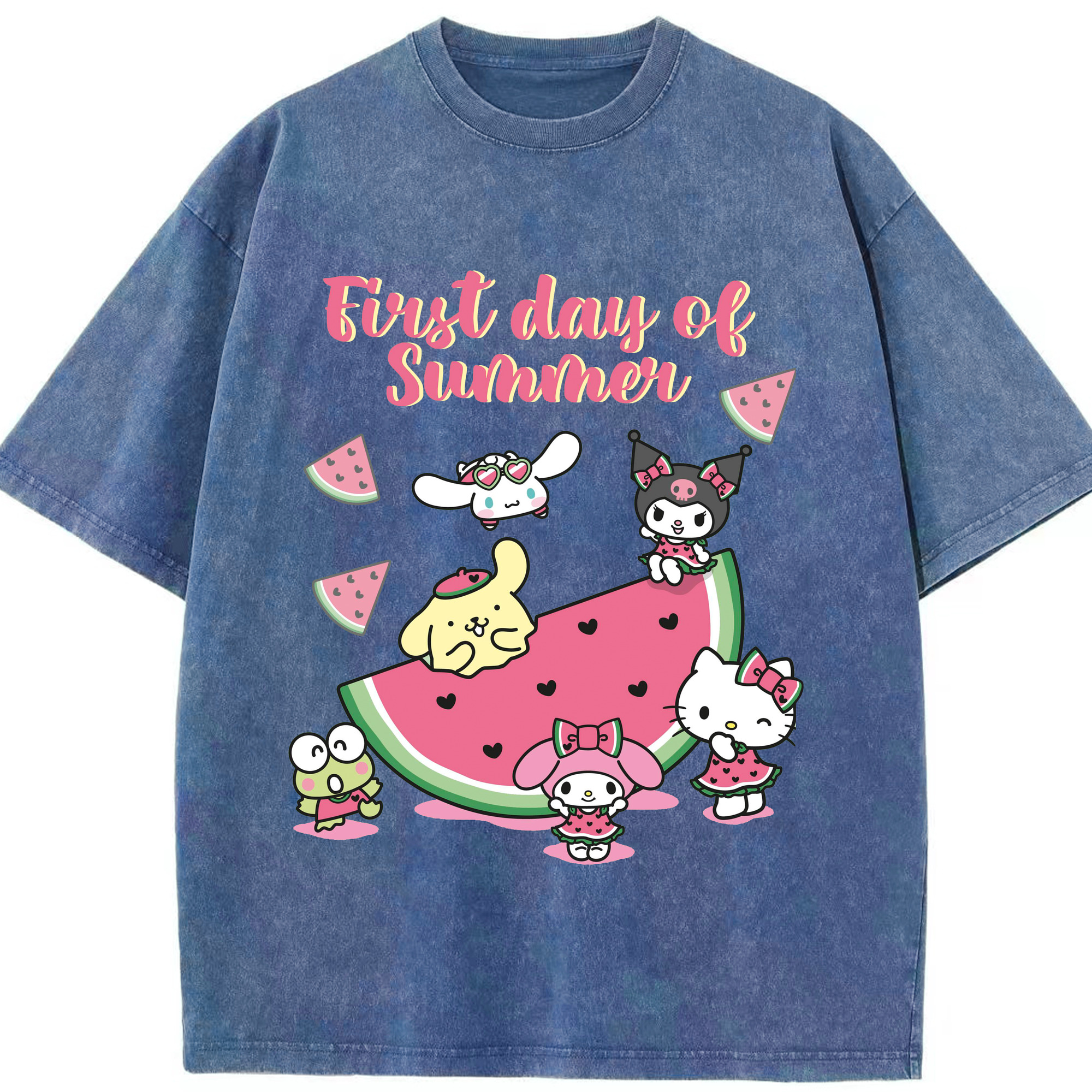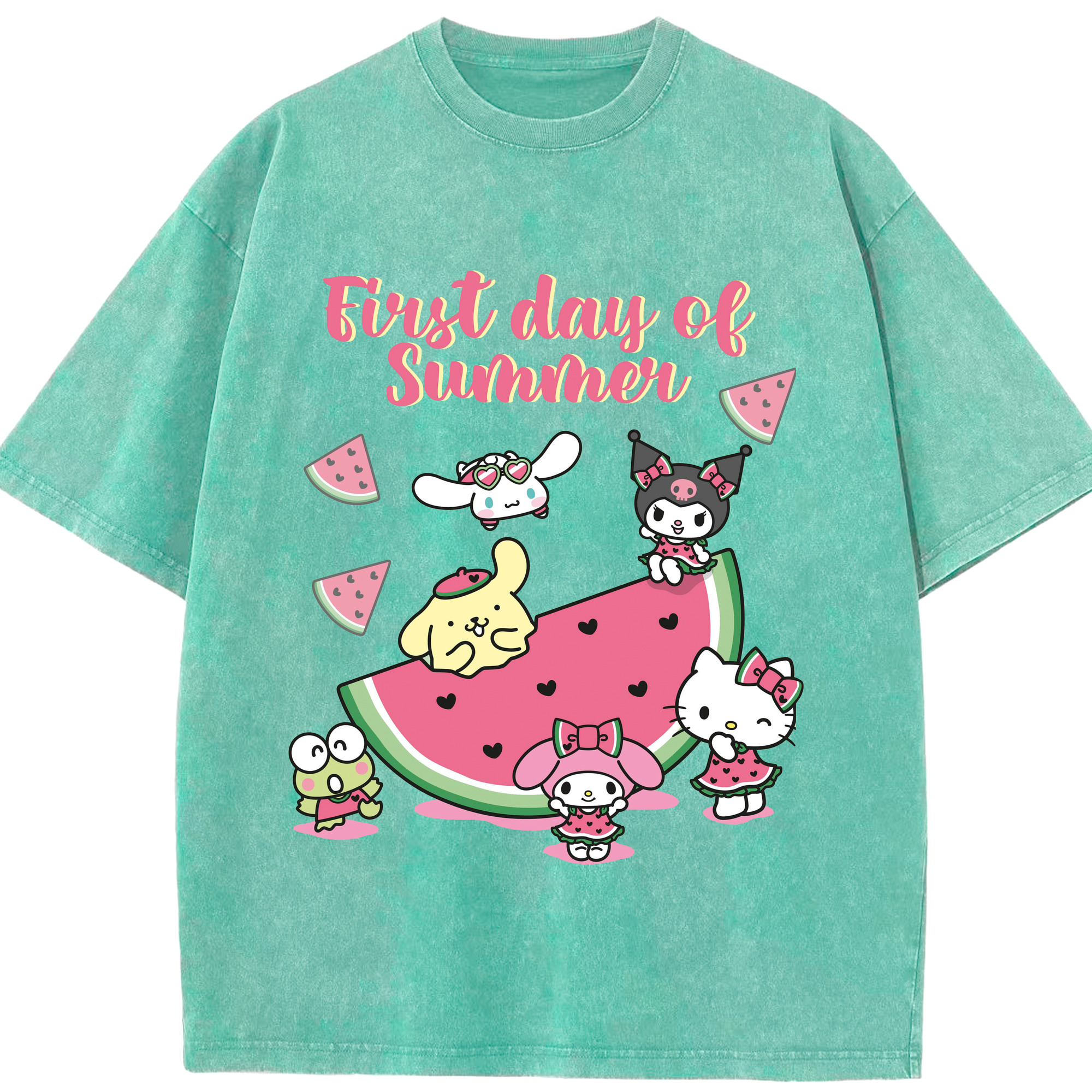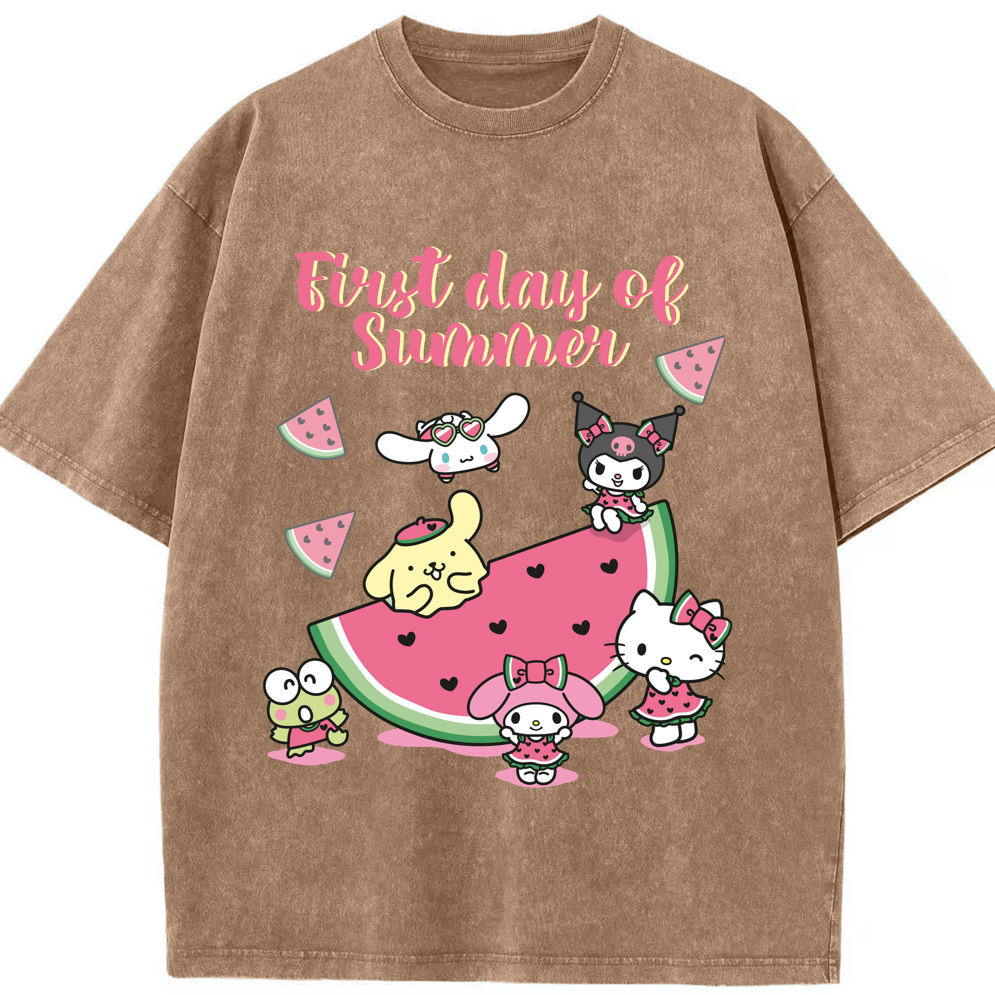 スイカサンリオ - 綿100% ヴィンテージ風 半袖Tシャツ ・ 背面プリント ・ 柔らか肌触り ・ 通気性 快適 ・ スポーツ カジュアル 外出用