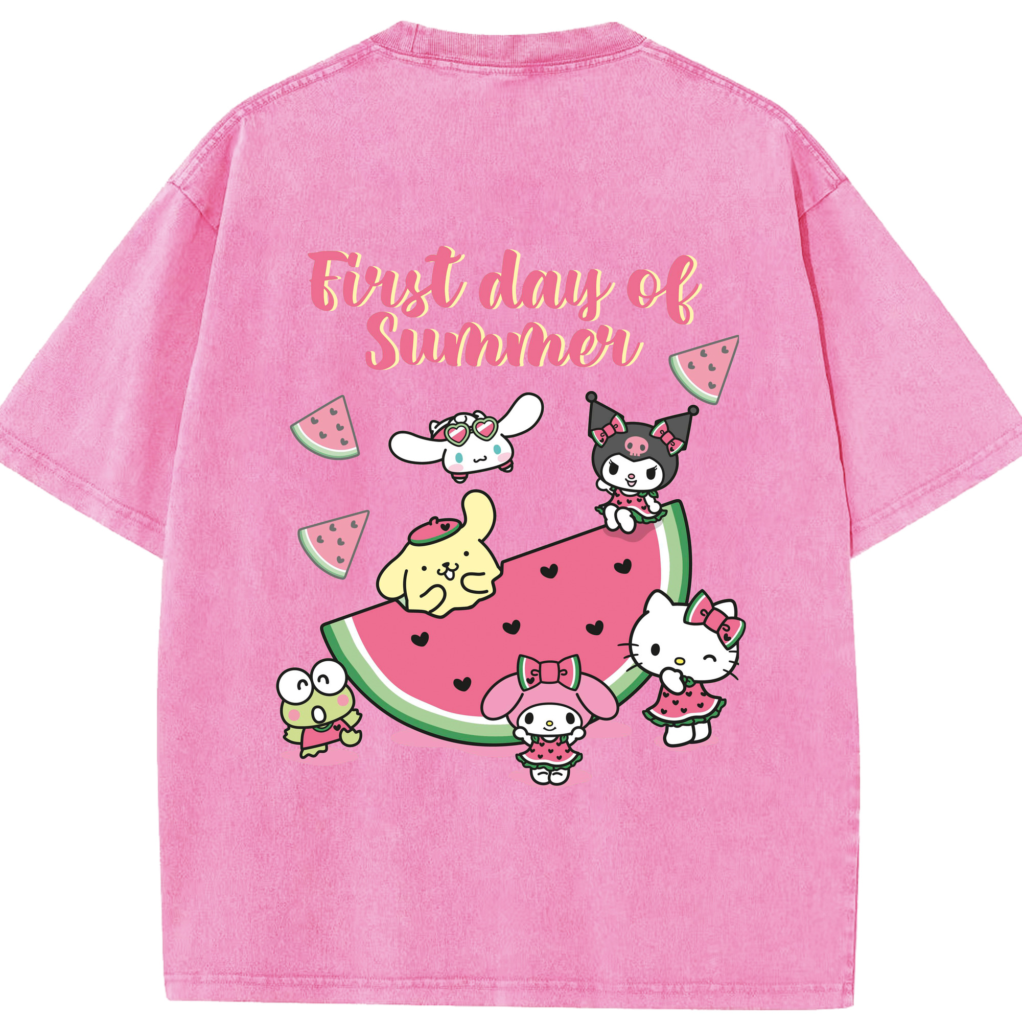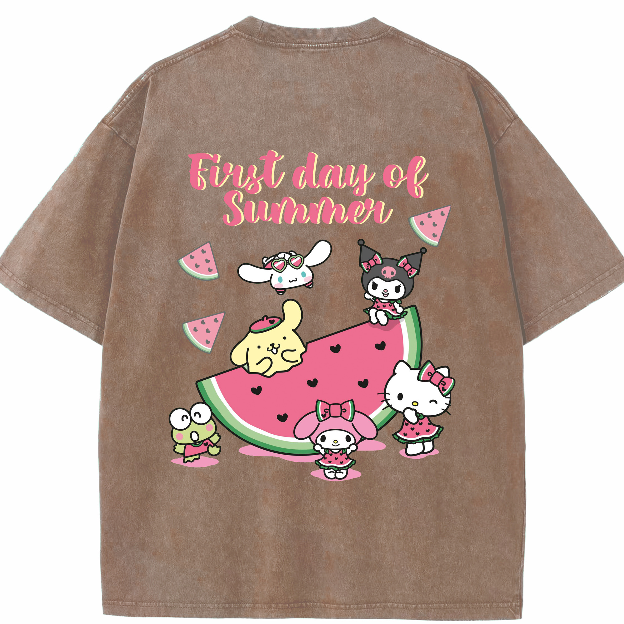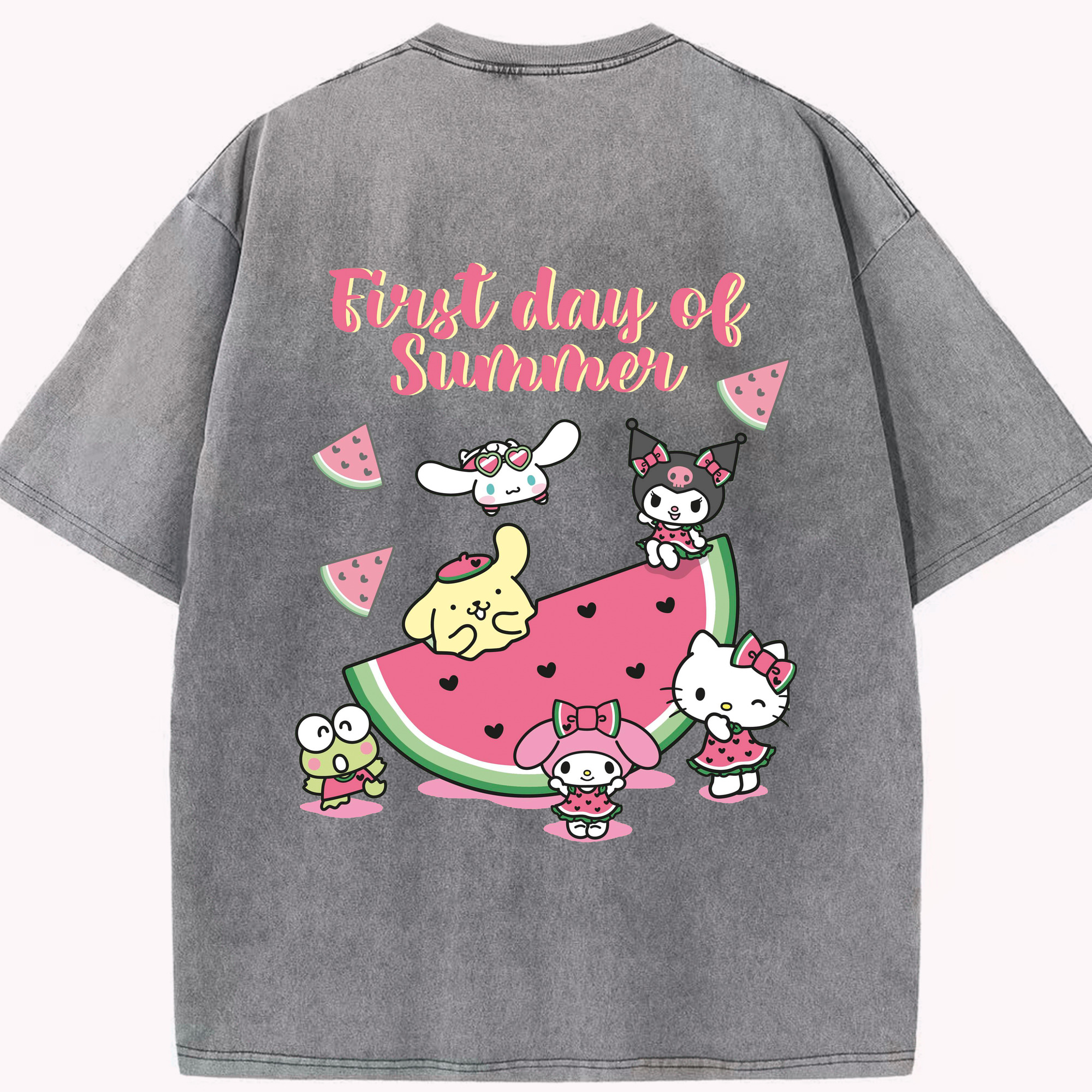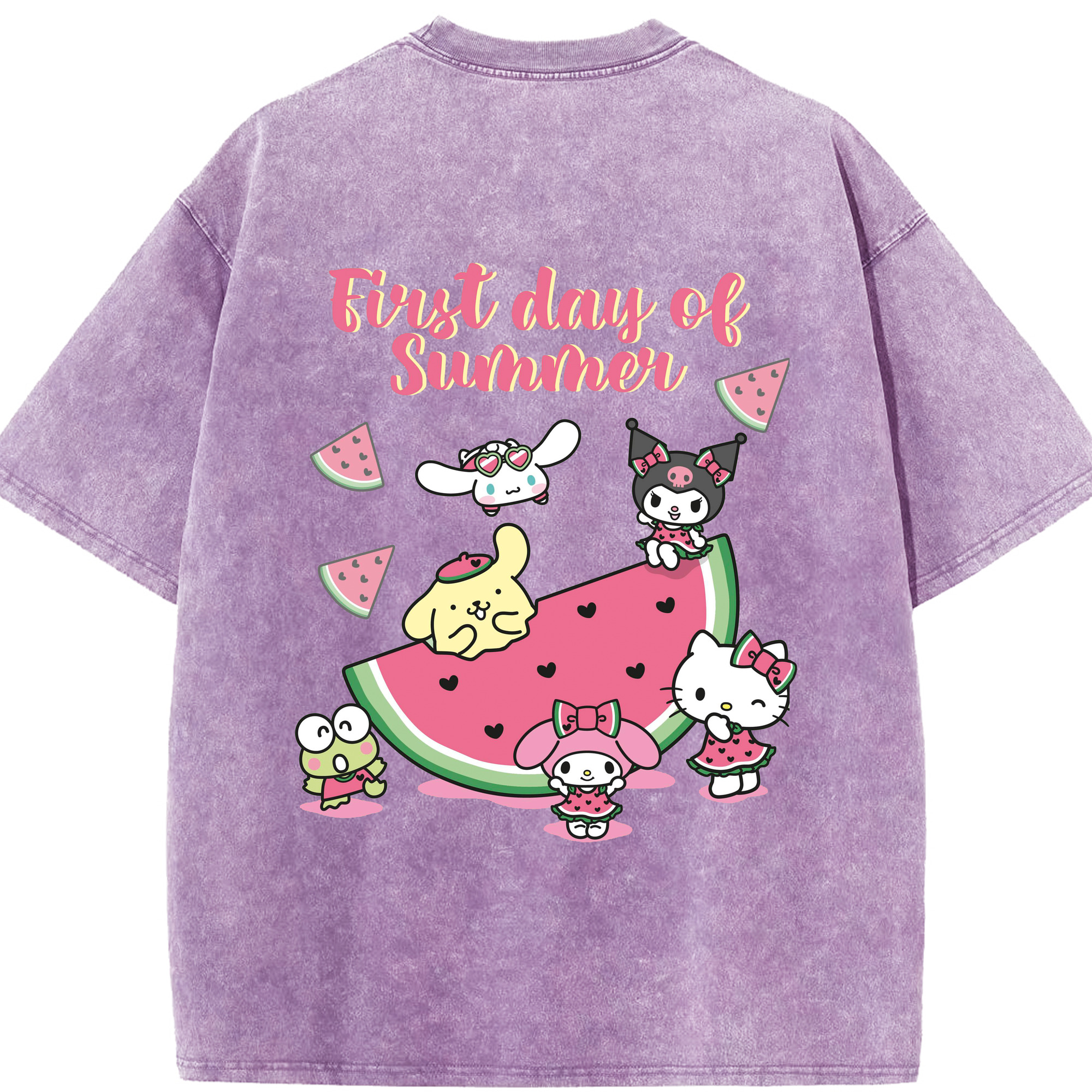 スイカサンリオ - 綿100% ヴィンテージ風 半袖Tシャツ ・ フロントプリント ・ 柔らか肌触り ・ 通気性 快適 ・ スポーツ カジュアル 外出用