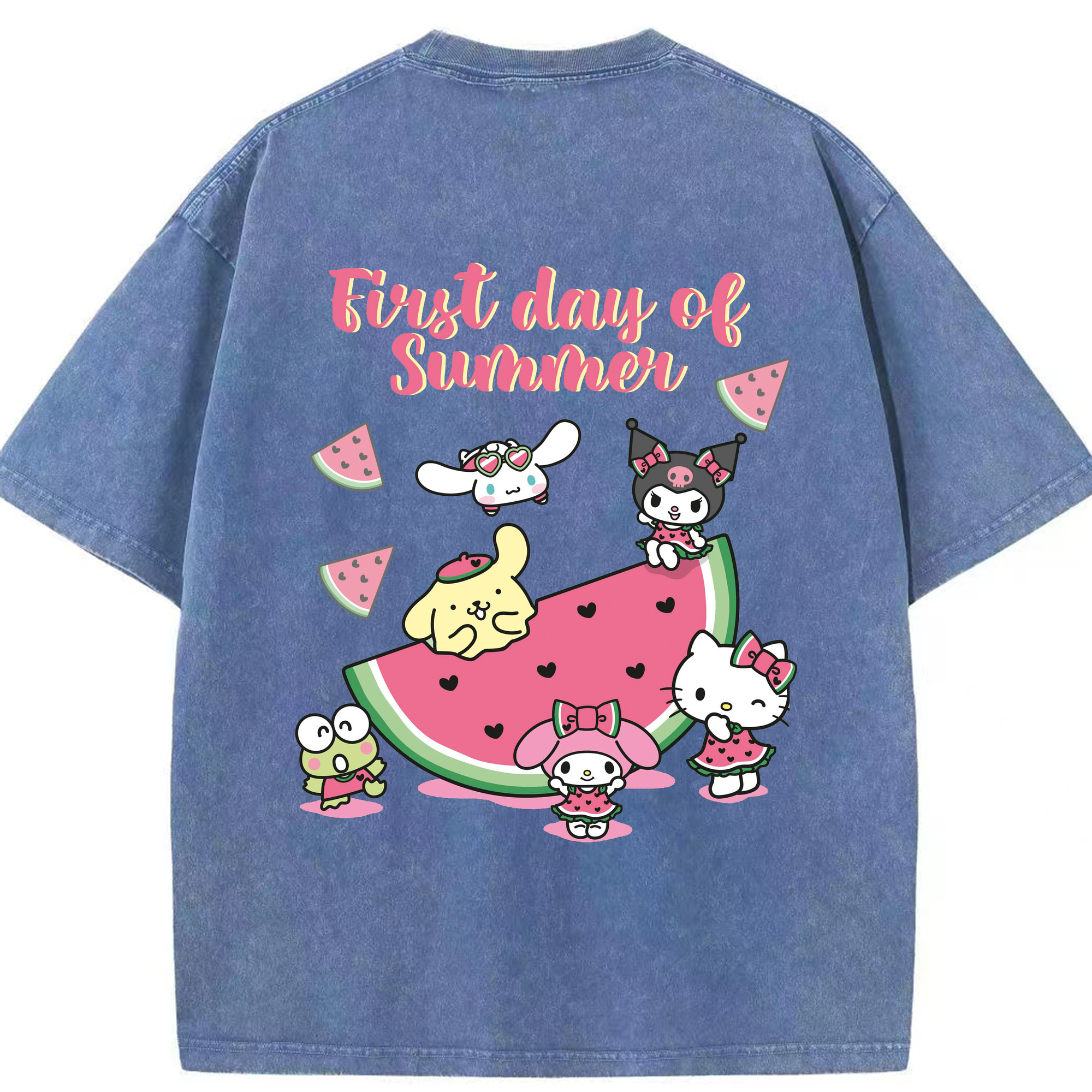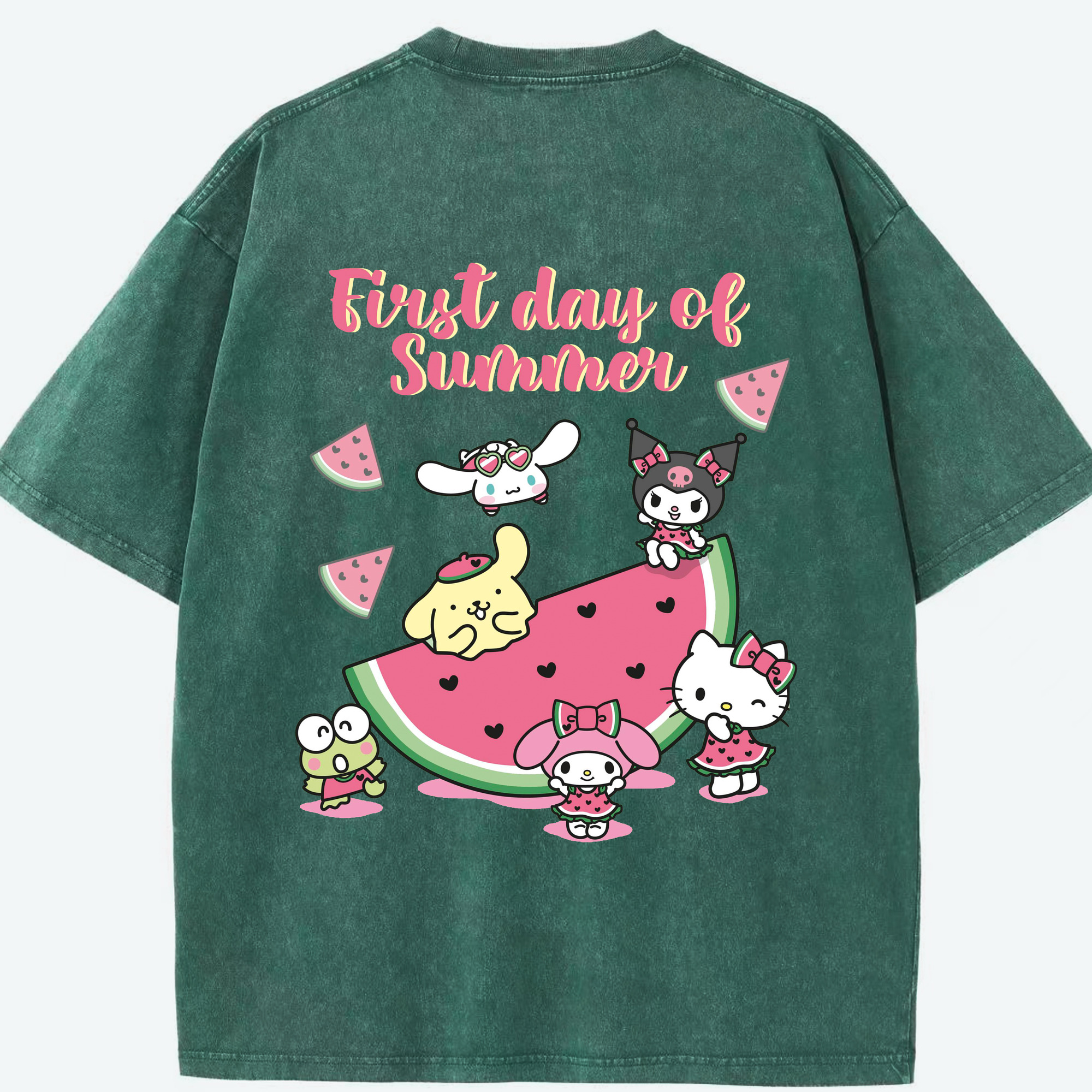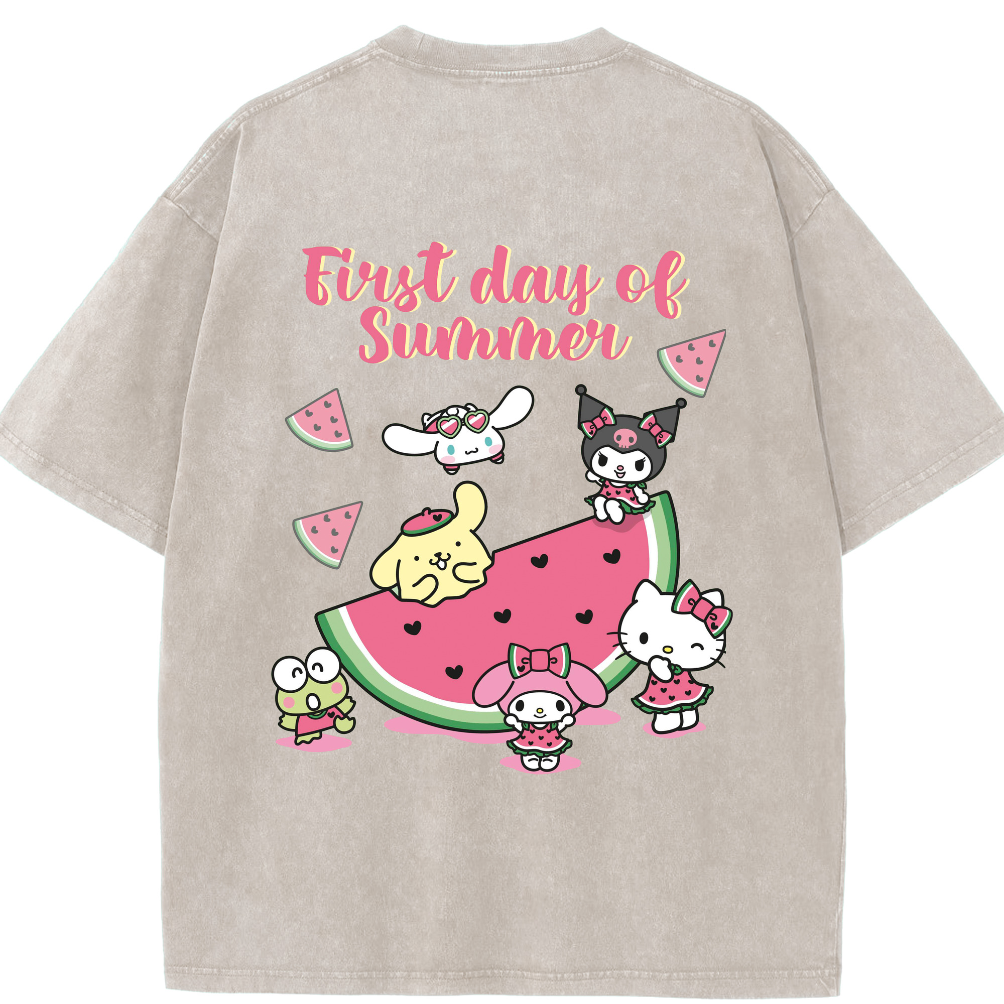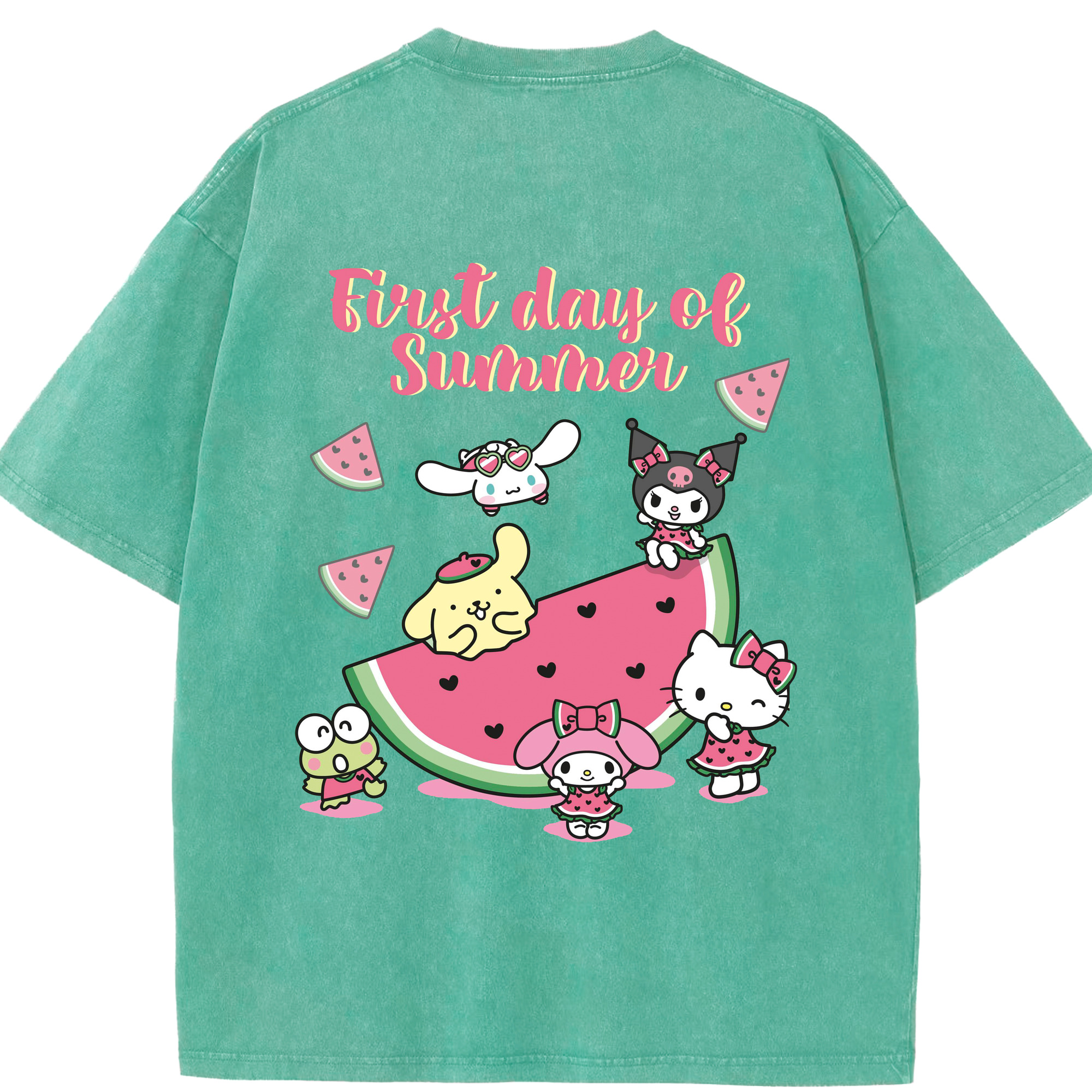 スイカサンリオ - 綿100% ヴィンテージ風 半袖Tシャツ ・ フロントプリント ・ 柔らか肌触り ・ 通気性 快適 ・ スポーツ カジュアル 外出用