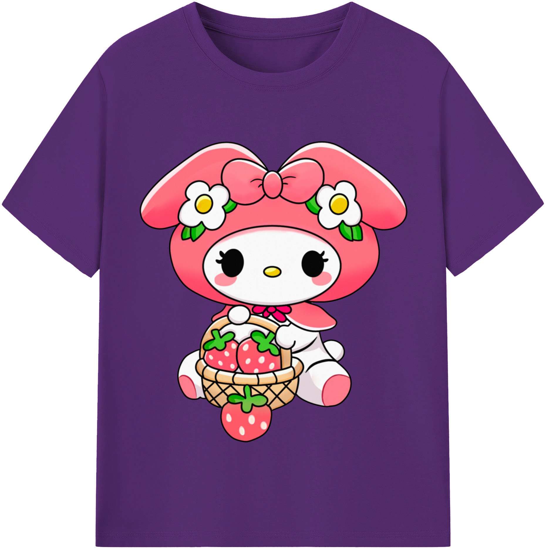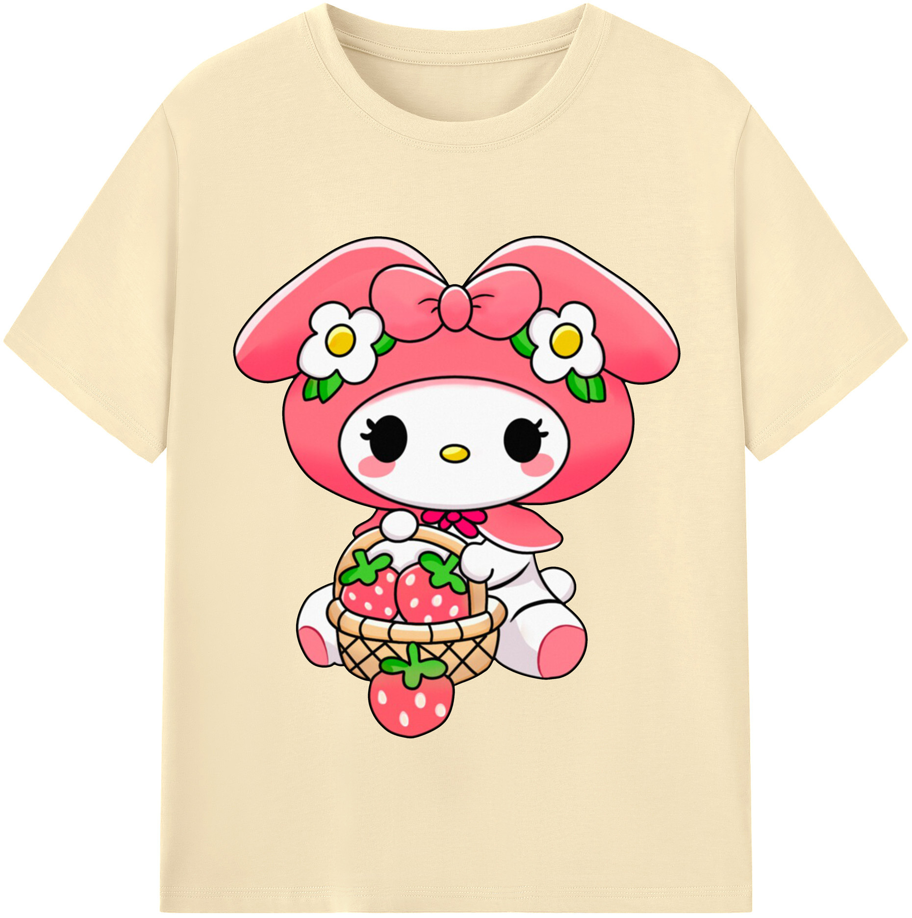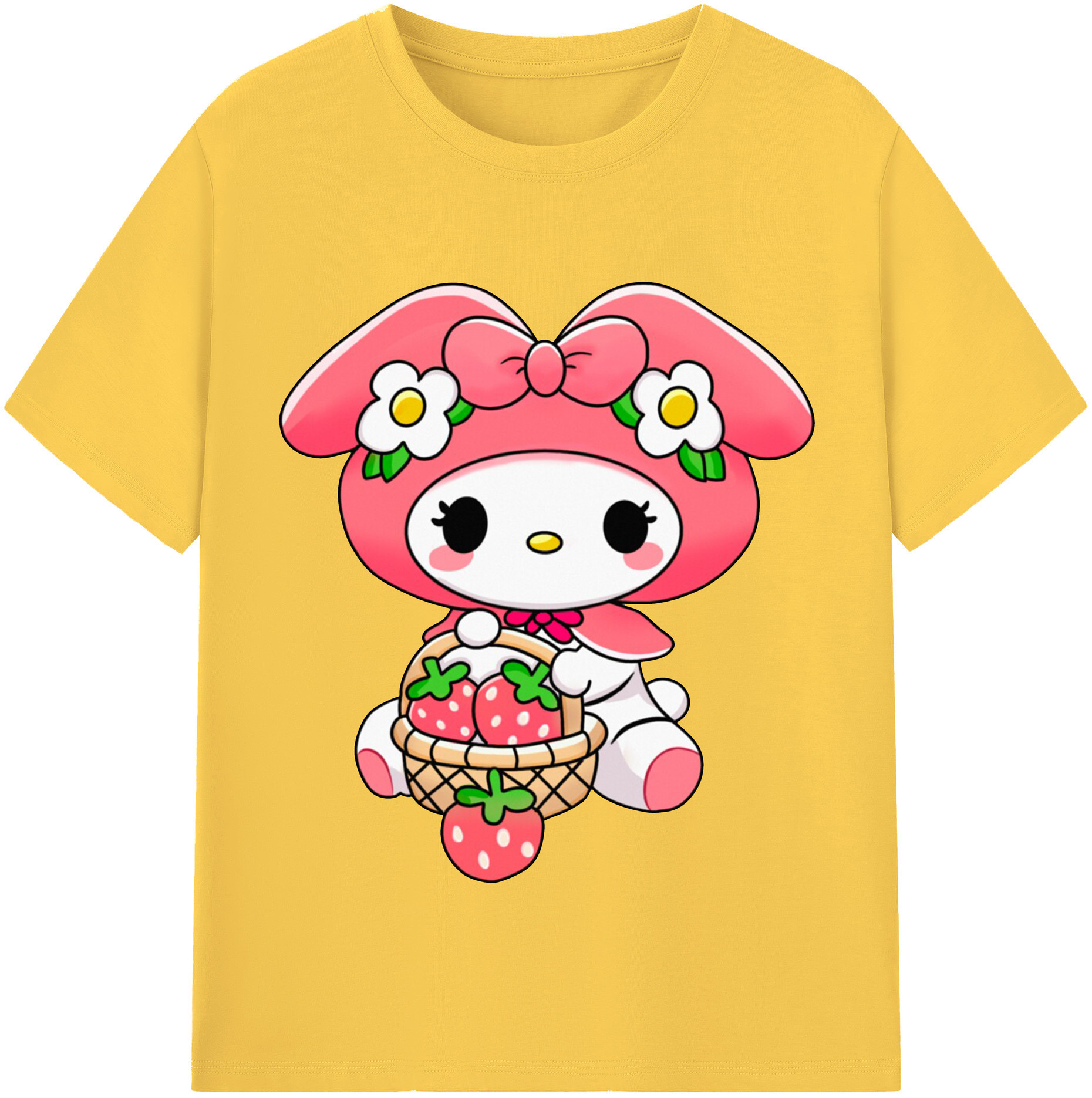 おもしろいマイメロディ - 綿100% 半袖Tシャツ ・ フロントプリント ・ 快適 通気性 ・ 日常使い 散歩 スポーツ用