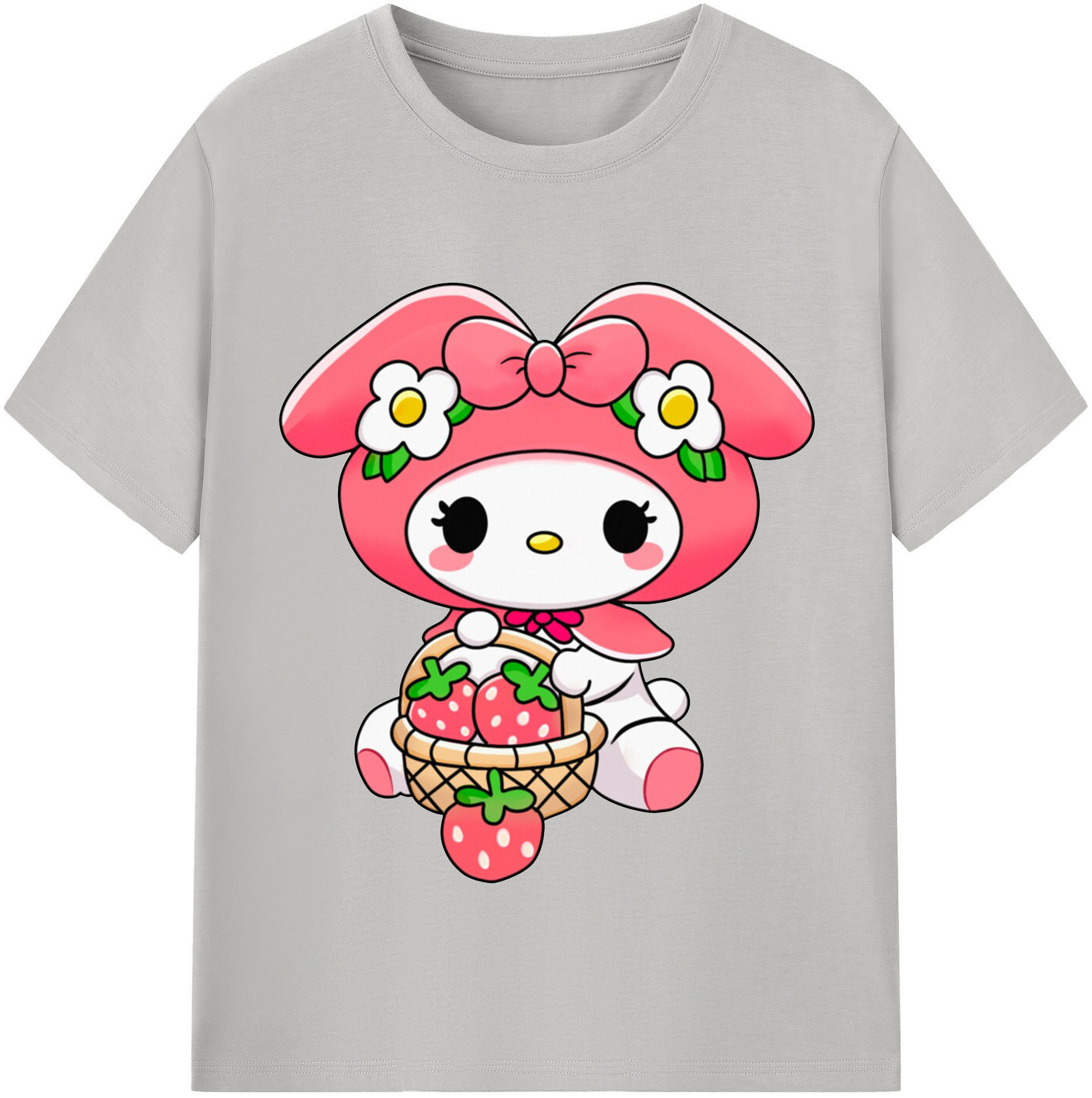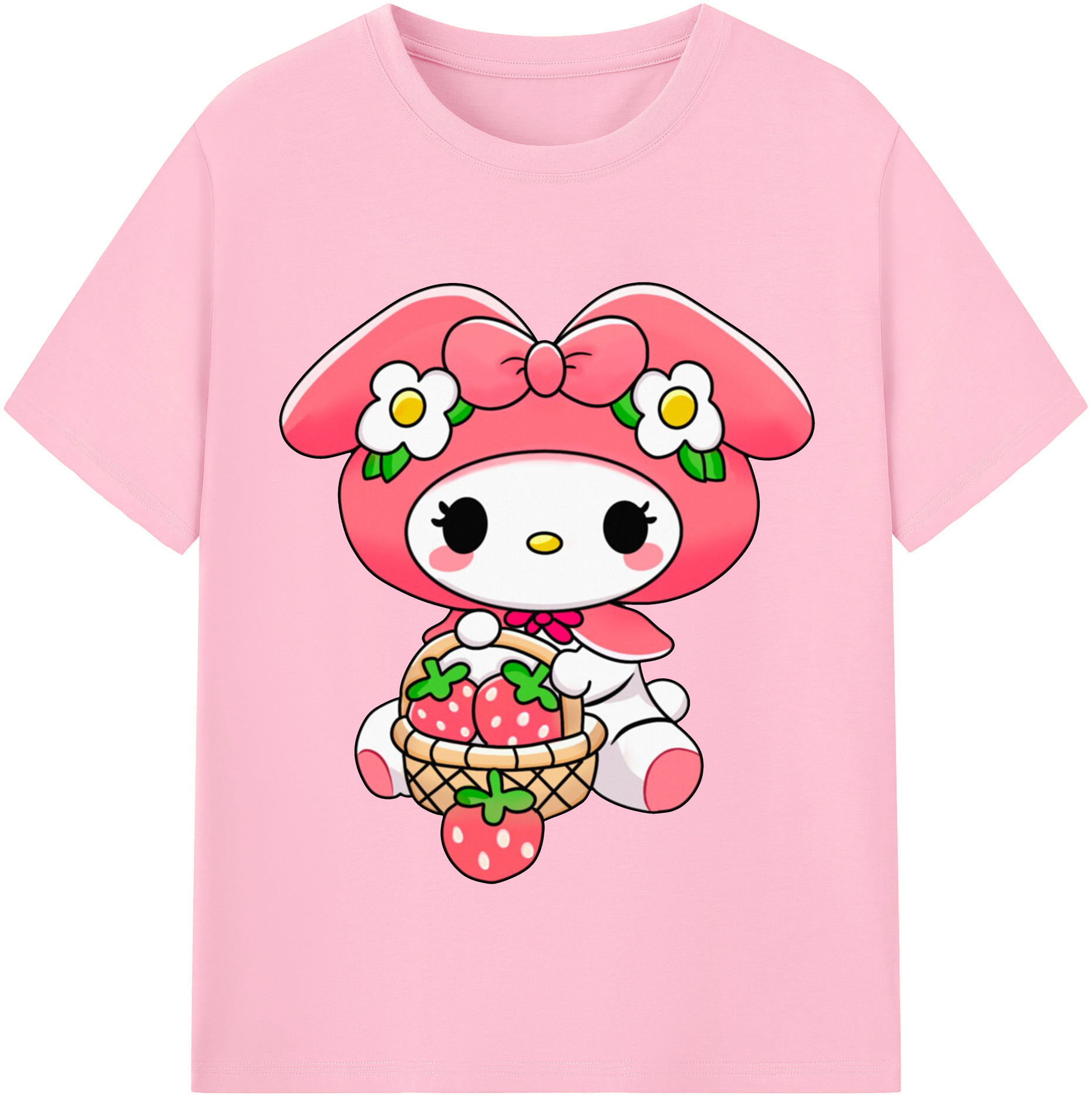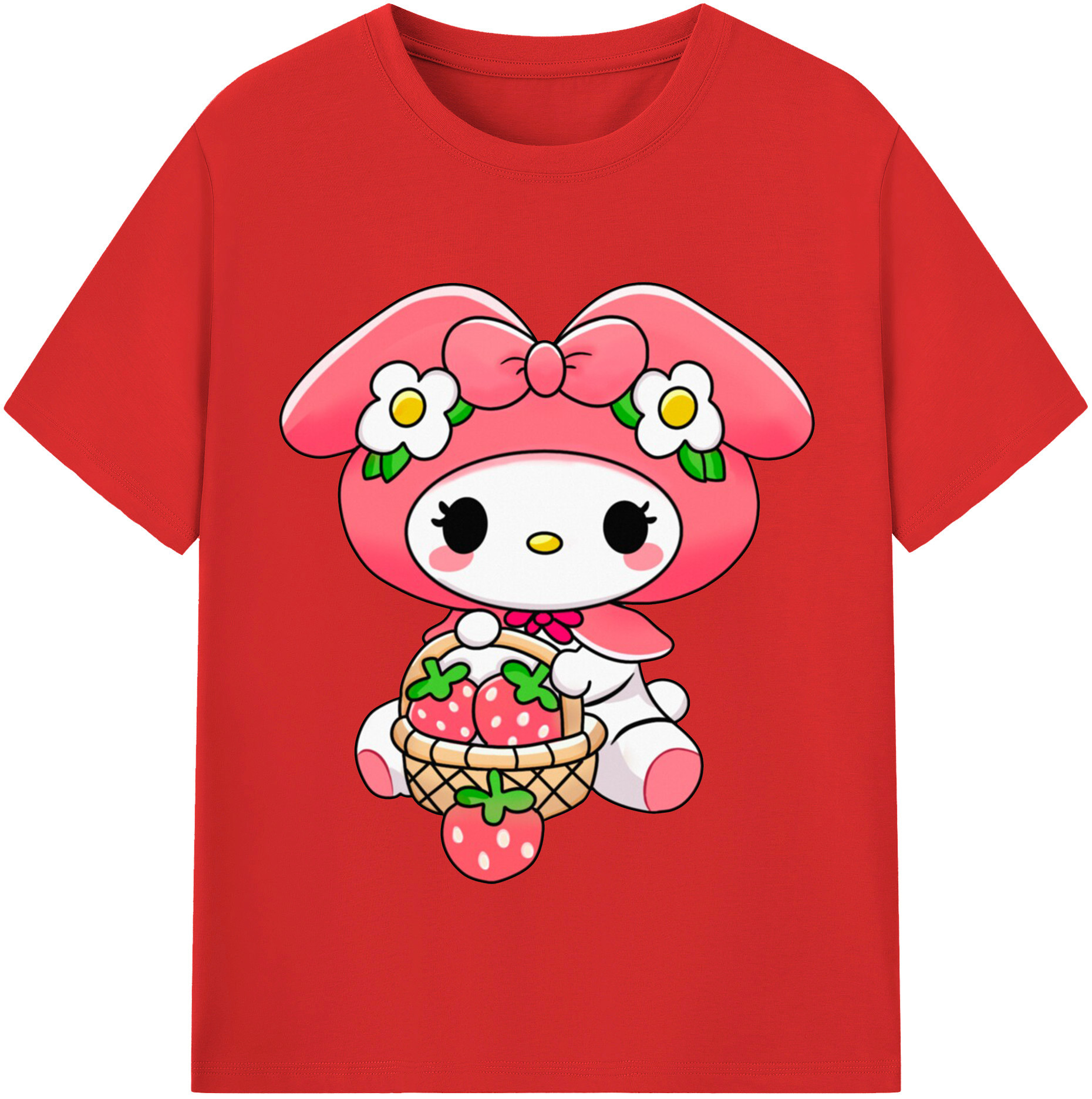 おもしろいマイメロディ - 綿100% 半袖Tシャツ ・ フロントプリント ・ 快適 通気性 ・ 日常使い 散歩 スポーツ用