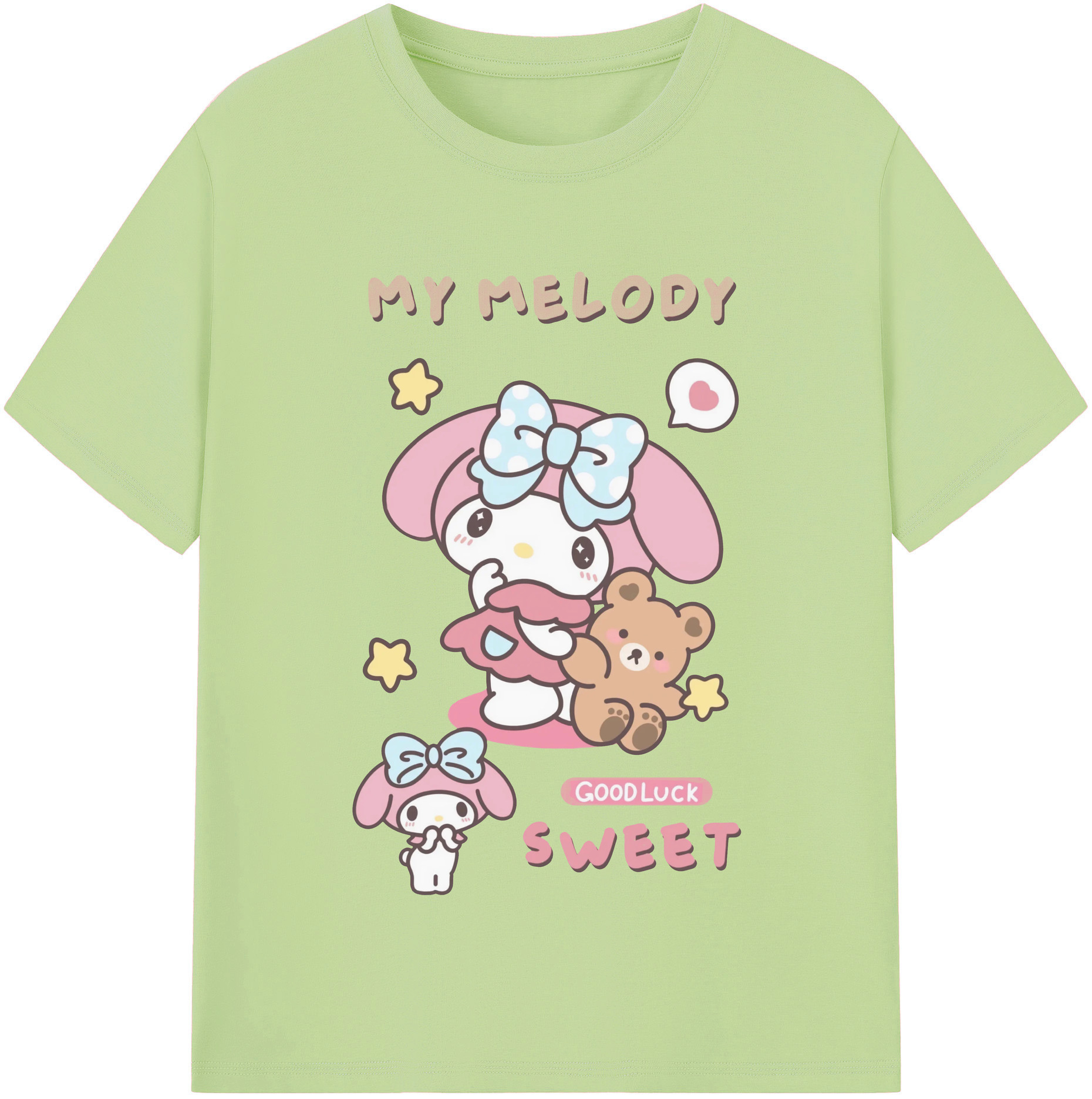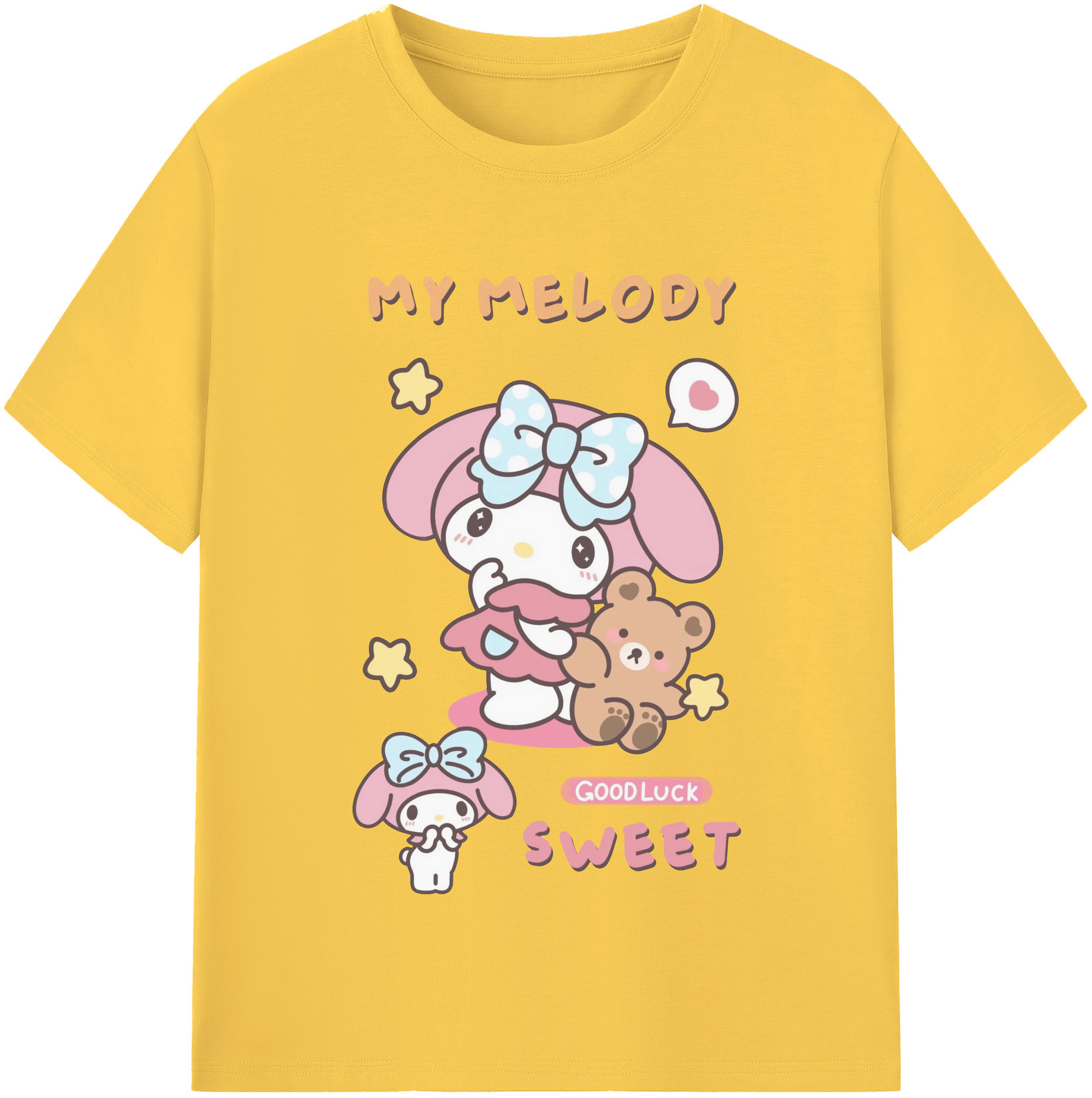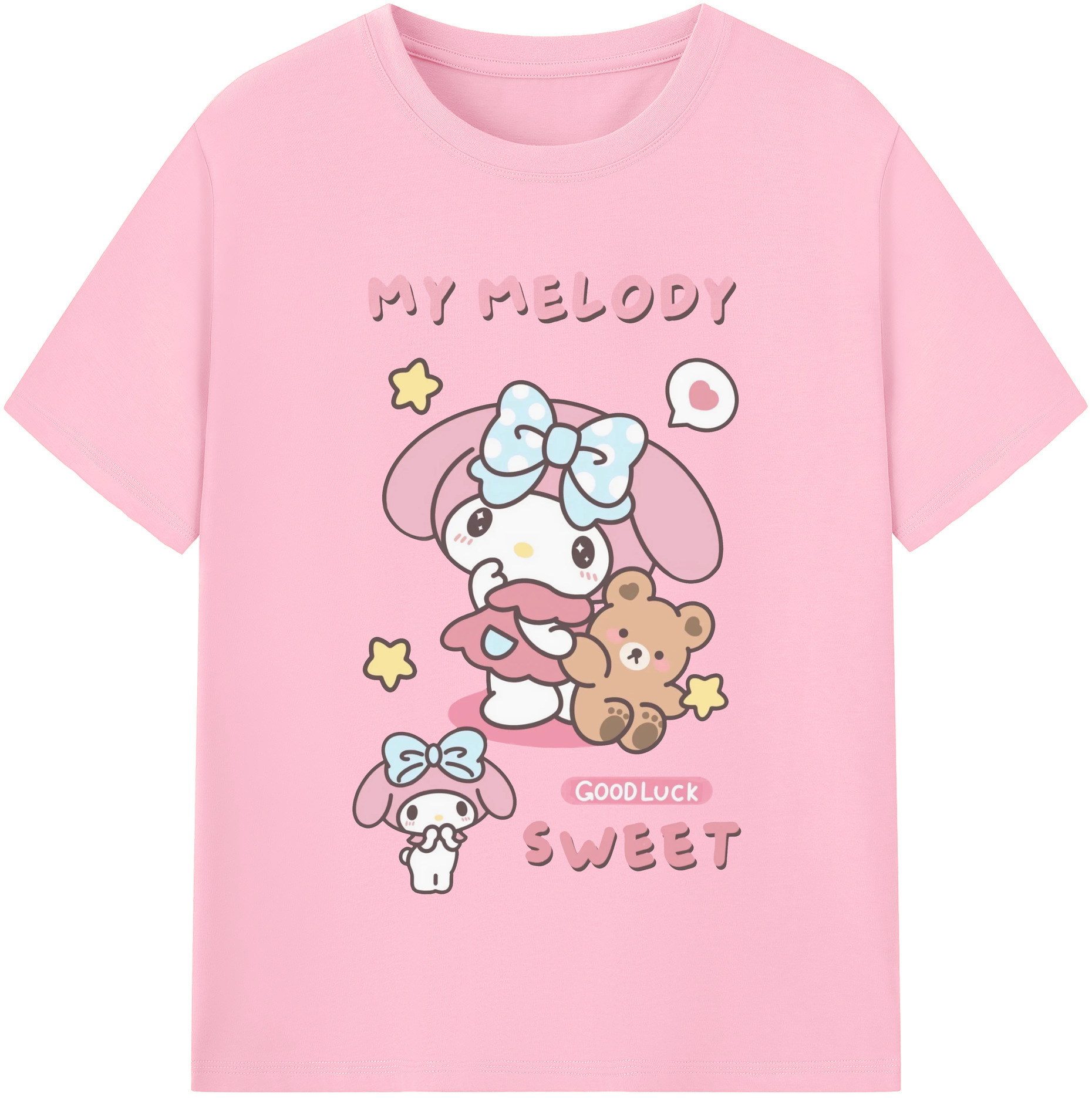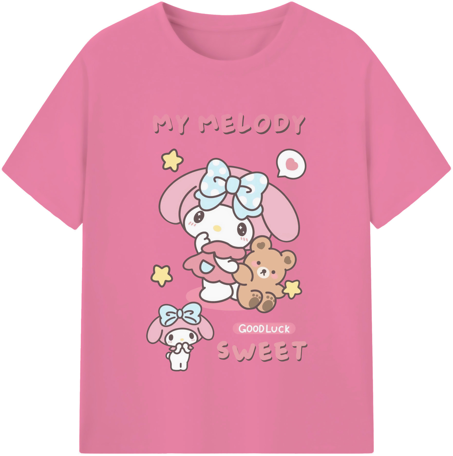 サンリオマイメロディ - 綿100% 半袖Tシャツ ・ フロントプリント ・ 快適 通気性 ・ 日常使い 散歩 スポーツ用
