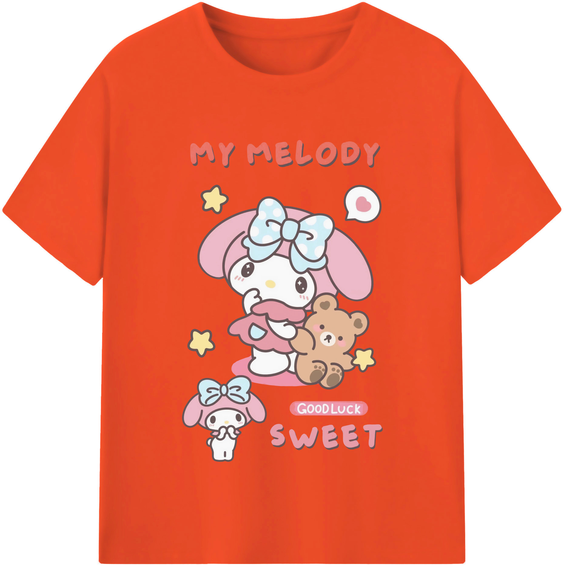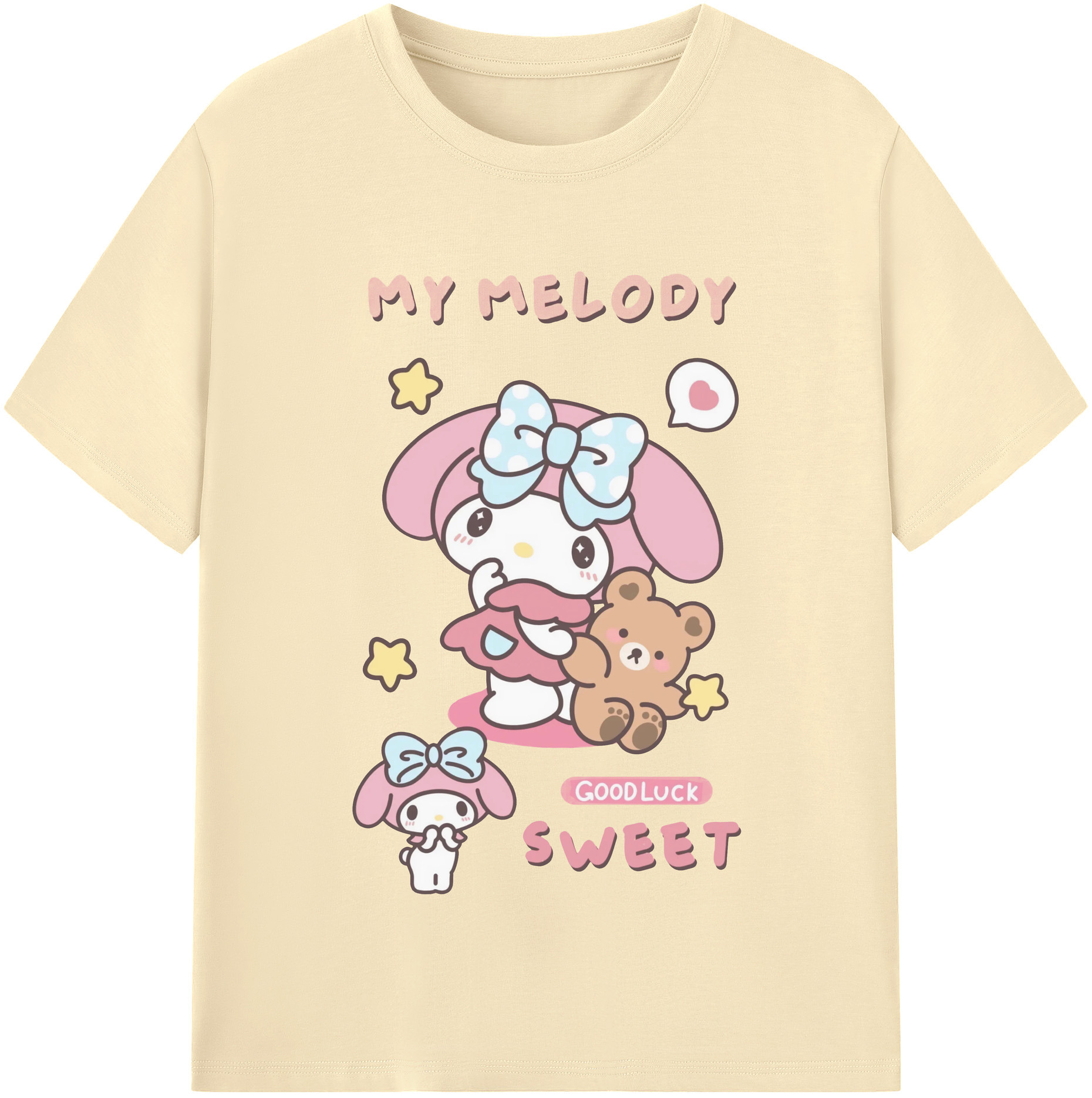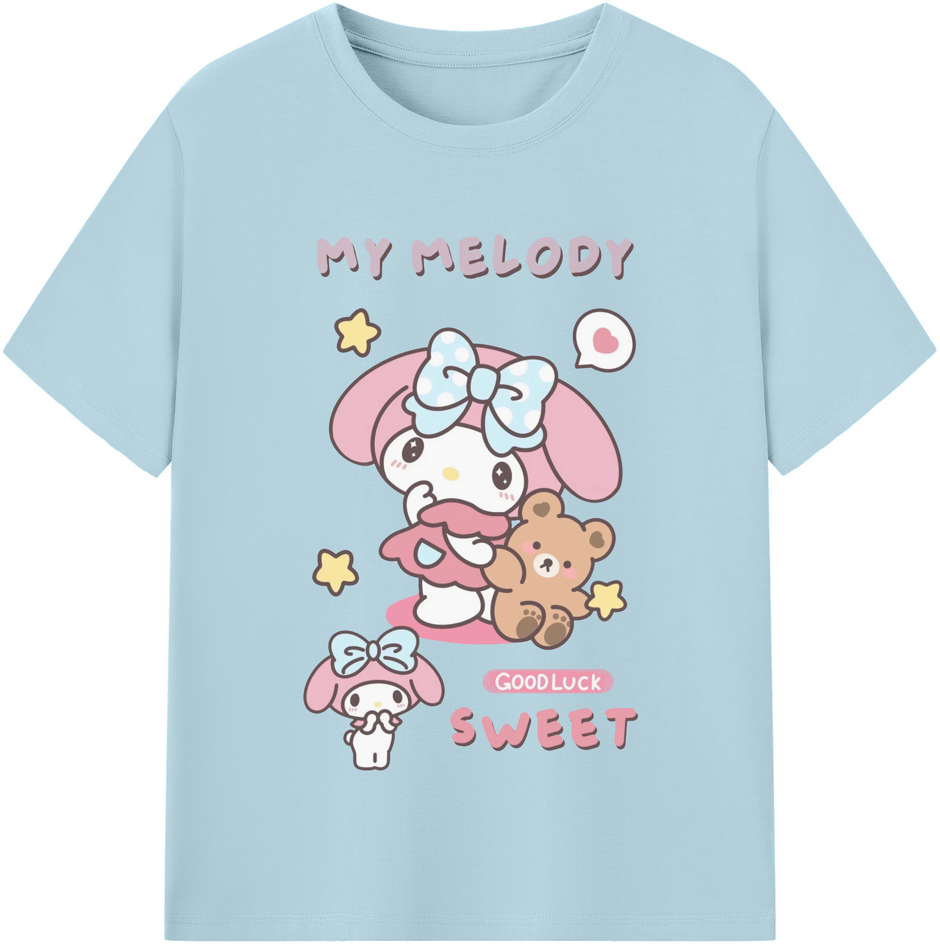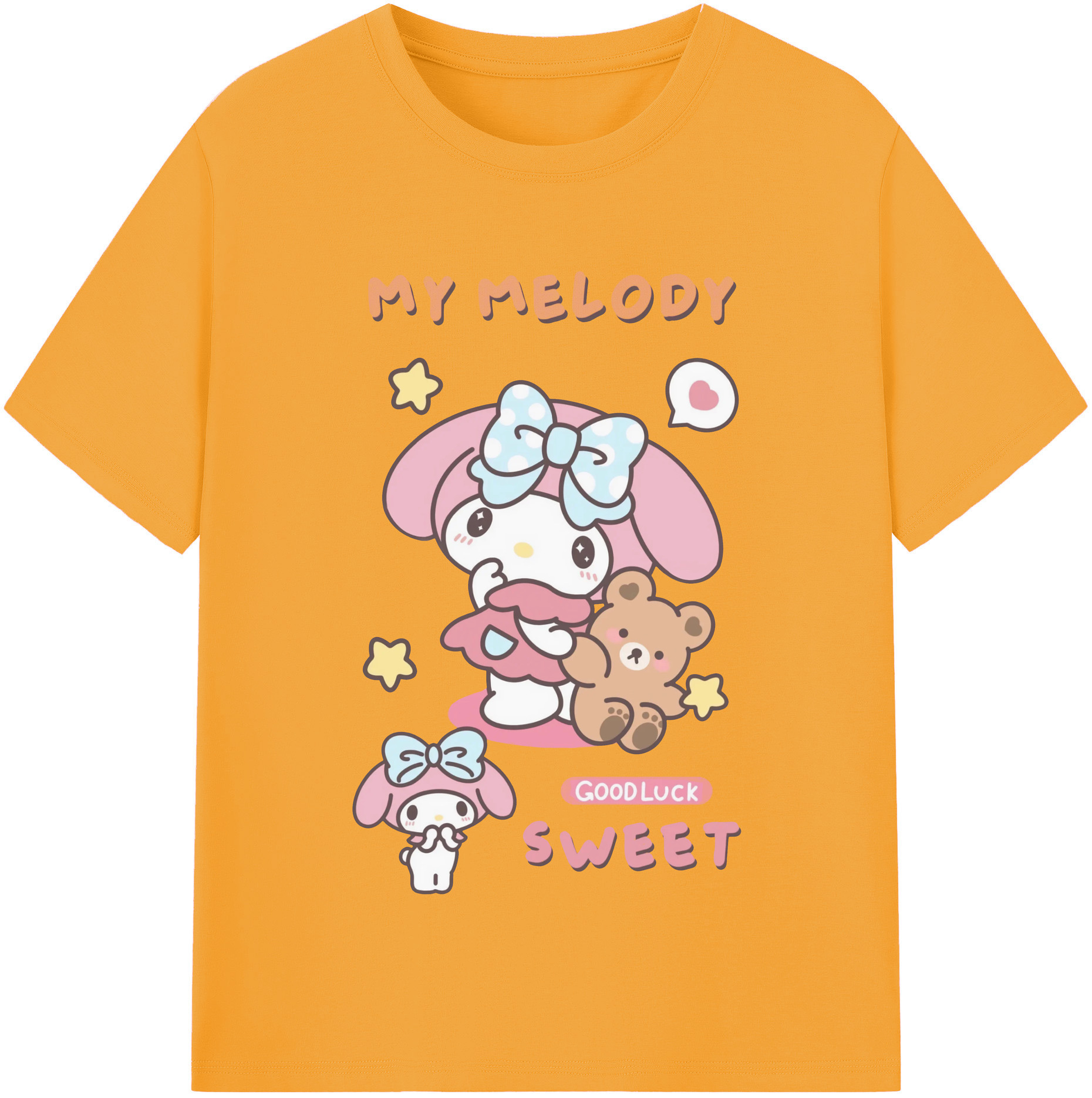 サンリオマイメロディ - 綿100% 半袖Tシャツ ・ フロントプリント ・ 快適 通気性 ・ 日常使い 散歩 スポーツ用