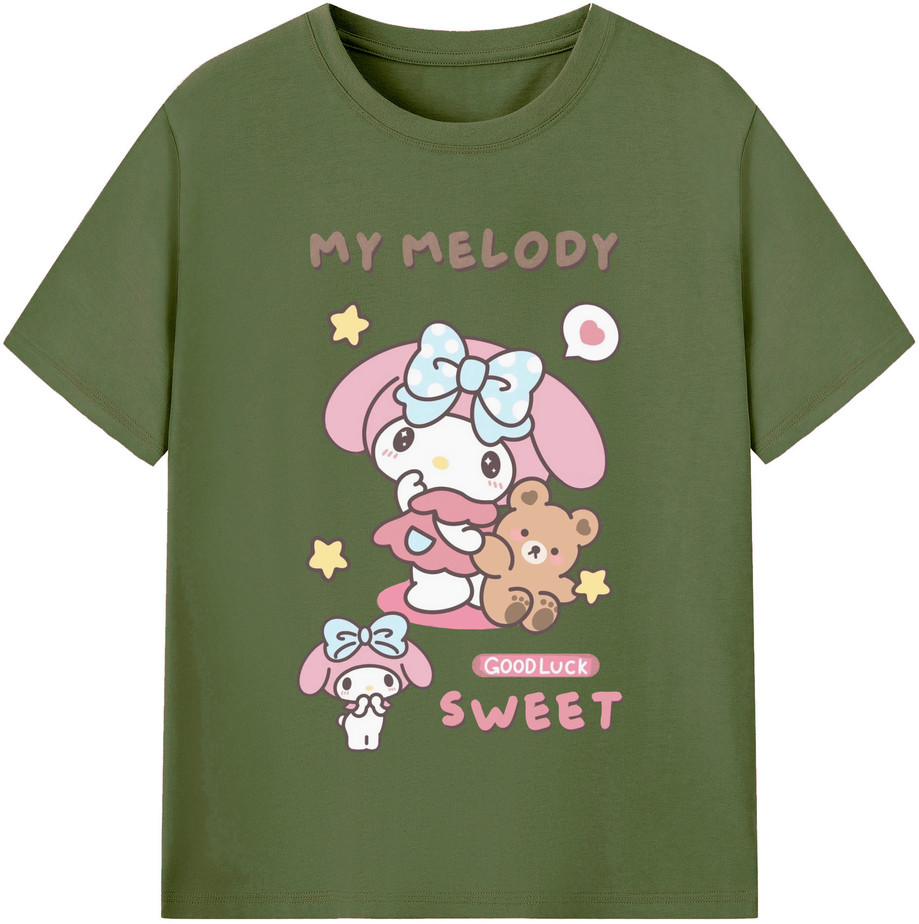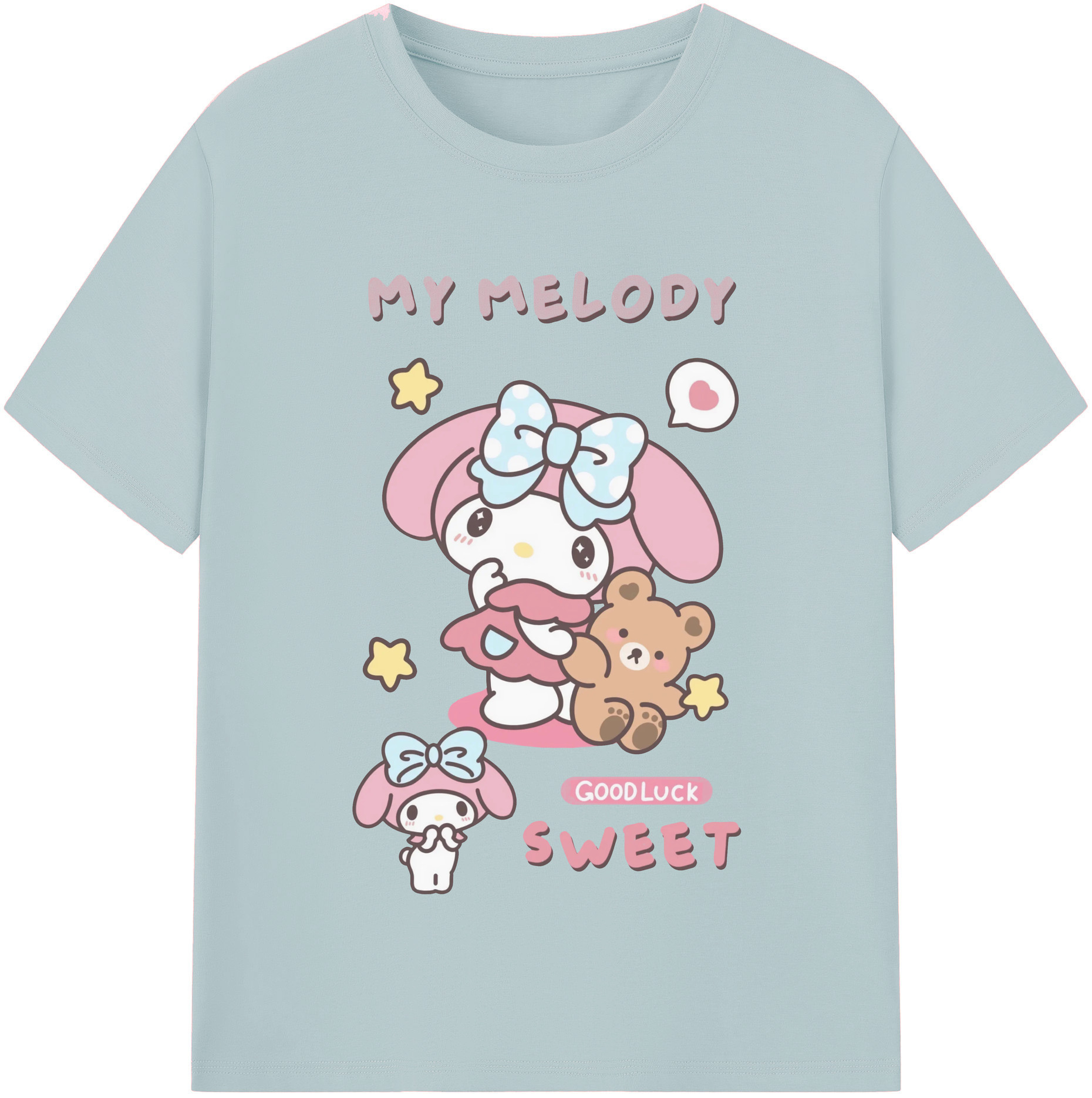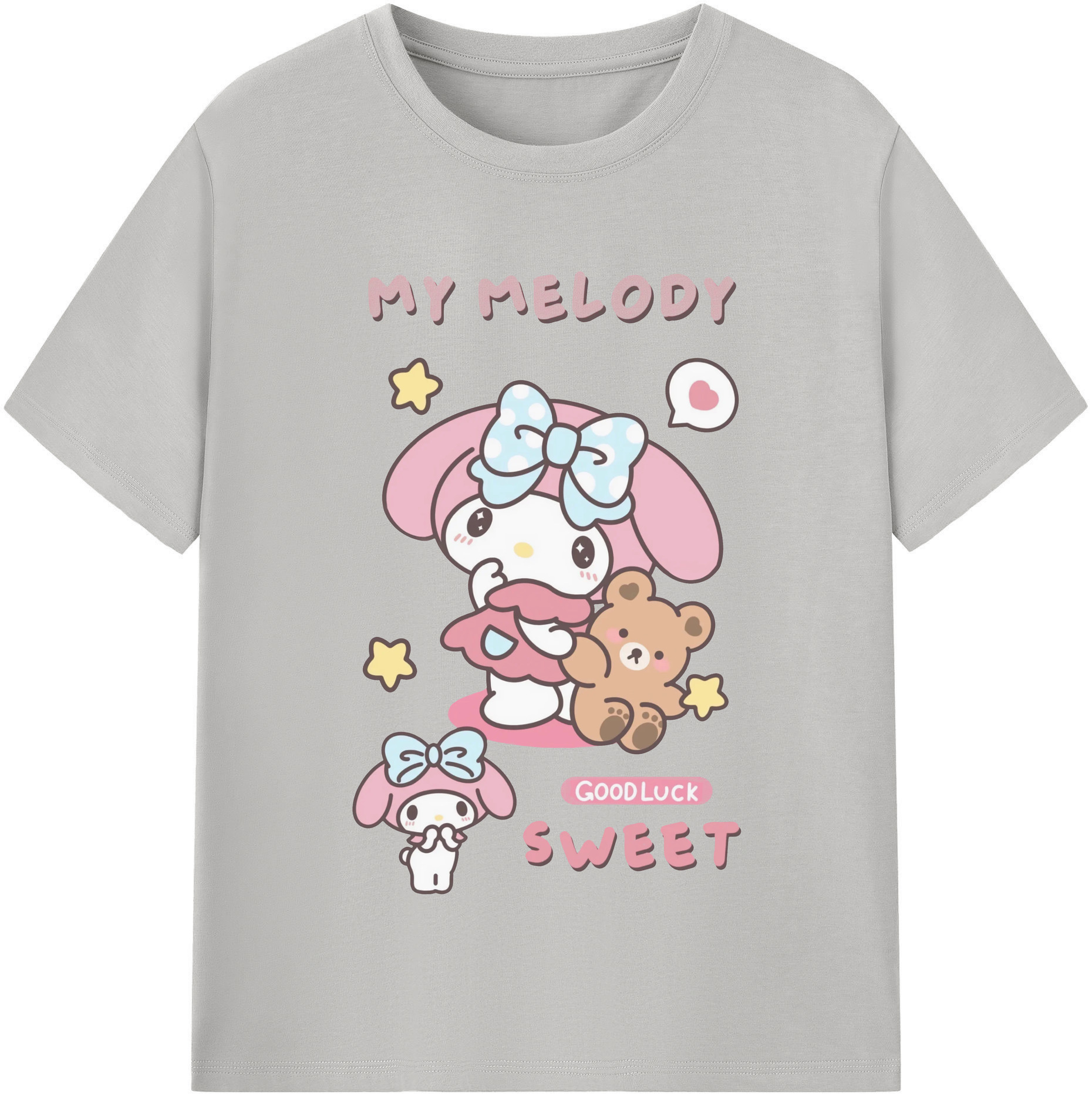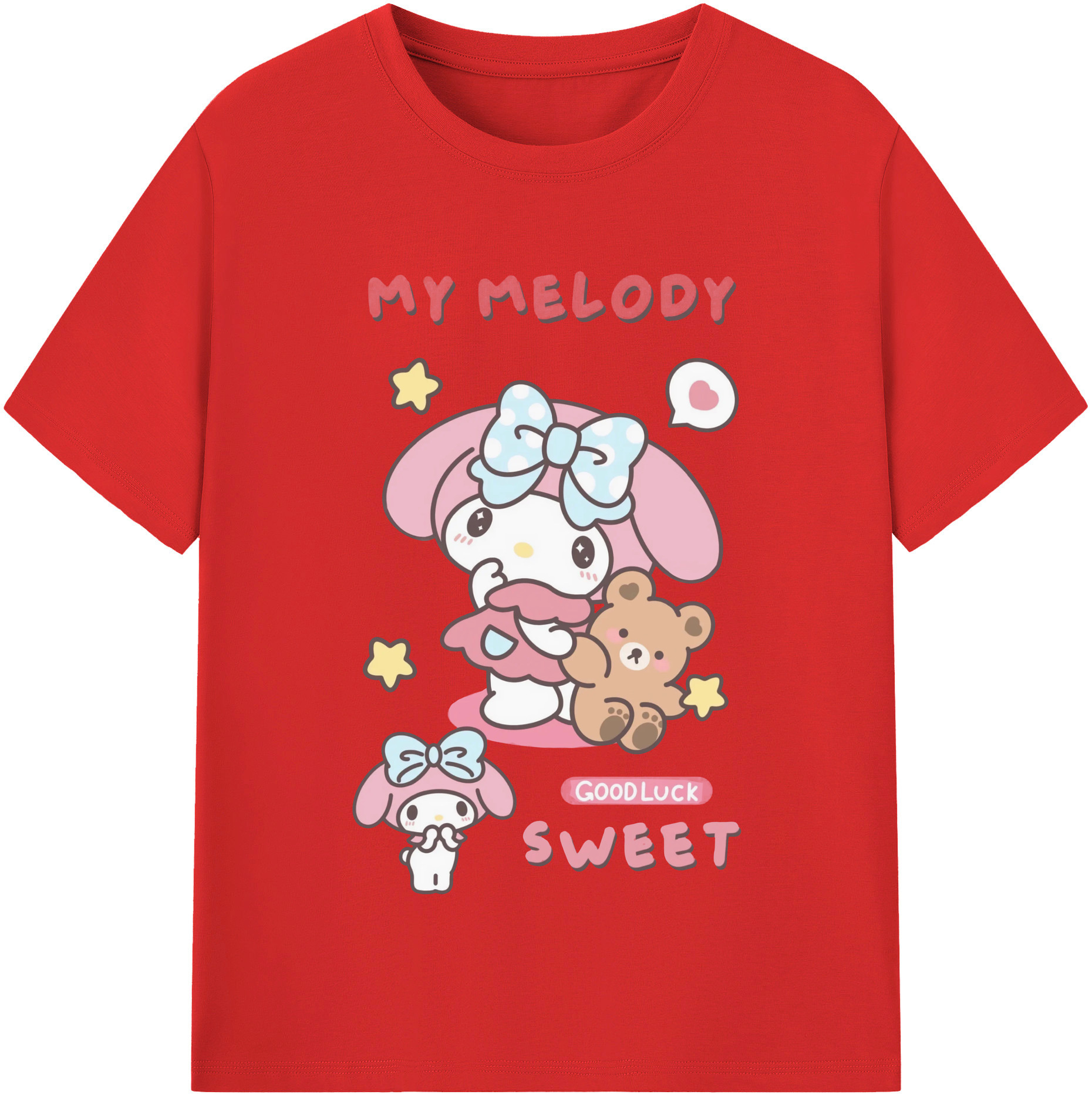 サンリオマイメロディ - 綿100% 半袖Tシャツ ・ フロントプリント ・ 快適 通気性 ・ 日常使い 散歩 スポーツ用