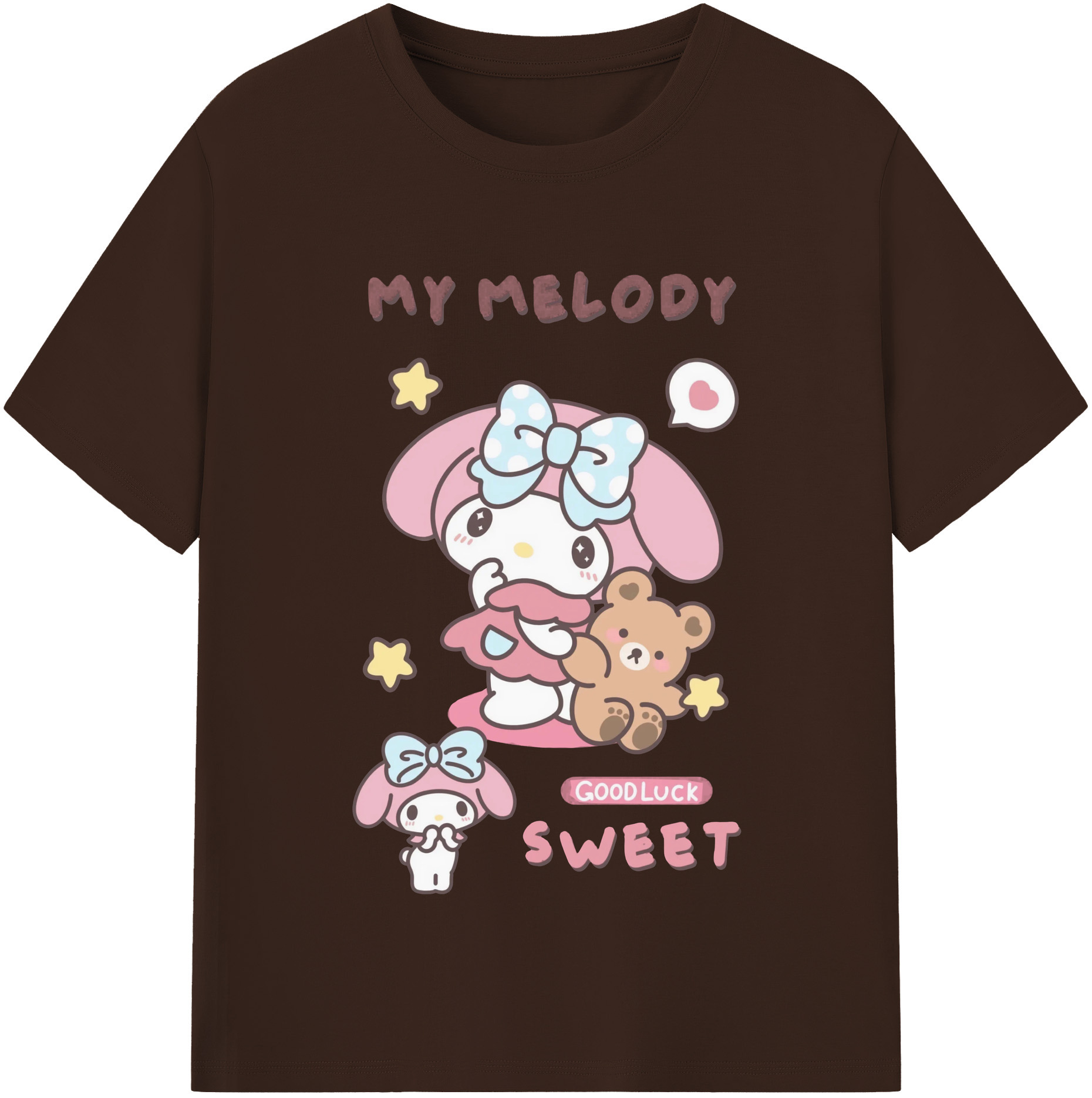 スイートなマイメロディ - 綿100% 半袖Tシャツ ・ バックプリント ・ 快適 通気性 ・ 日常使い 散歩 スポーツ用