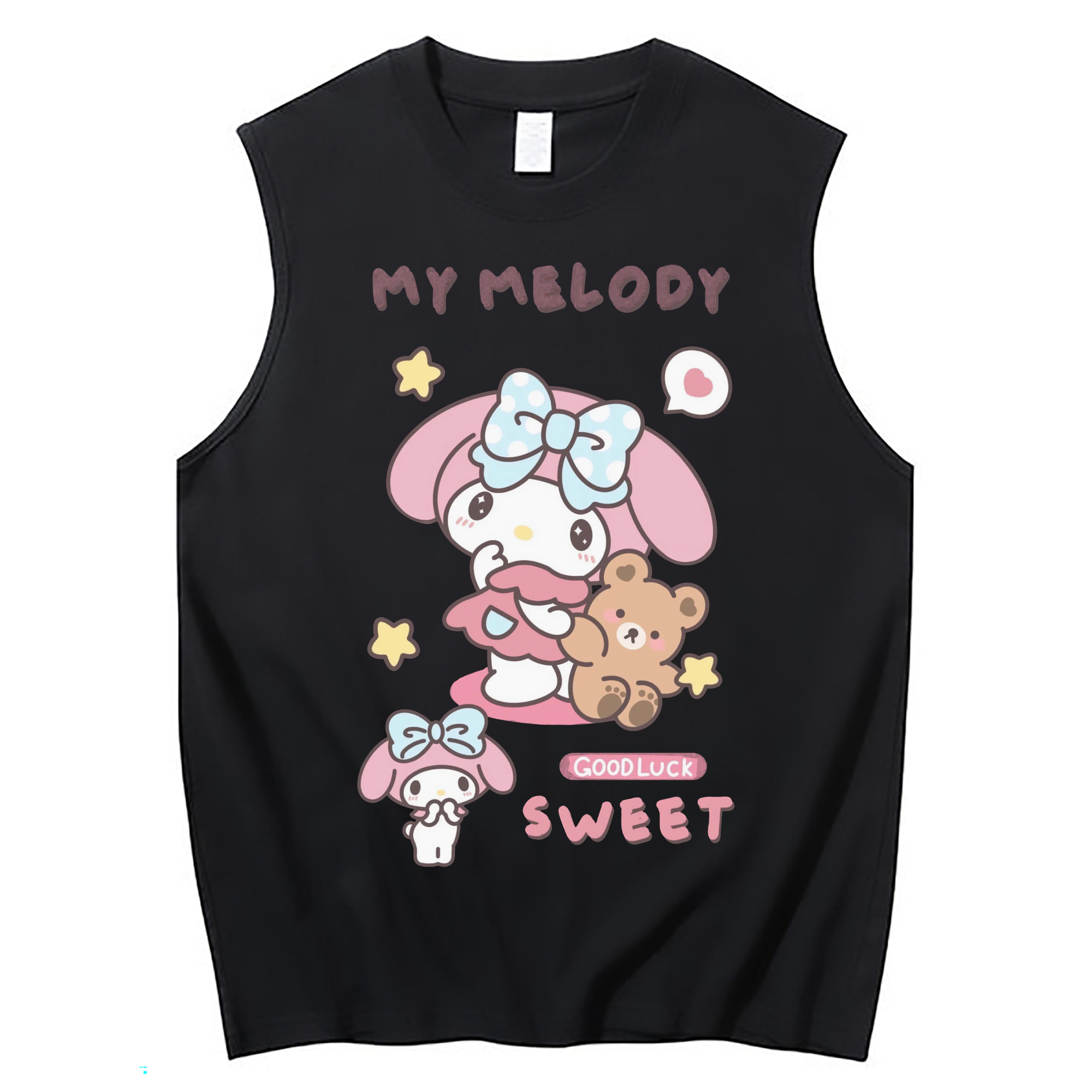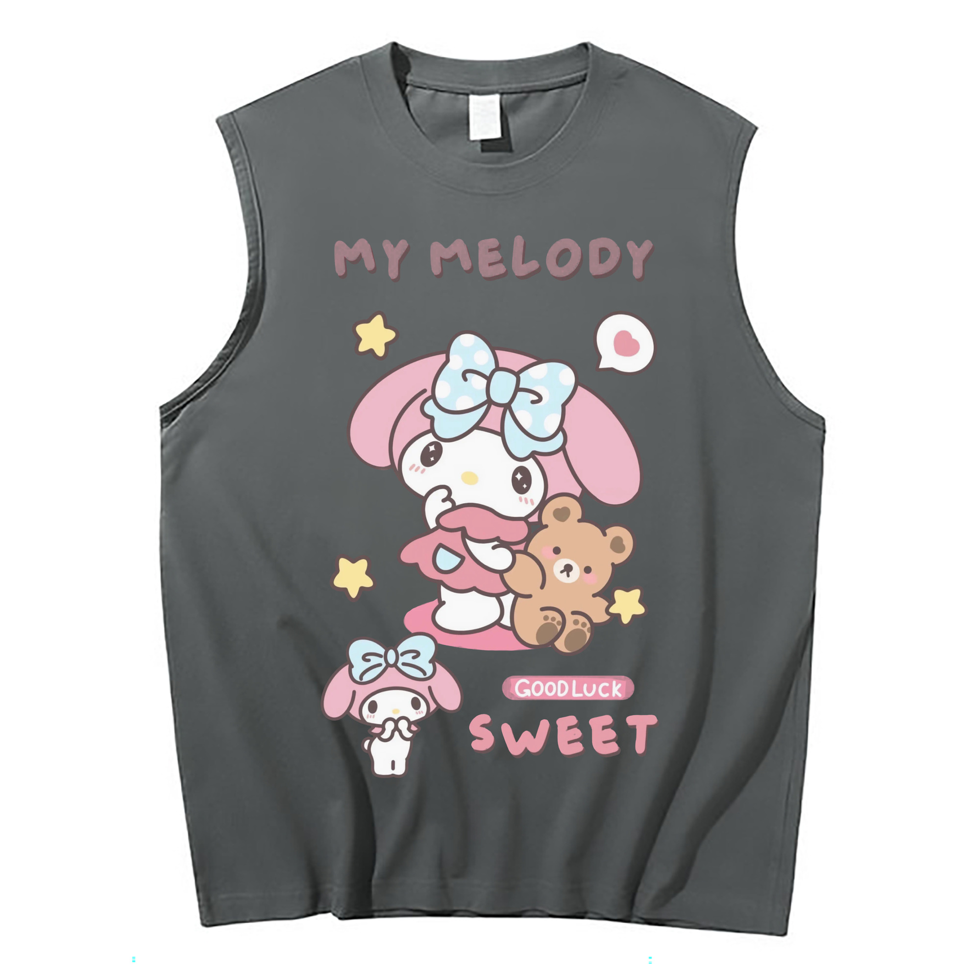 スイートなマイメロディ - コットン100% タンクトップ ・ フロントプリント ・ タイトフィット ・ 快適 通気性 ・ スポーツ カジュアル 散歩用