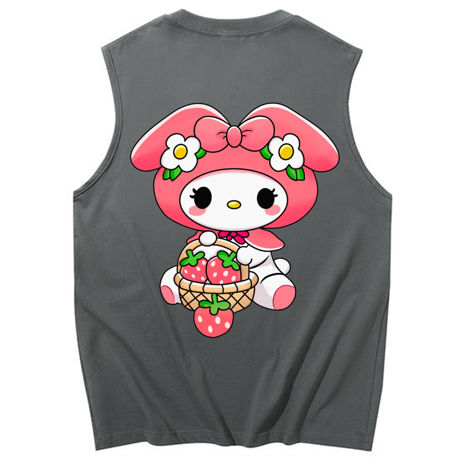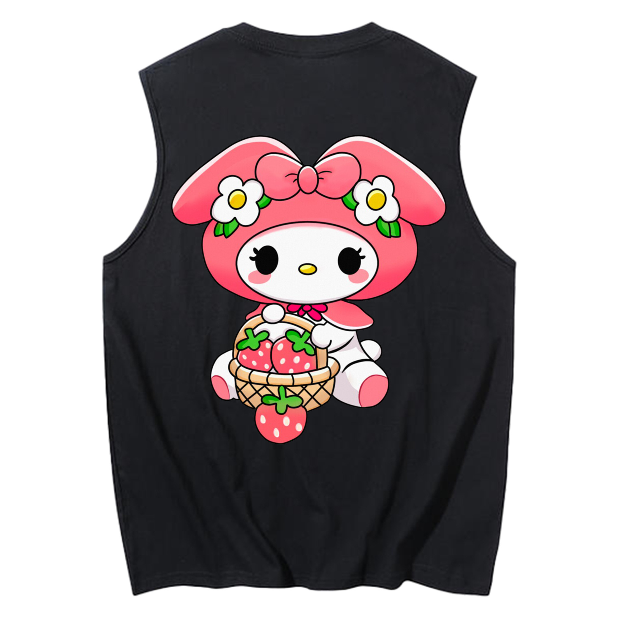 スイートなマイメロディ - コットン100% タンクトップ ・ 背面プリント ・ タイトシルエット ・ 快適 通気性 ・ スポーツ カジュアル 散歩用