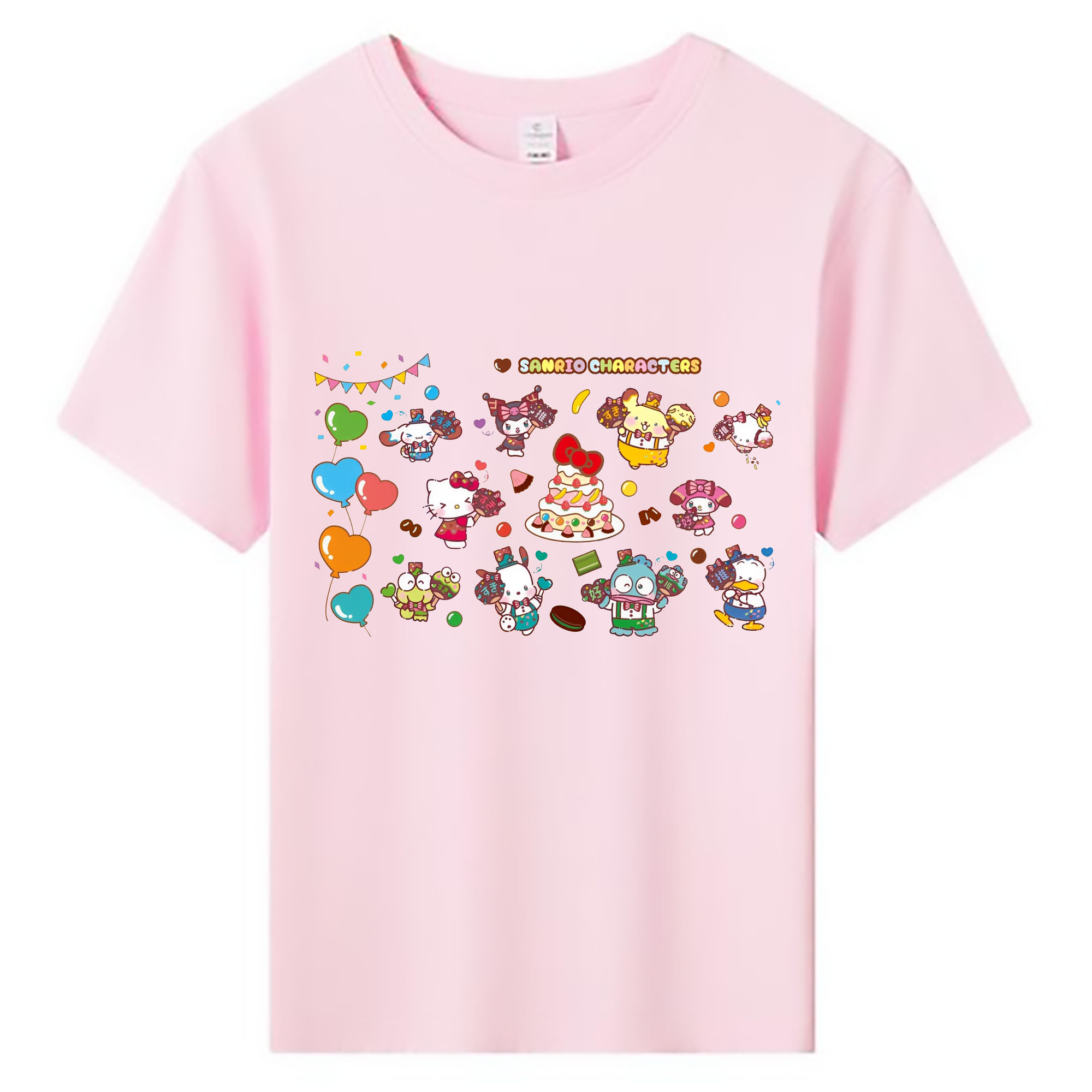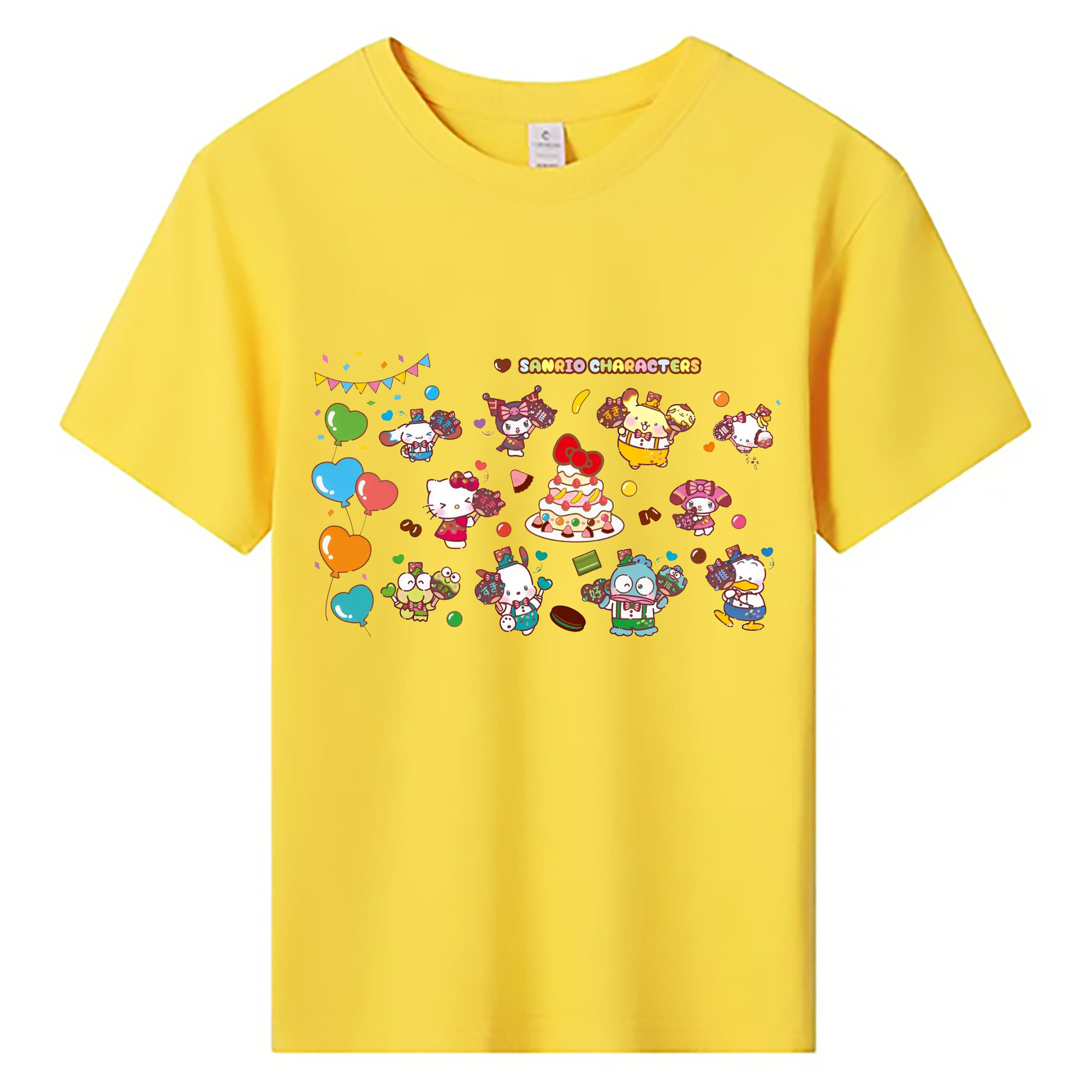 キティちゃんとなかまたち大集合♪ - 綿100% キッズTシャツ ・ フロントプリント ・ 快適 通気性 ・ スポーツ カジュアル 散歩用