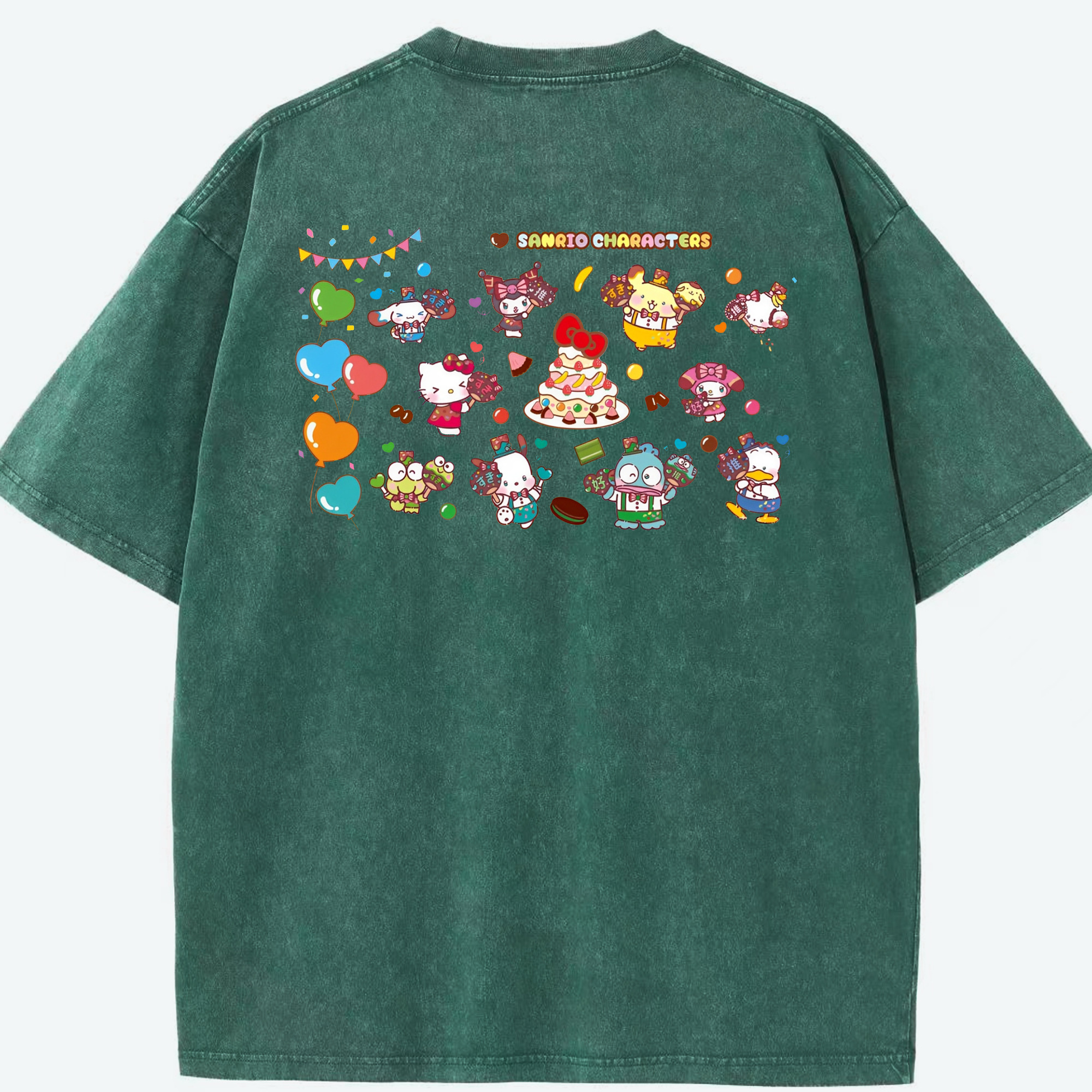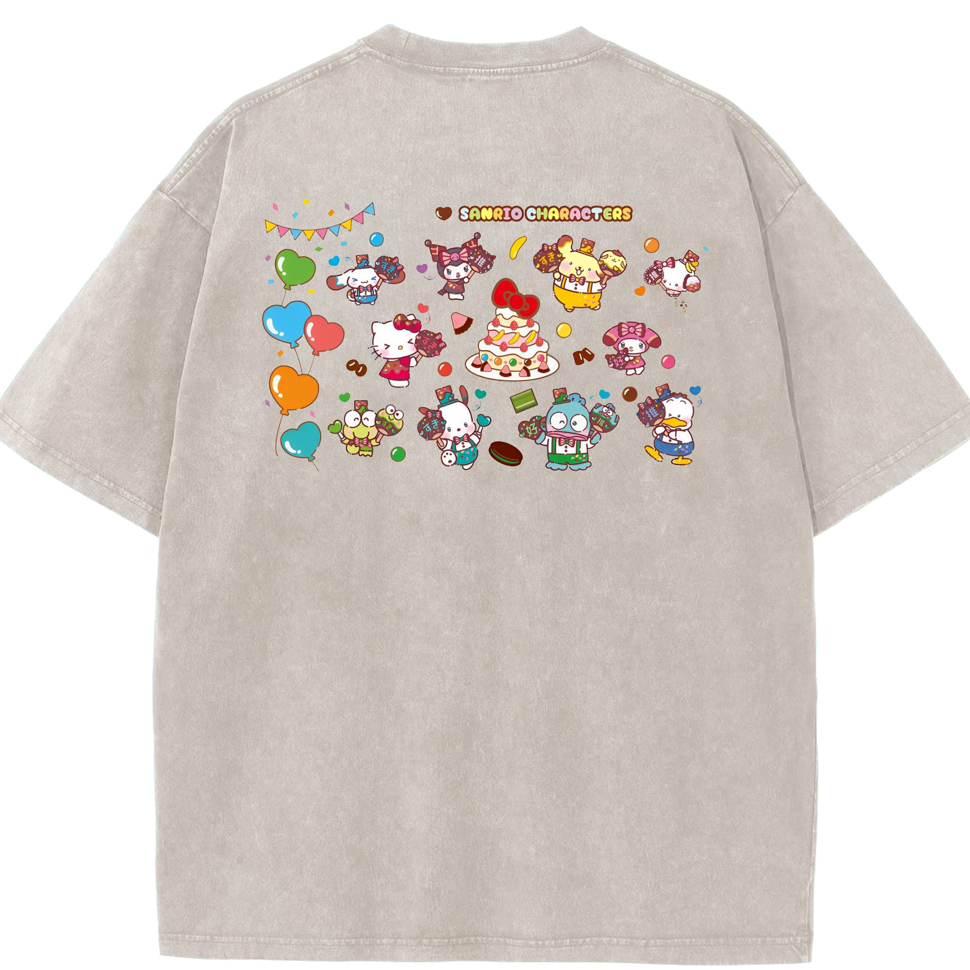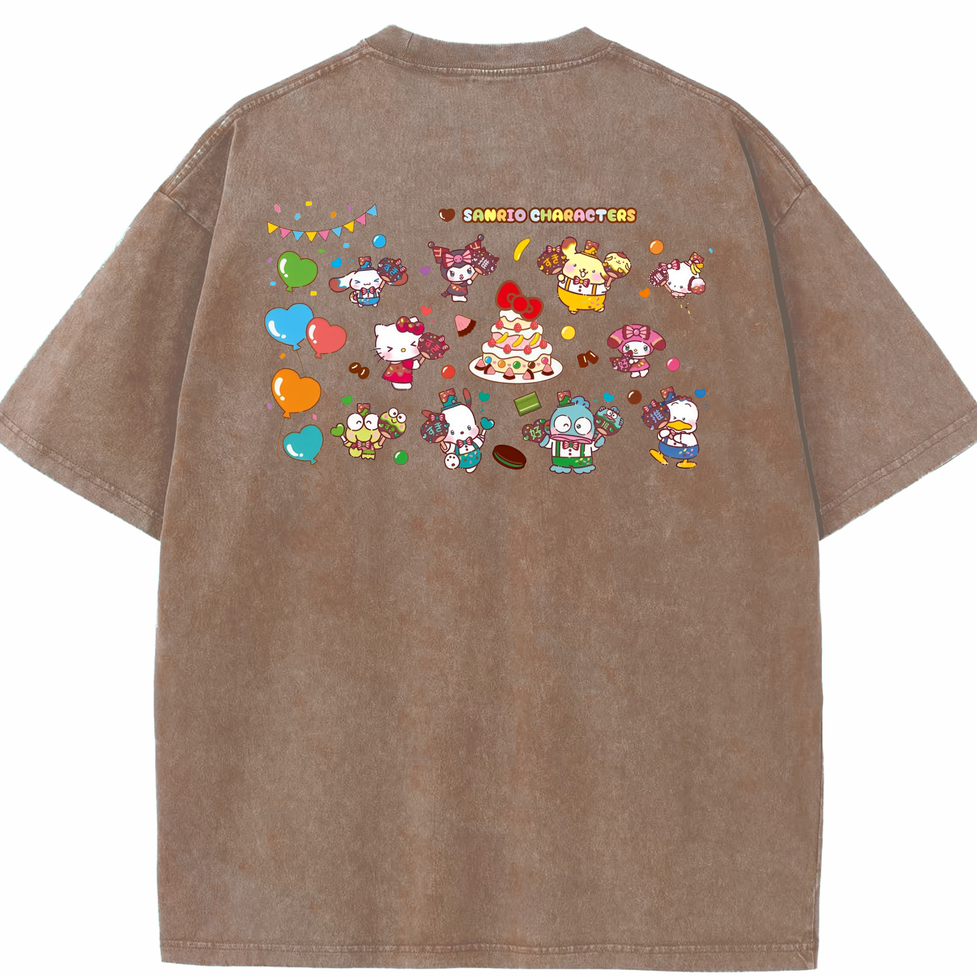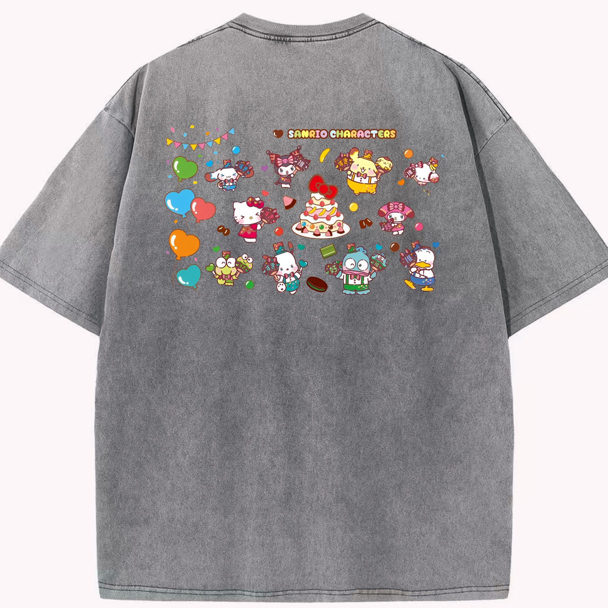 スイート系サンリオ - 綿100% ヴィンテージ風 半袖Tシャツ ・ フロントプリント ・ 柔らか肌触り ・ 通気性 快適 ・ スポーツ カジュアル 外出用