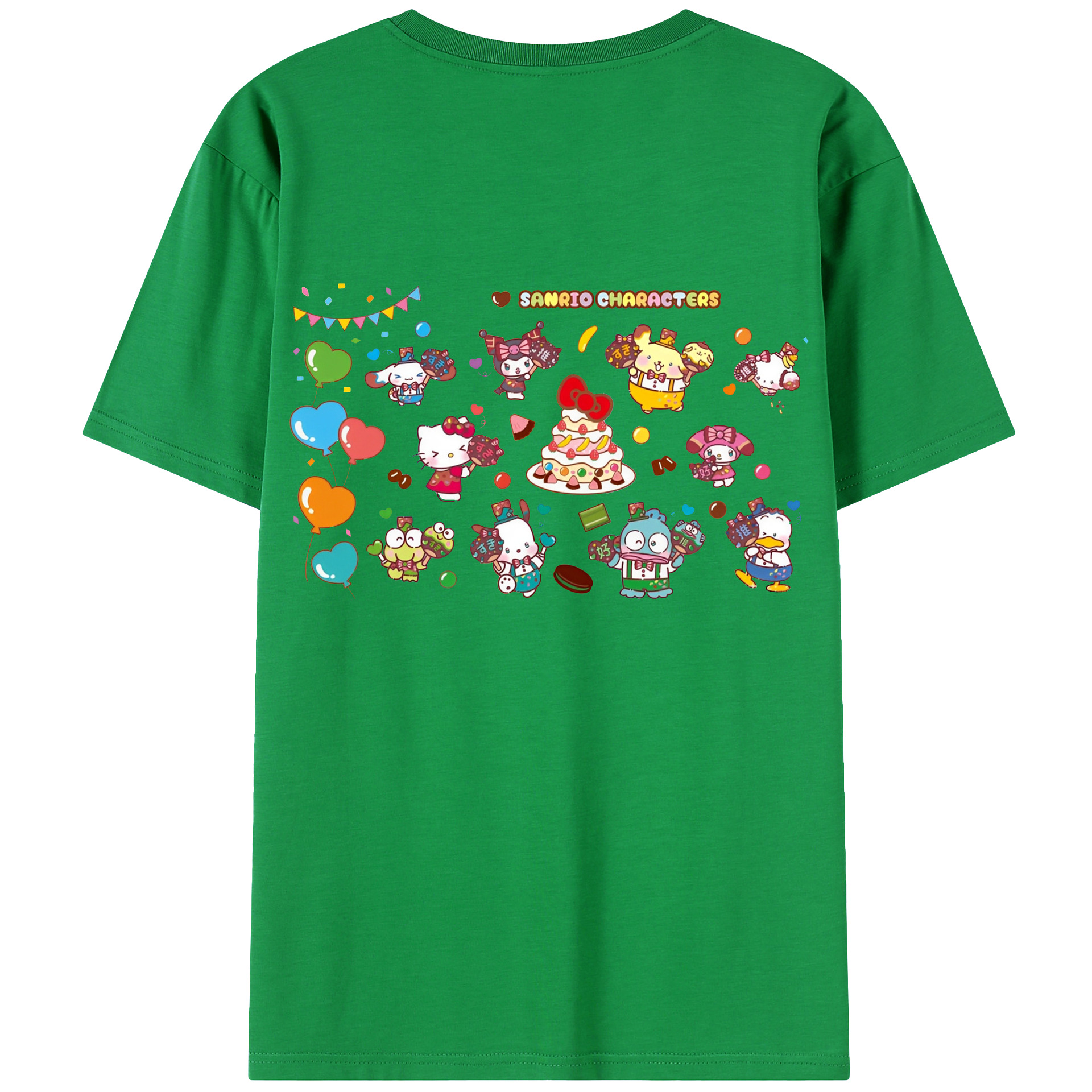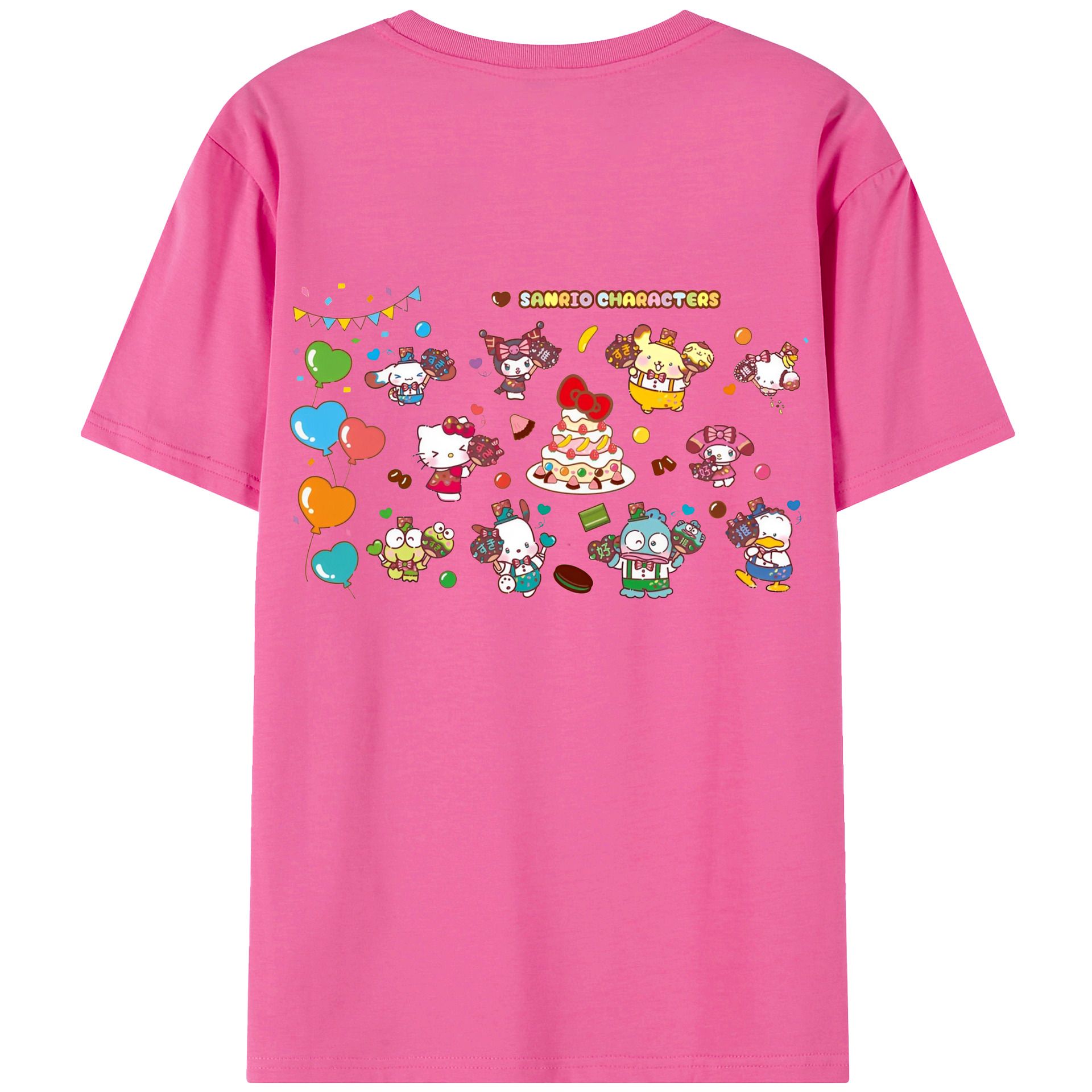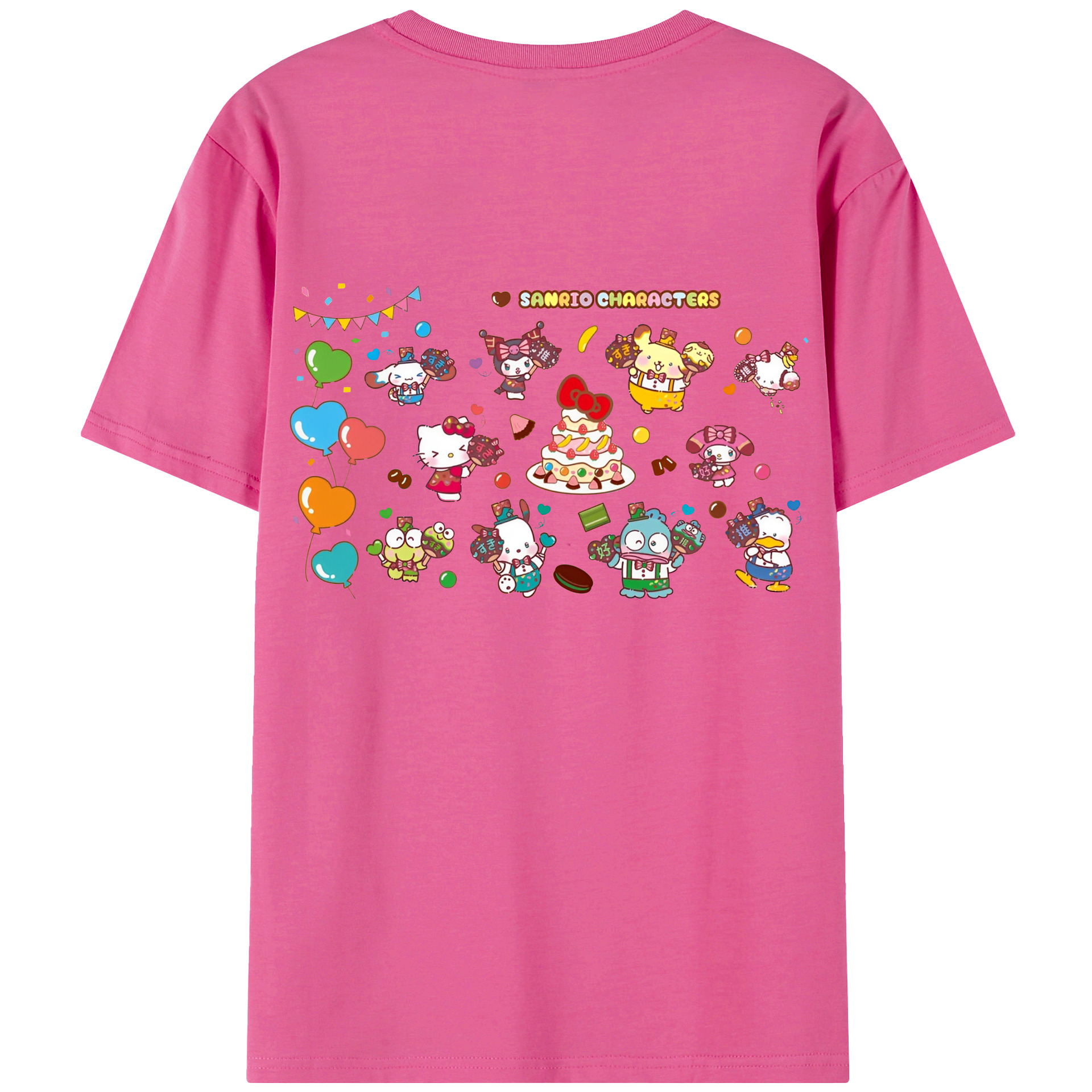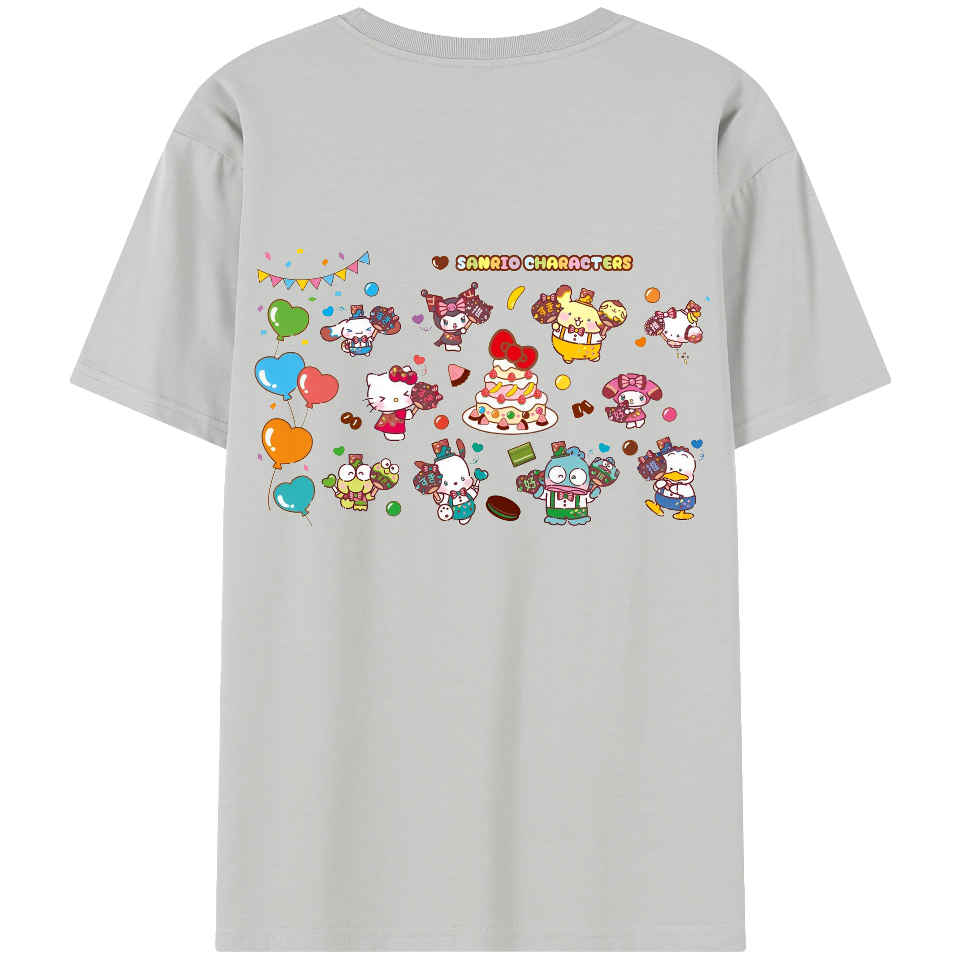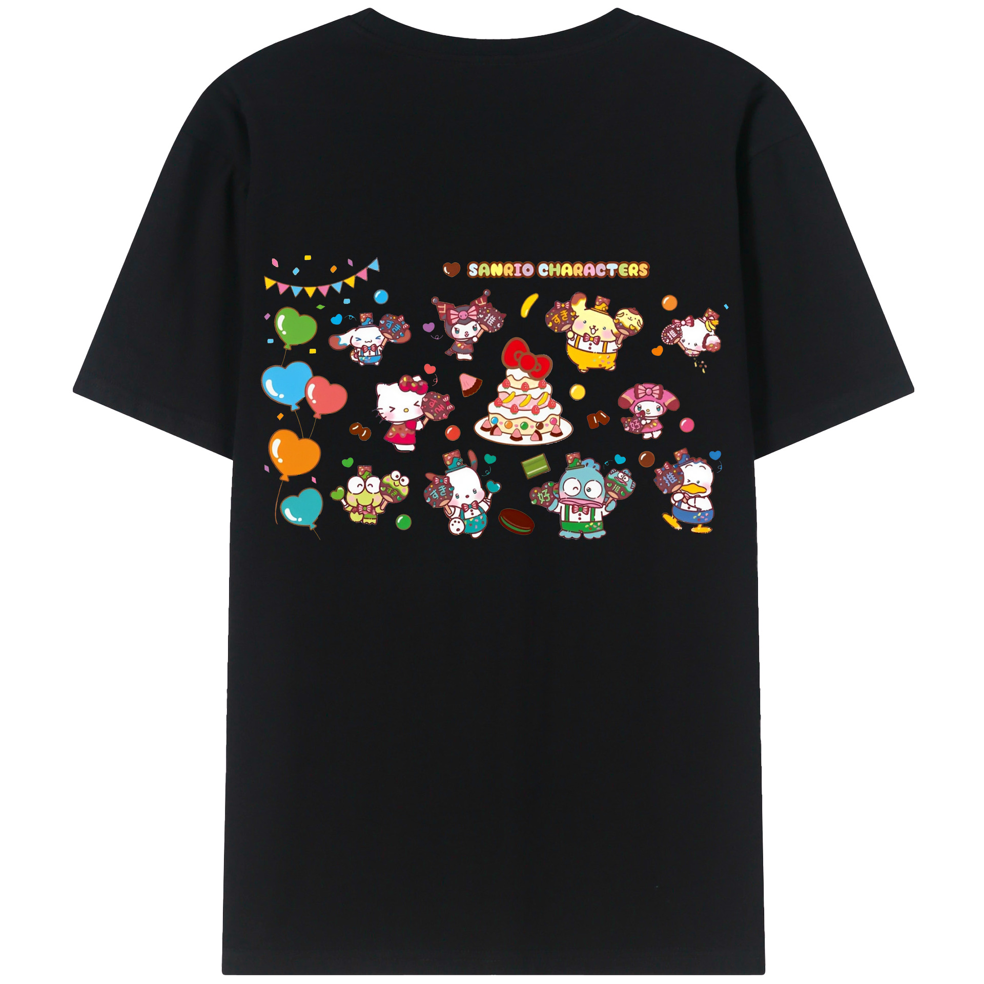 スイート系サンリオ - レディース半袖Tシャツ ・ 綿100% ・ バックプリント ・ 強化クルーネック ・ 二重折り袖口 ・ 快適 通気性 ・ フィットネス カジュアル 旅行用