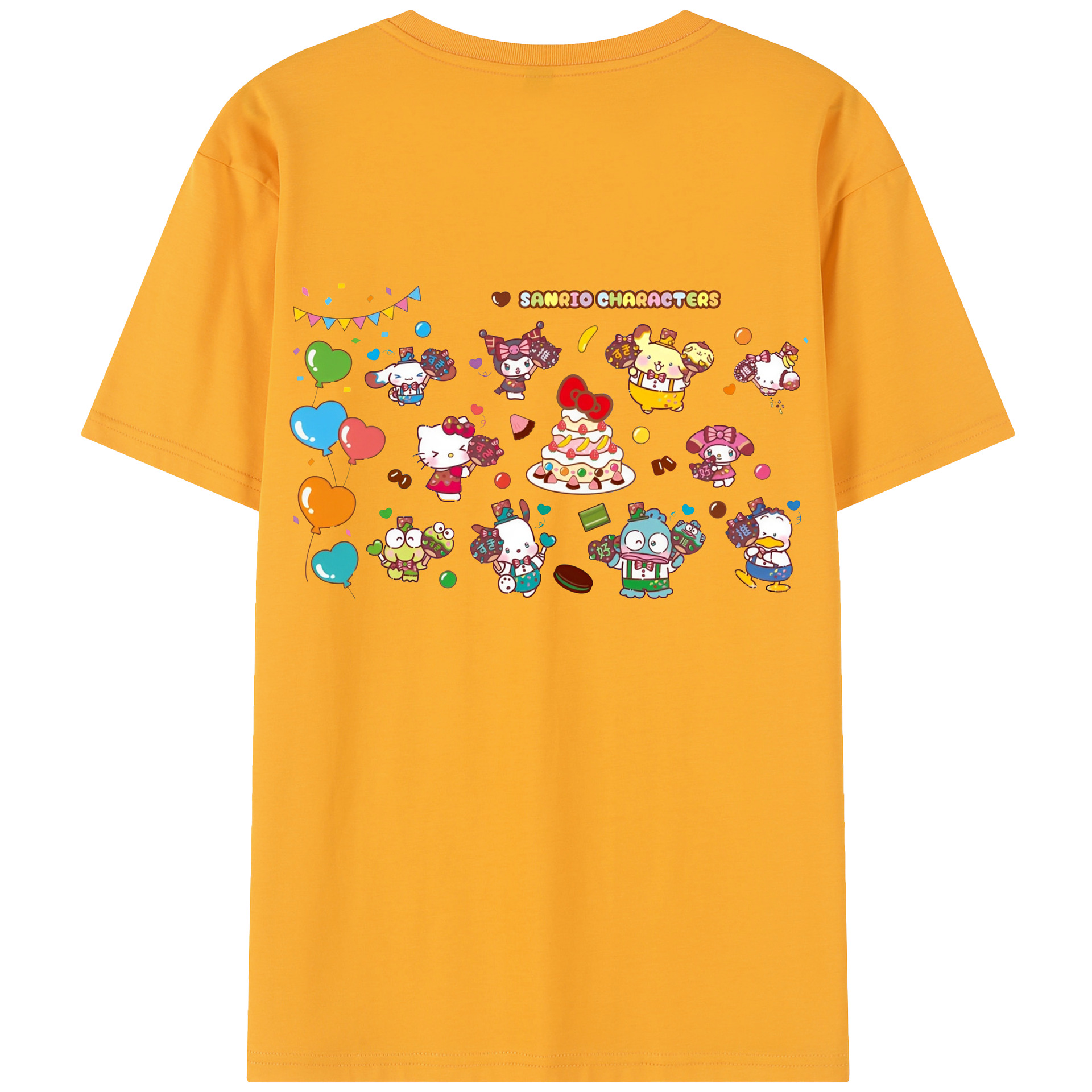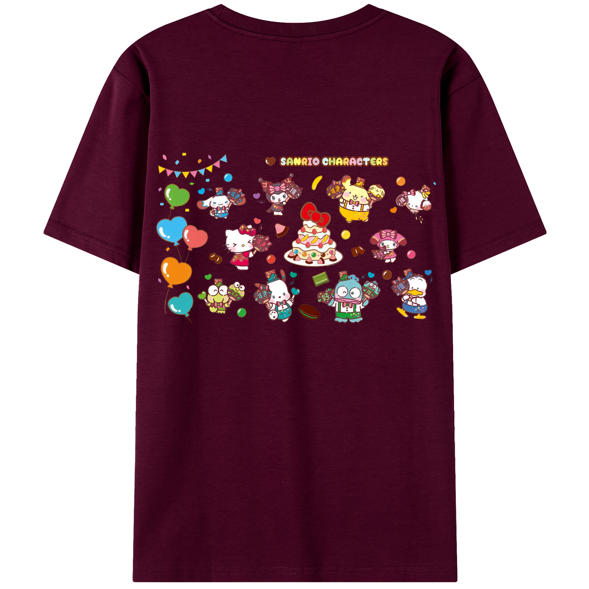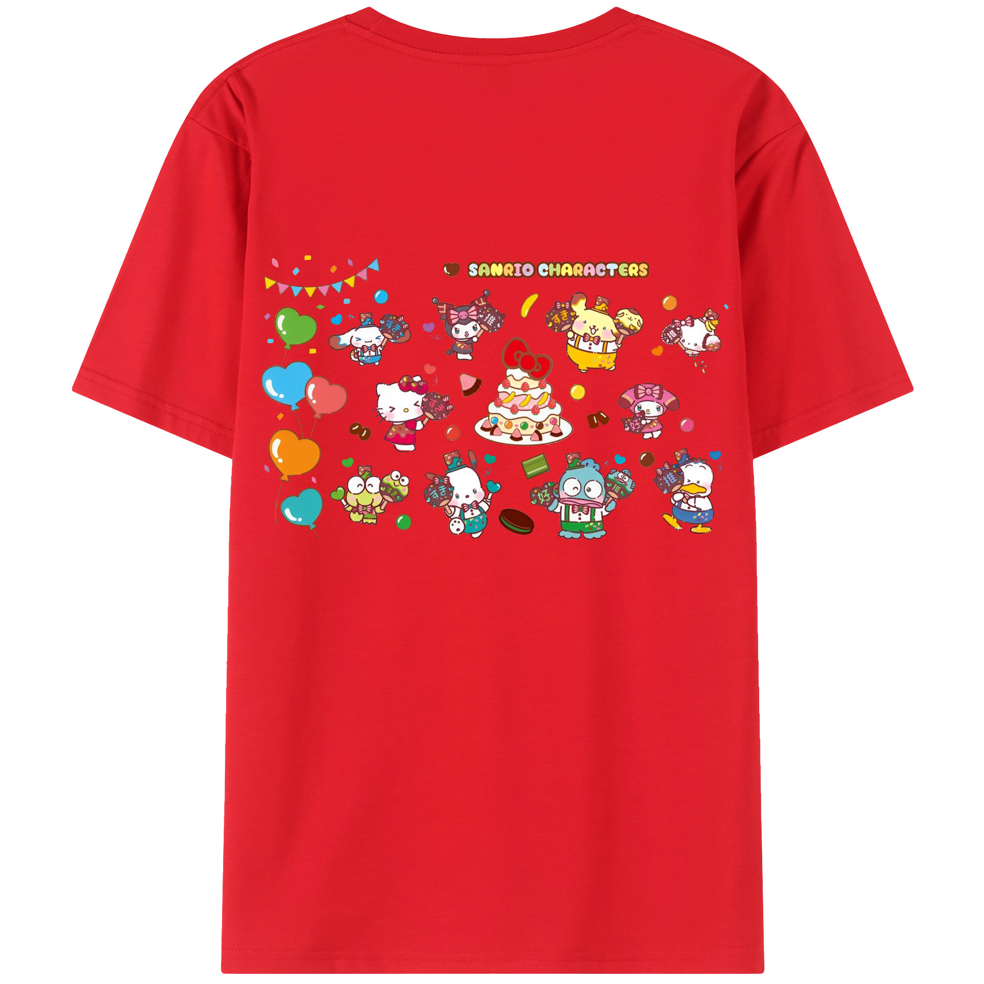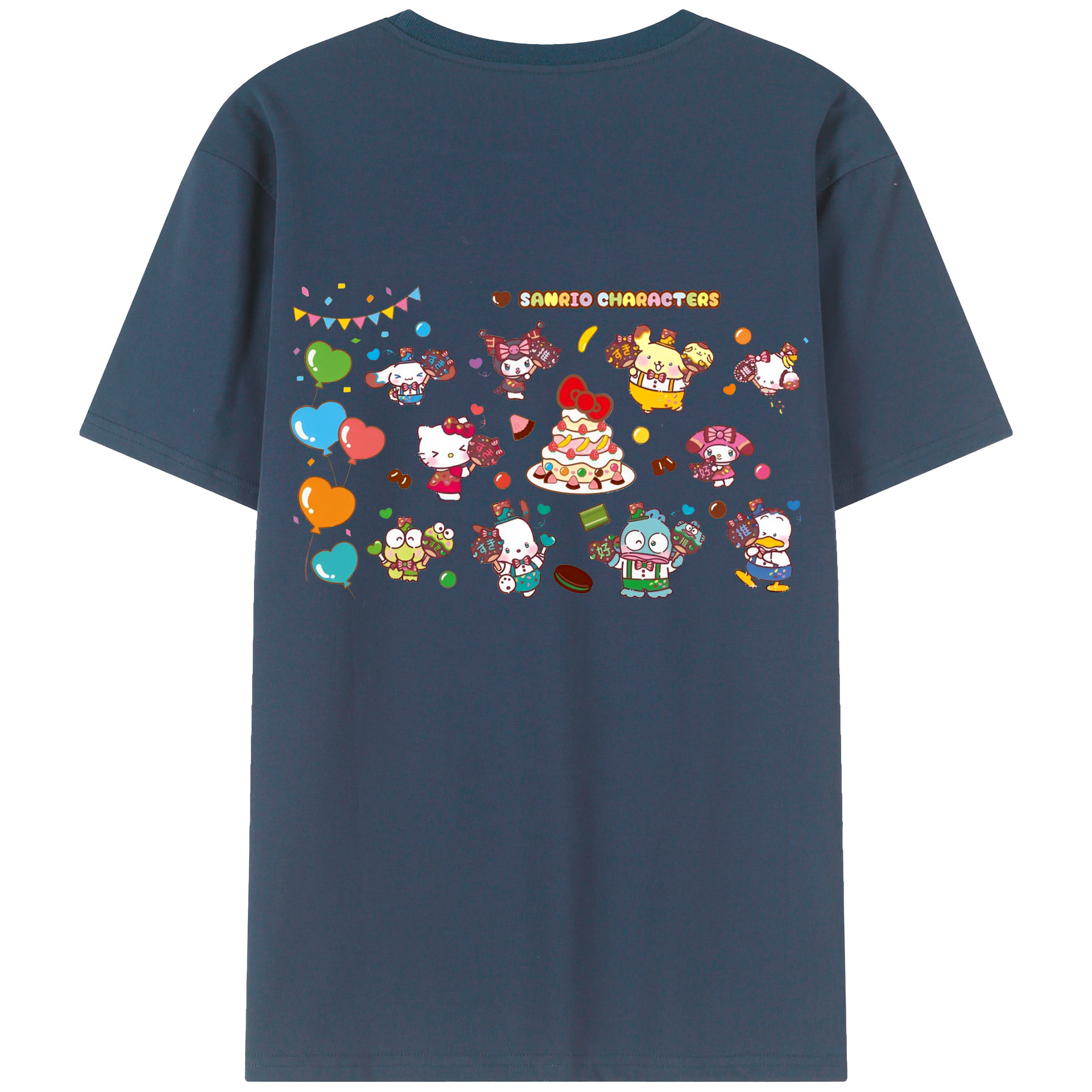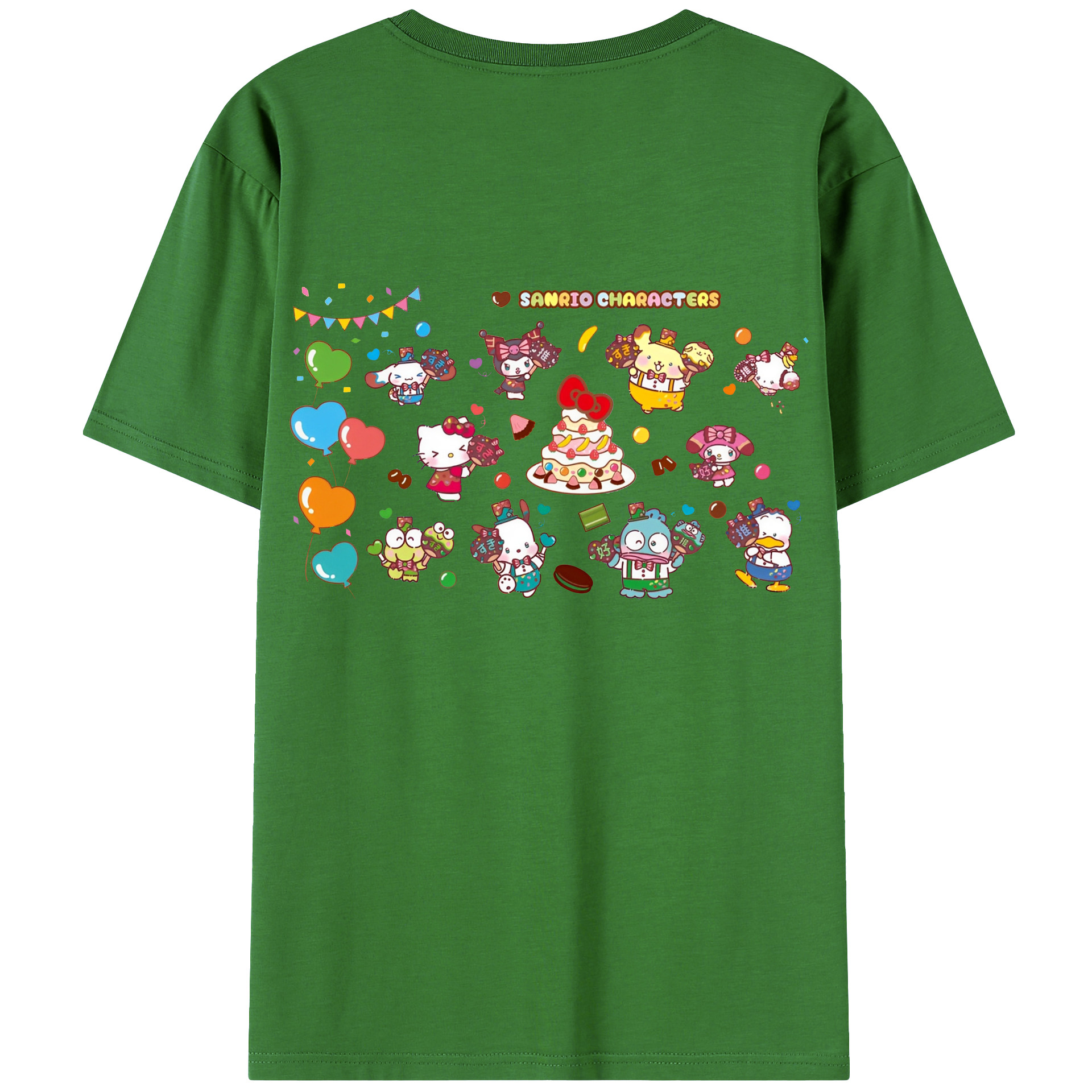 スイート系サンリオ - レディース半袖Tシャツ ・ 綿100% ・ バックプリント ・ 強化クルーネック ・ 二重折り袖口 ・ 快適 通気性 ・ フィットネス カジュアル 旅行用