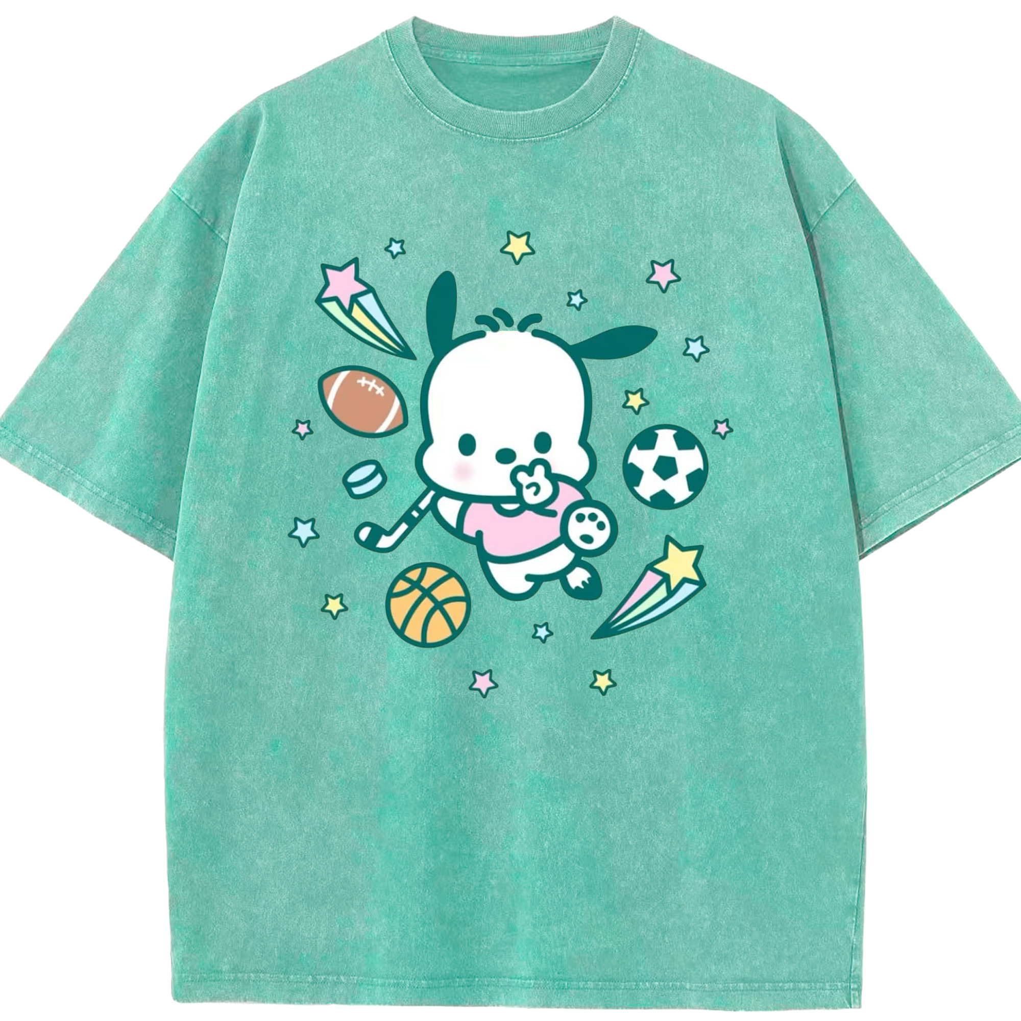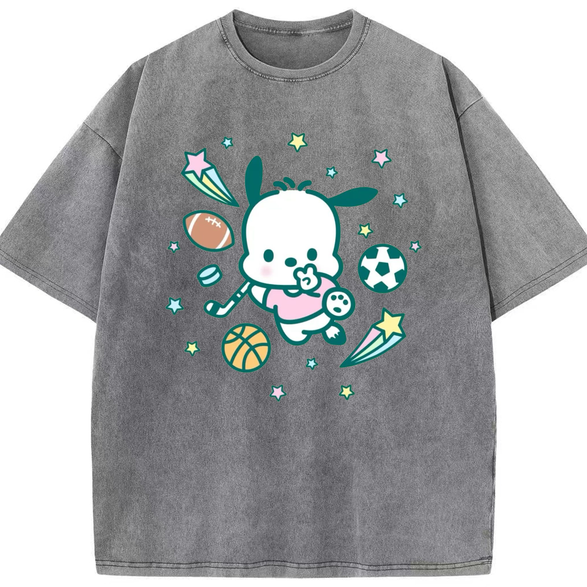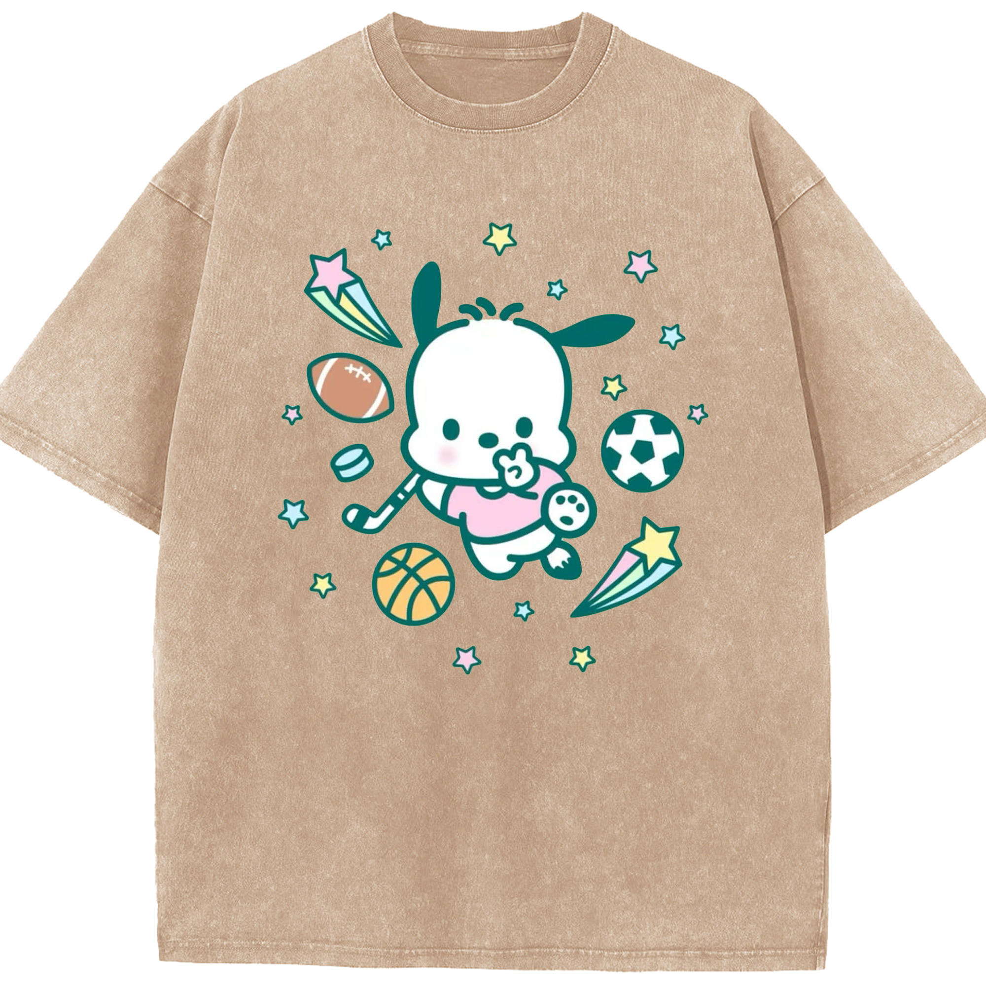 サンリオファミリー新作 - 綿100% ヴィンテージ風 半袖Tシャツ ・ フロントプリント ・ 柔らか肌触り ・ 通気性 快適 ・ スポーツ カジュアル 外出用