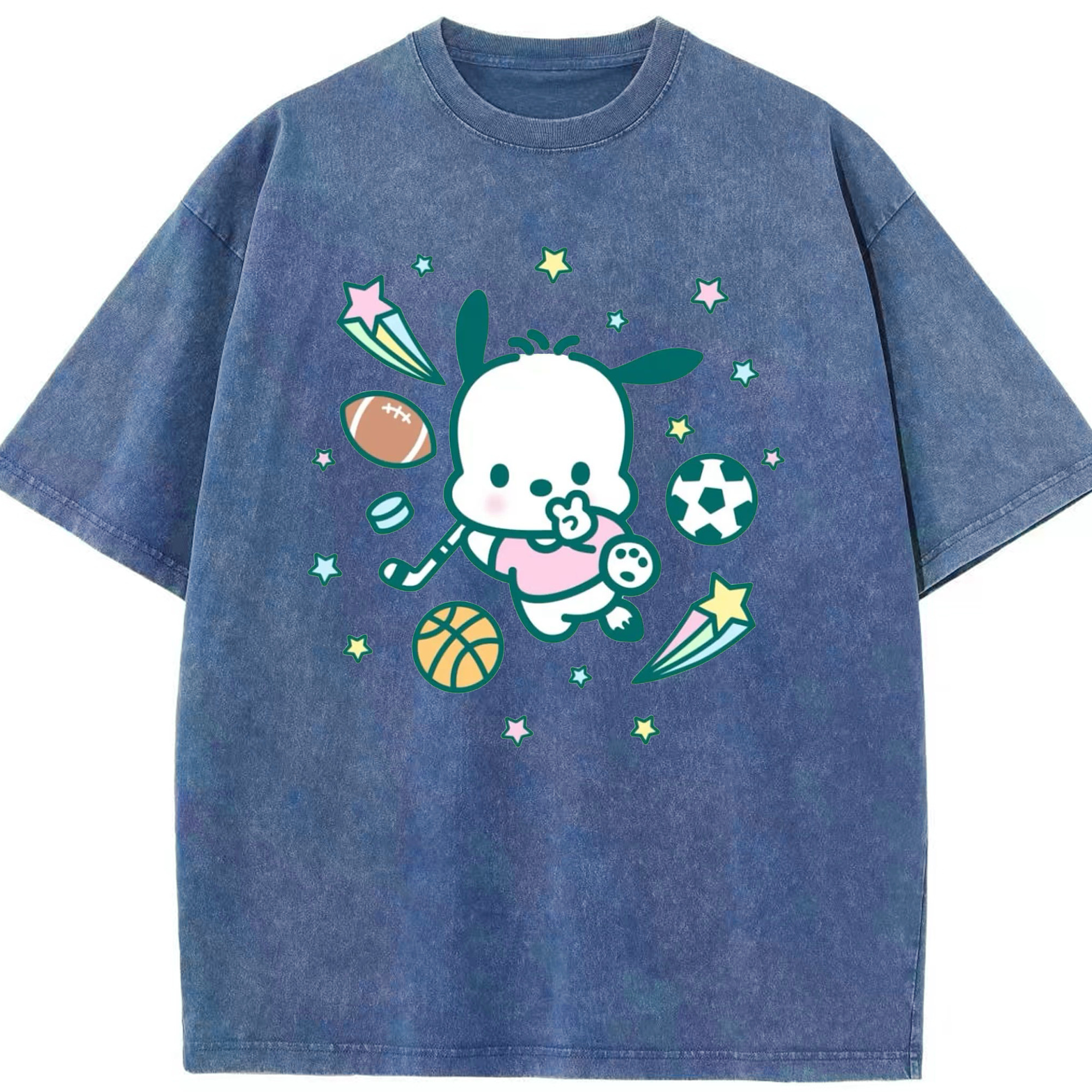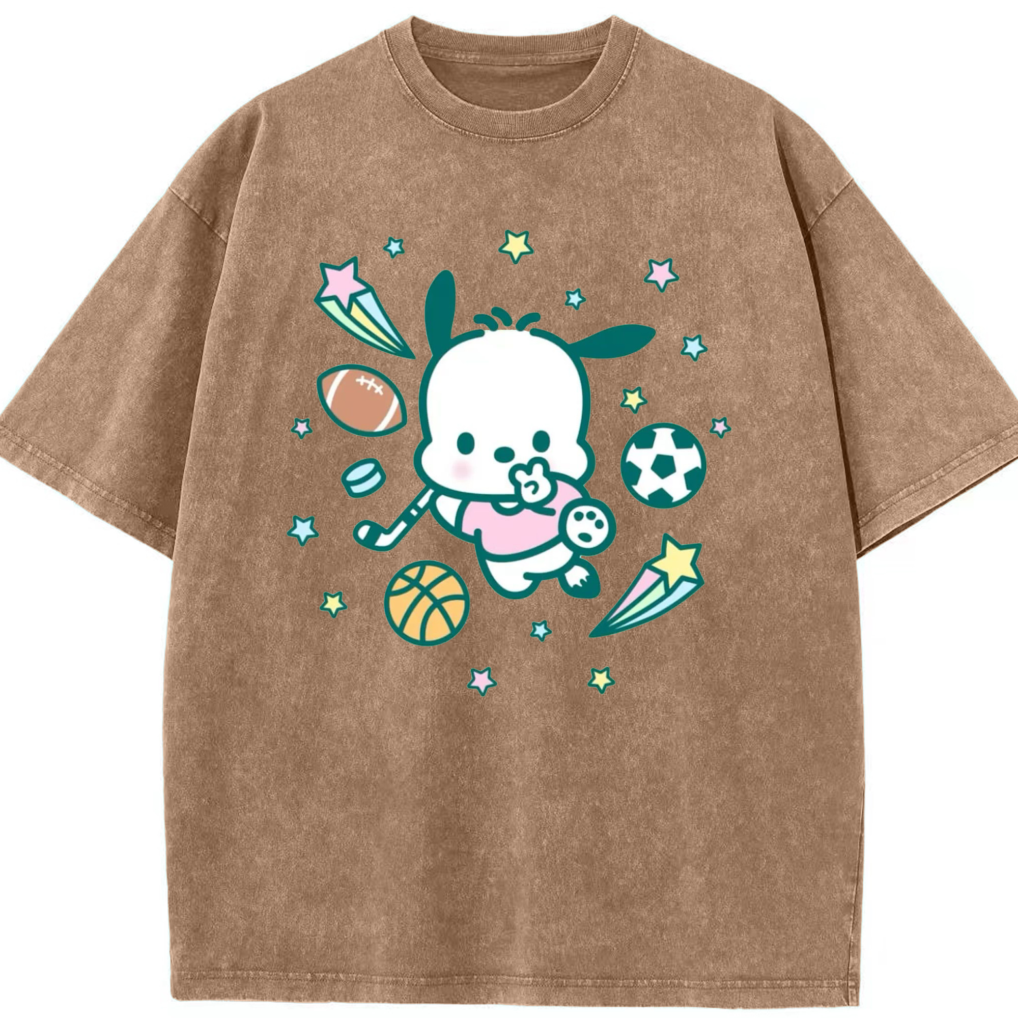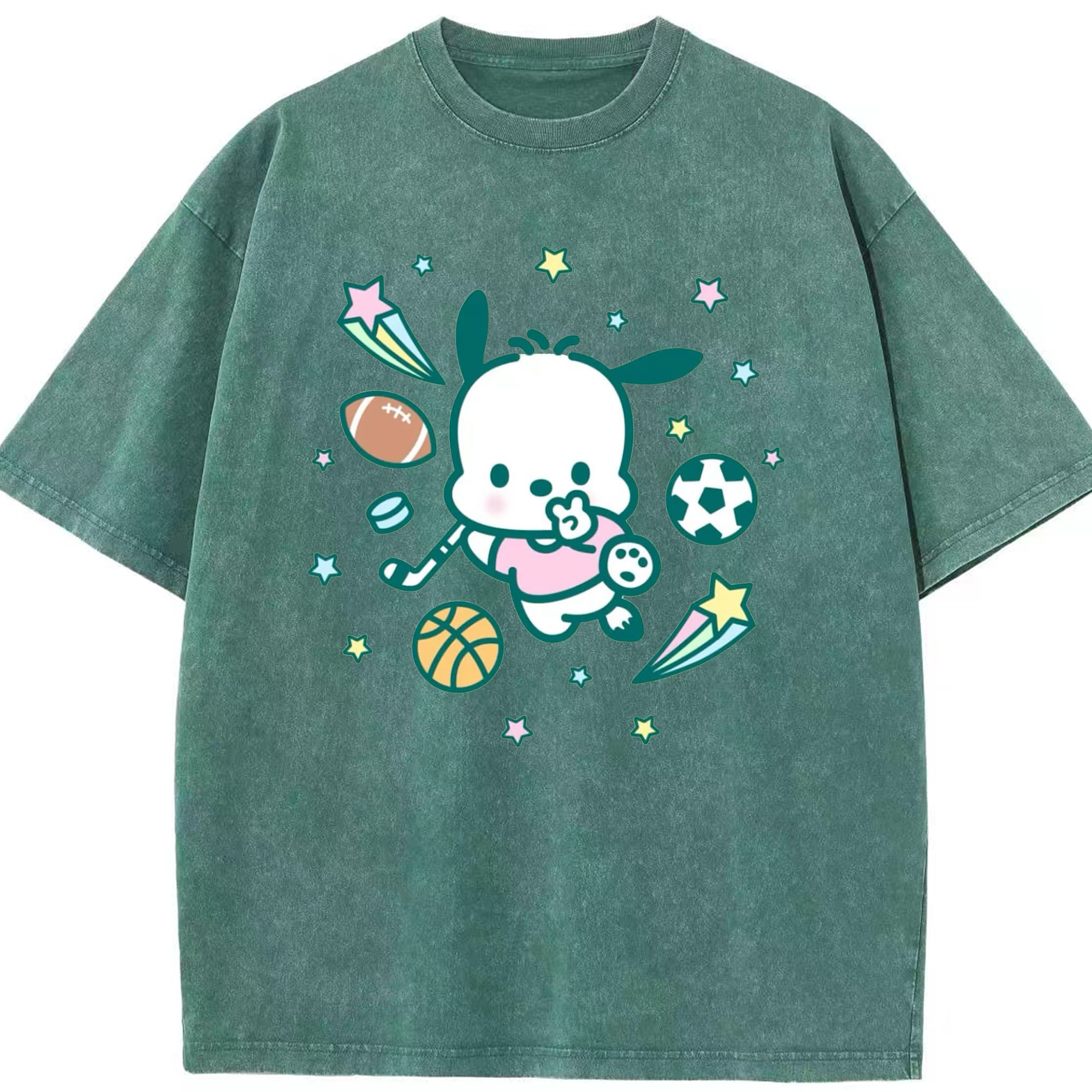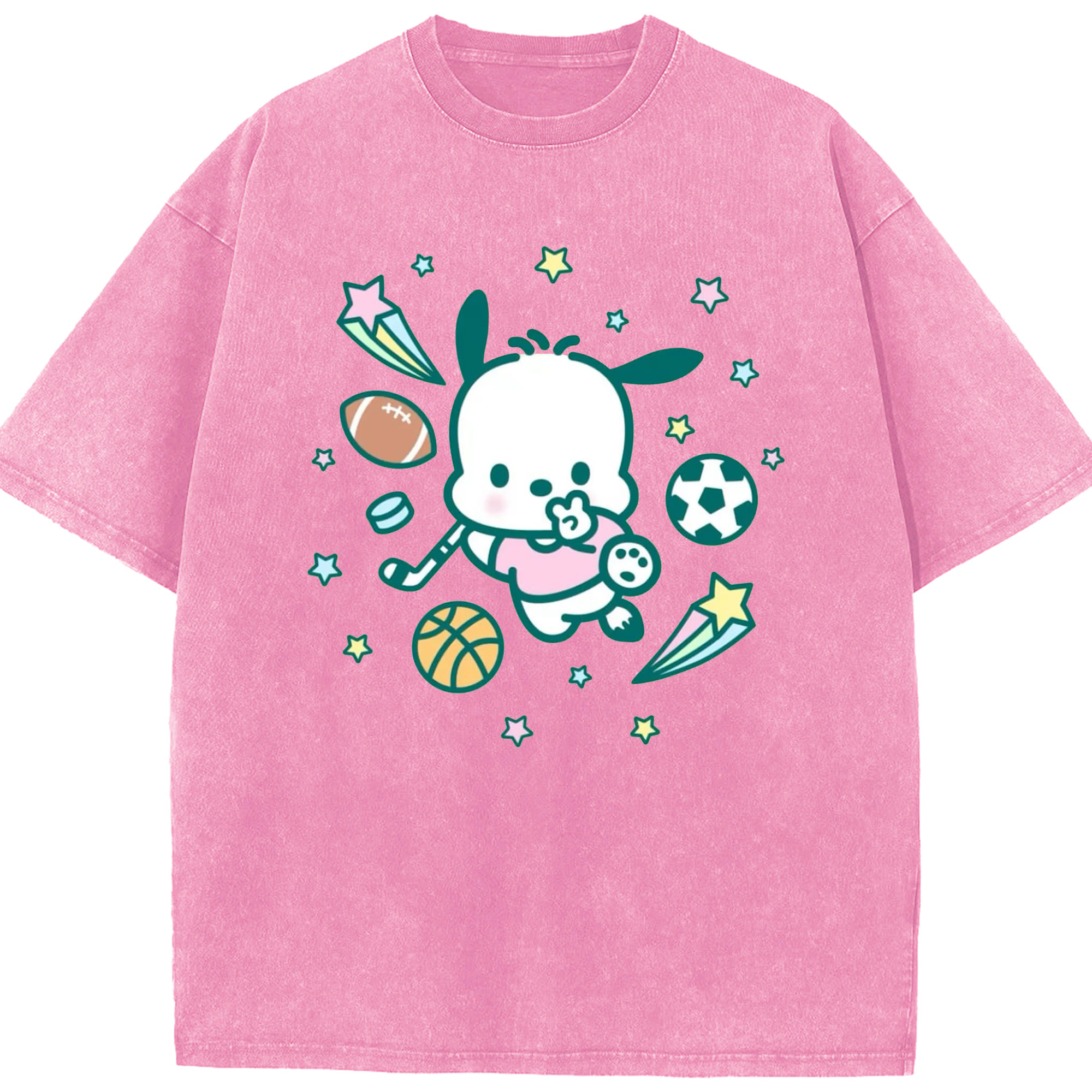サンリオファミリー新作 - 綿100% ヴィンテージ風 半袖Tシャツ ・ フロントプリント ・ 柔らか肌触り ・ 通気性 快適 ・ スポーツ カジュアル 外出用