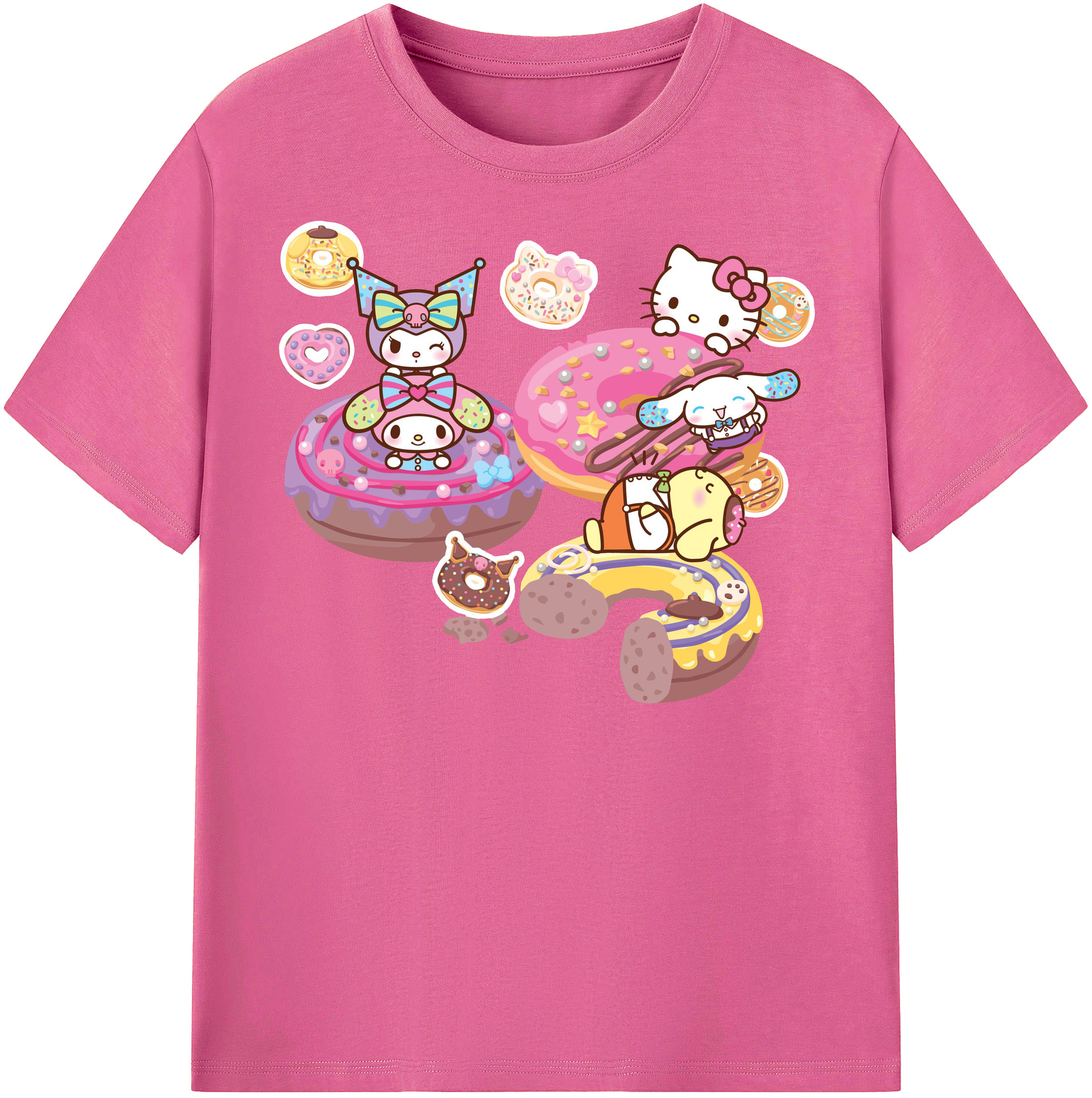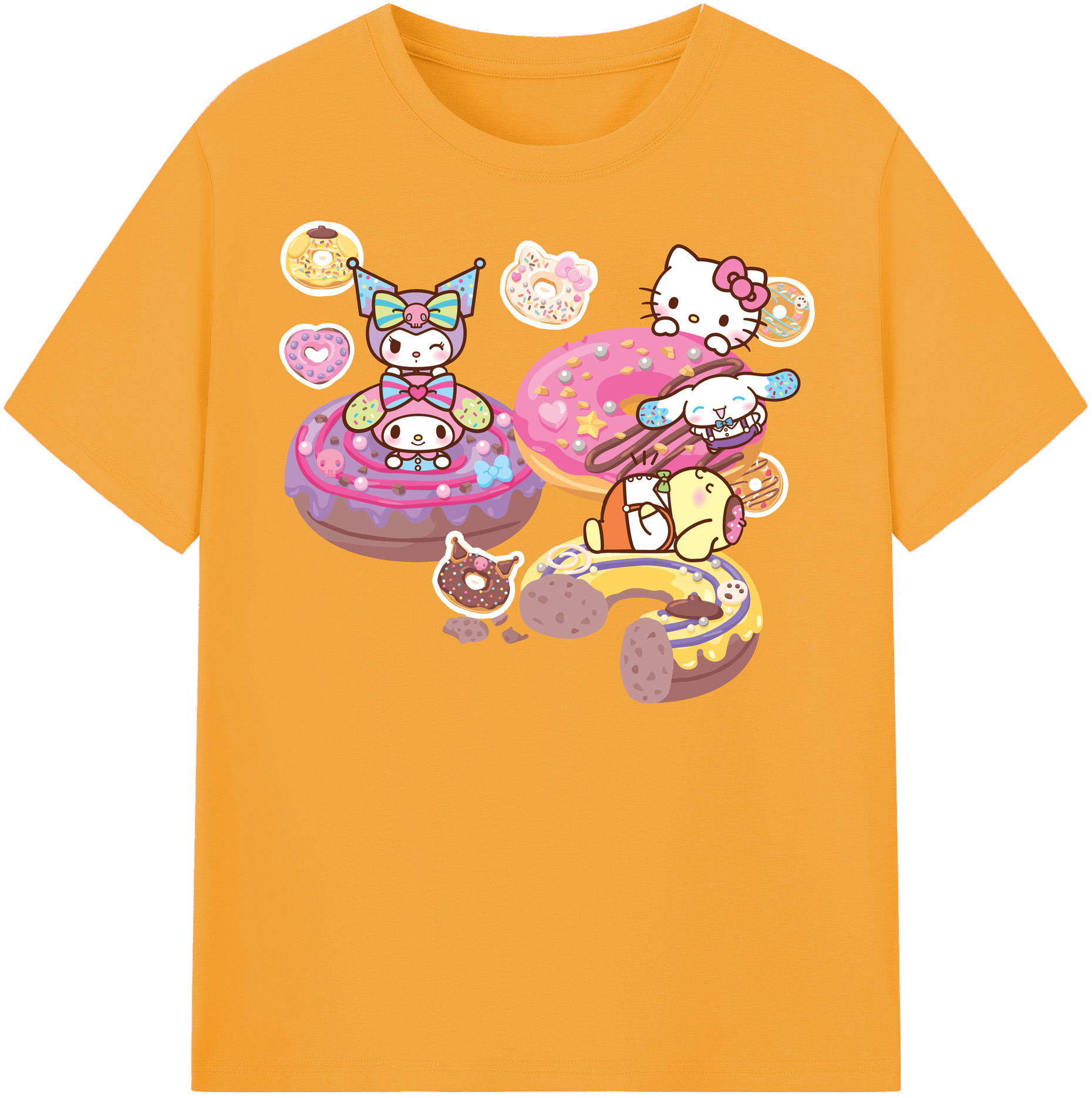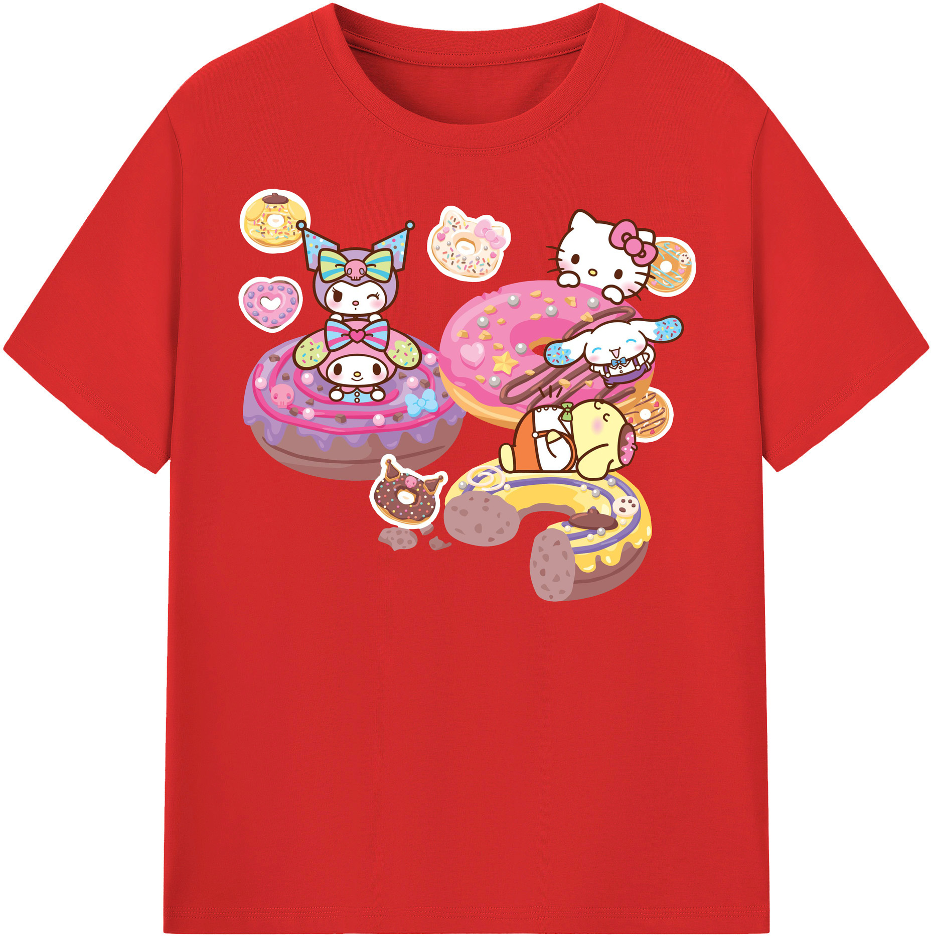 ドーナツ×サンリオ - 綿100% キッズTシャツ ・ フロントプリント ・ 快適 通気性 ・ スポーツ カジュアル 散歩用